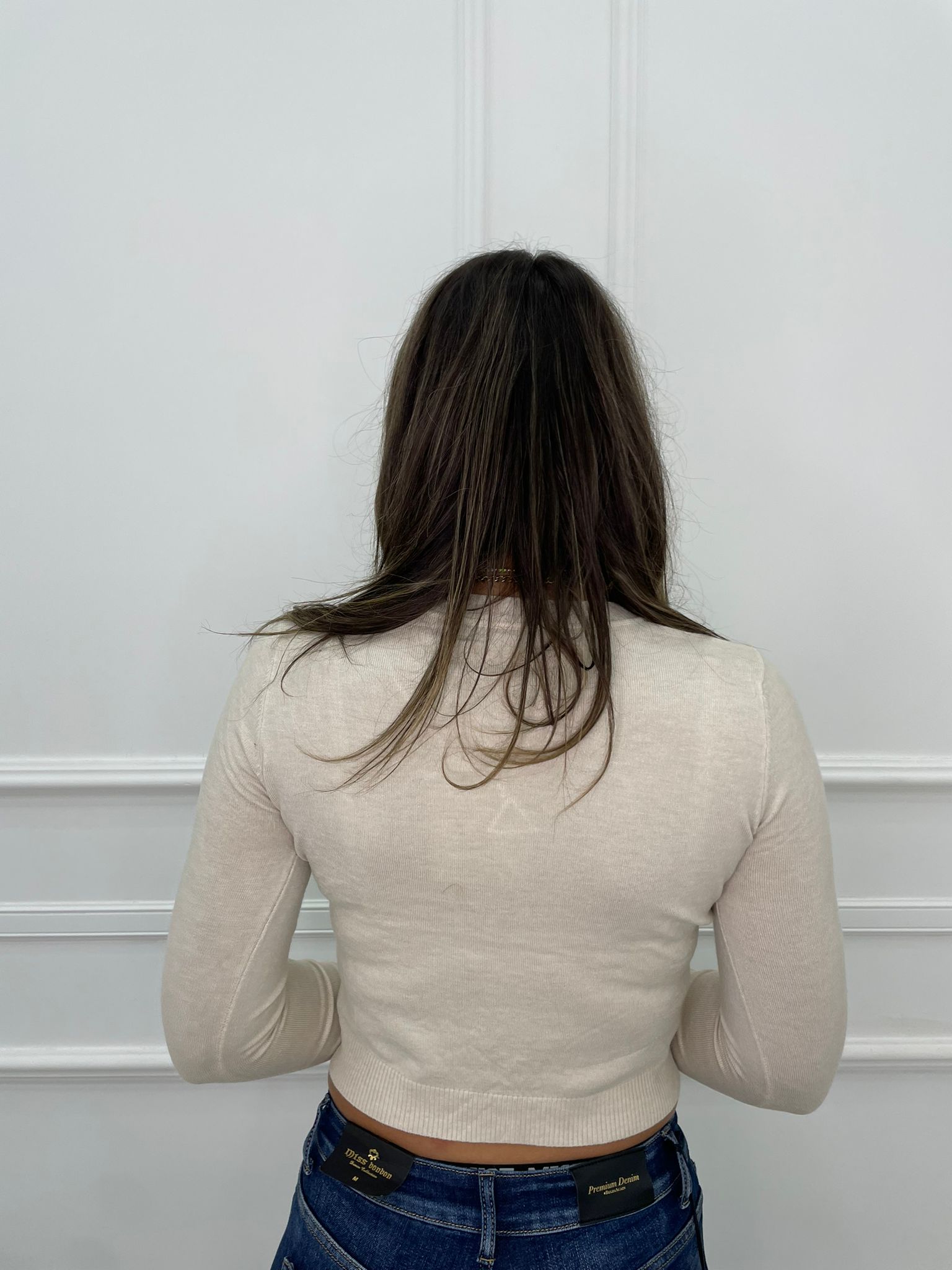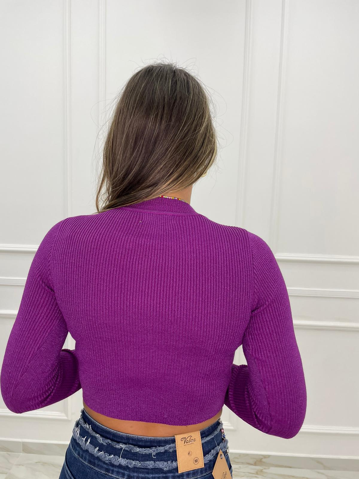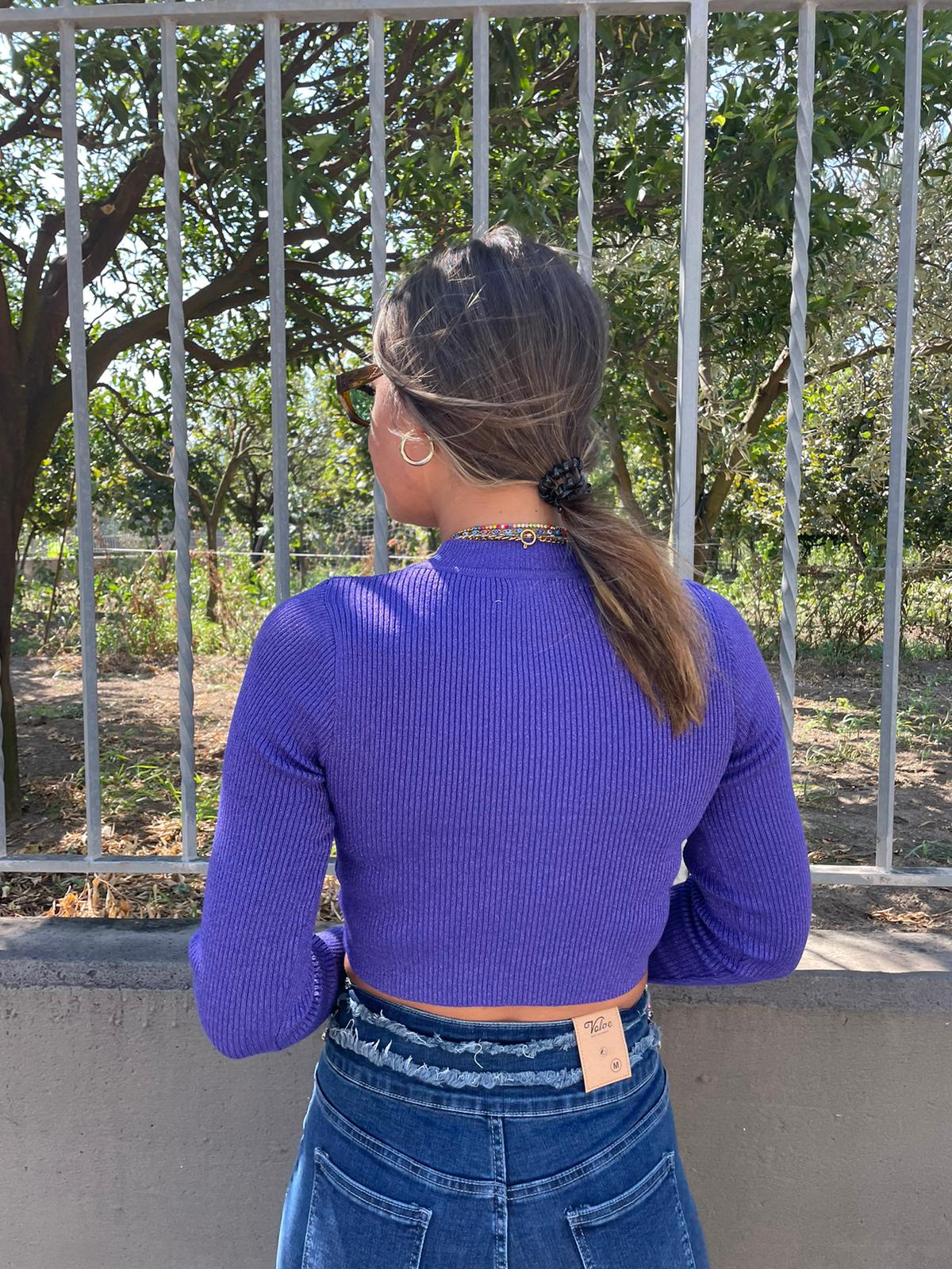 Maglioncino crop scollo a v e applicazioni gioiello