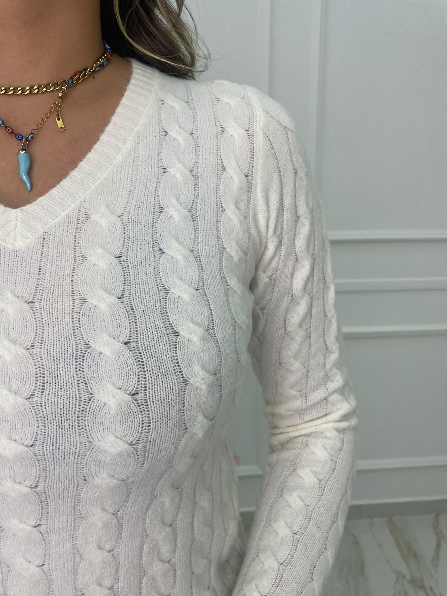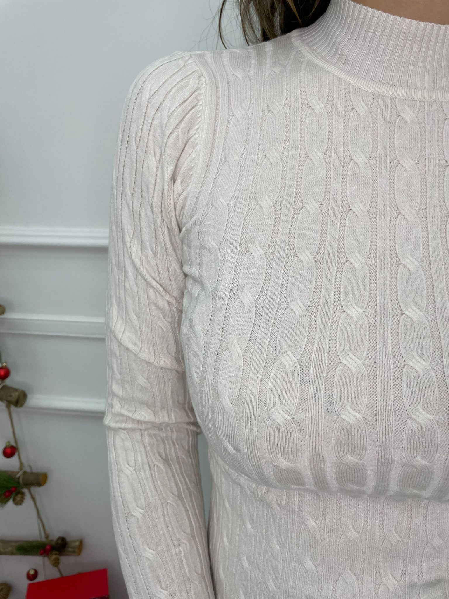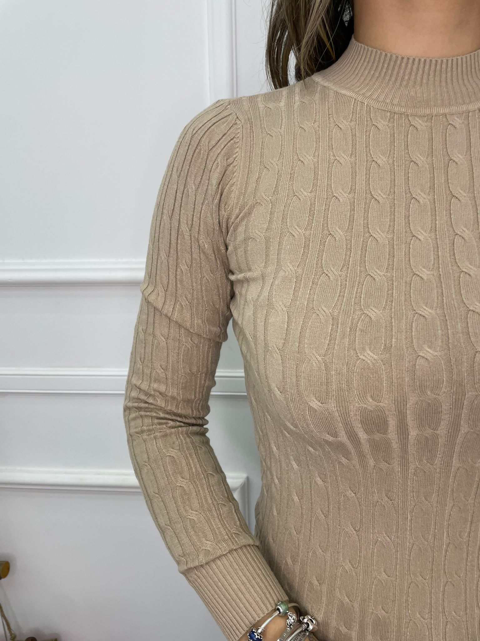 Maglioncino trama treccia mezzo collo