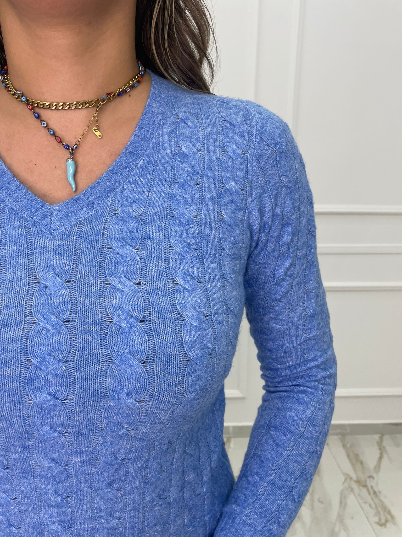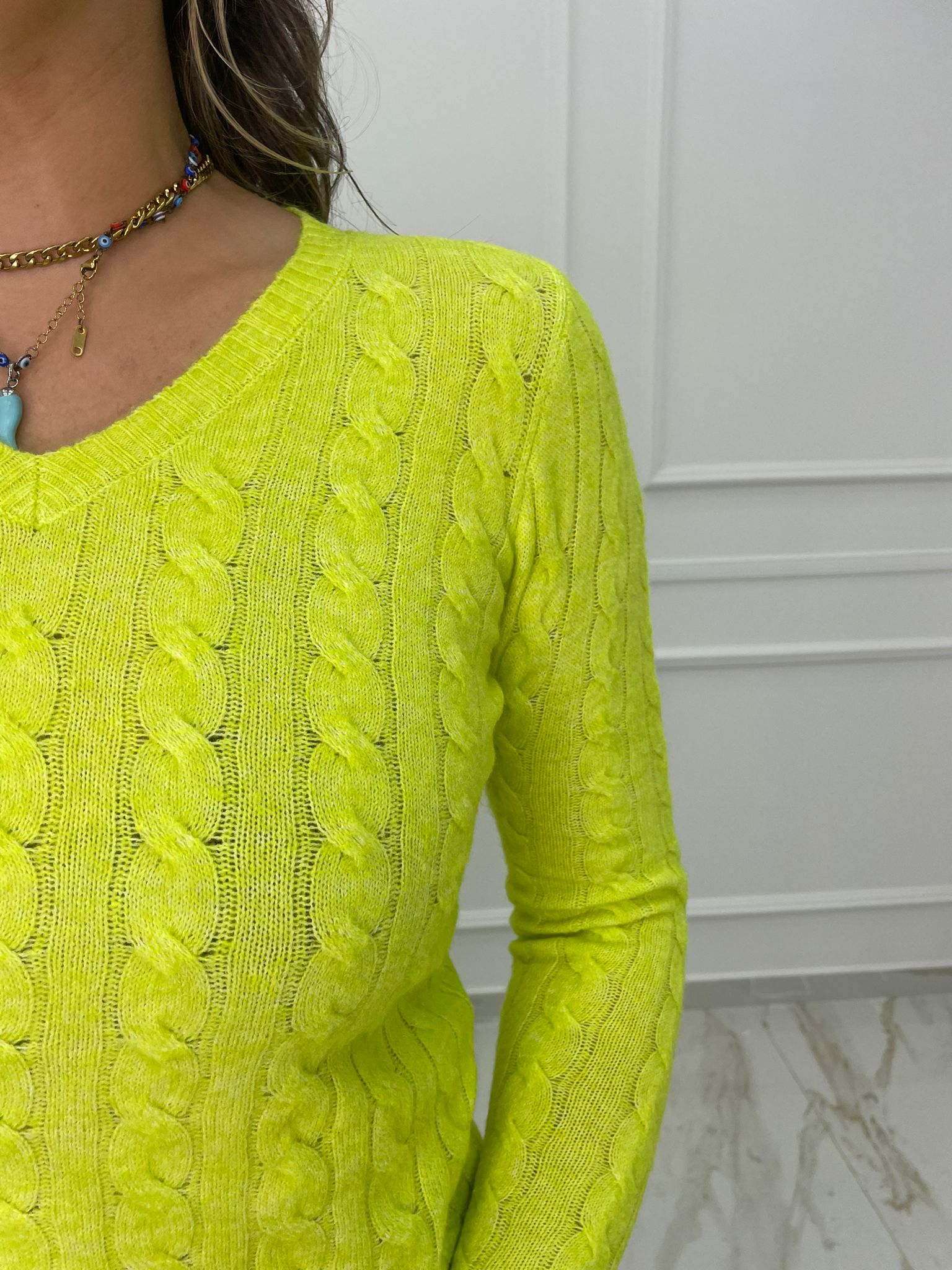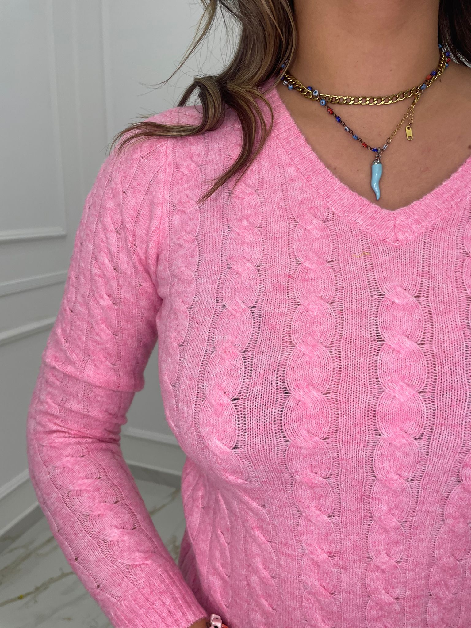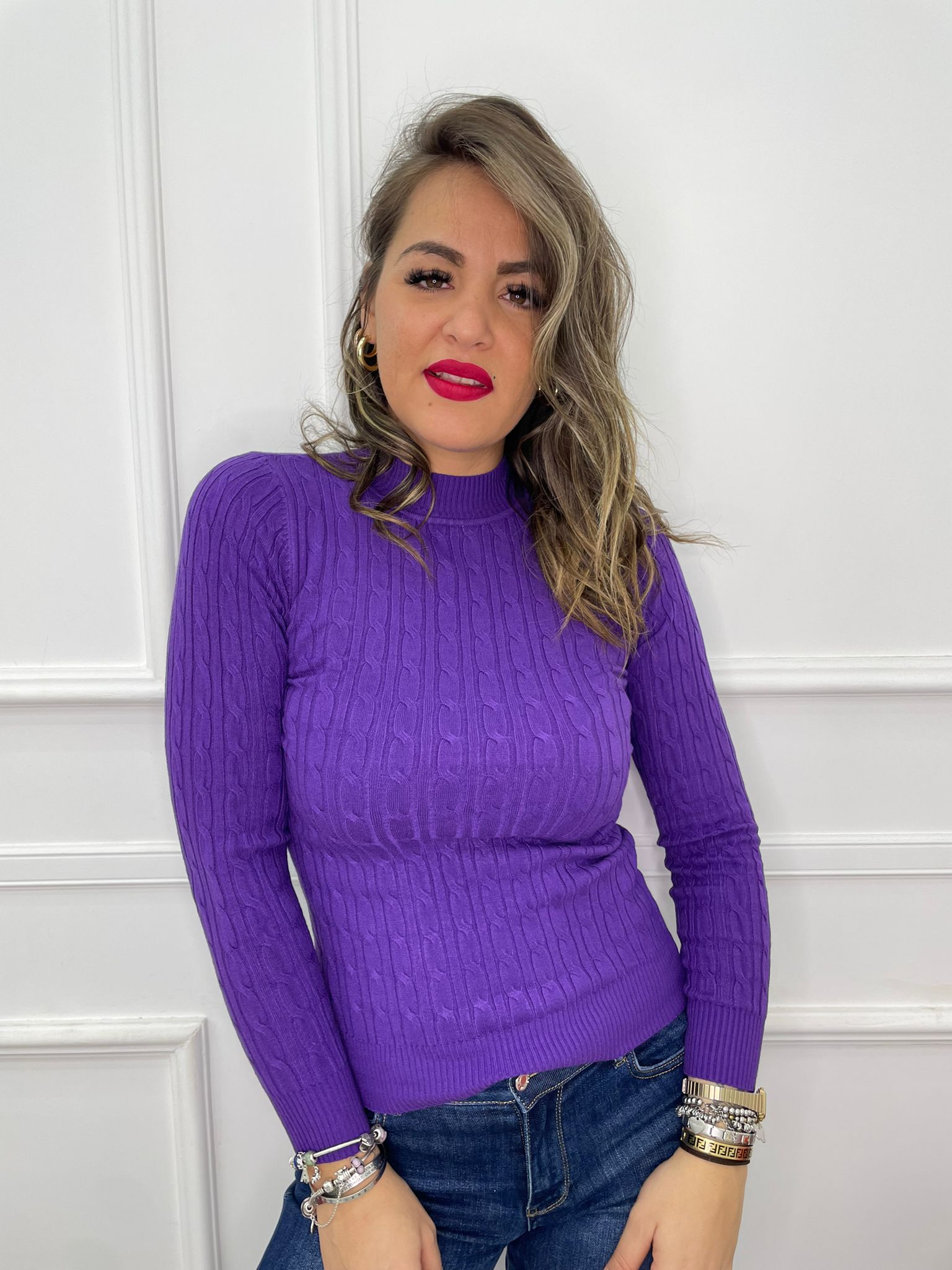 Maglioncino trama treccia mezzo collo