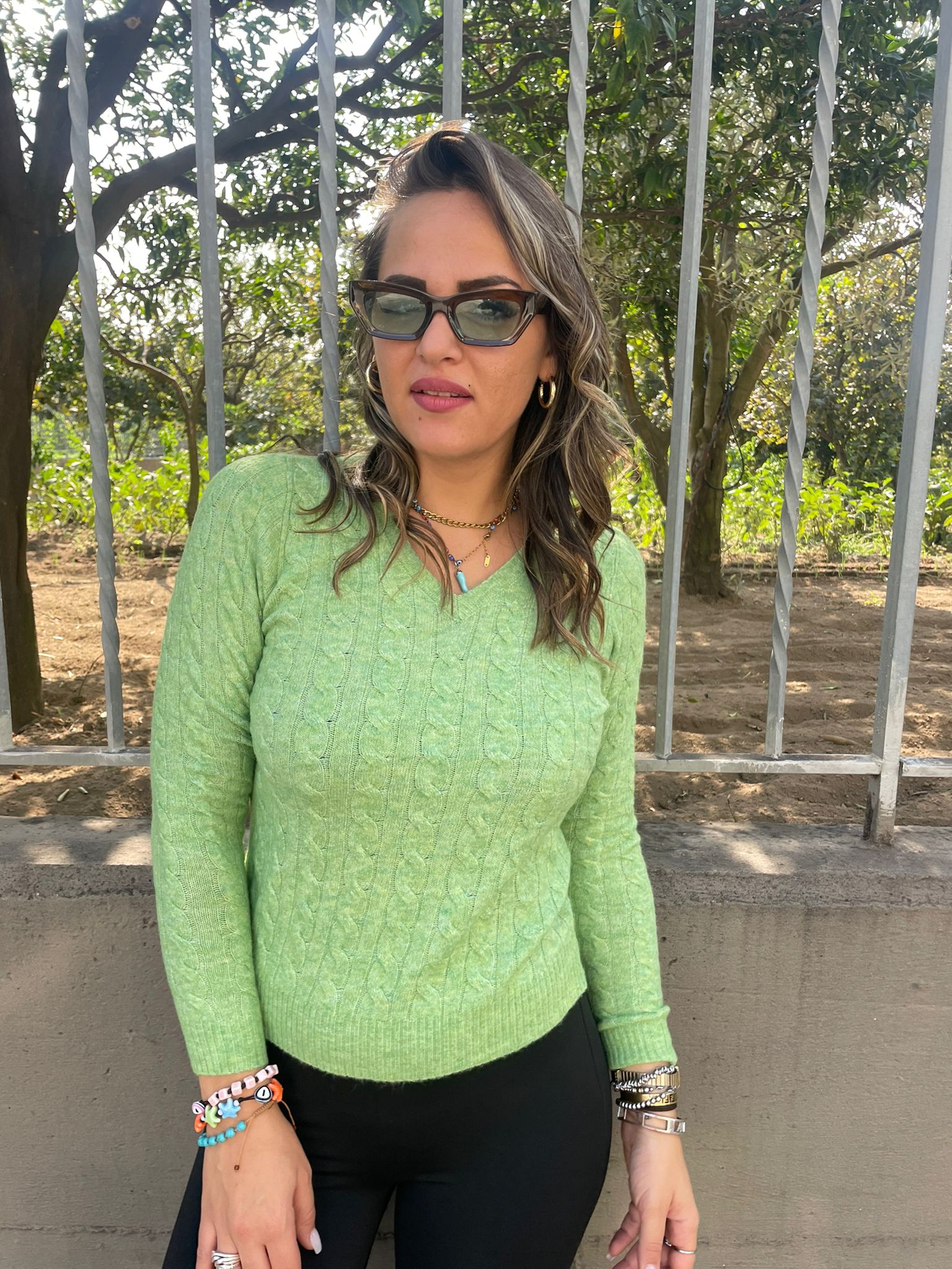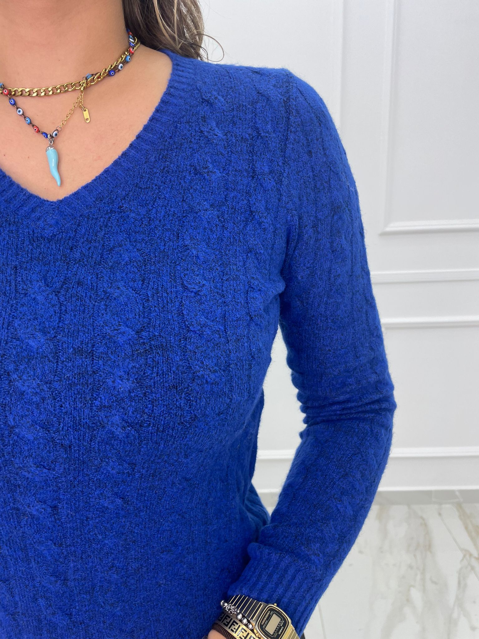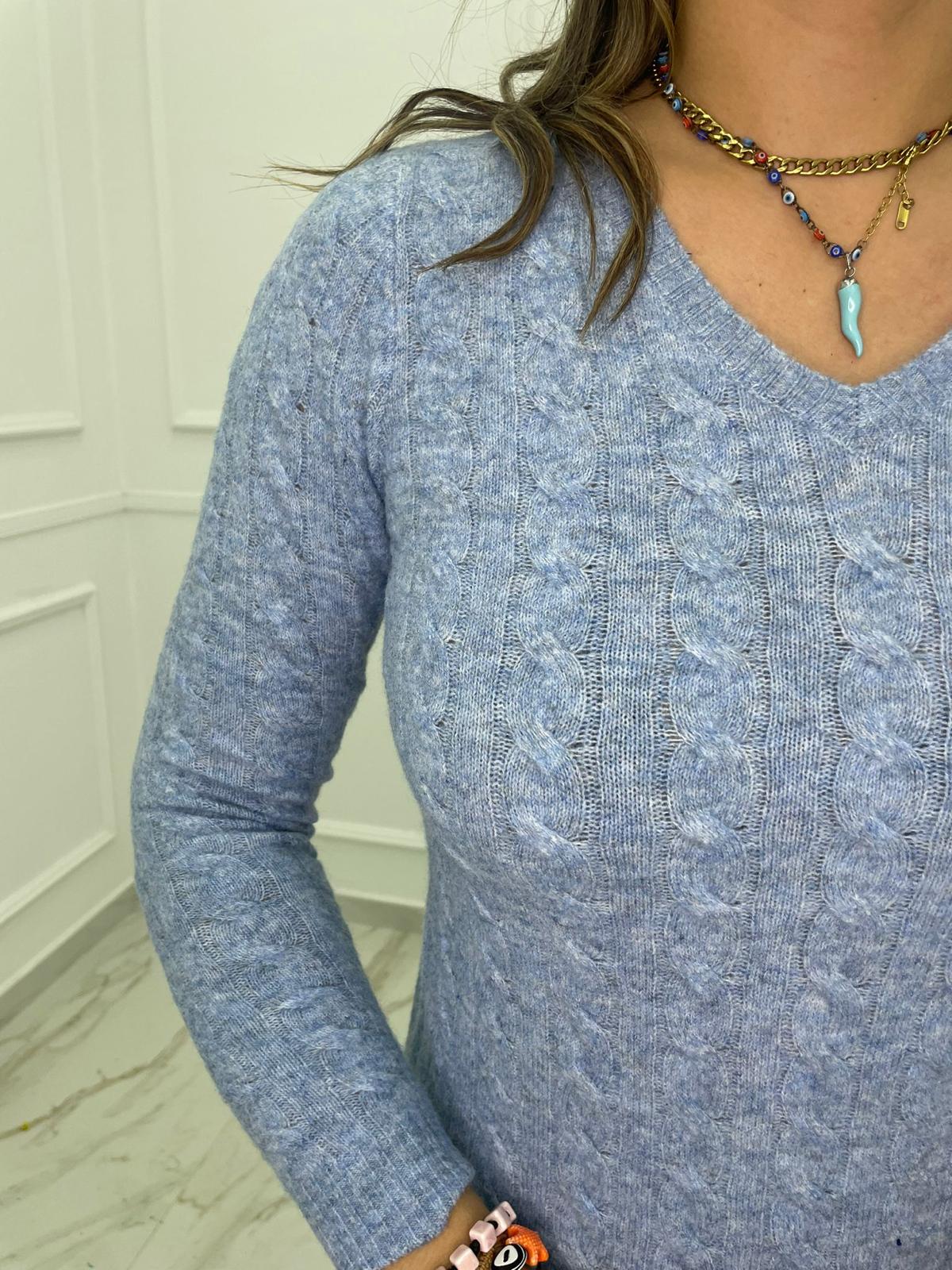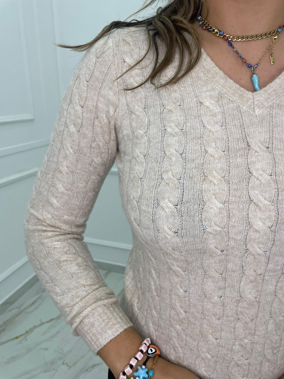 Maglia trama treccia con scollo a V