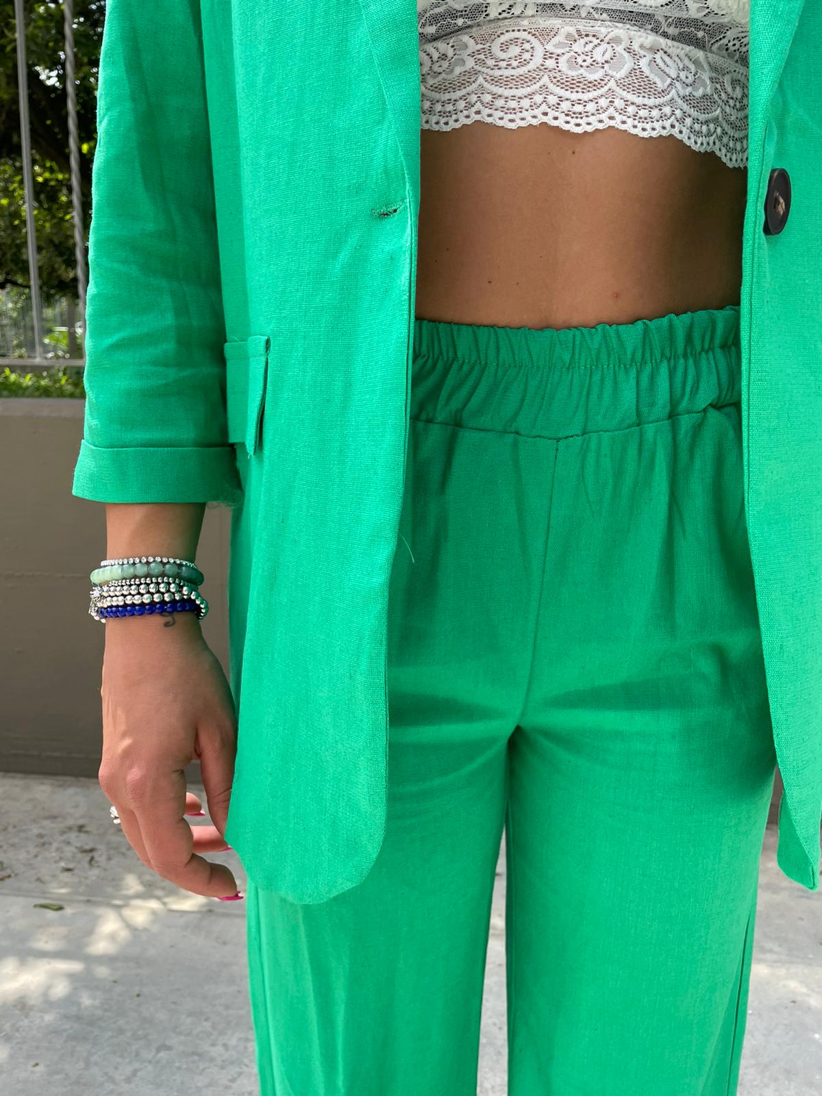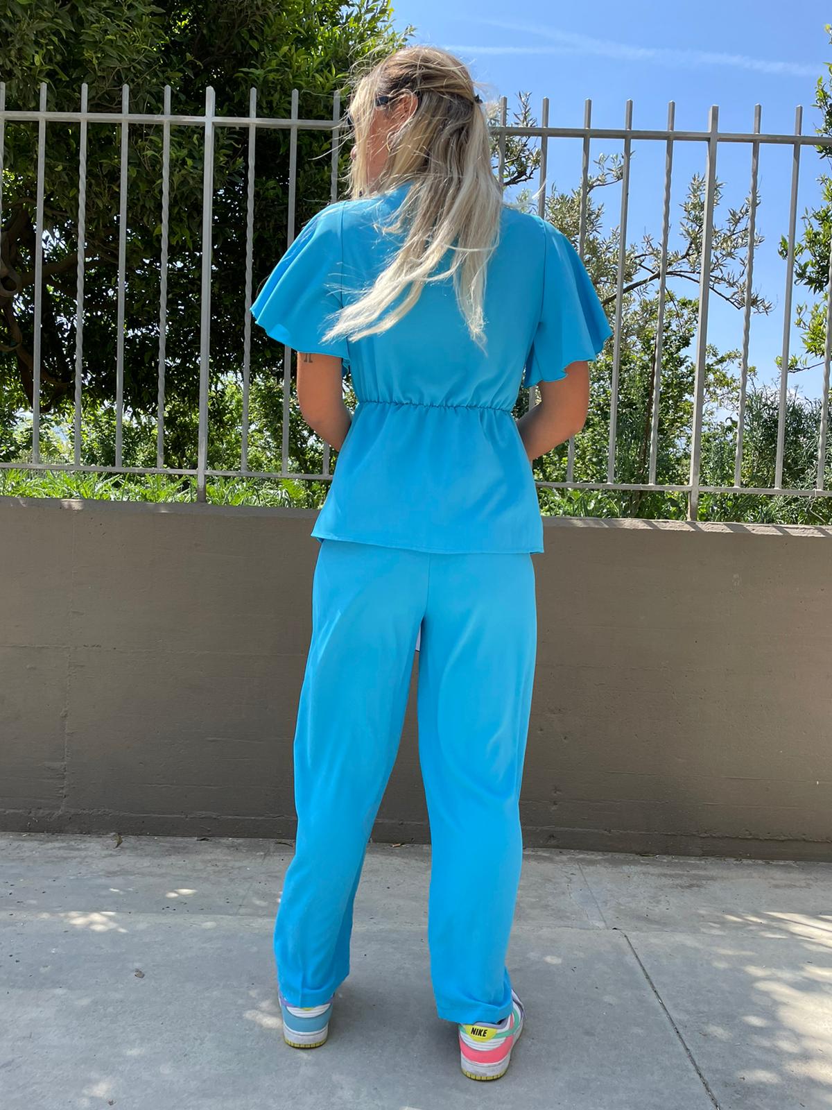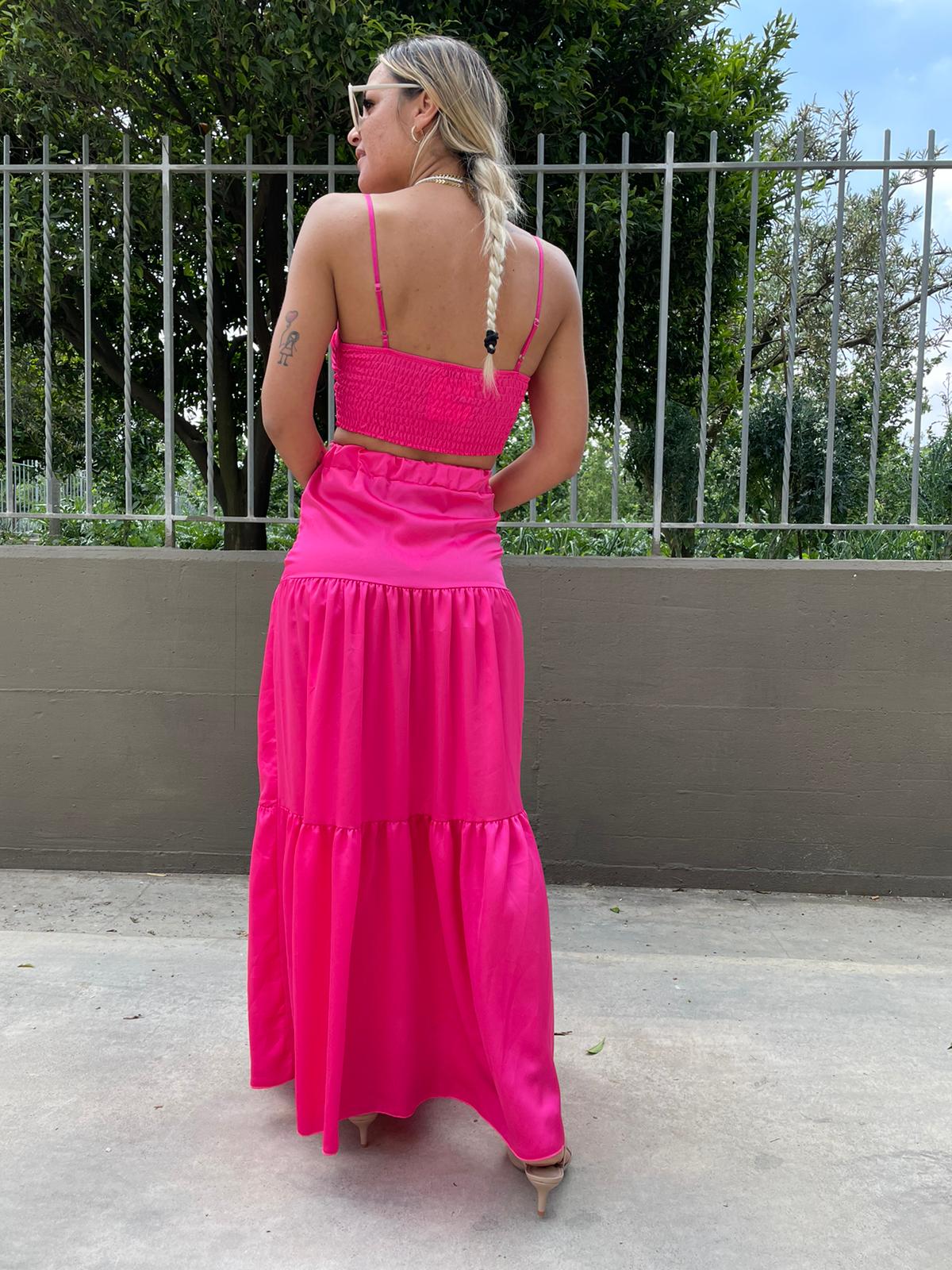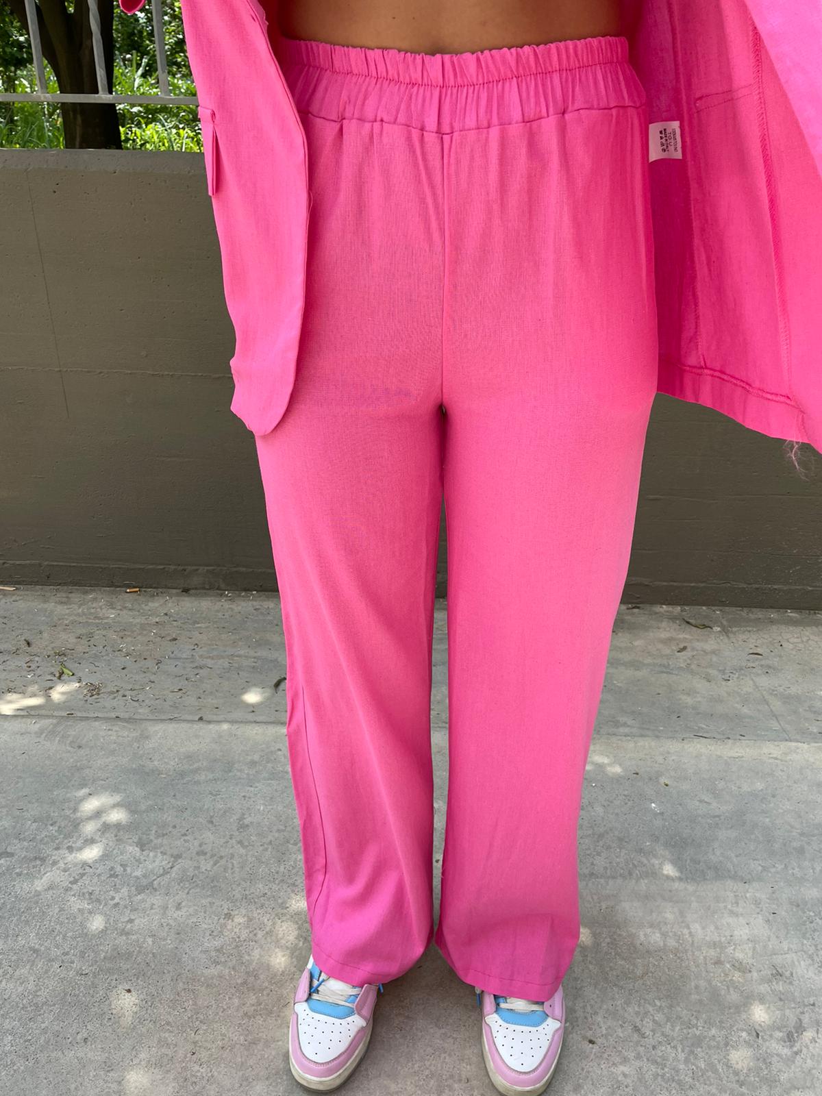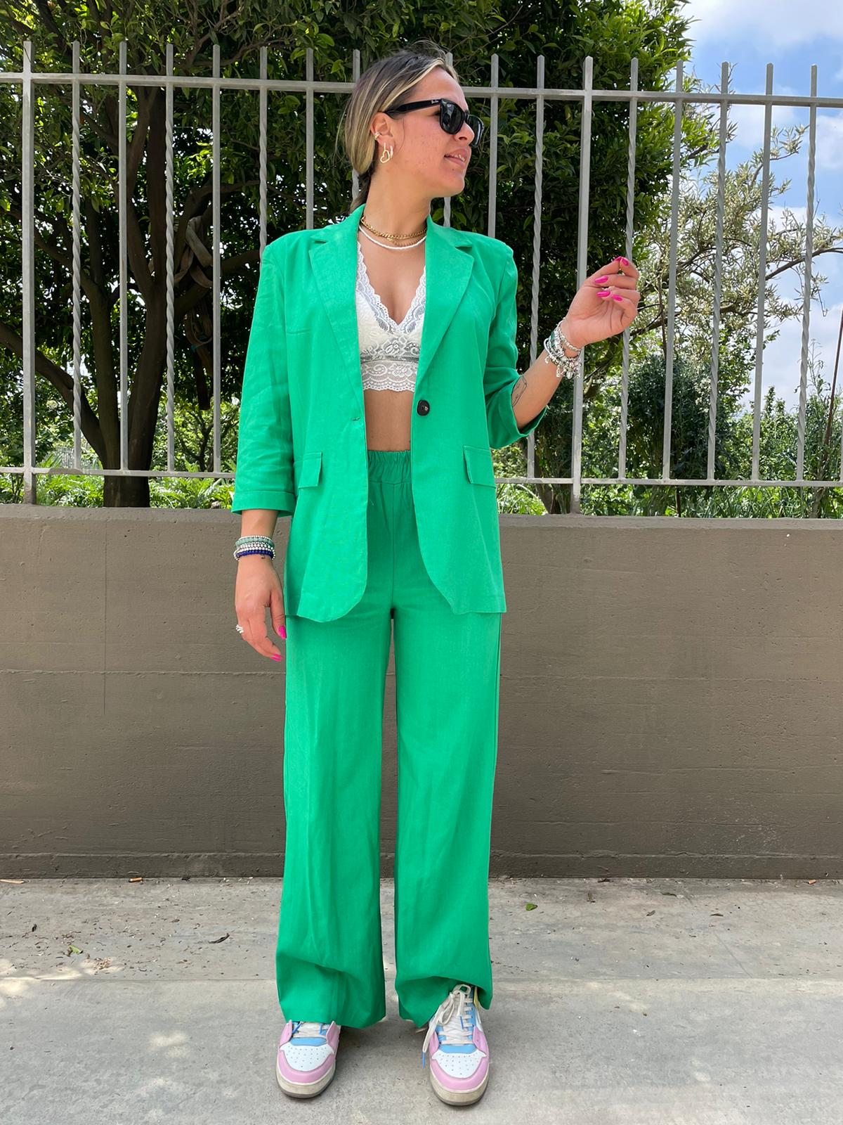 Coordinato effetto seta con pantalone palazzo e maglia con spalline