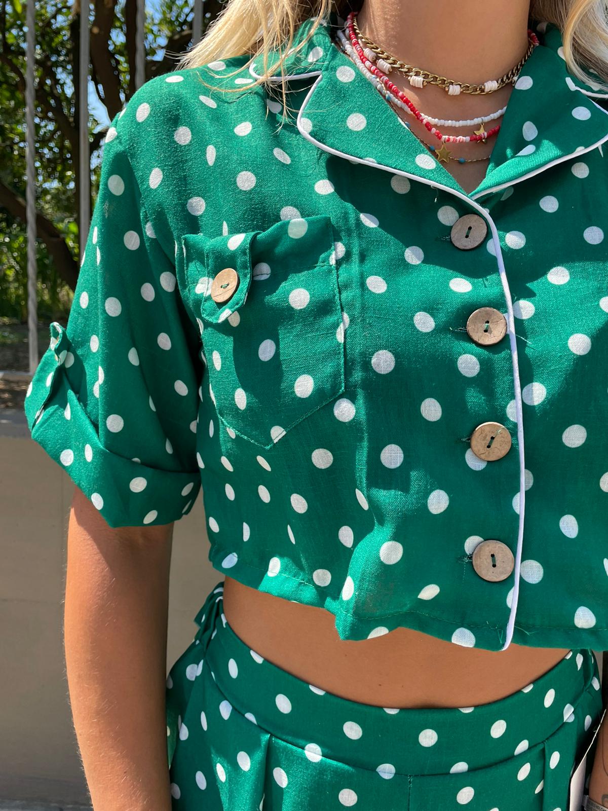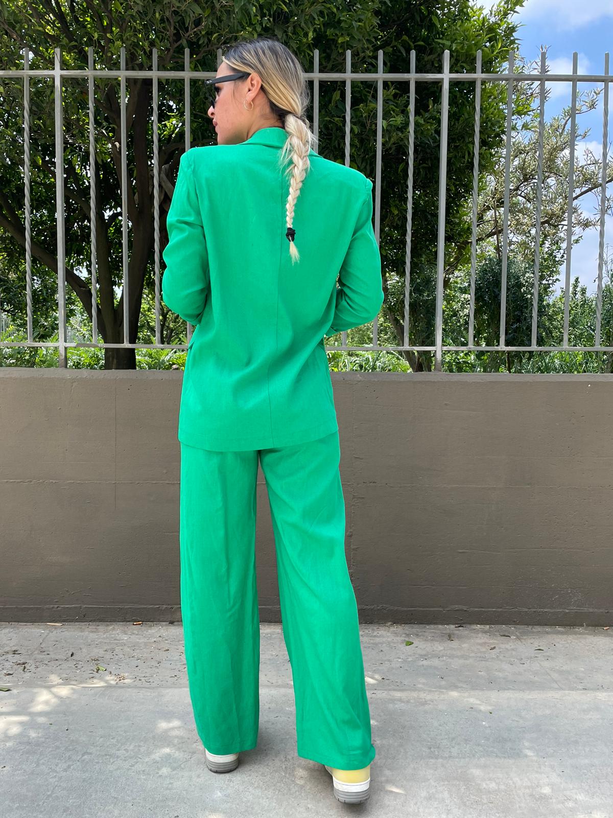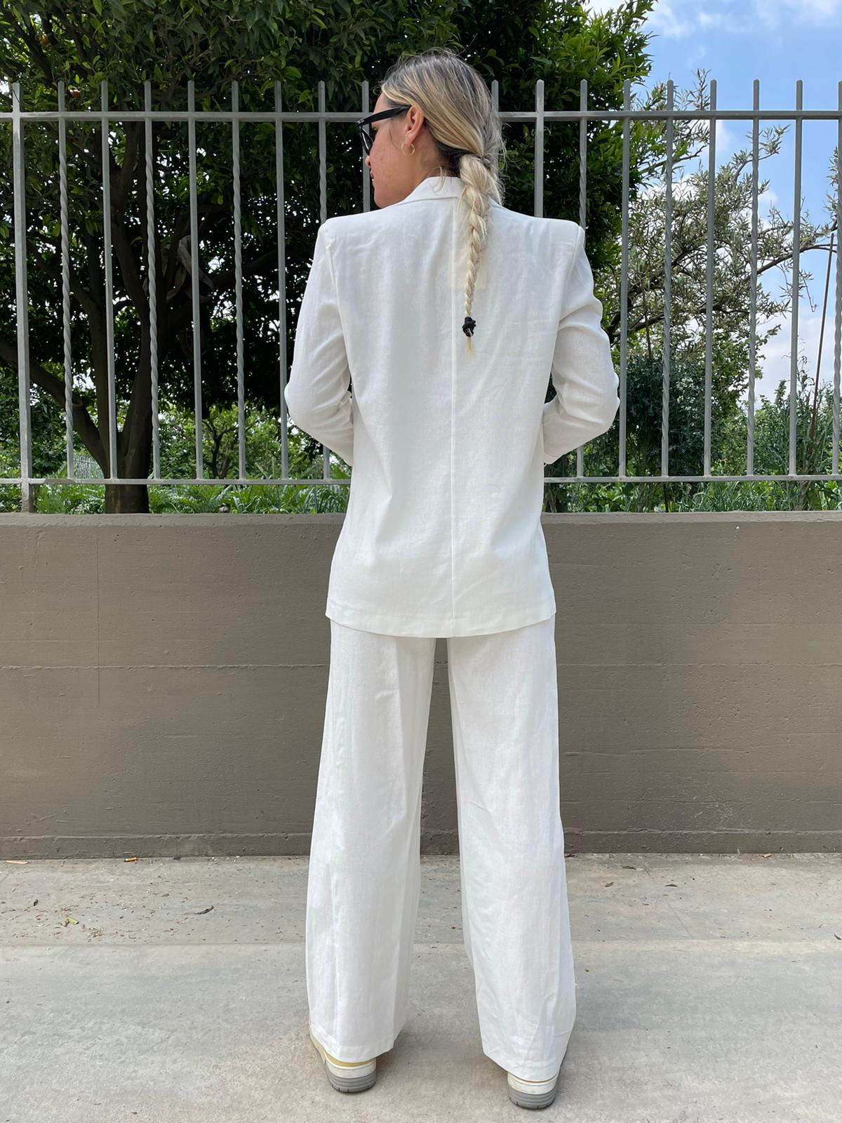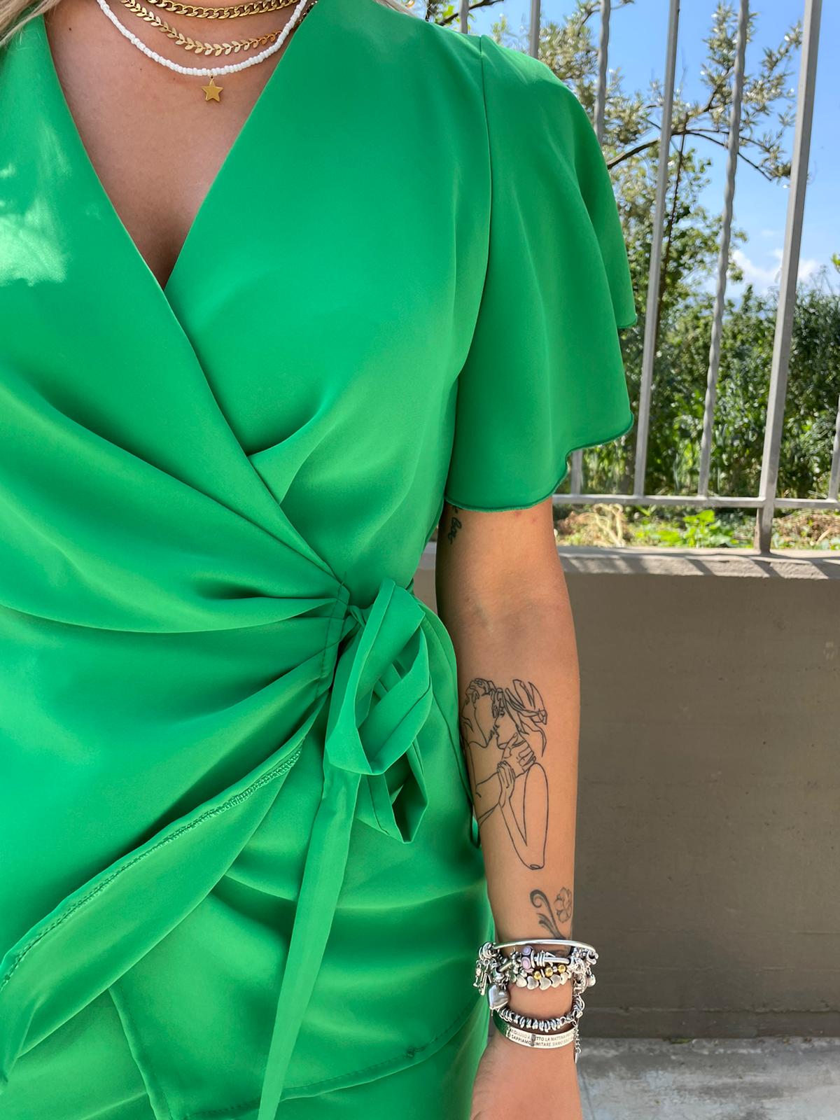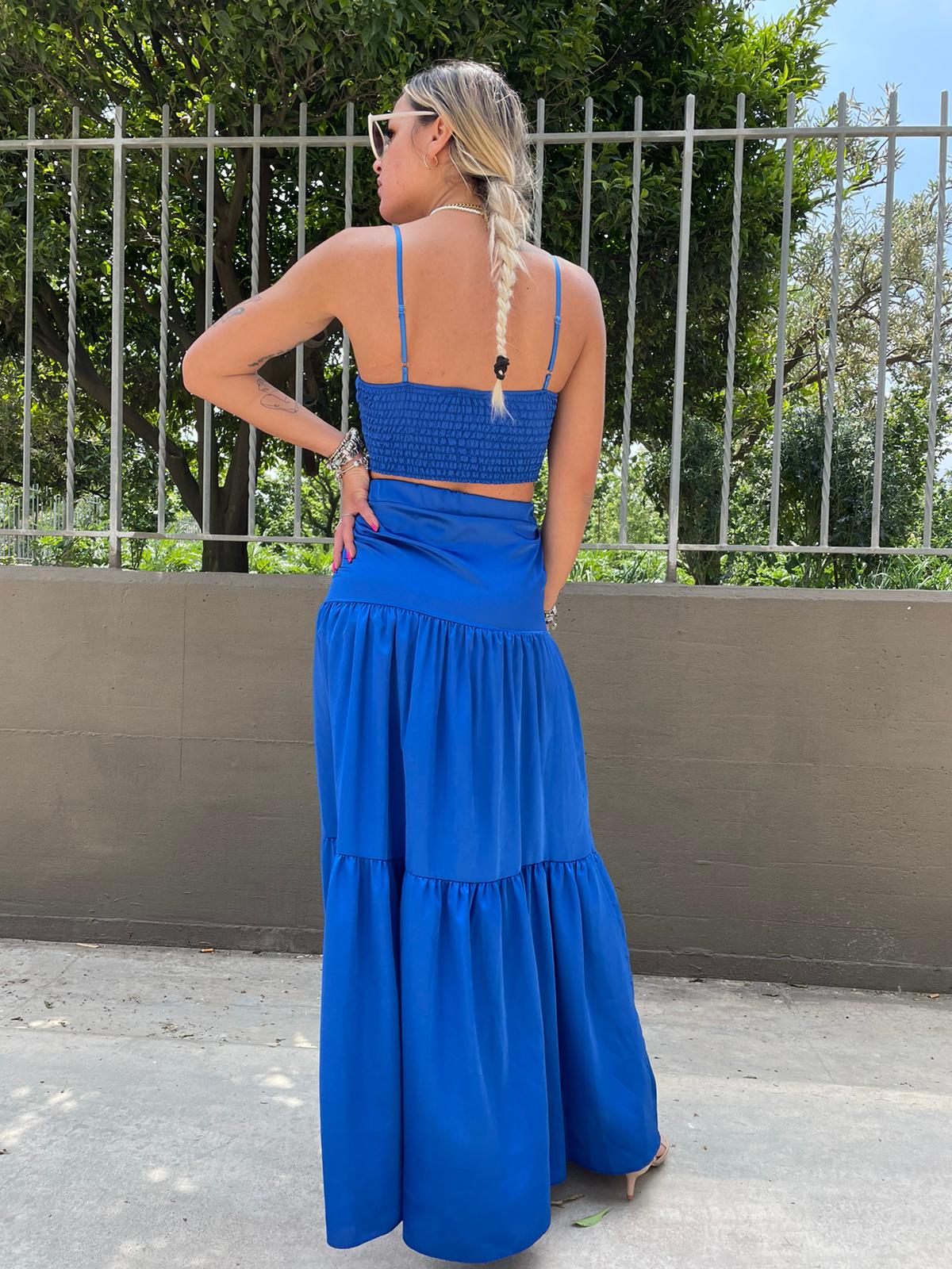 Coordinato effetto seta con pantalone palazzo e maglia con spalline