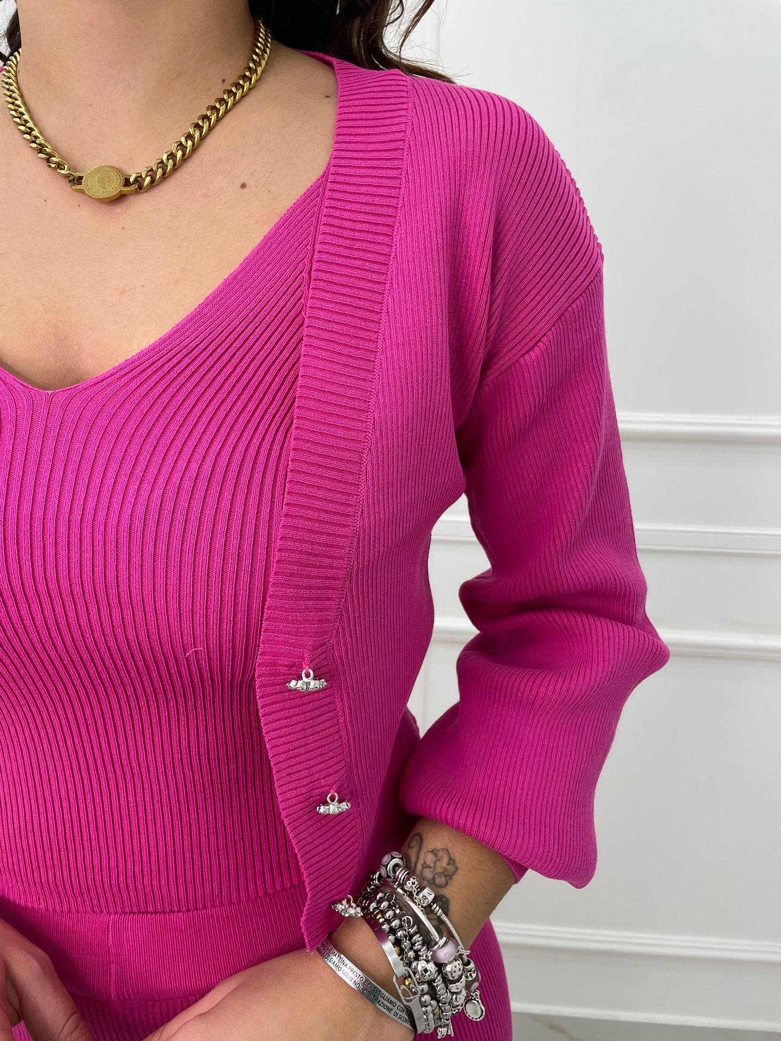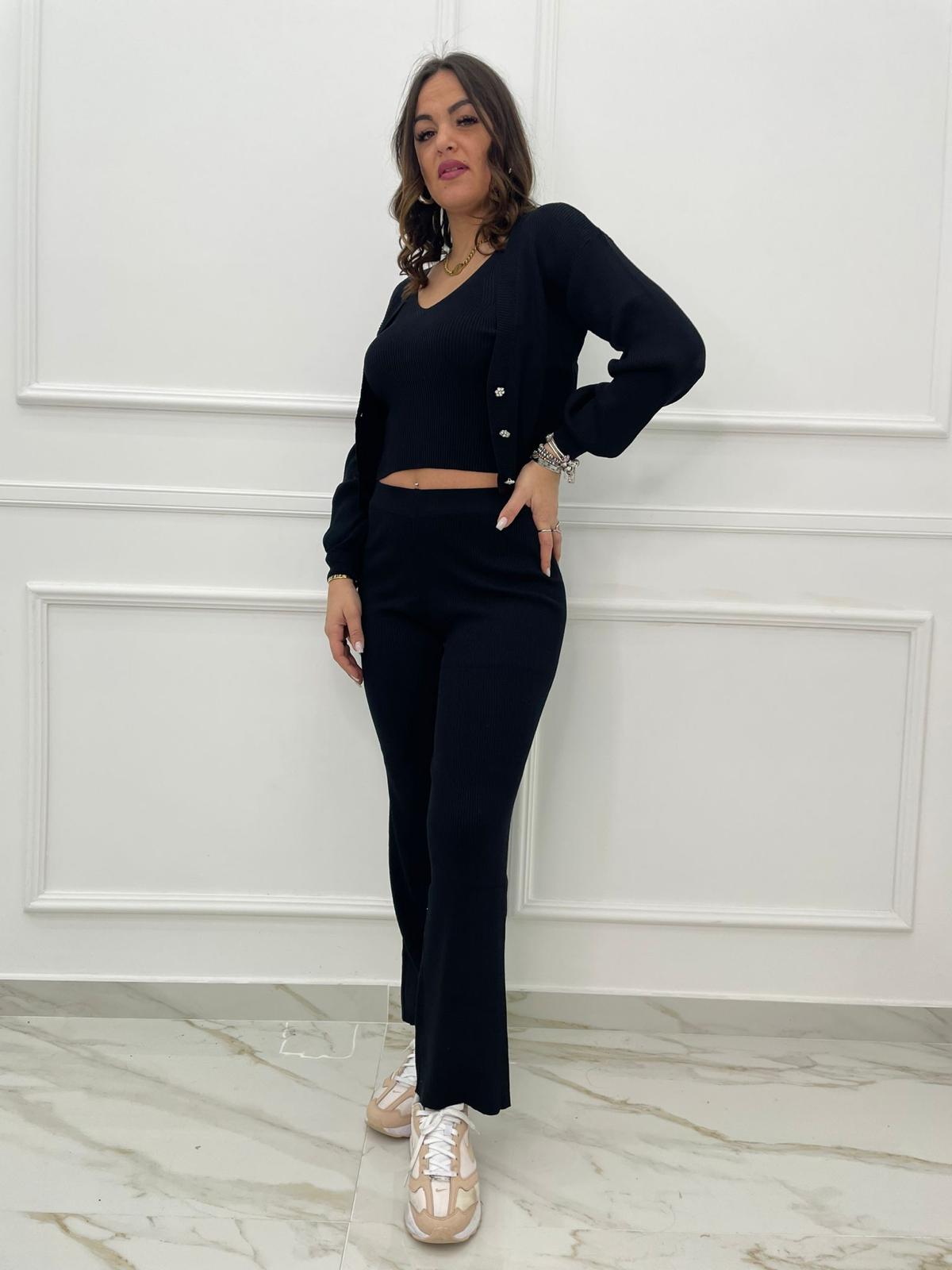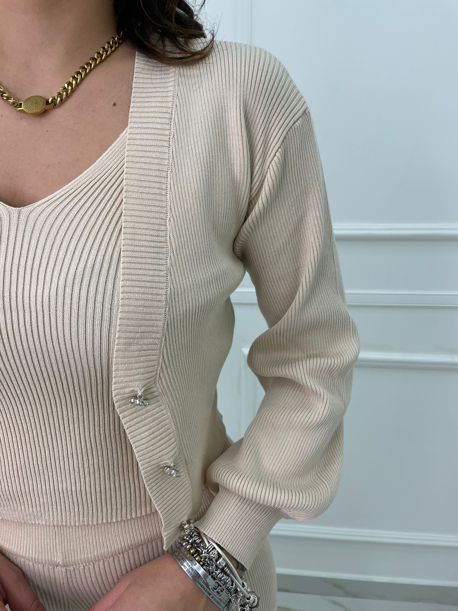Coordinato in filo 3 pezzi con cardigan swarovski