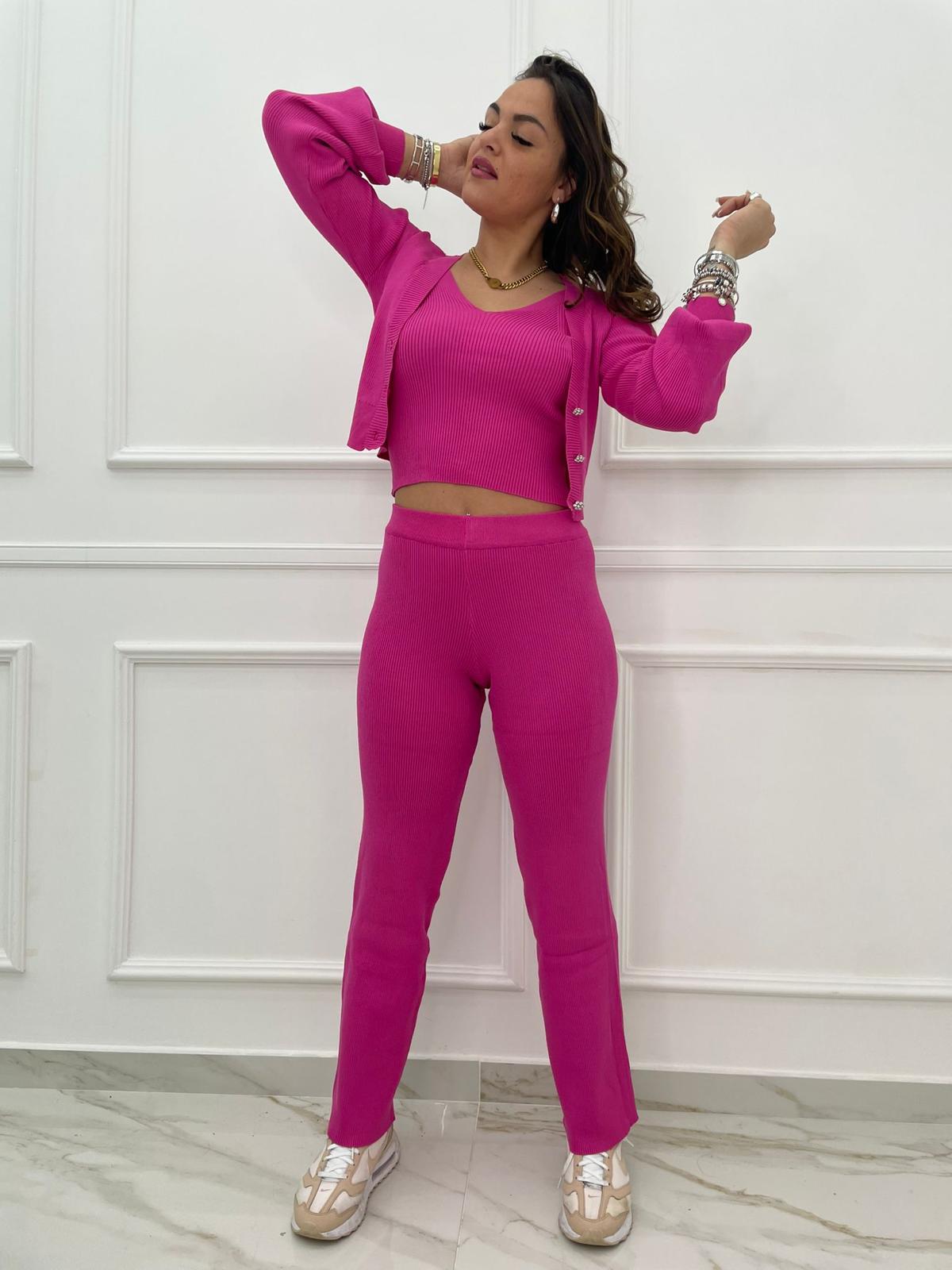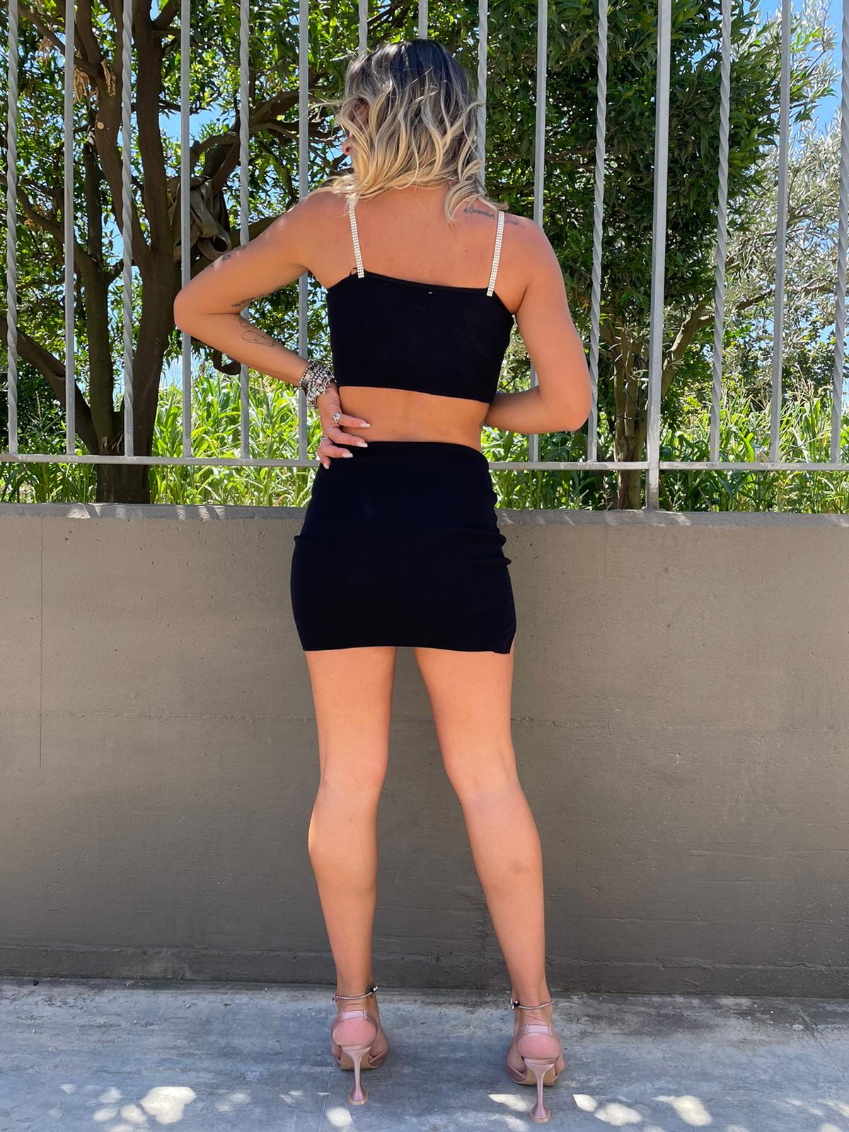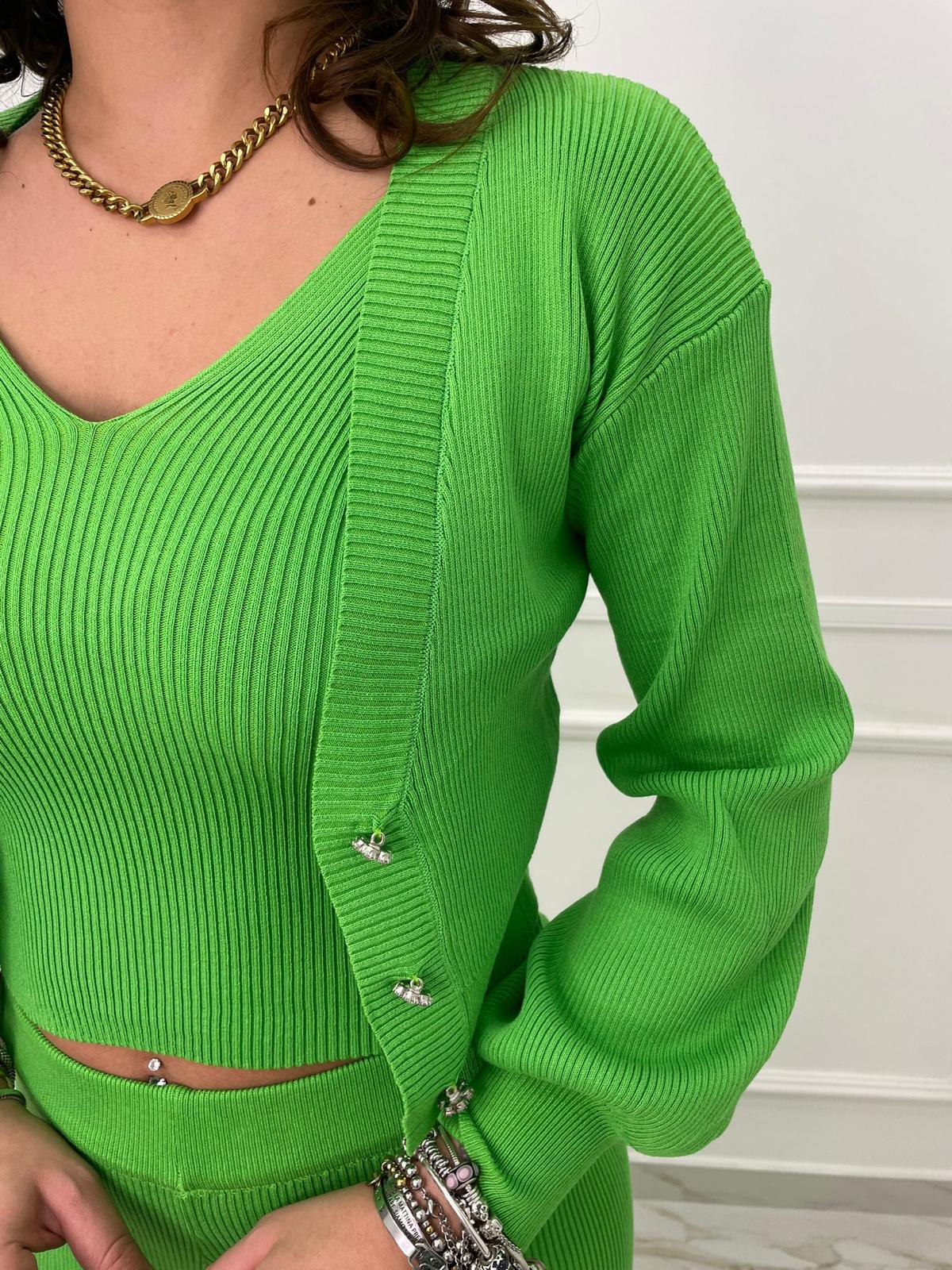 Coordinato in filo 3 pezzi con cardigan swarovski