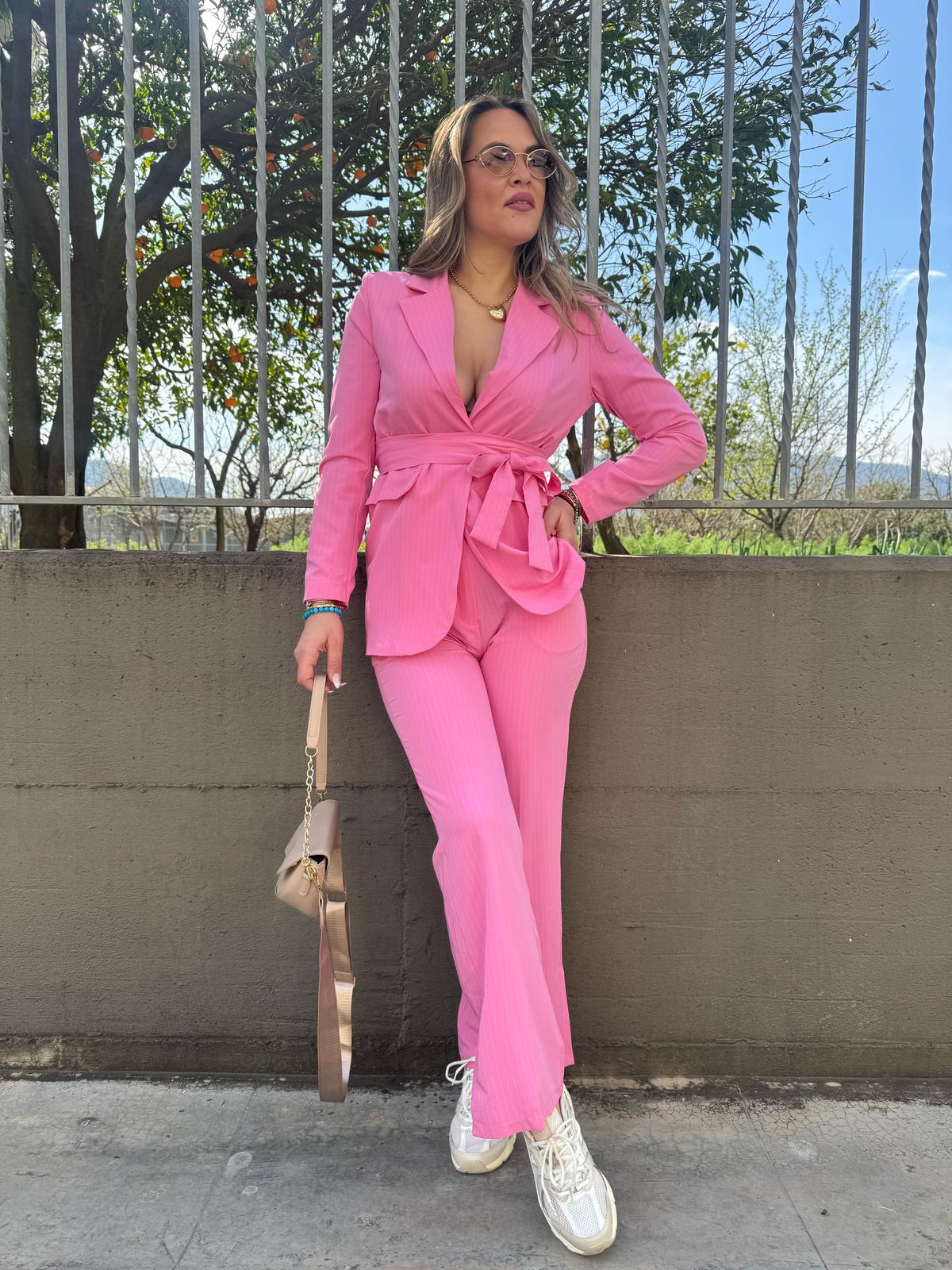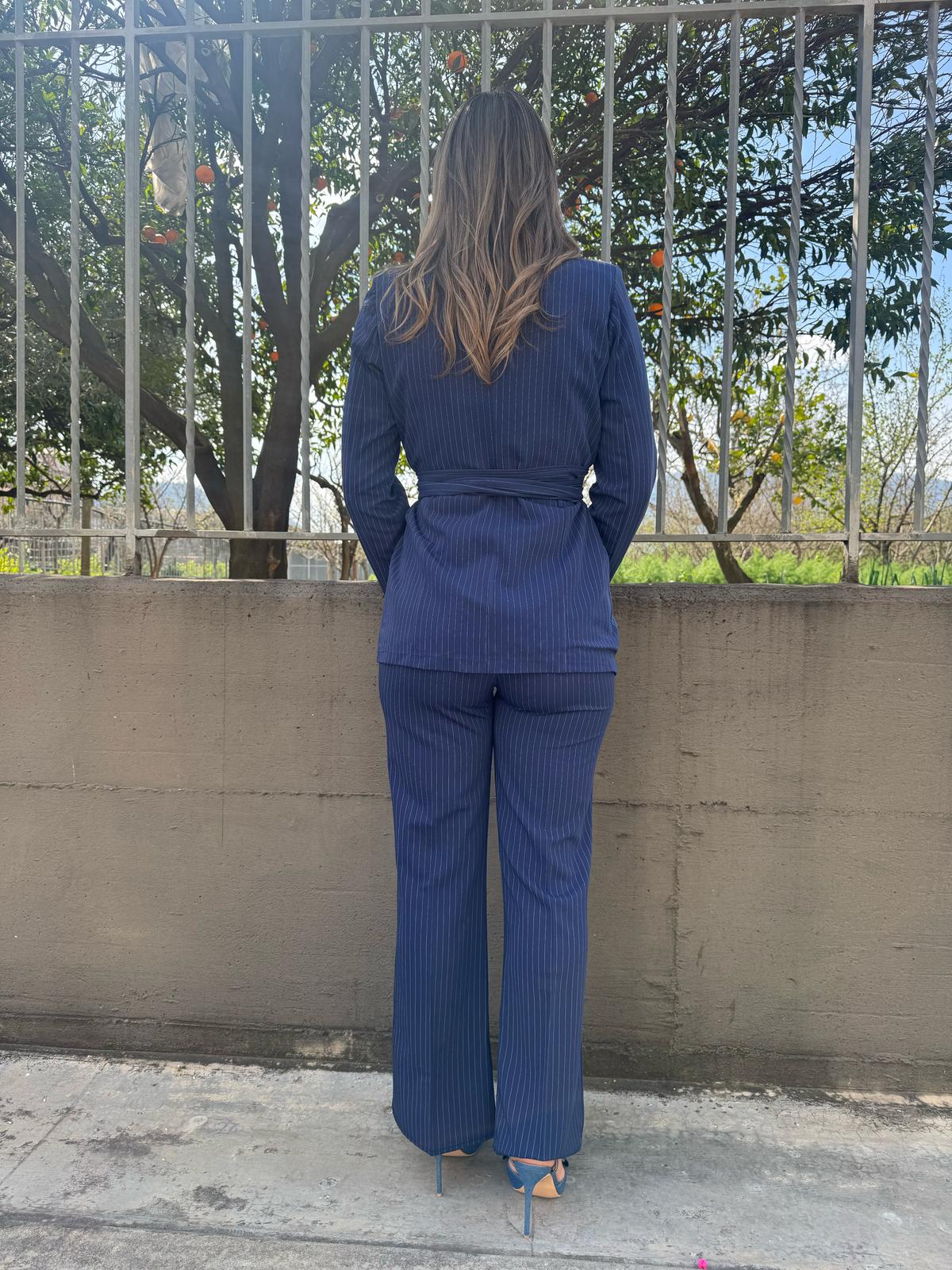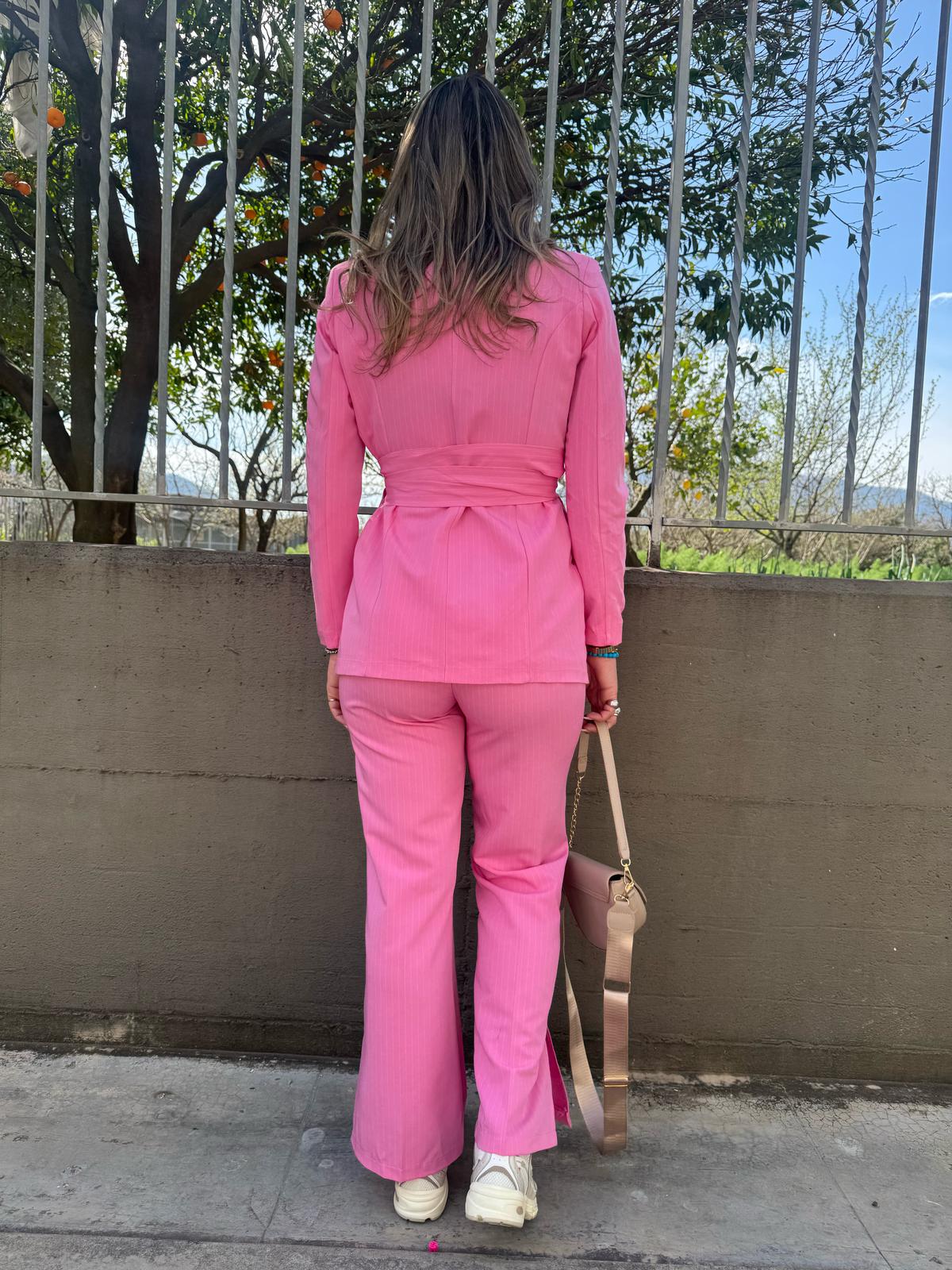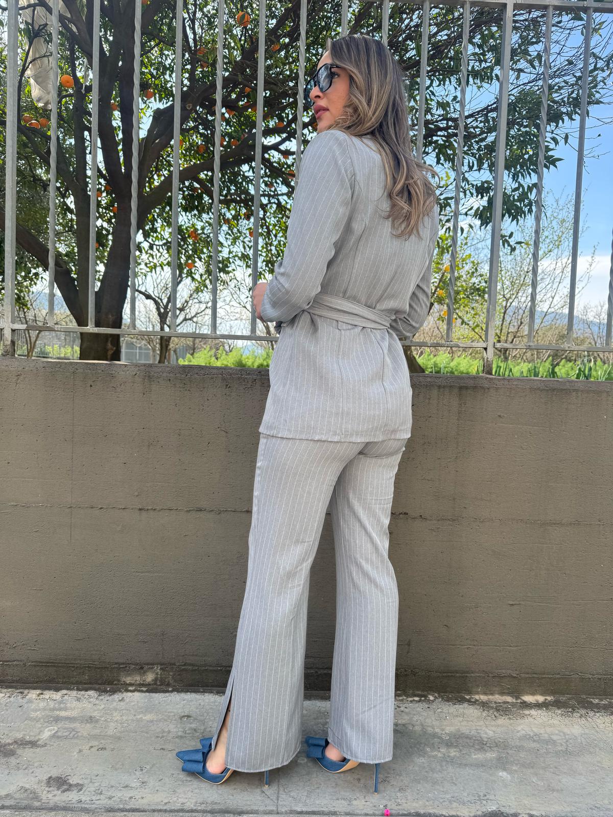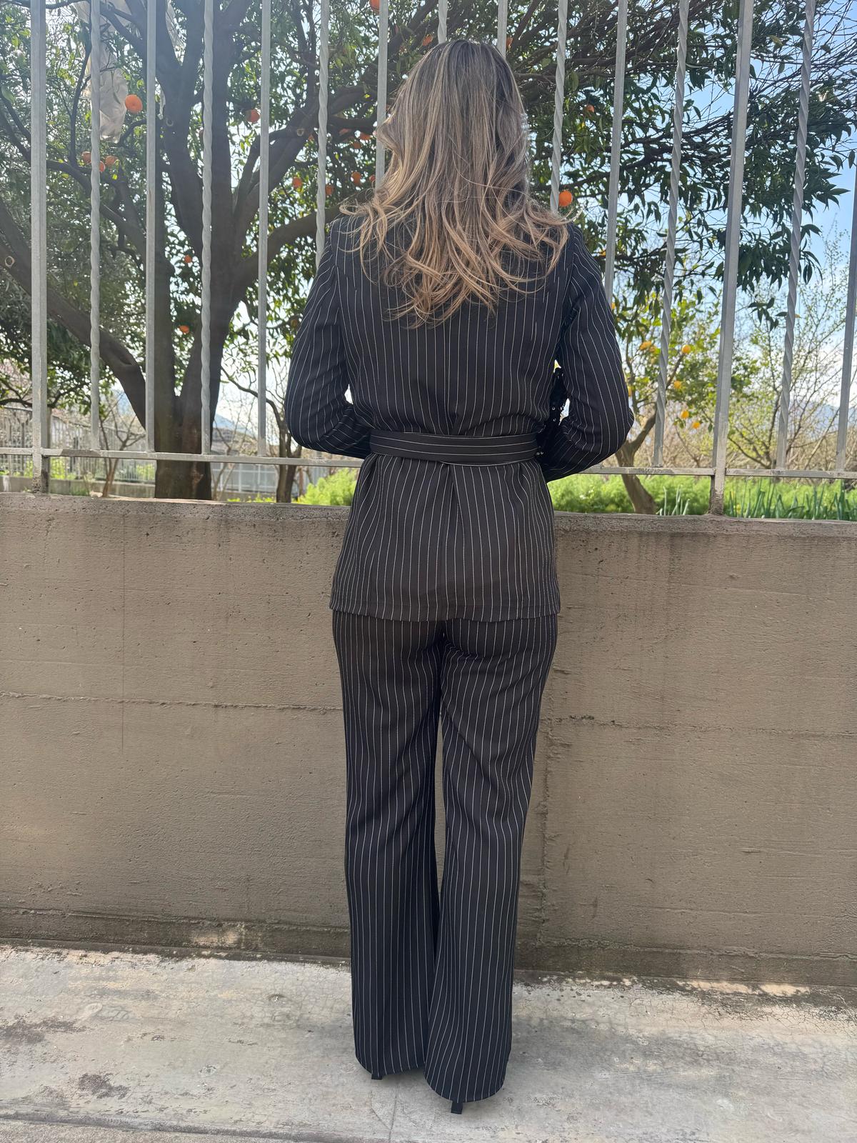 Tailleur 2 pezzi a righe con pantalone a zampa
