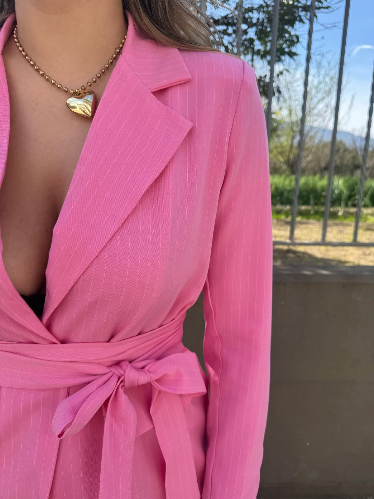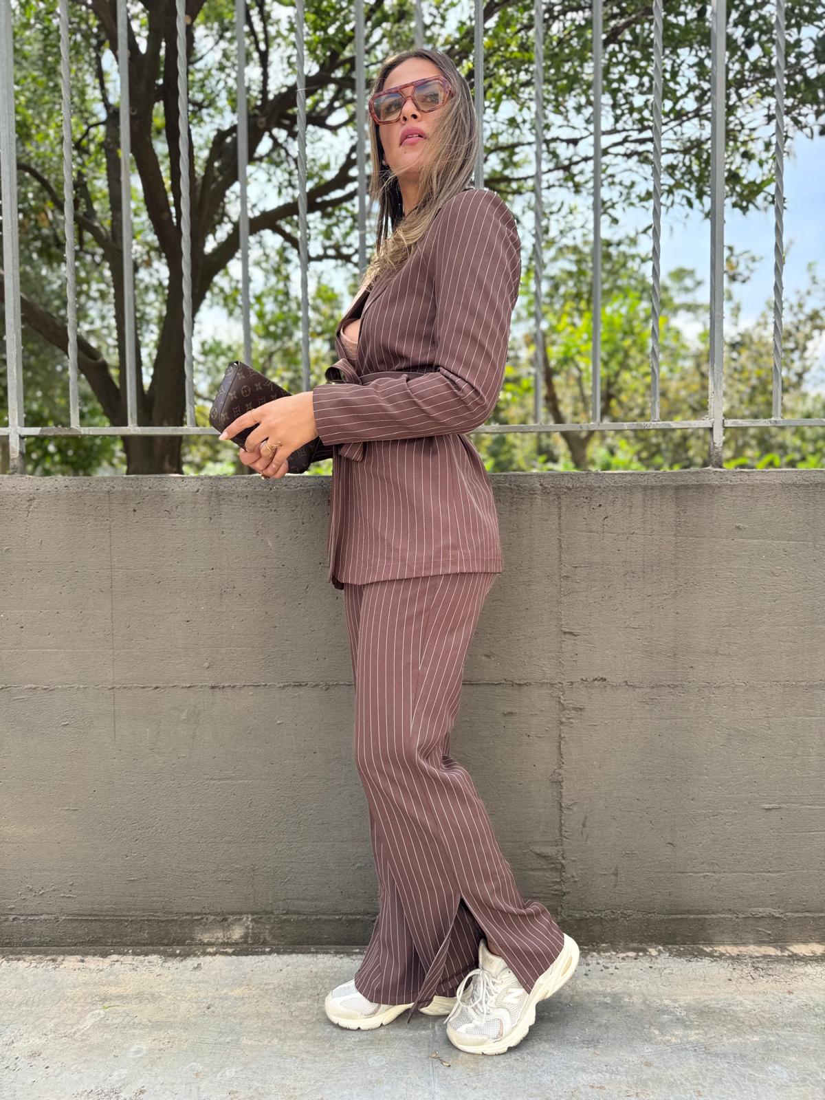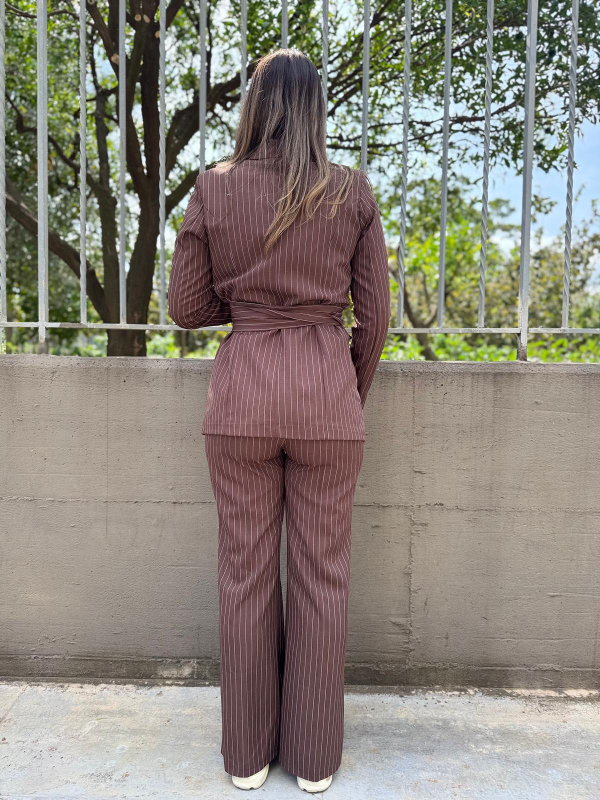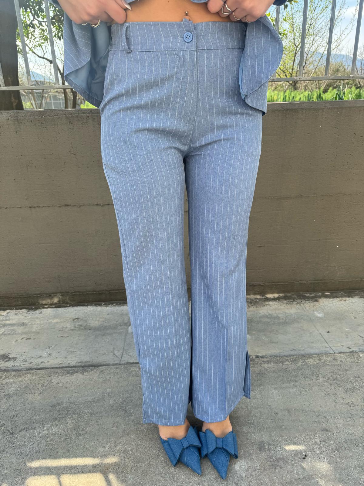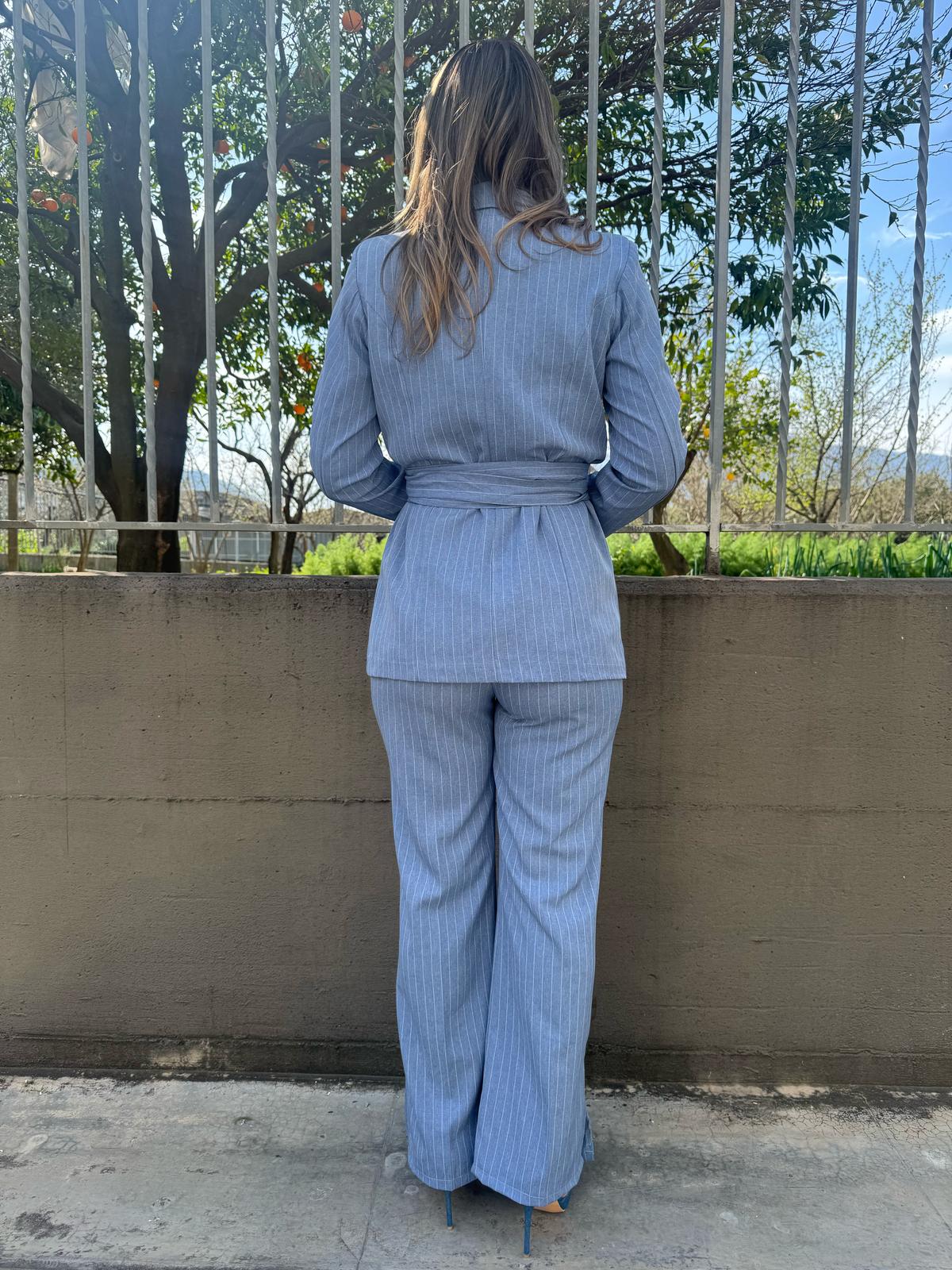 Tailleur 2 pezzi a righe con pantalone a zampa
