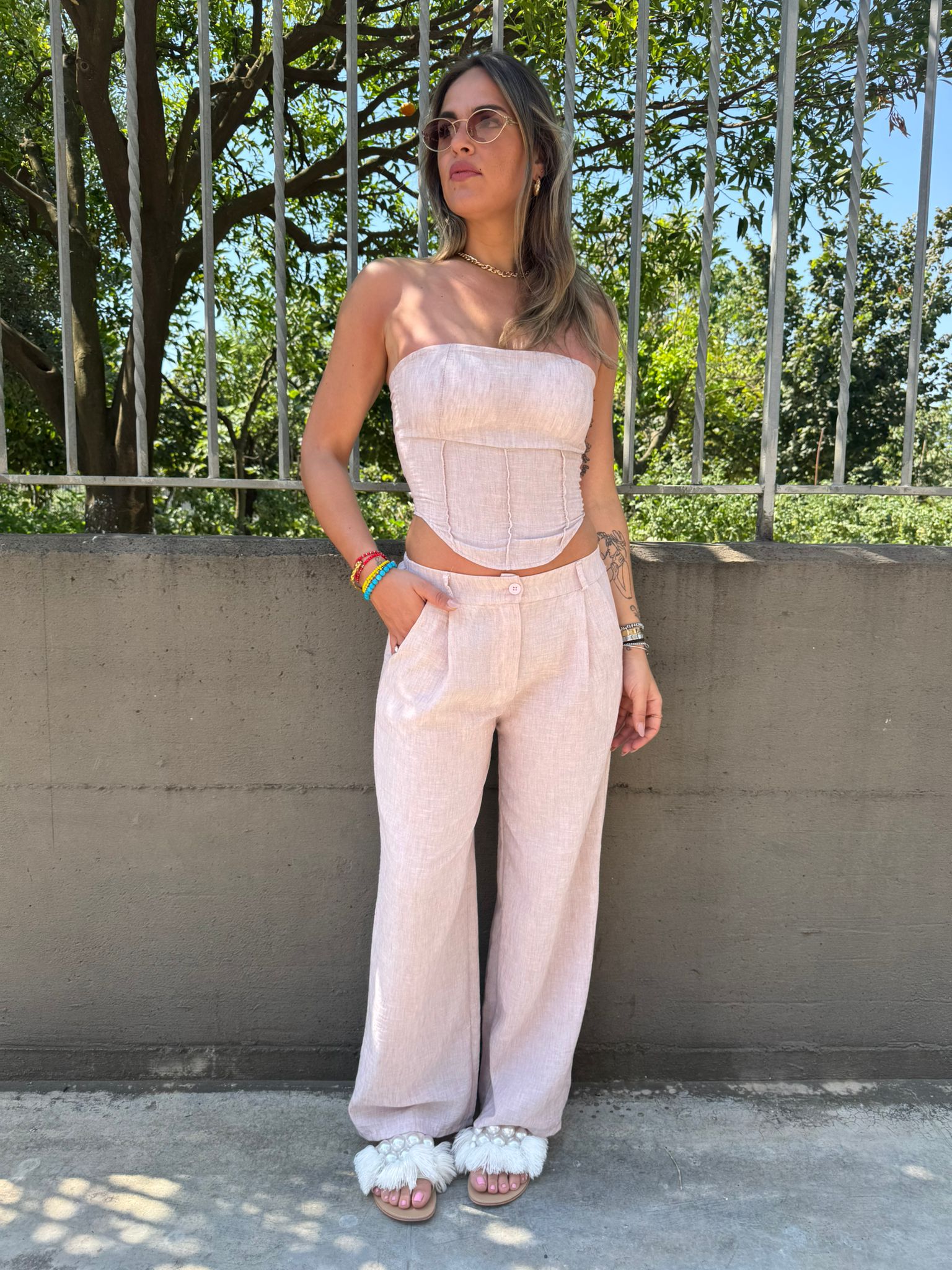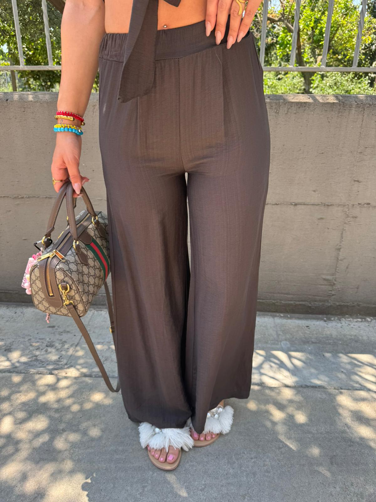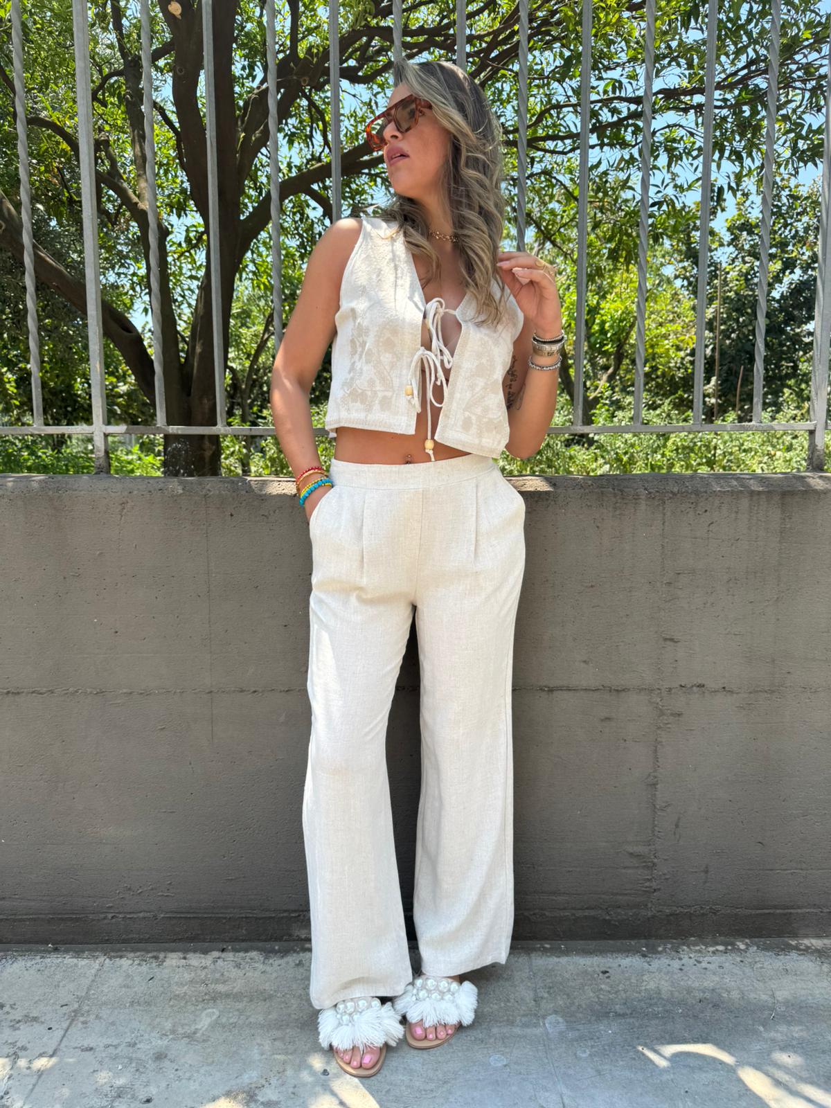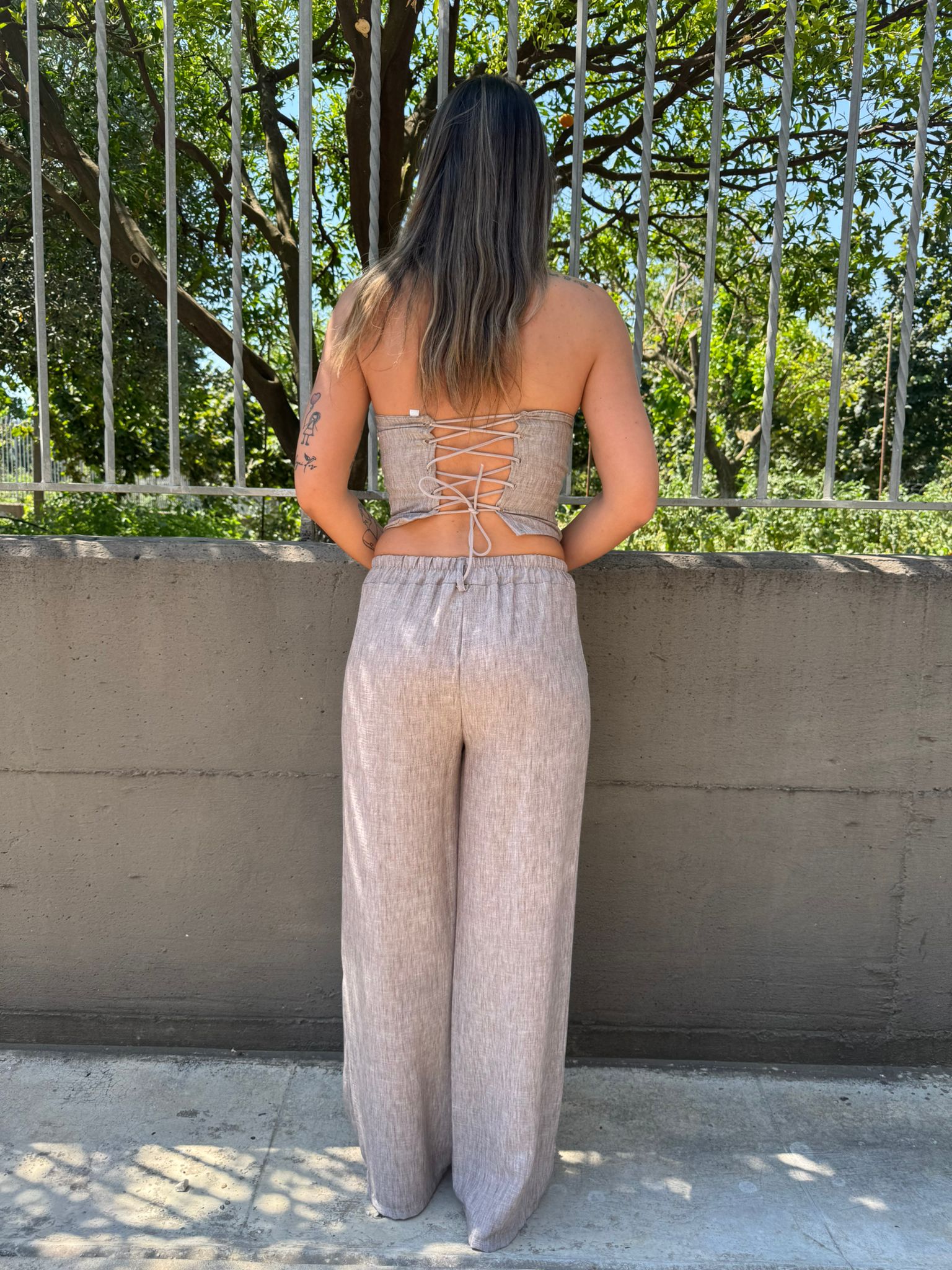 Coordinato 2 pezzi effetto lino con pantalone palazzo