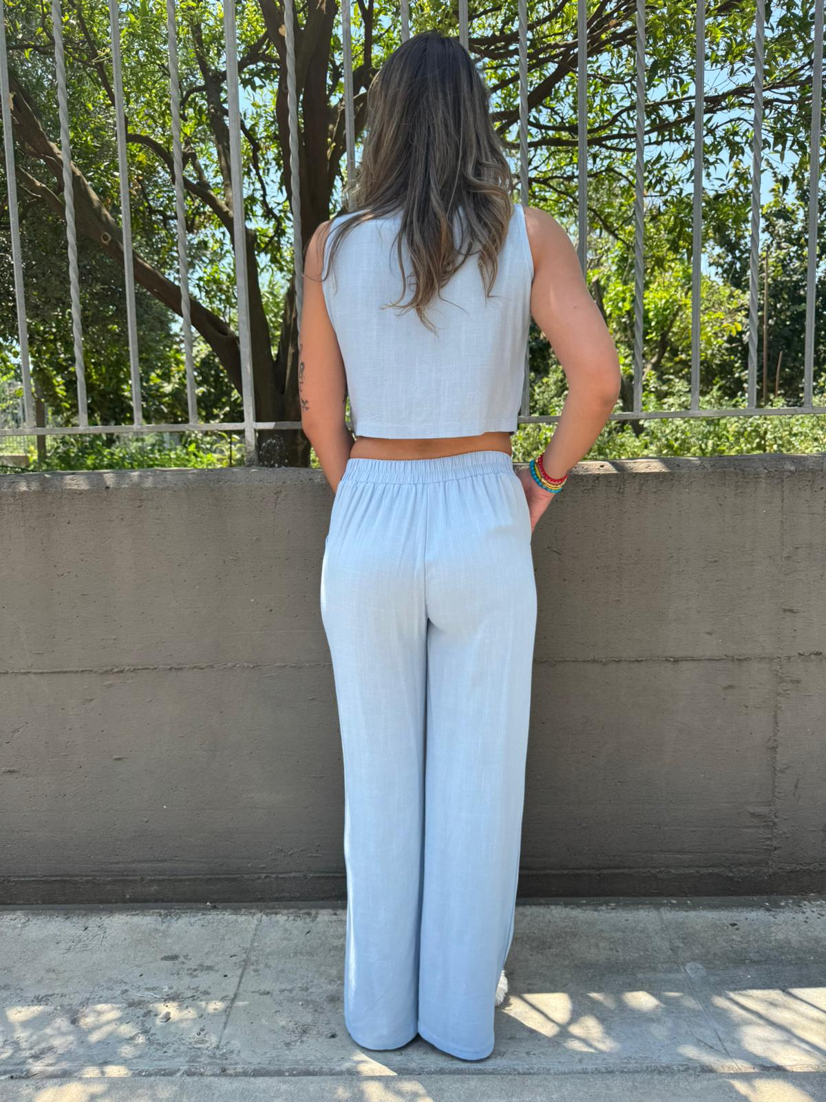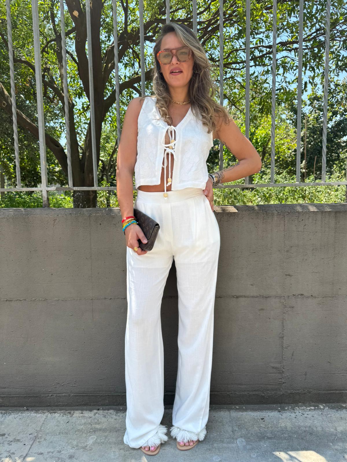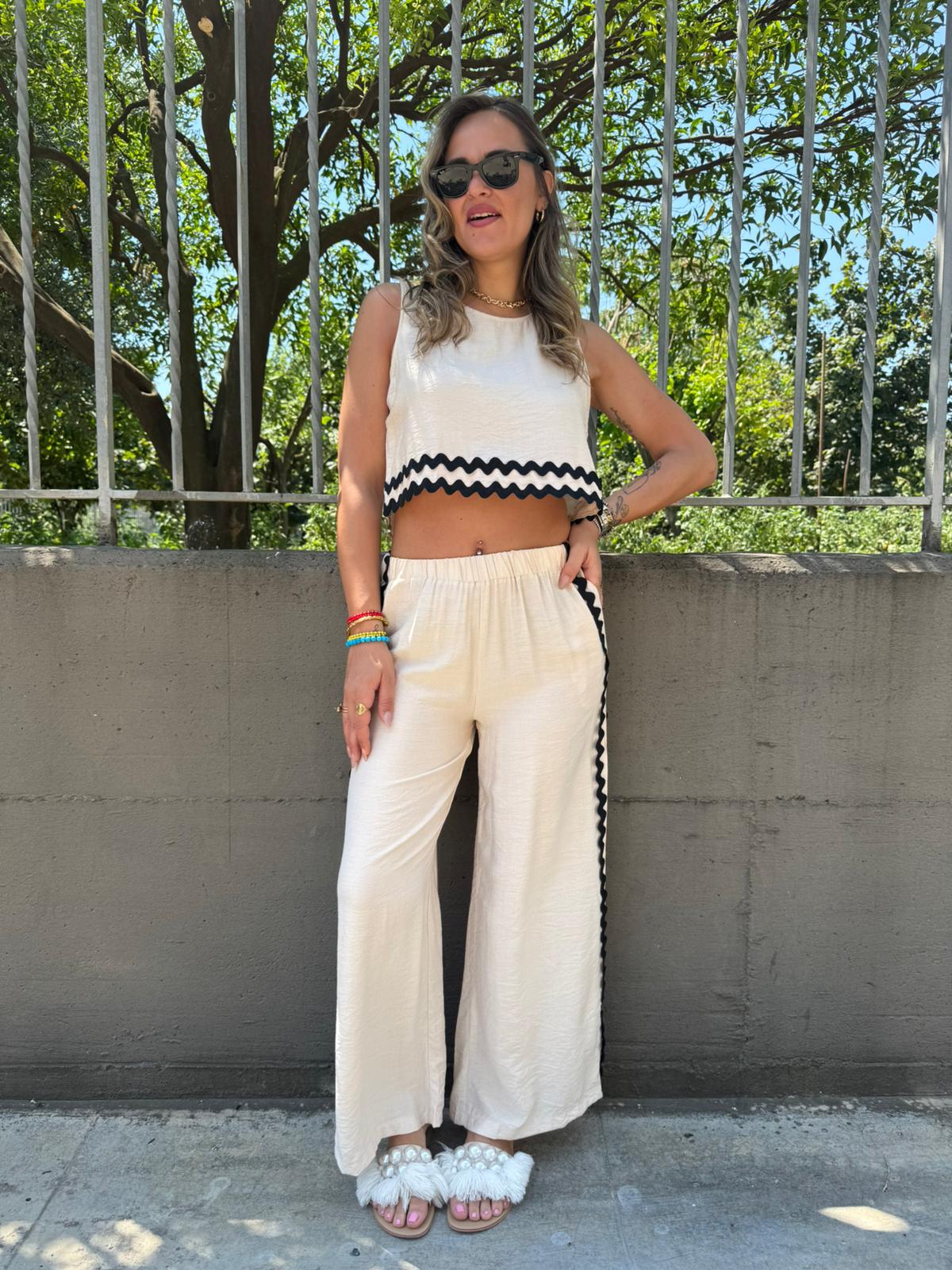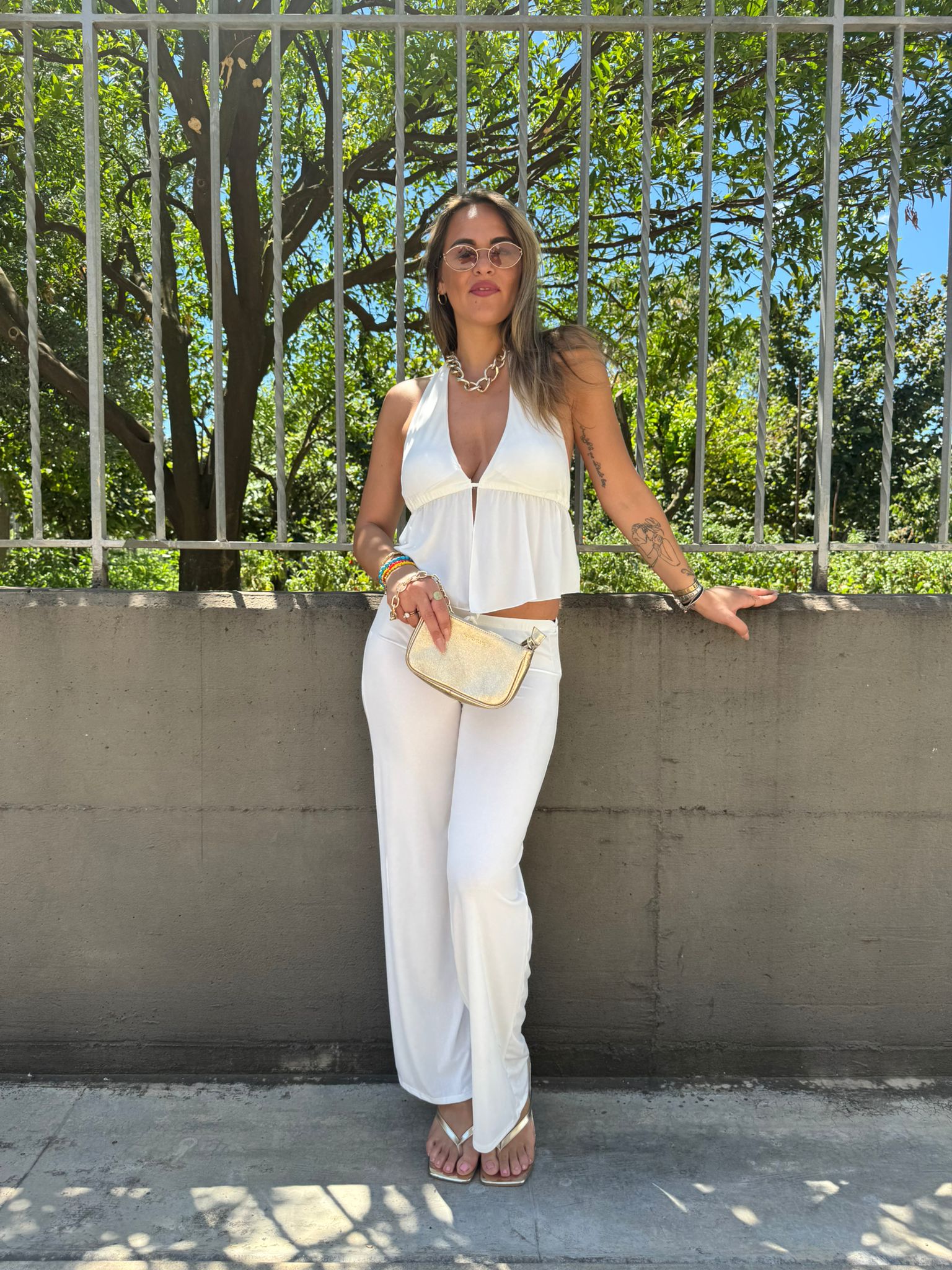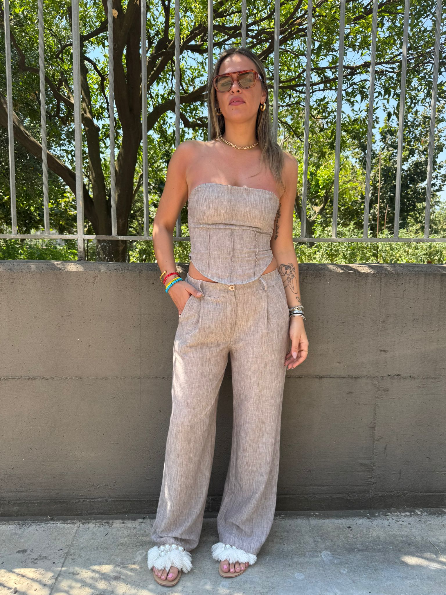 Coordinato 2 pezzi effetto lino con pantalone palazzo