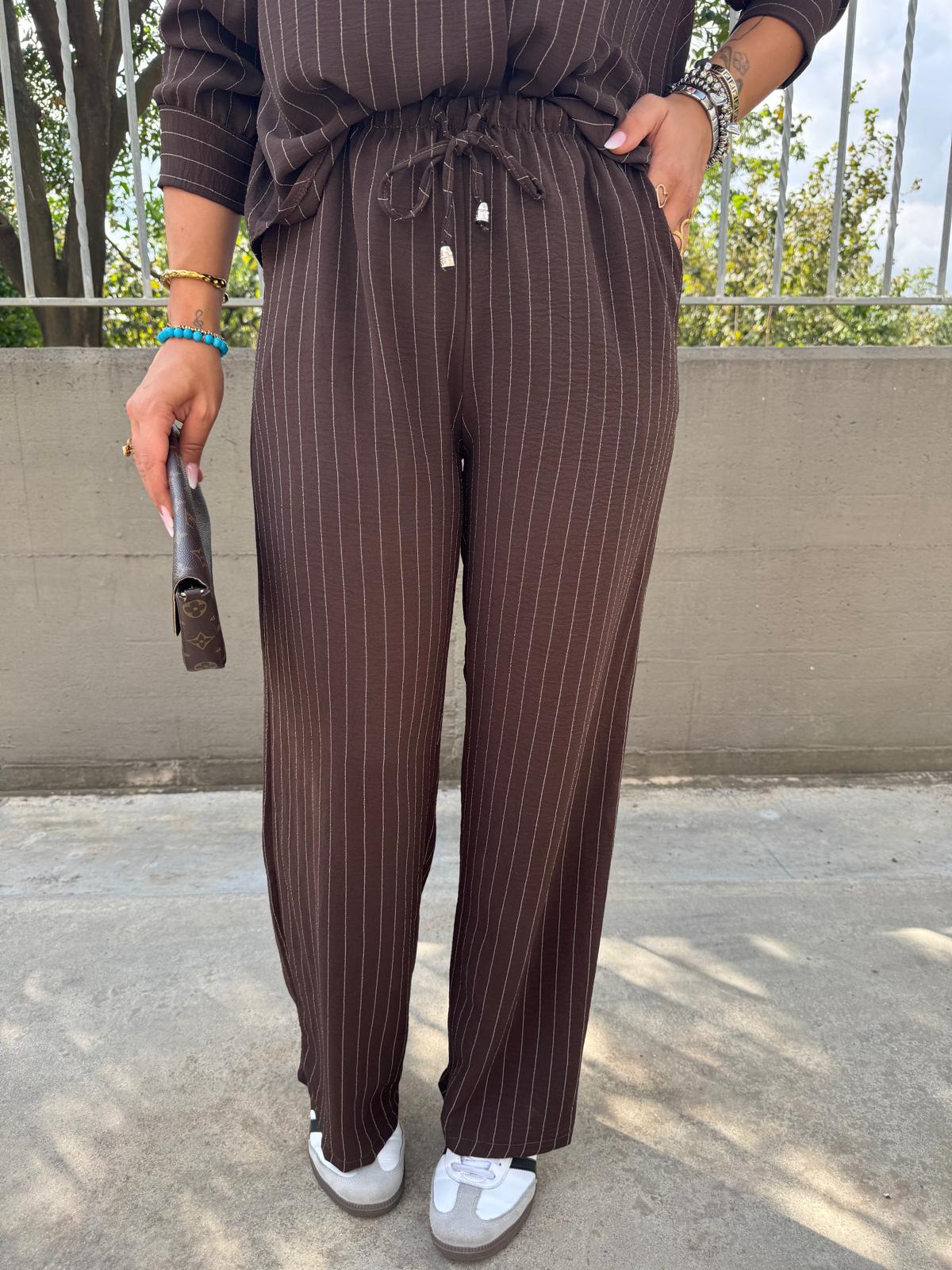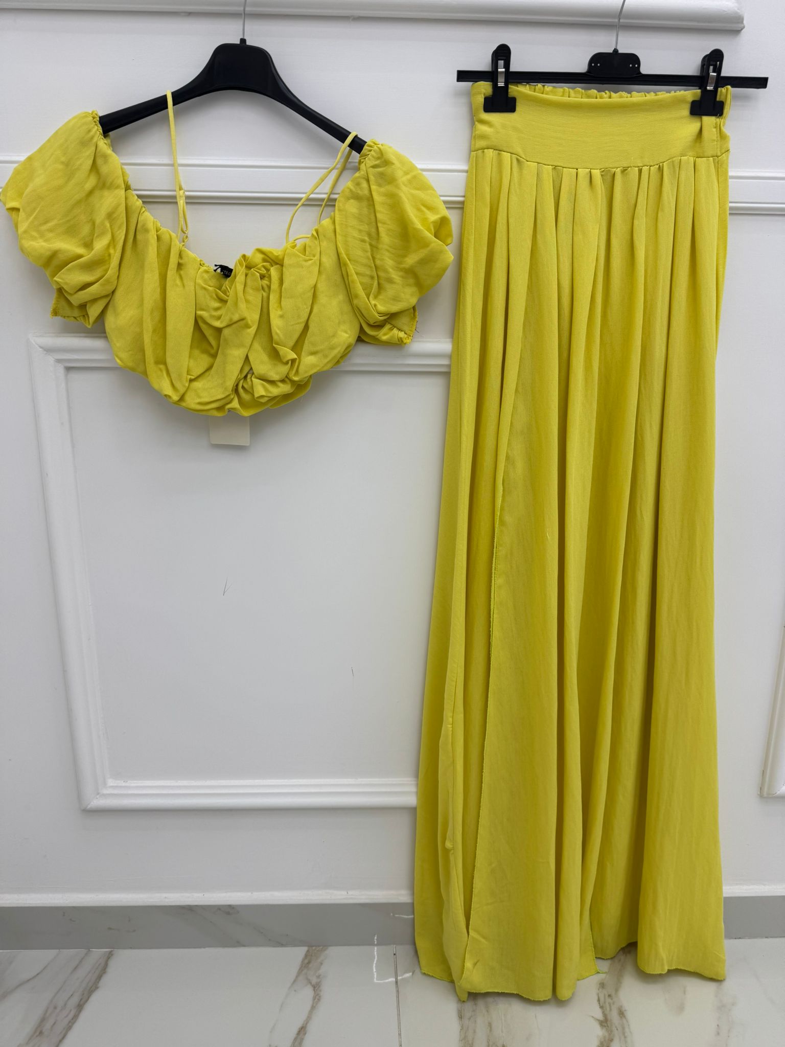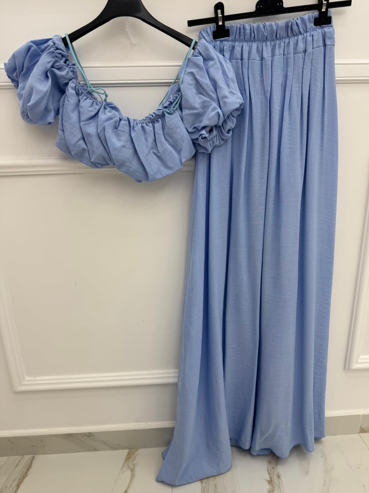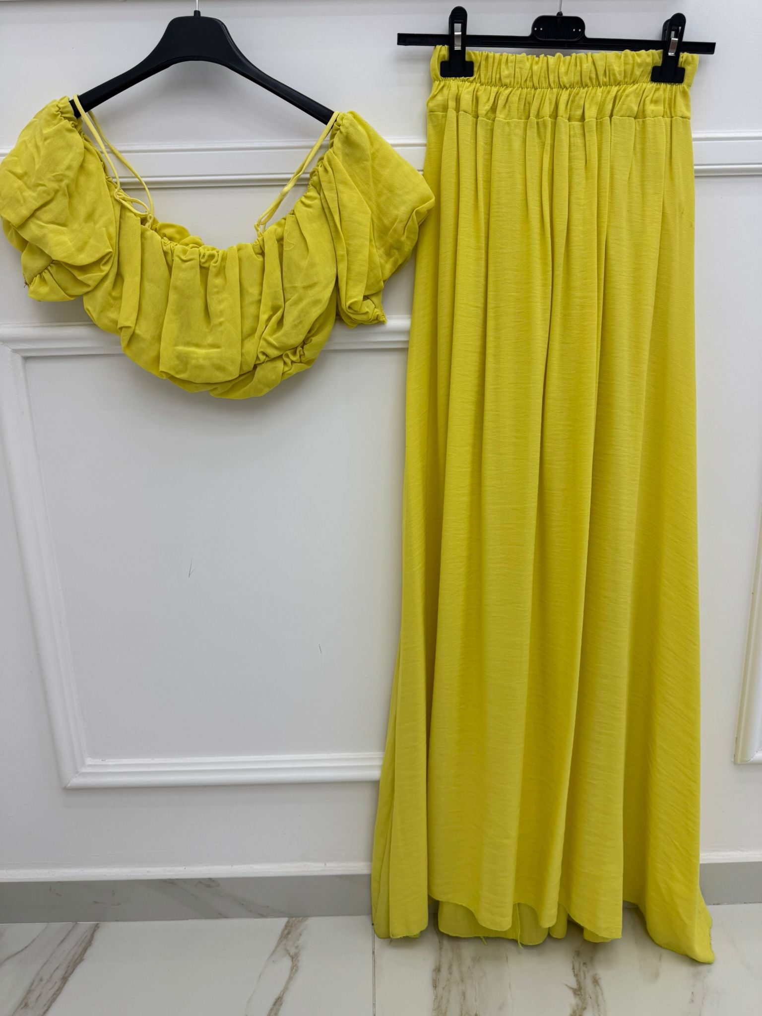Coordinato 2 pezzi effetto lino con pantalone palazzo