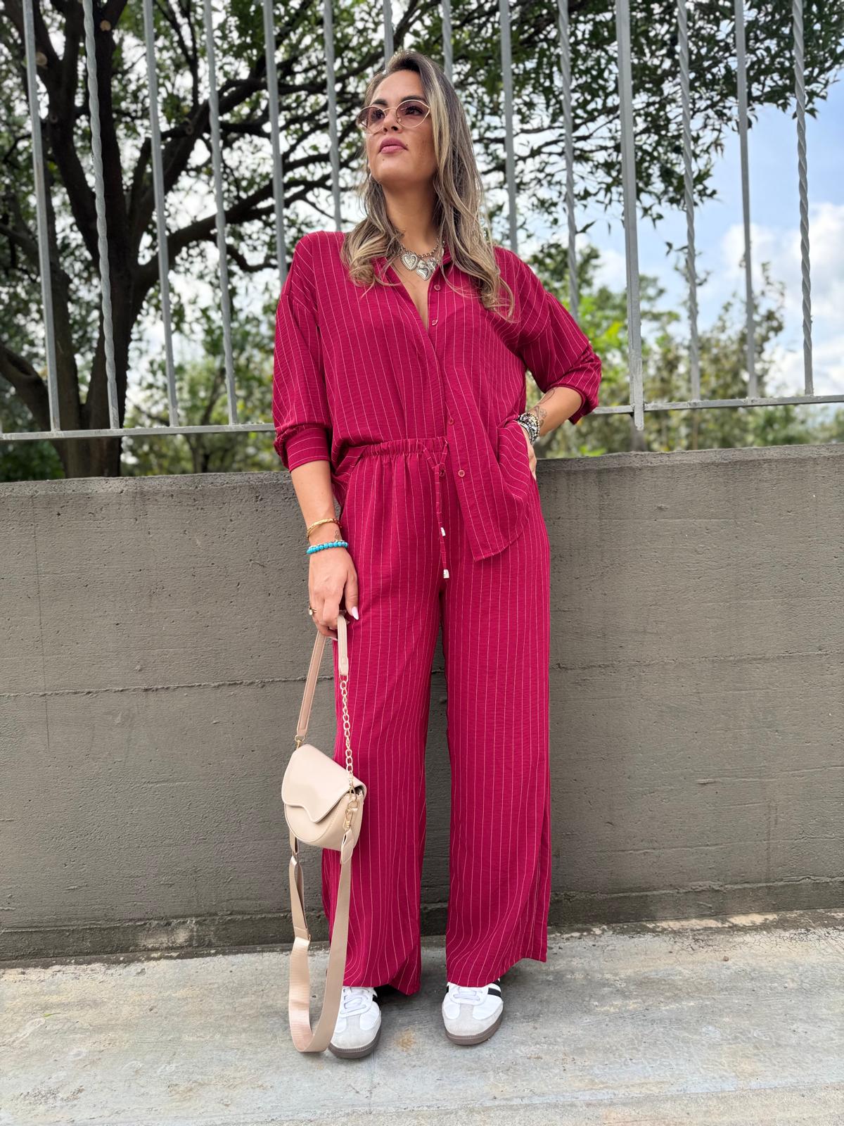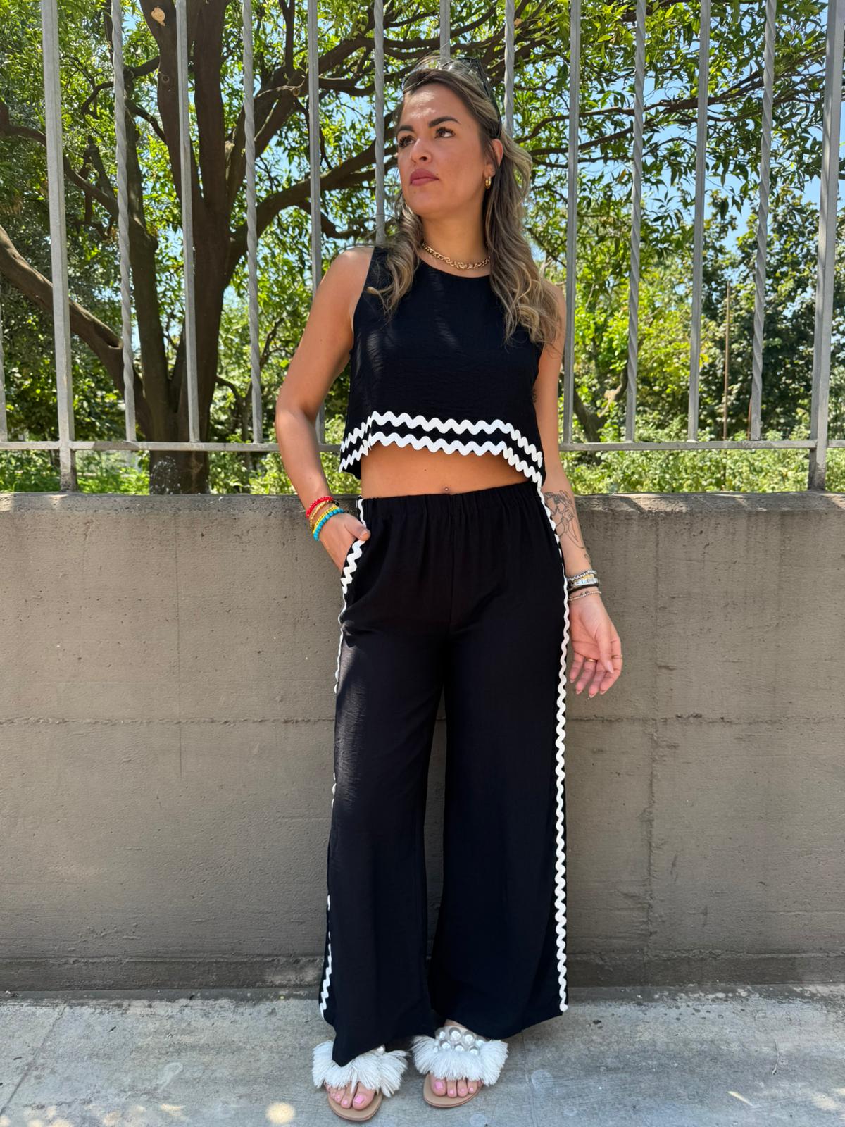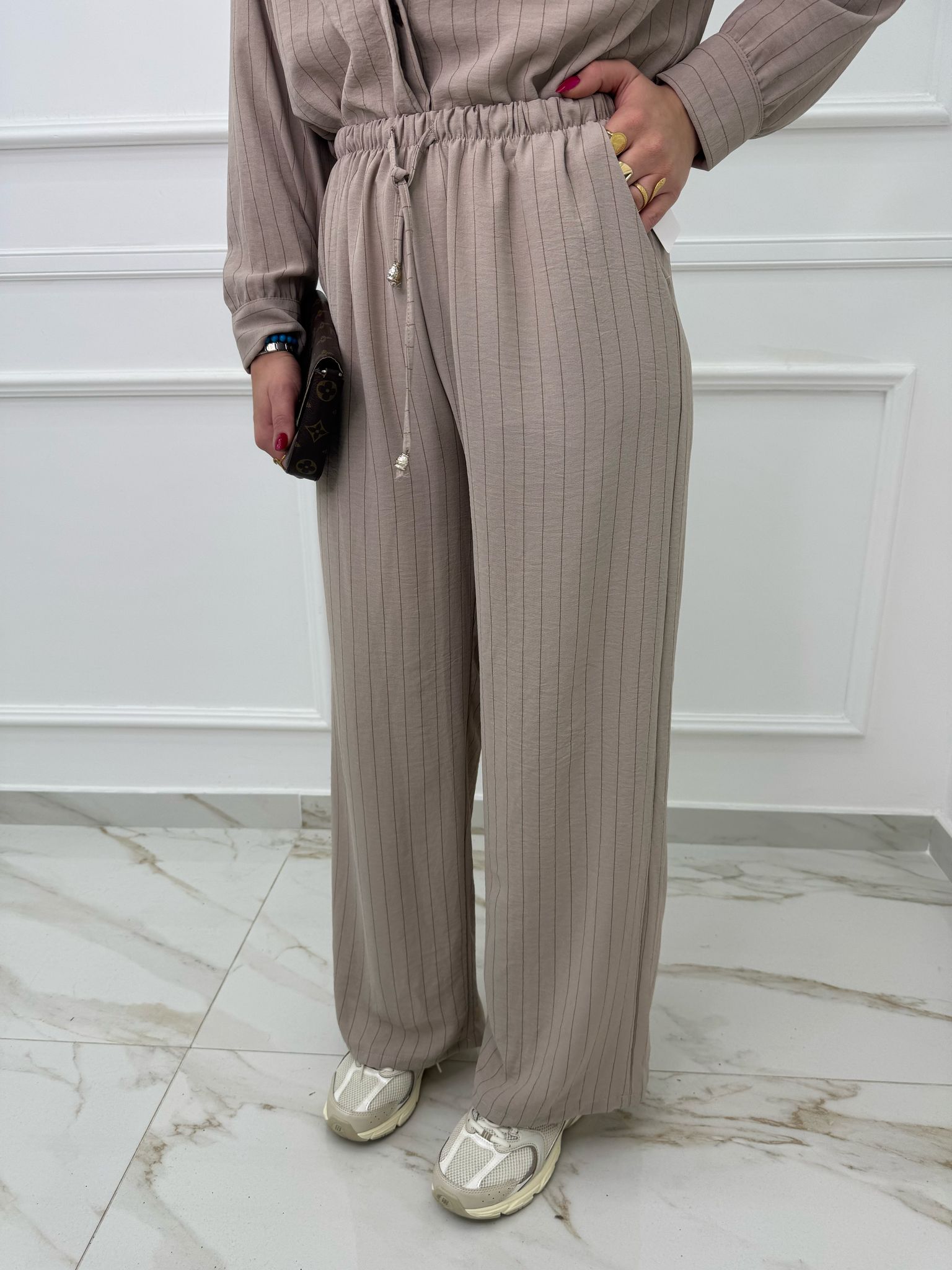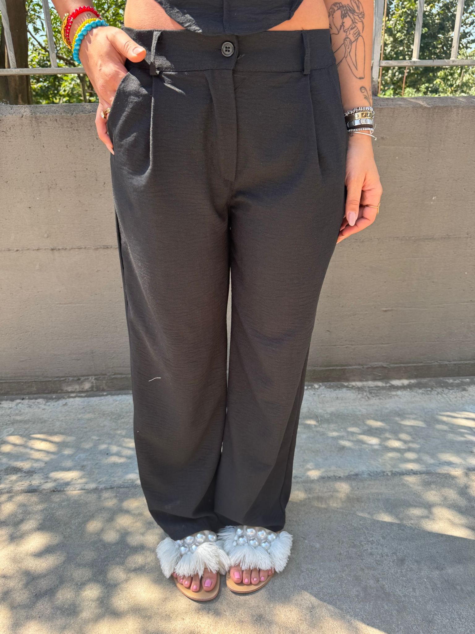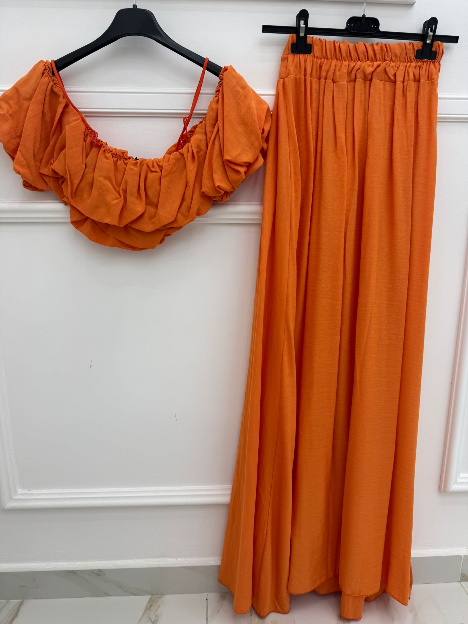 Coordinato 2 pezzi effetto lino con pantalone palazzo