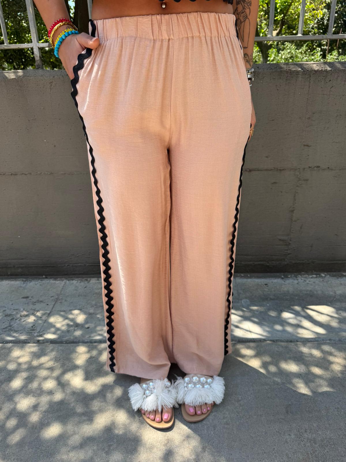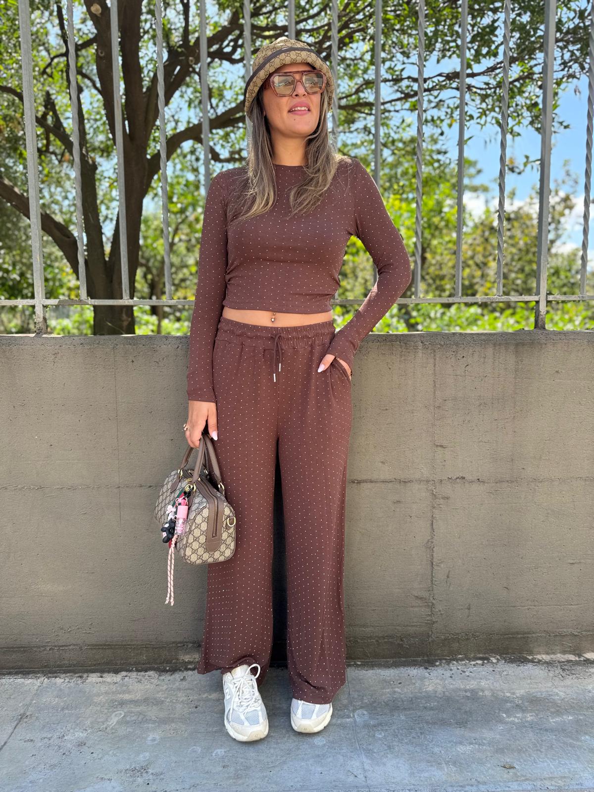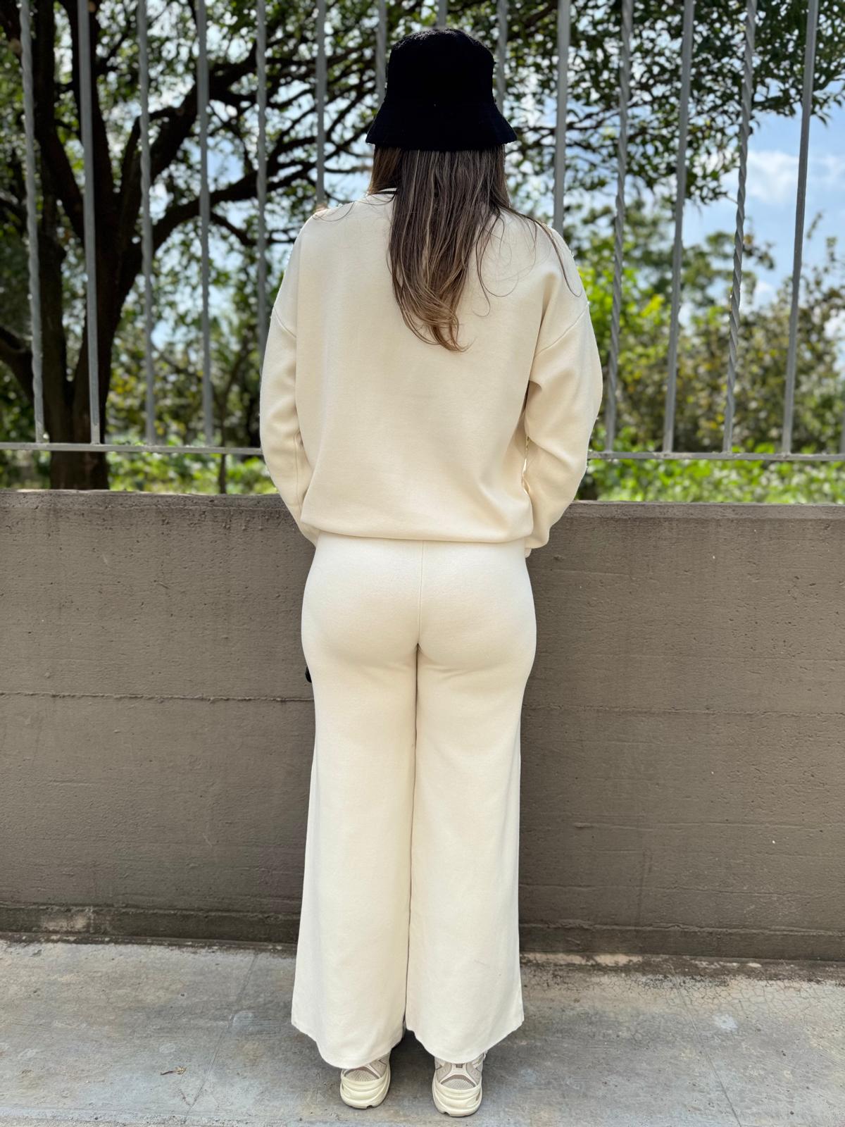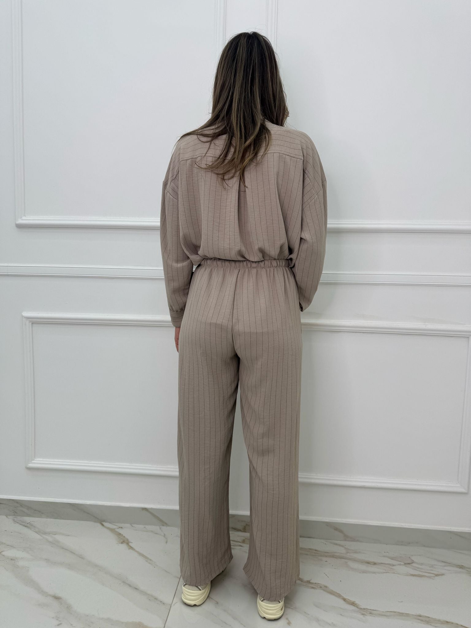 Coordinato 2 pezzi effetto lino con pantalone palazzo