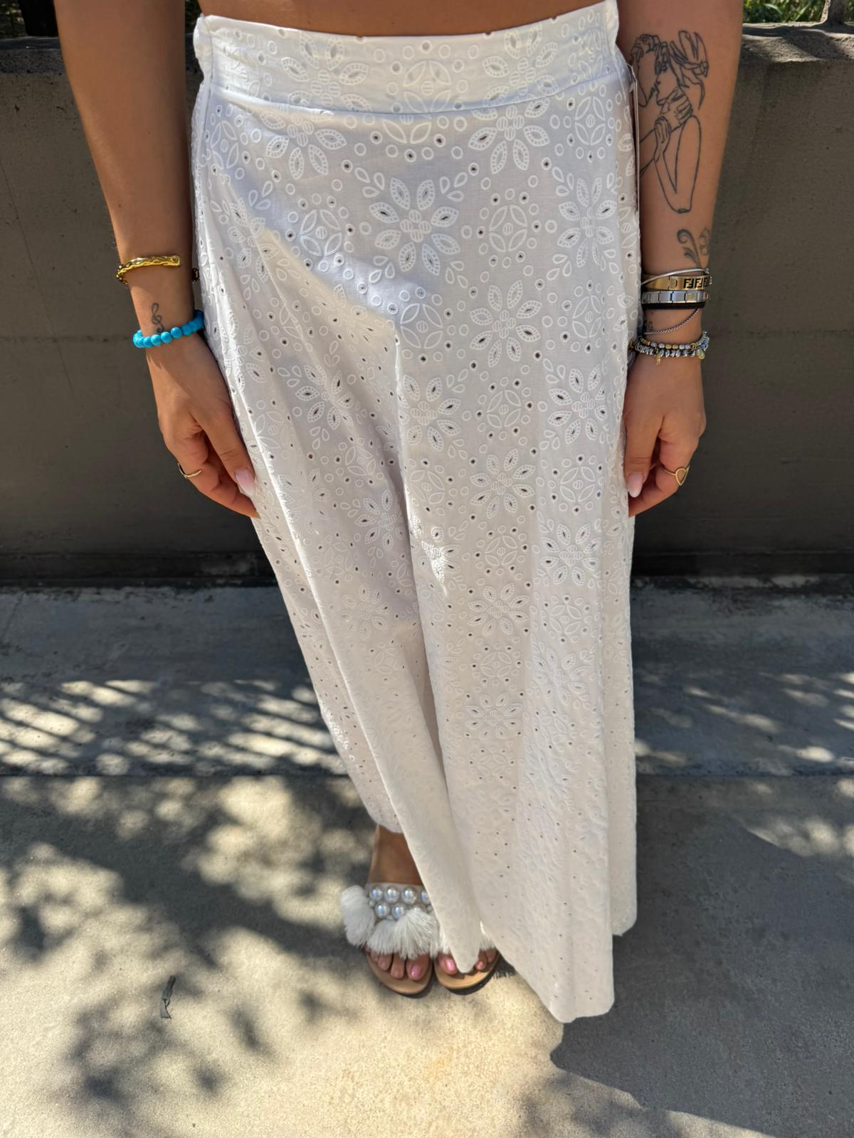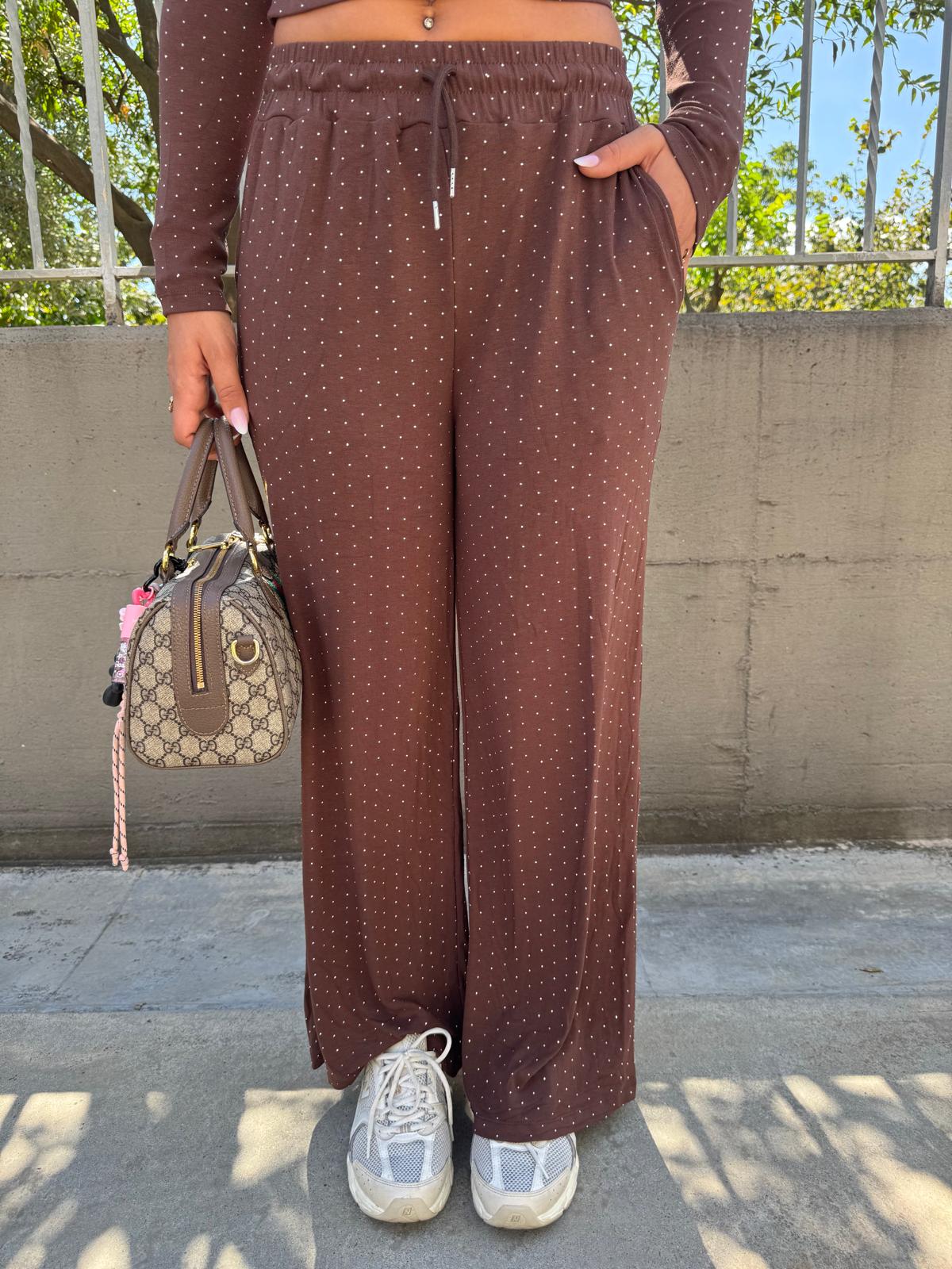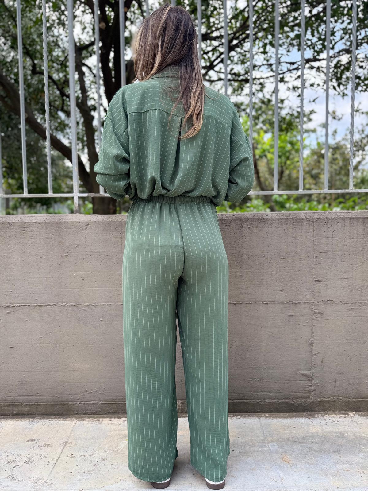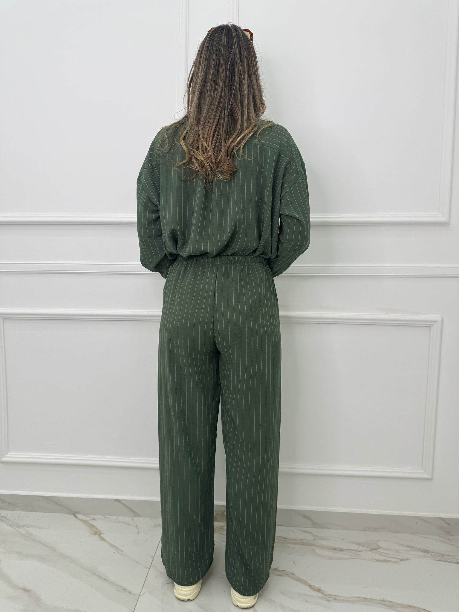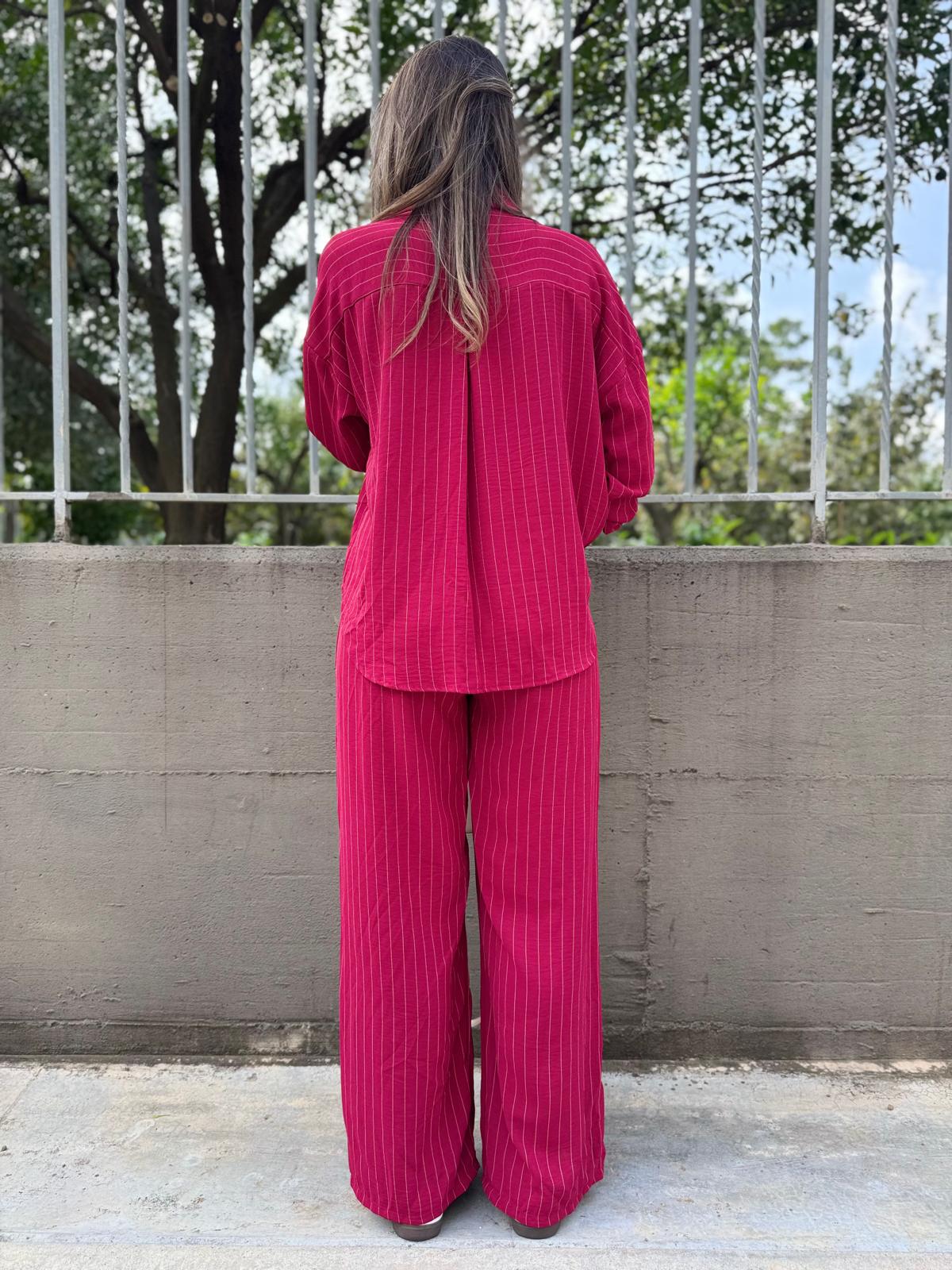 Coordinato 2 pezzi effetto lino con pantalone palazzo
