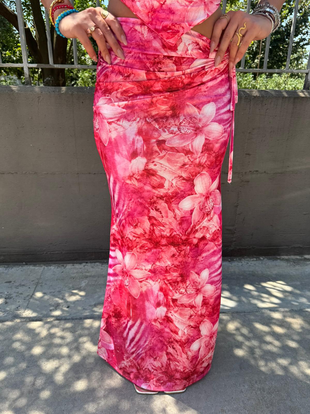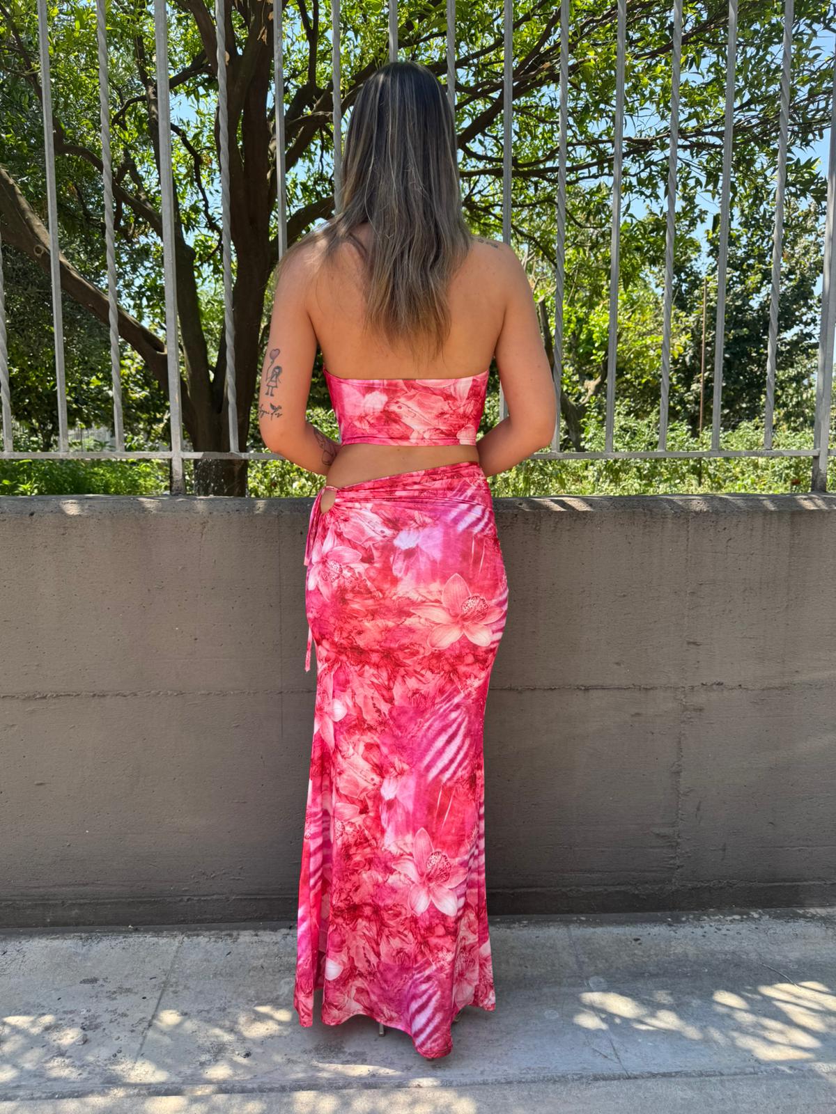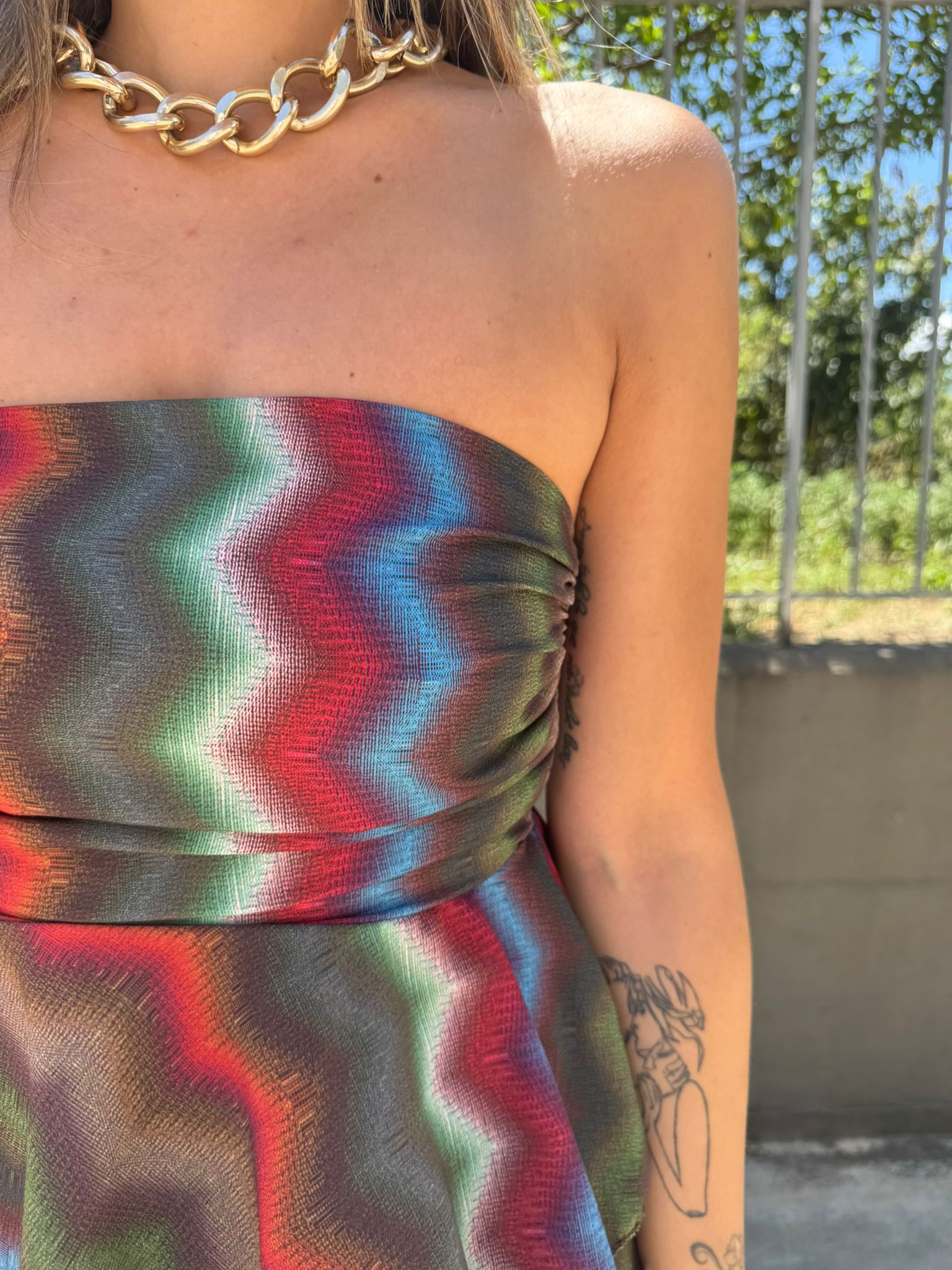 Coordinato 2 pezzi fantasia colorata con top a fascia