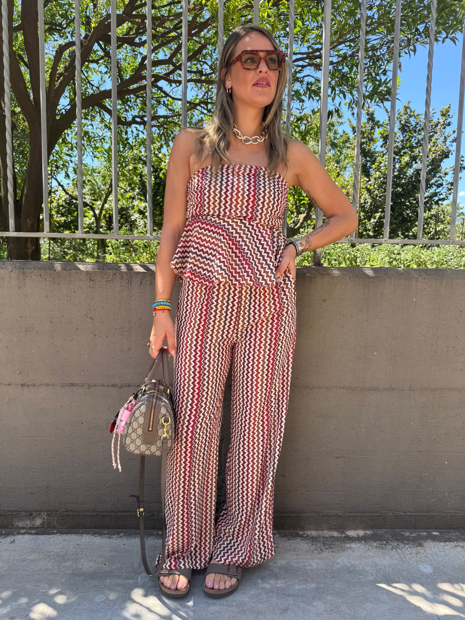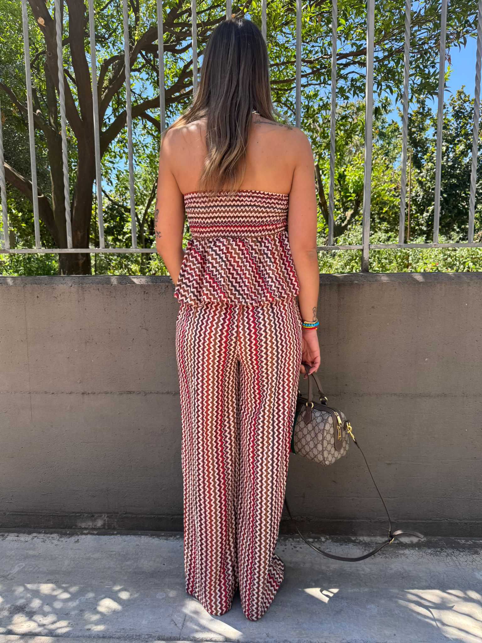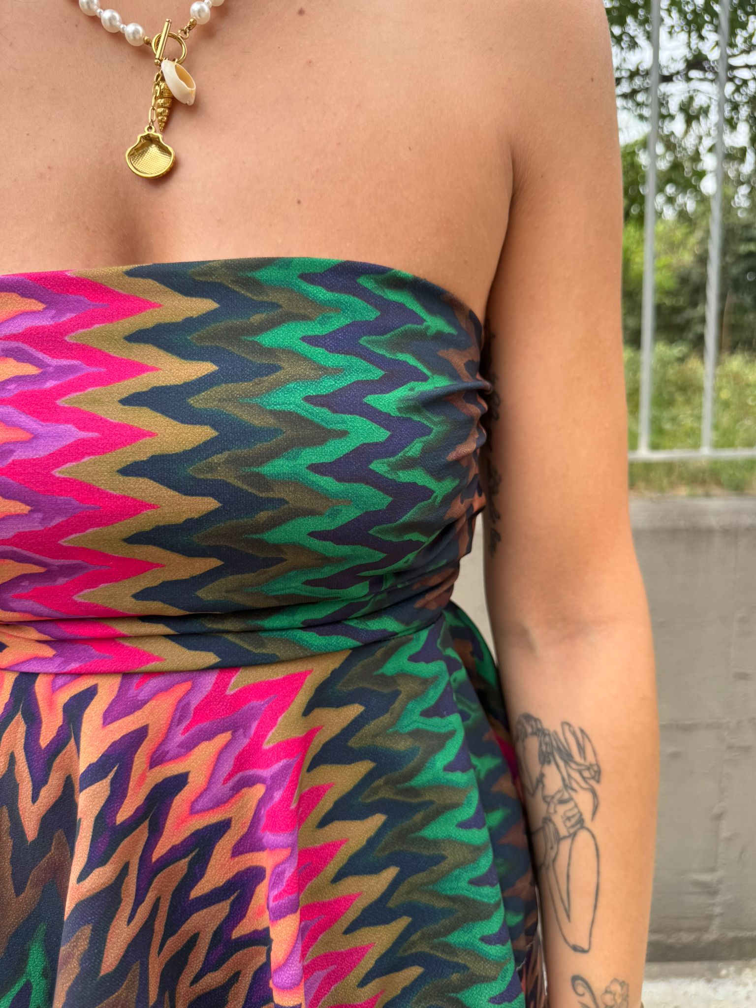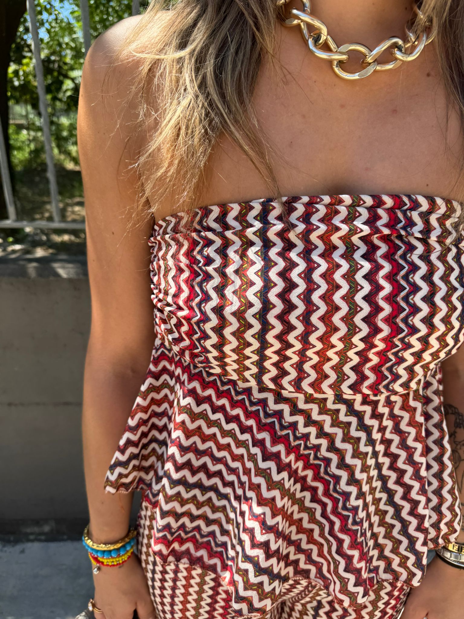 Coordinato 2 pezzi con top a fascia fantasia zig zag