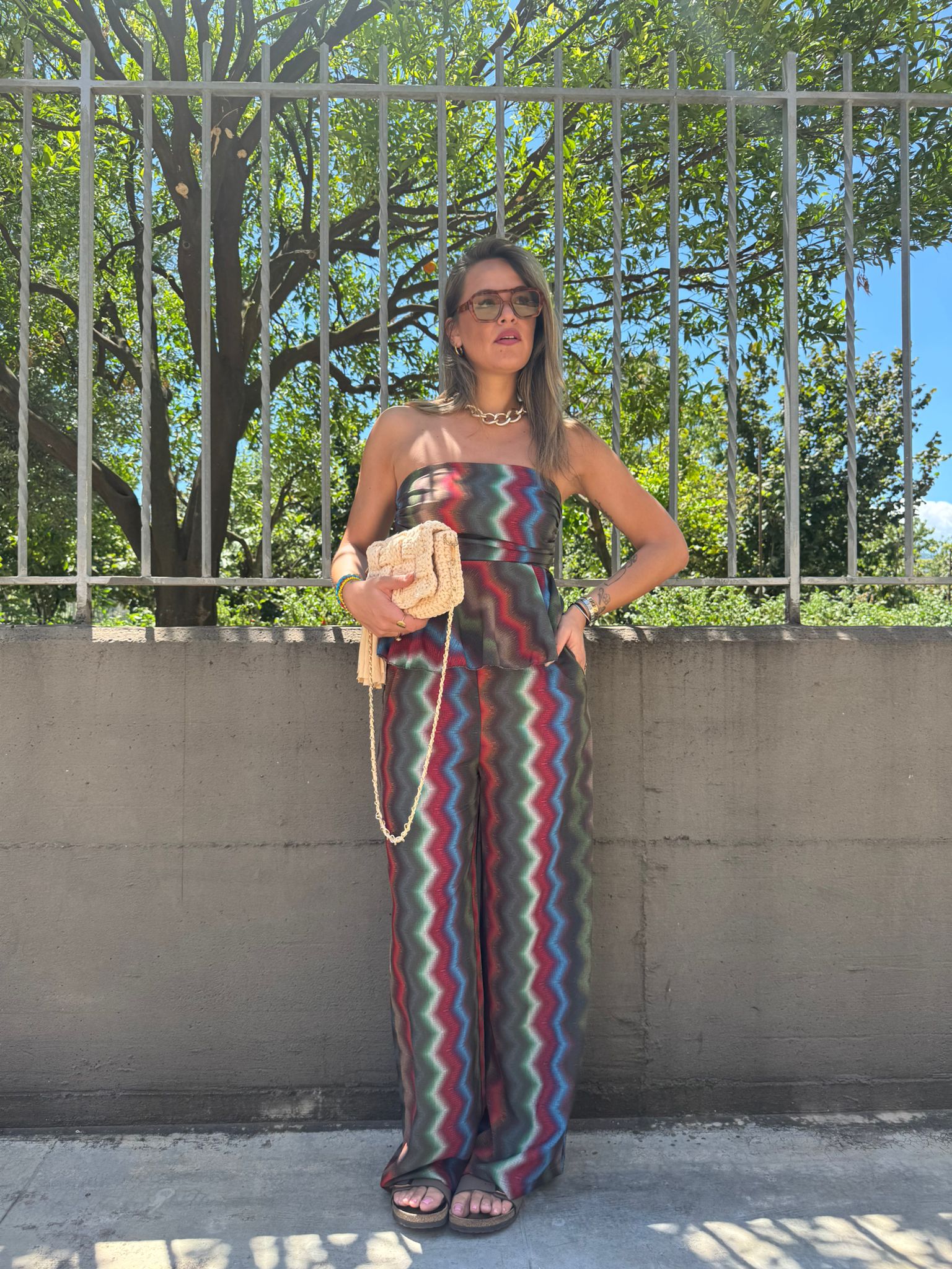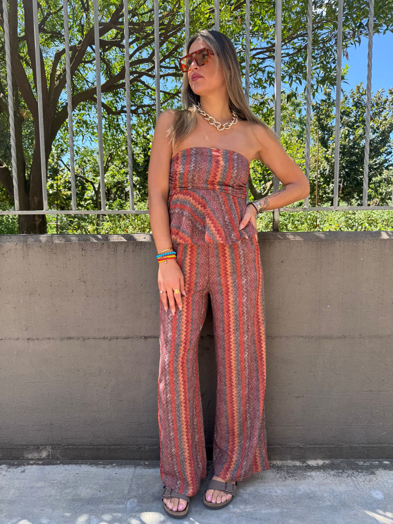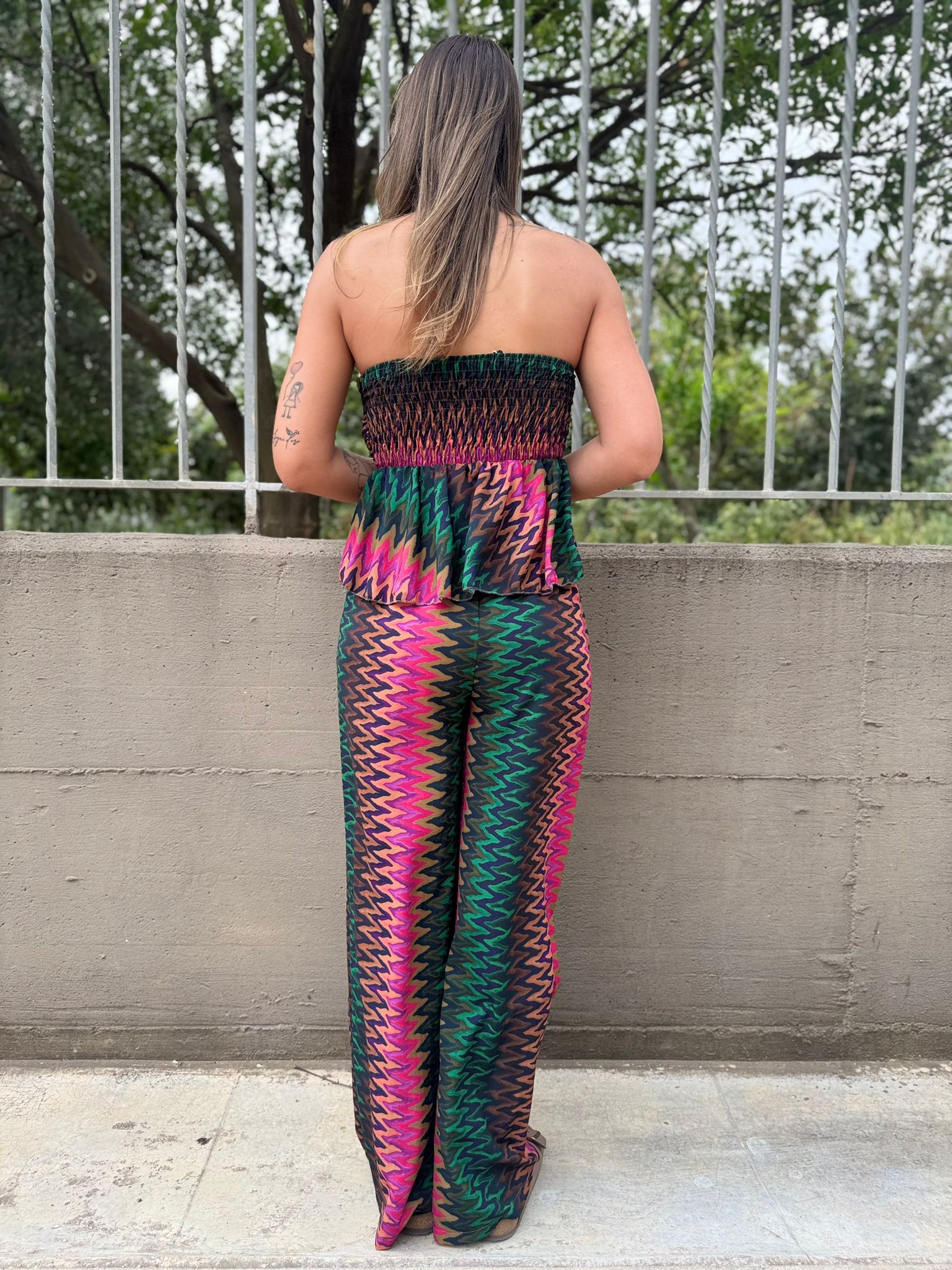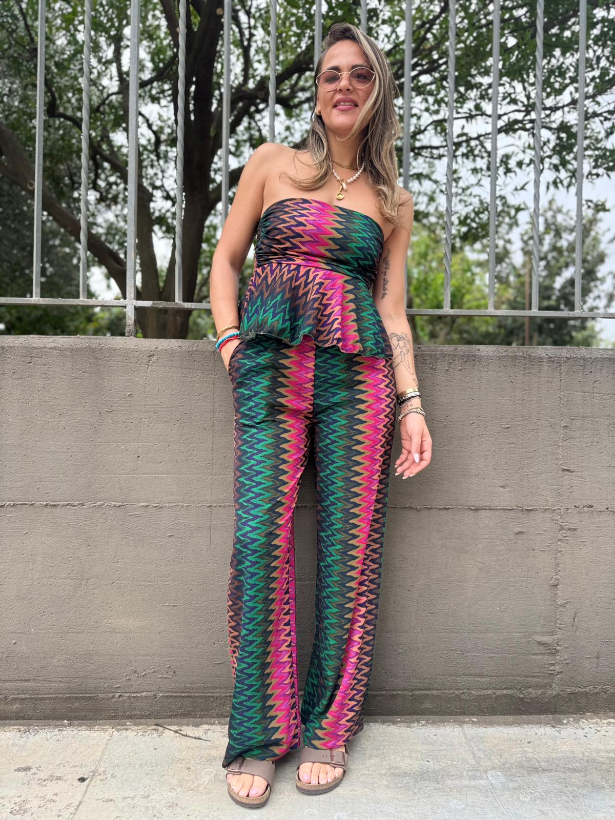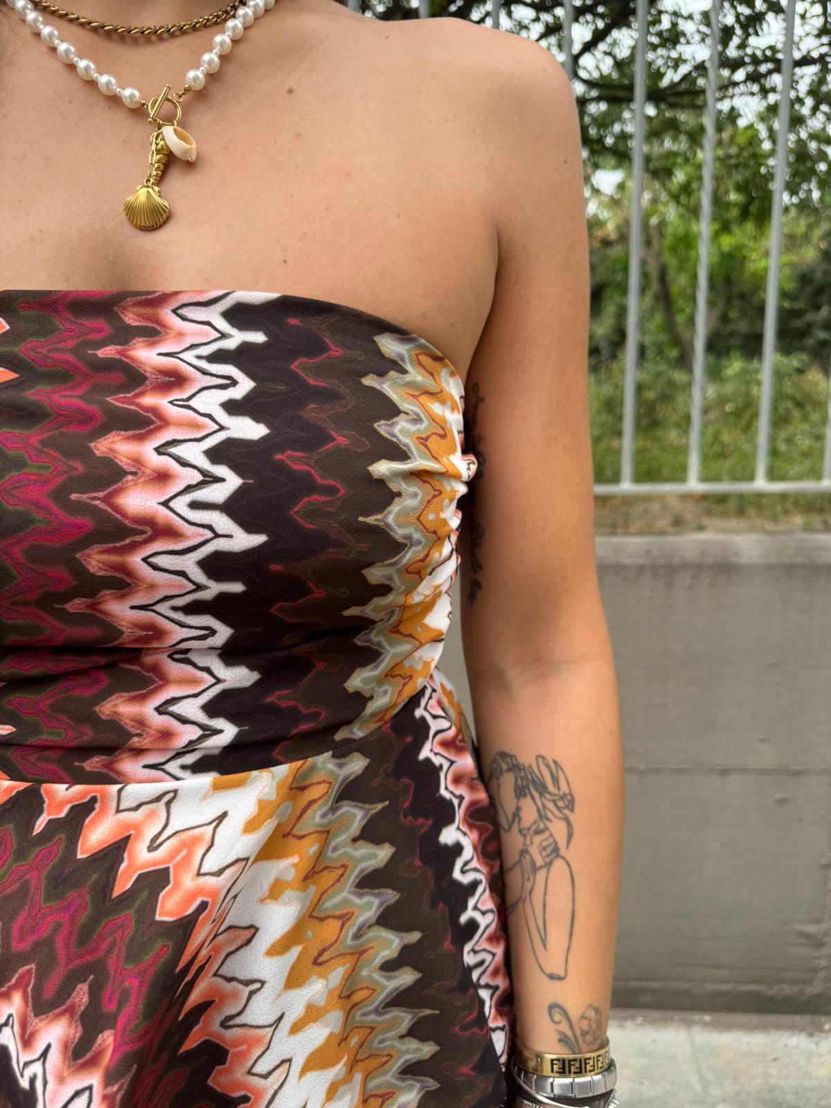 Coordinato 2 pezzi con top a fascia fantasia zig zag