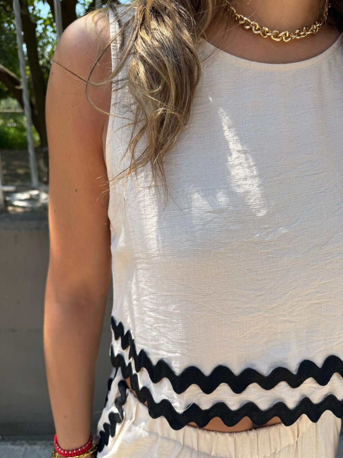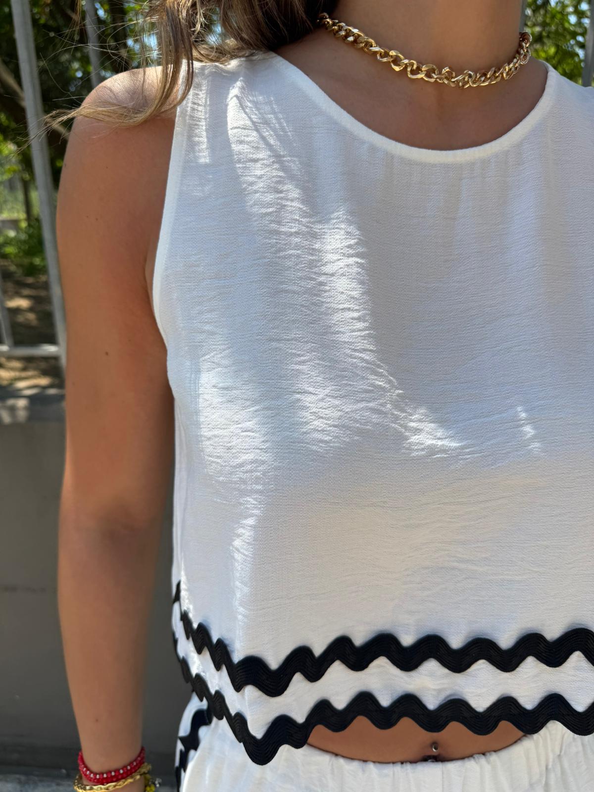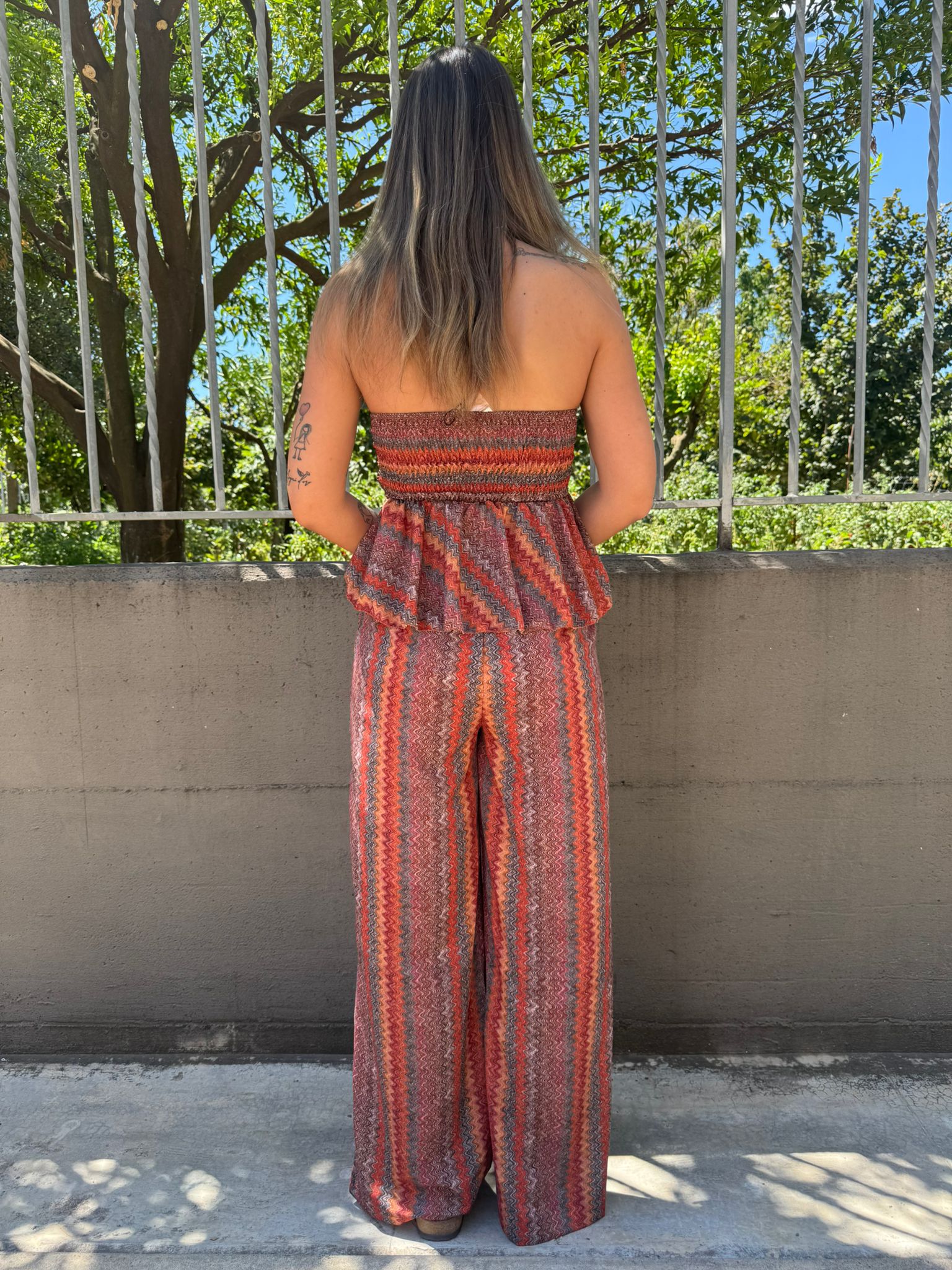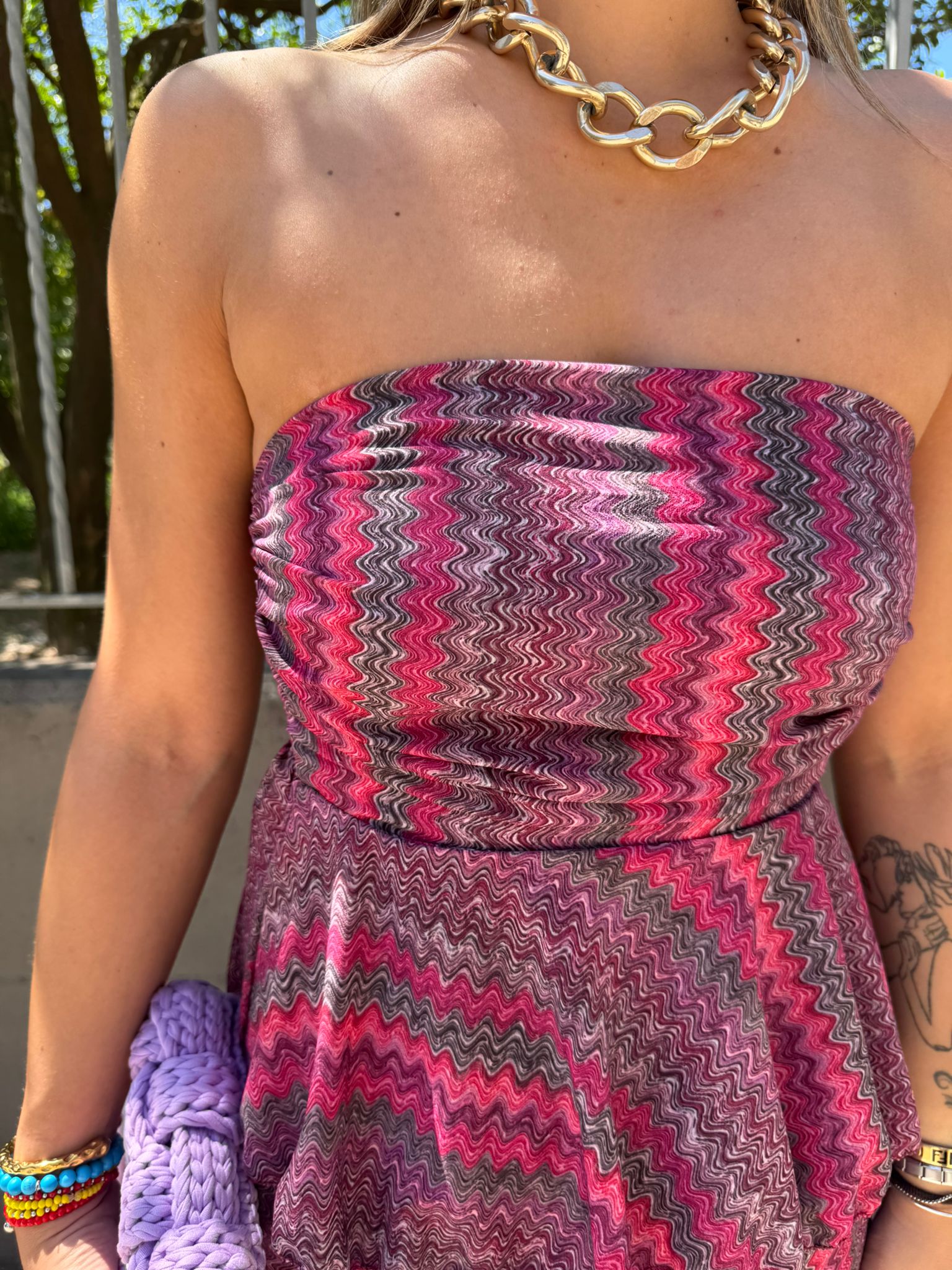 Coordinato 2 pezzi con top a fascia fantasia zig zag