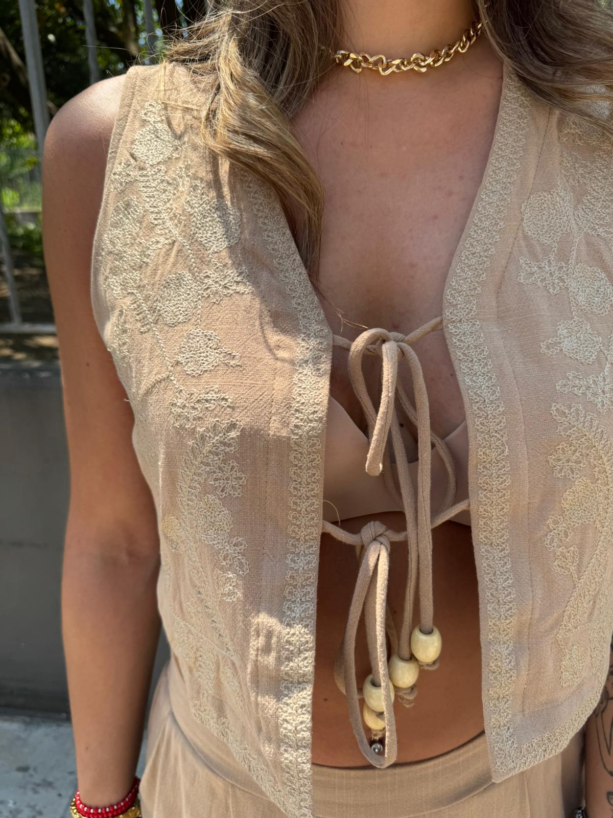 Coordinato 2 pezzi effetto lino con gilet particolare