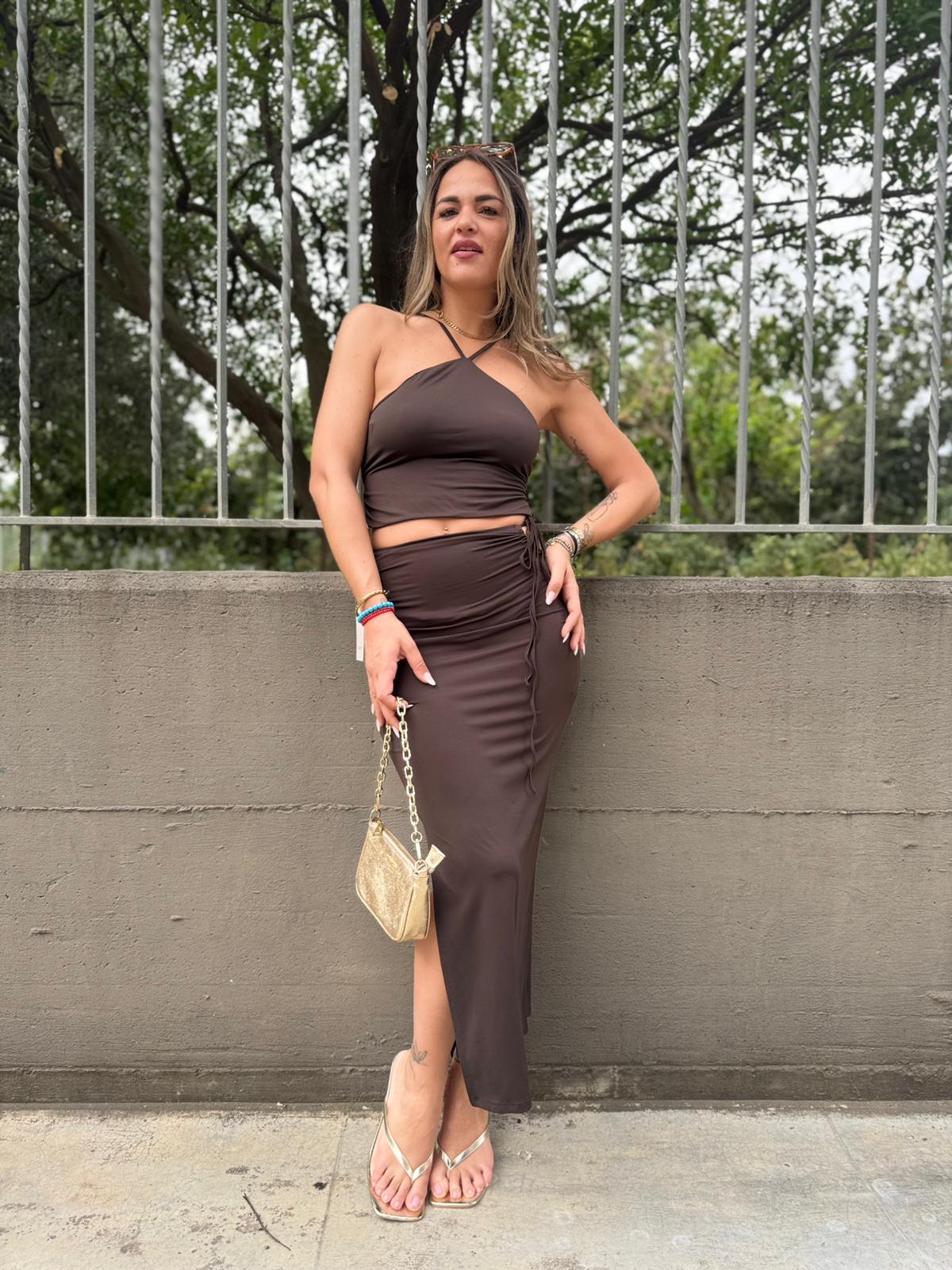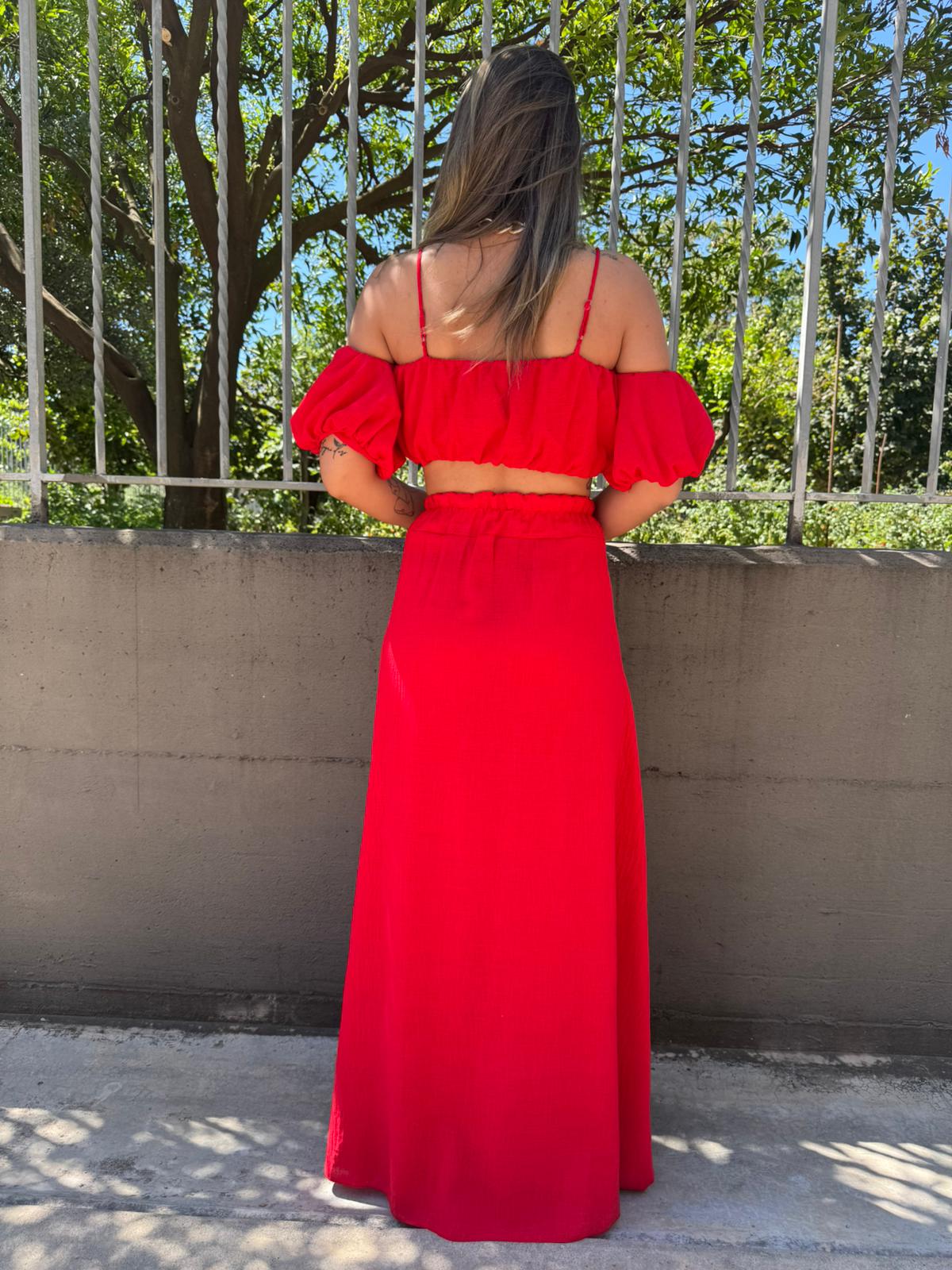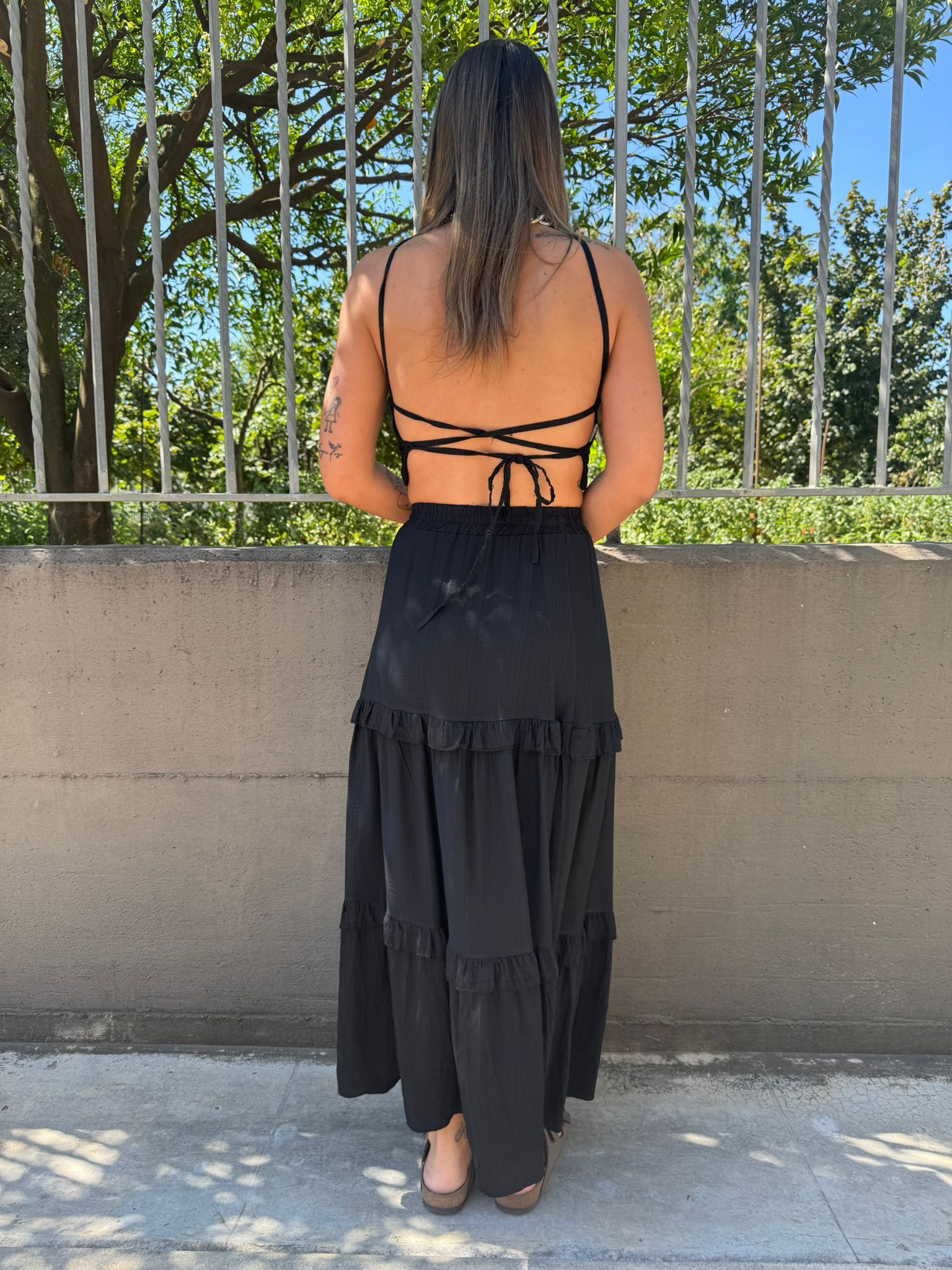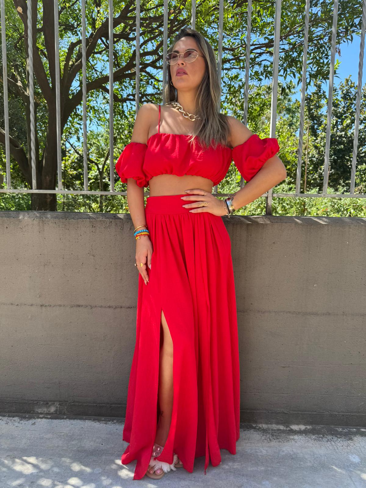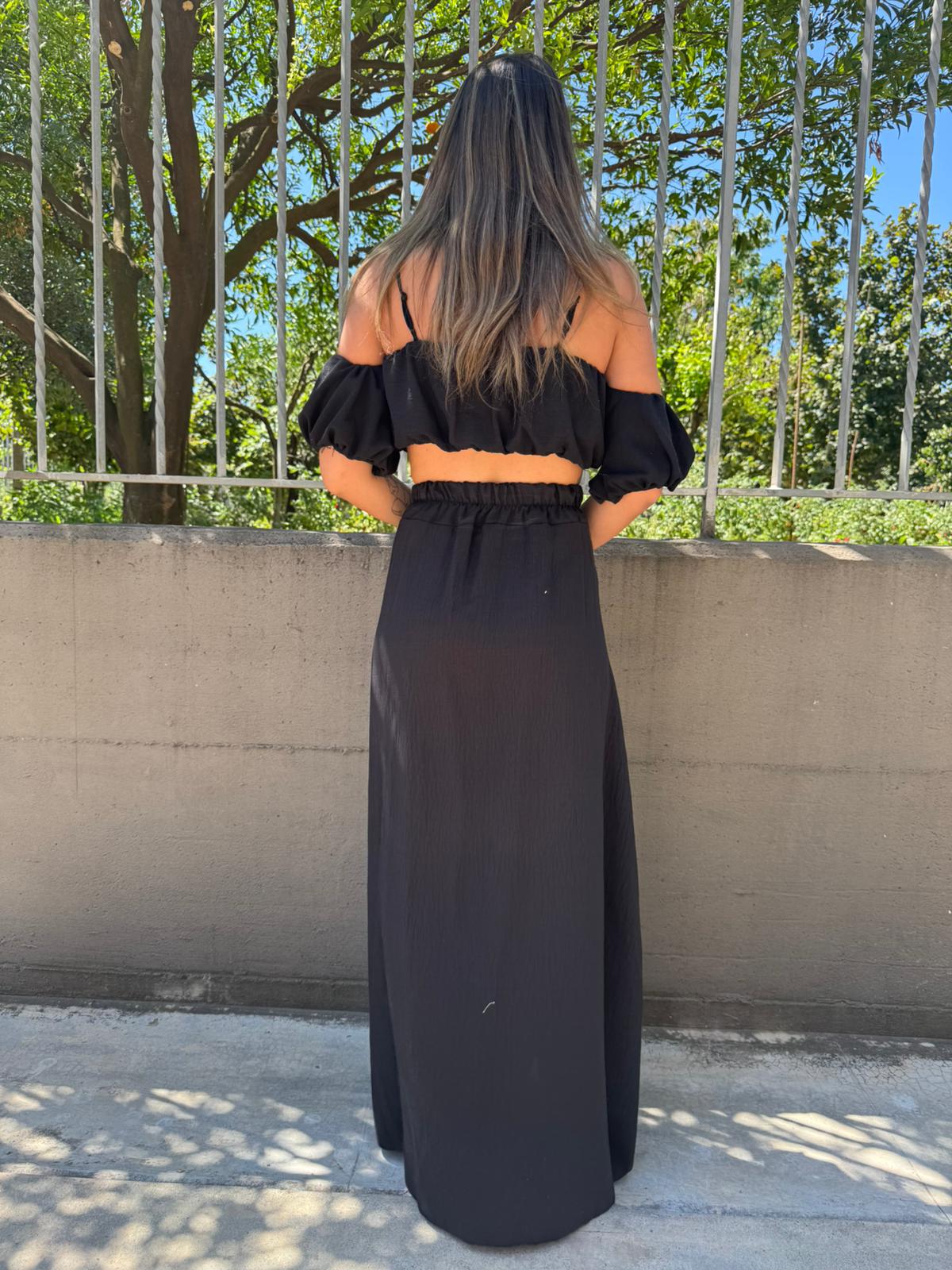 Coordinato 2 pezzi effetto lino con gonnellone e top