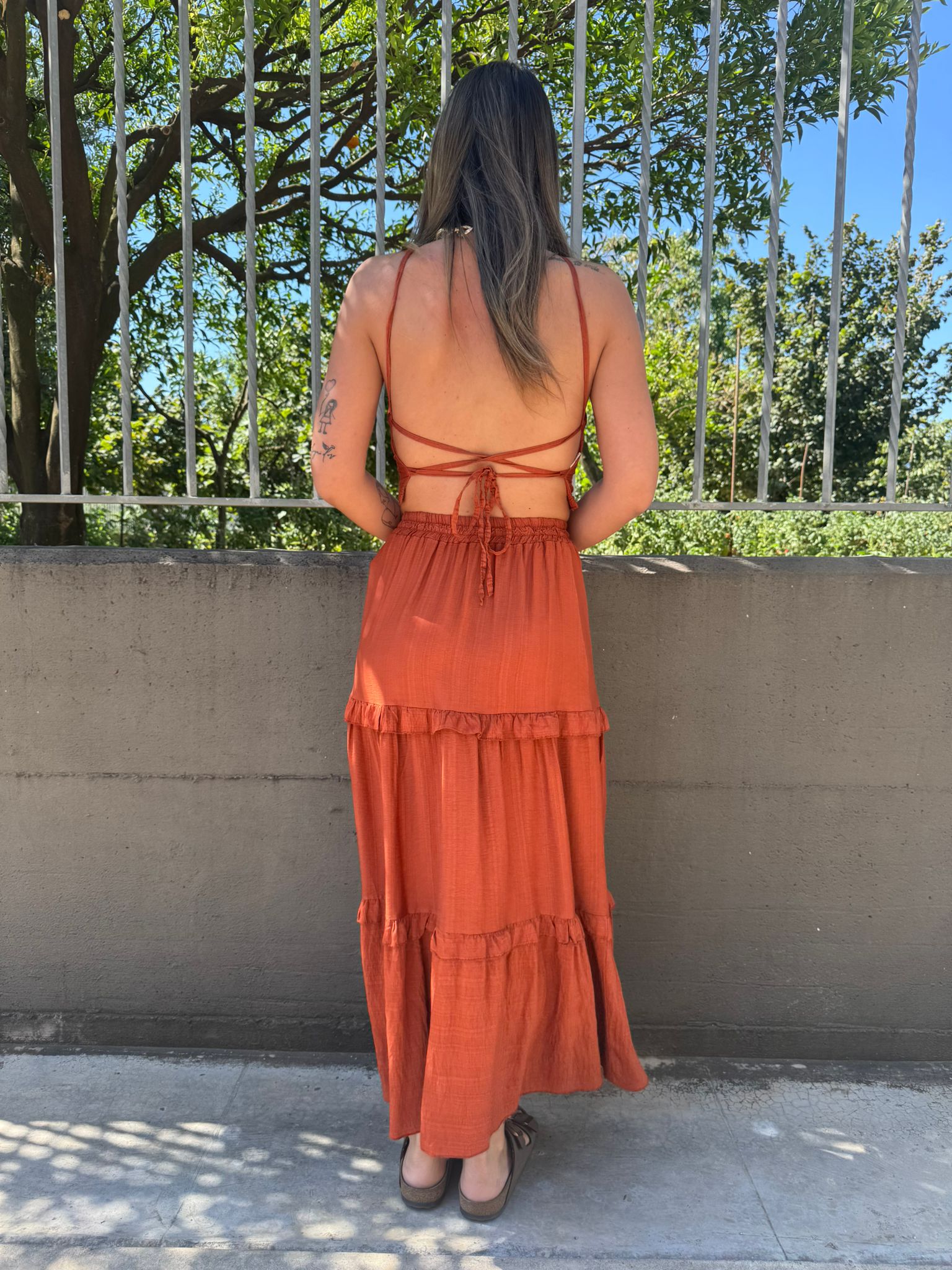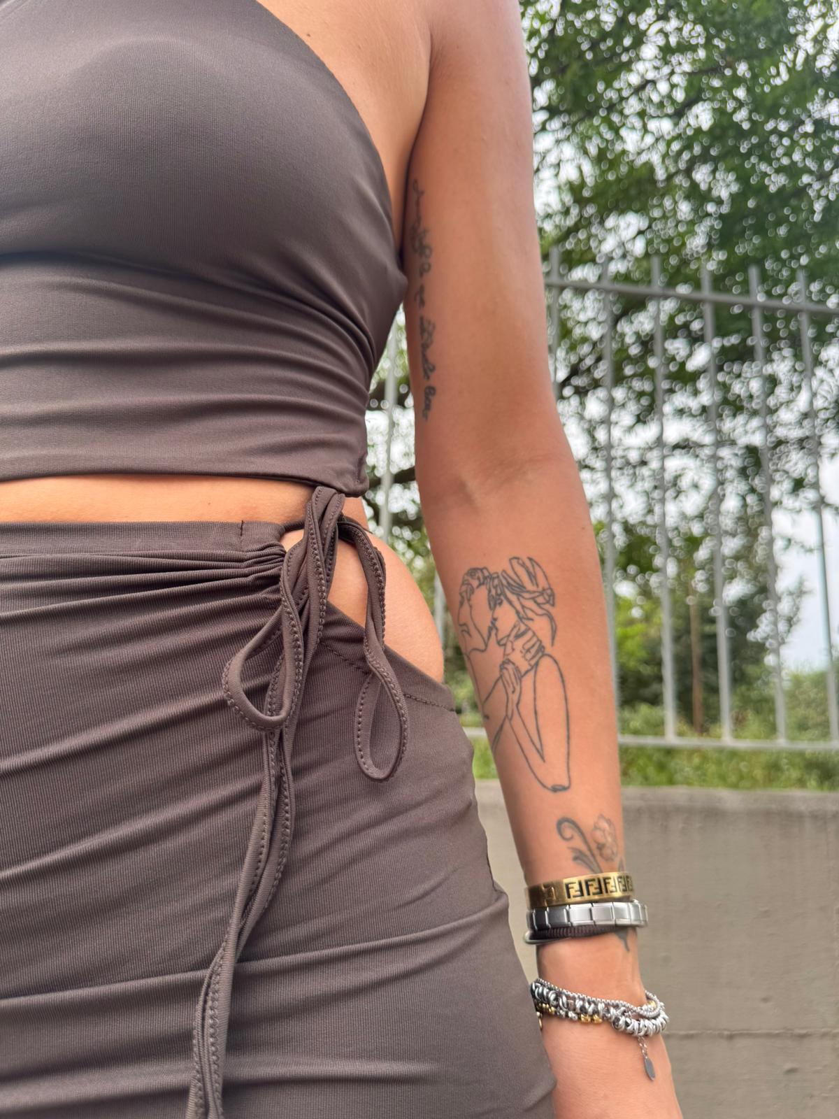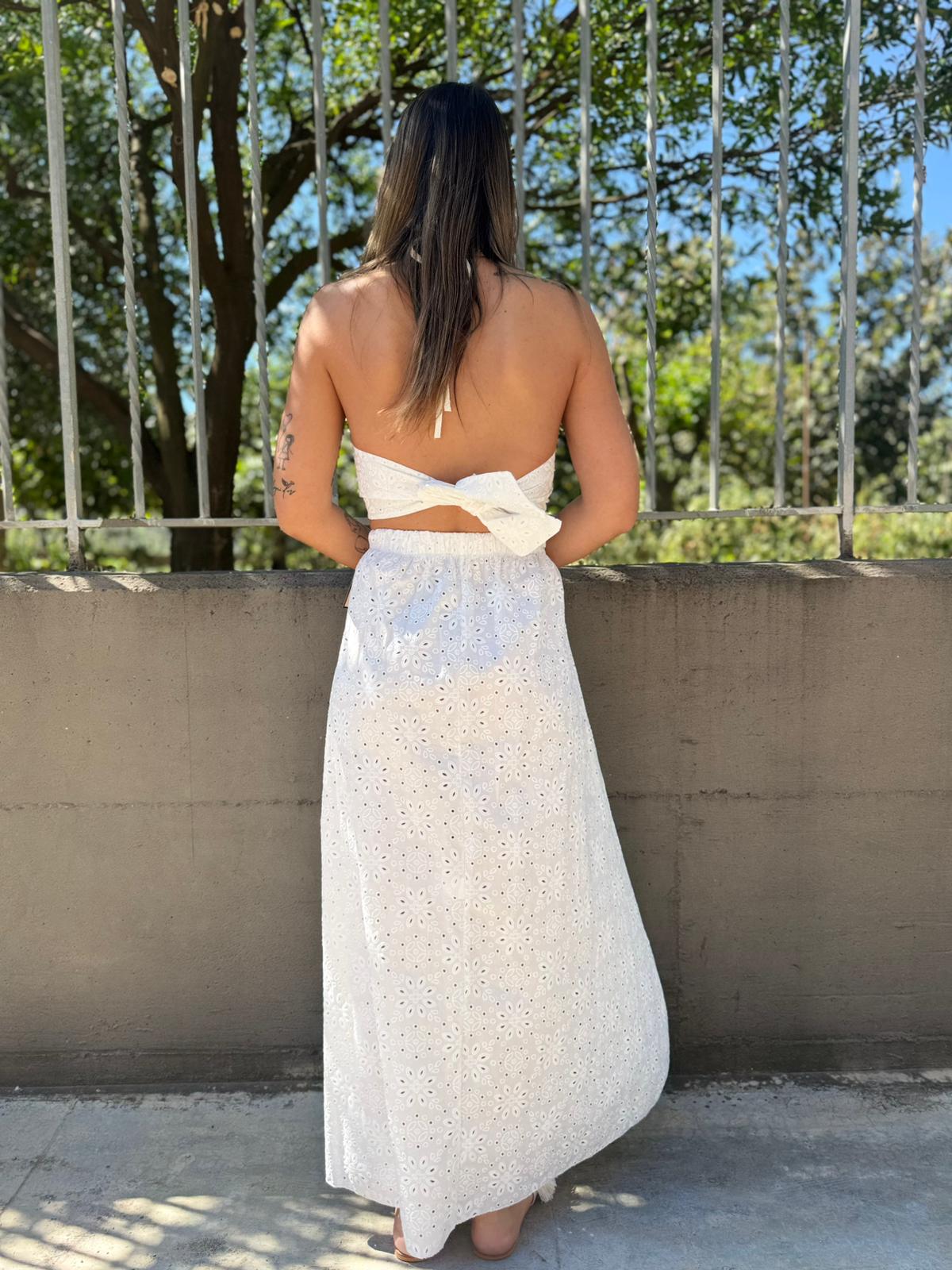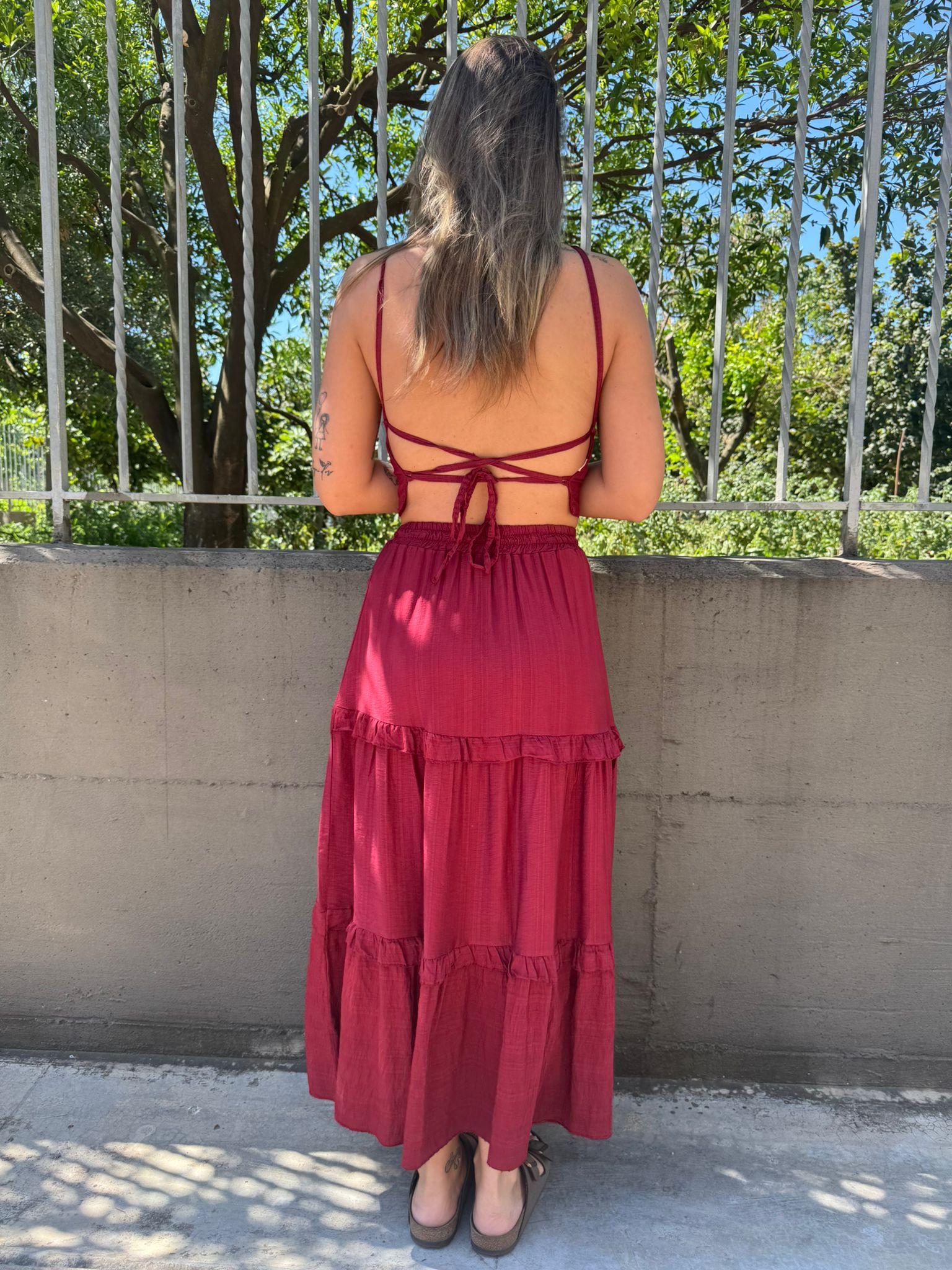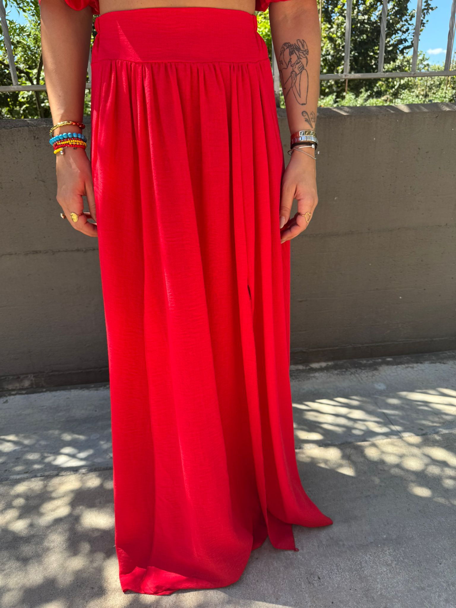 Coordinato 2 pezzi effetto lino con gonnellone e top
