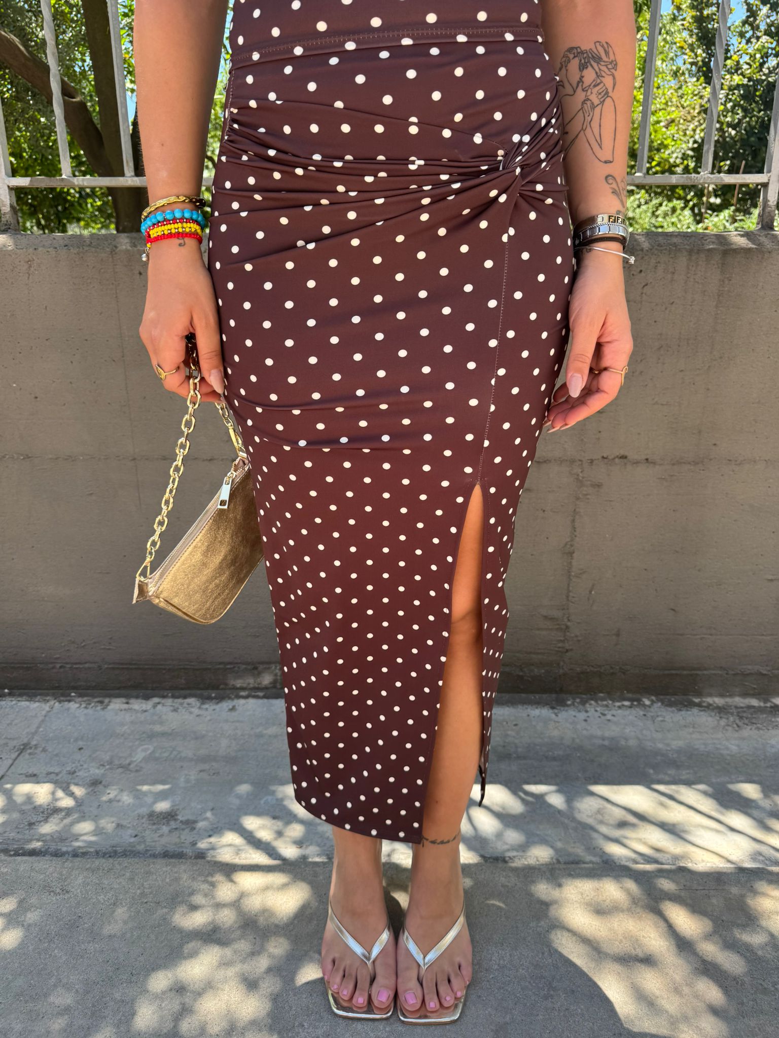 Coordinato 2 pezzi fantasia pois con gonna e top