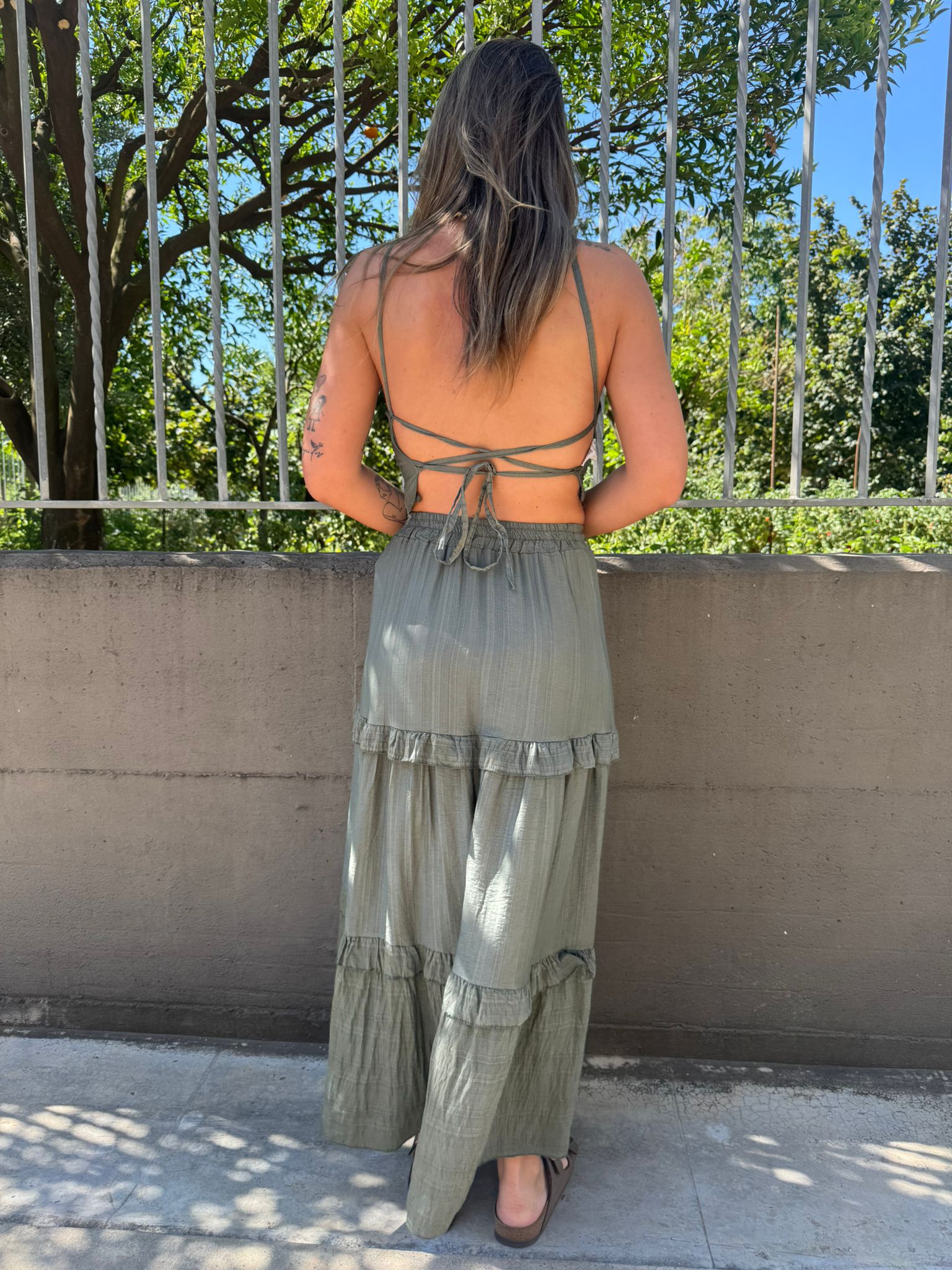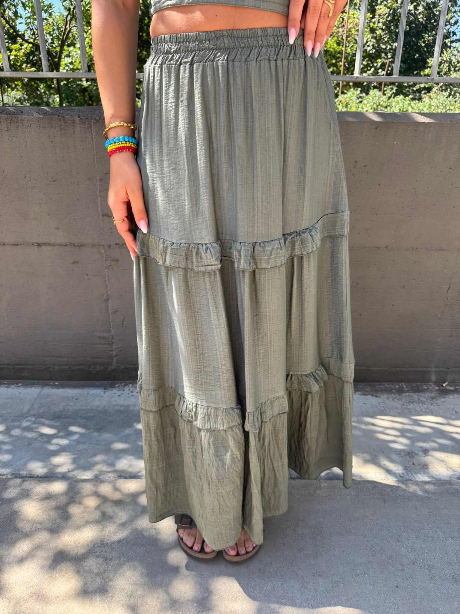 Coordinato 2 pezzi effetto lino con gonna a balze