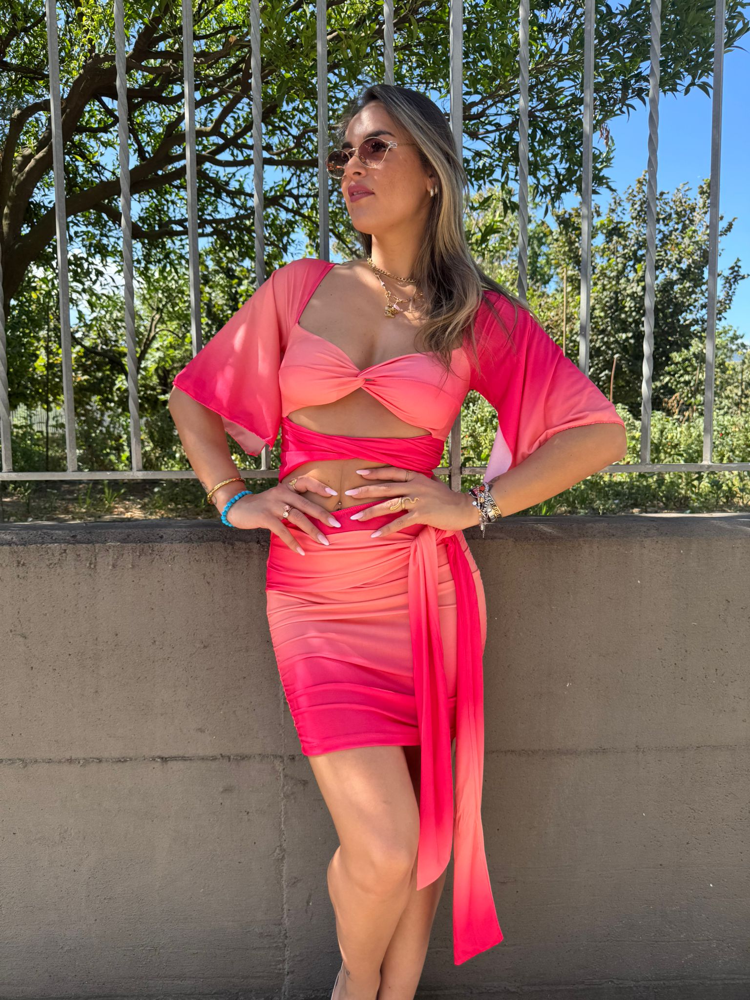 Coordinato 2 pezzi con top a fascia fantasia sfumata