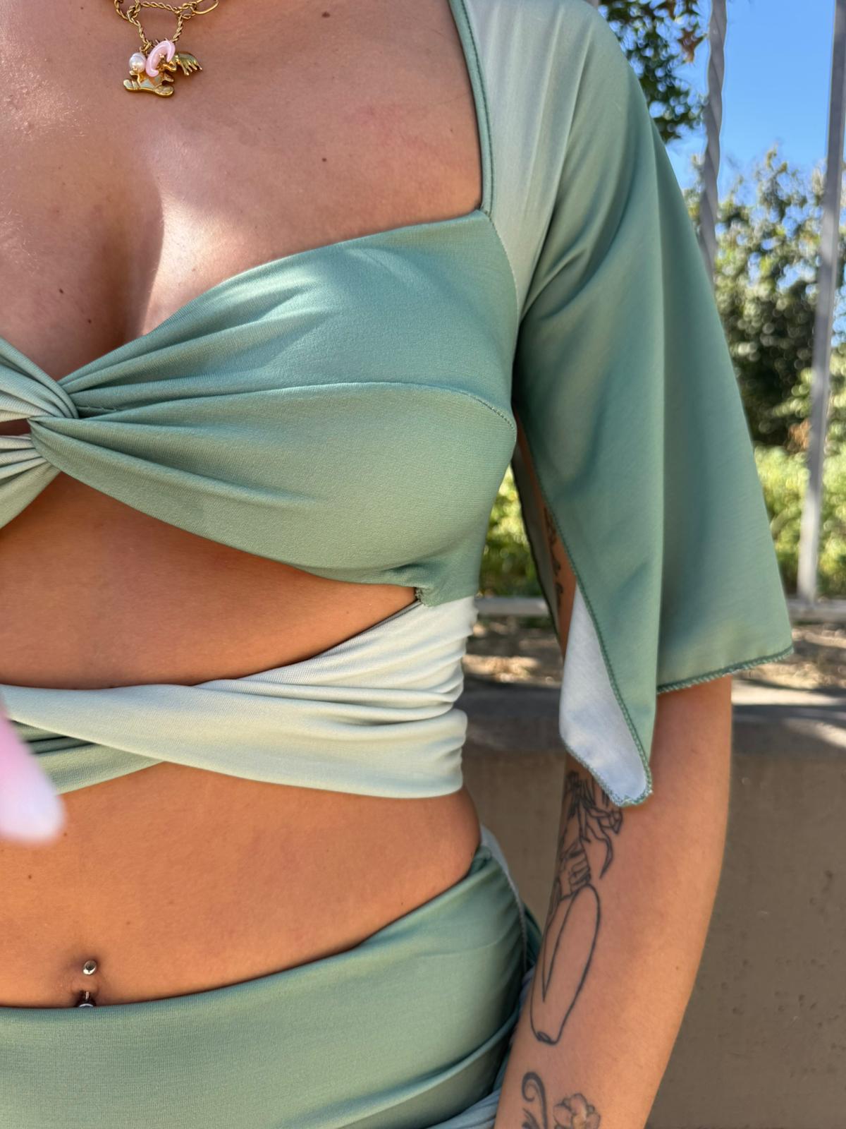 Coordinato 2 pezzi in lycra con pantalone e top scollato
