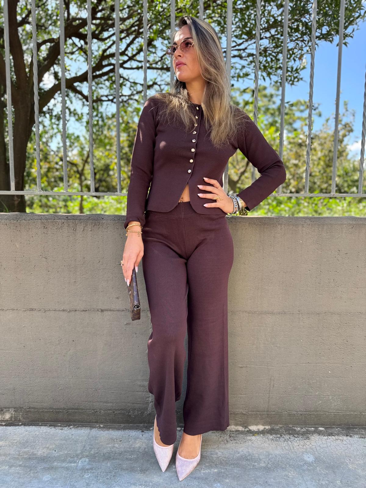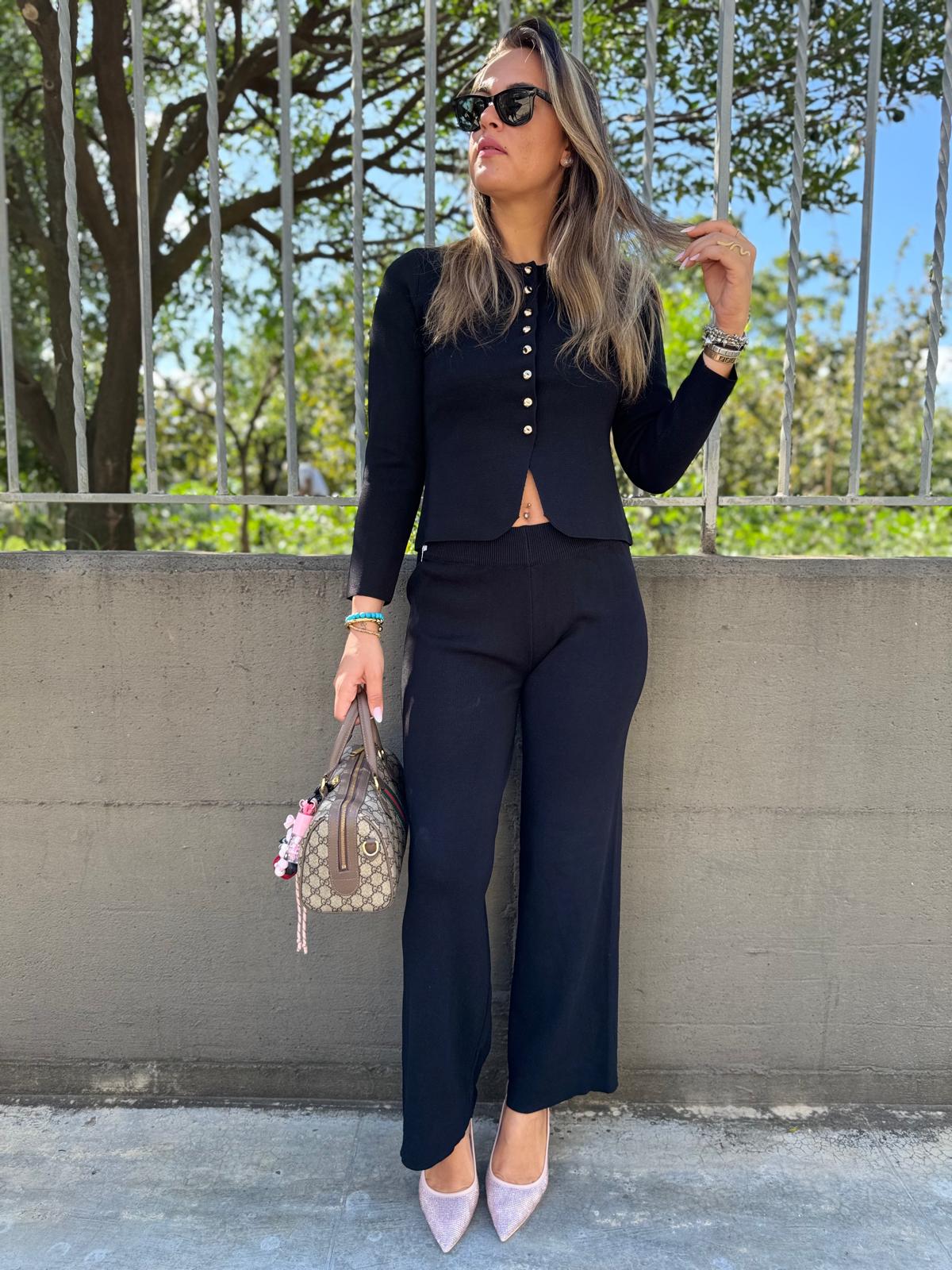 Coordinato 2 pezzi con pantalone e cardigan con bottoni