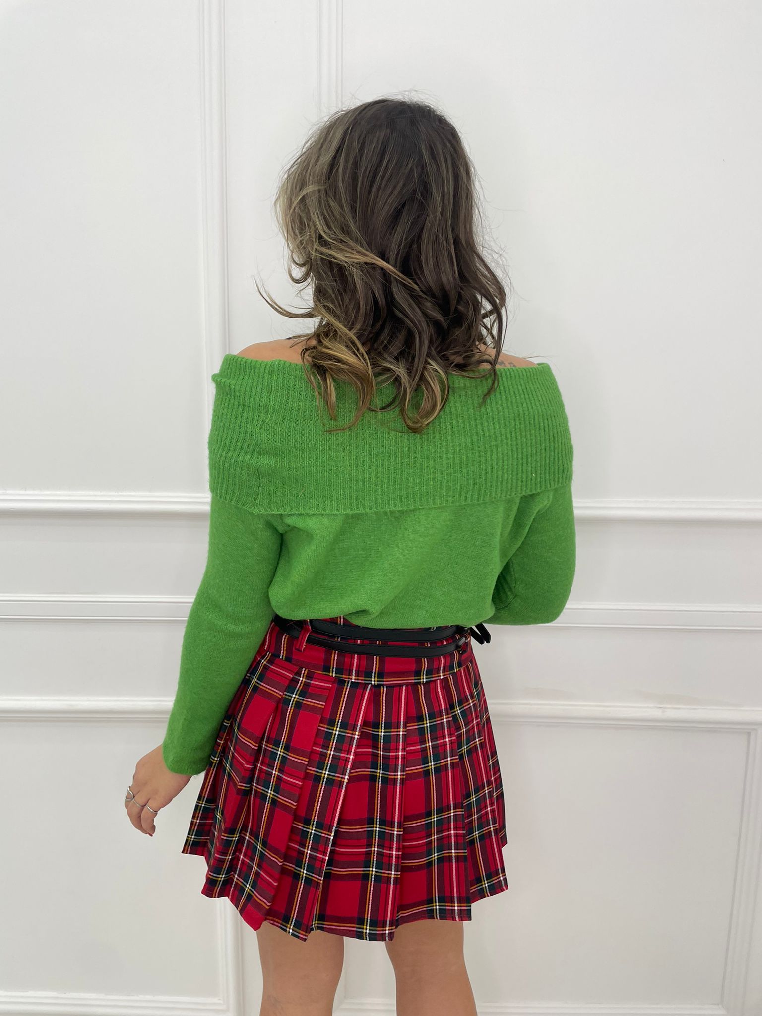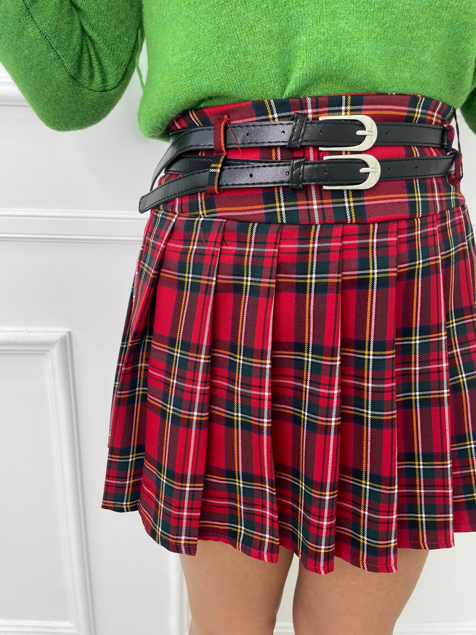 Mini gonna scozzese con doppia cintura