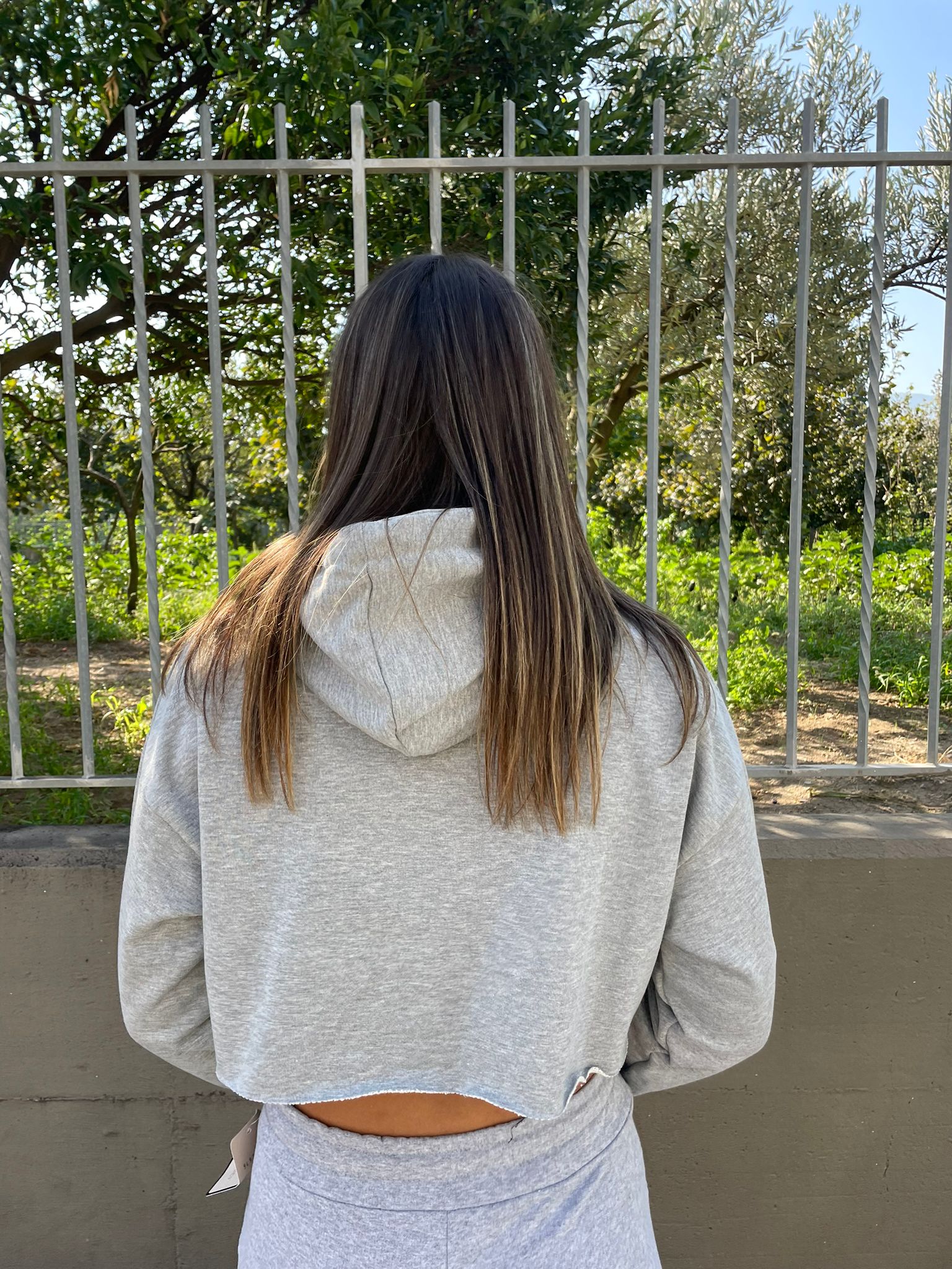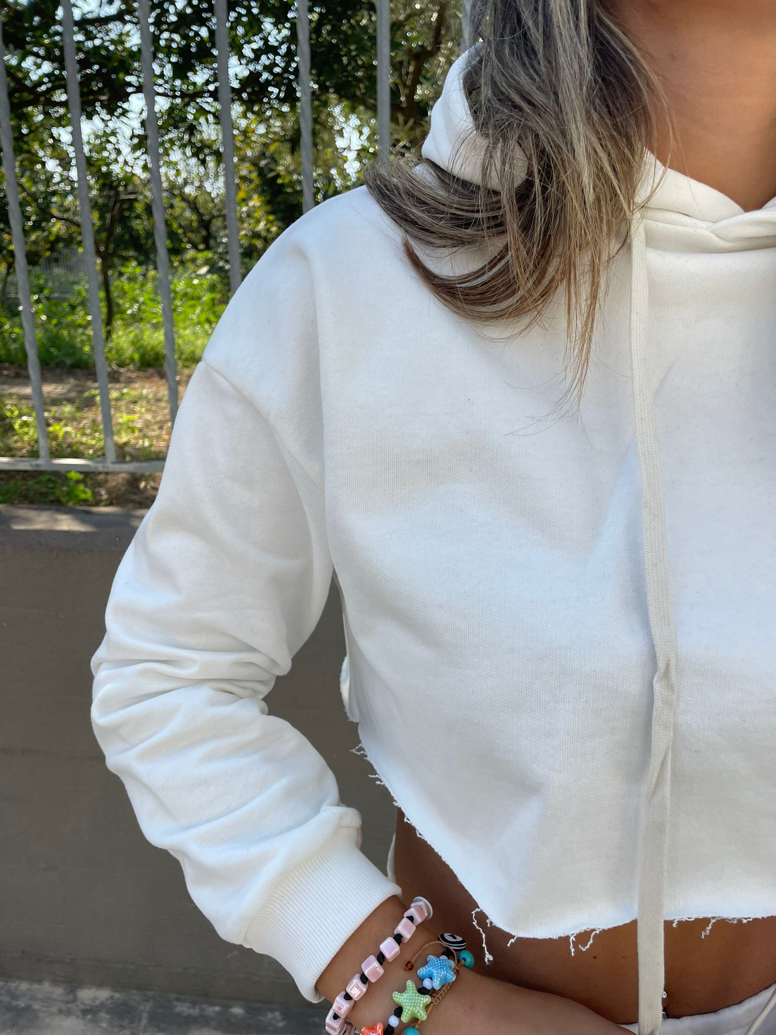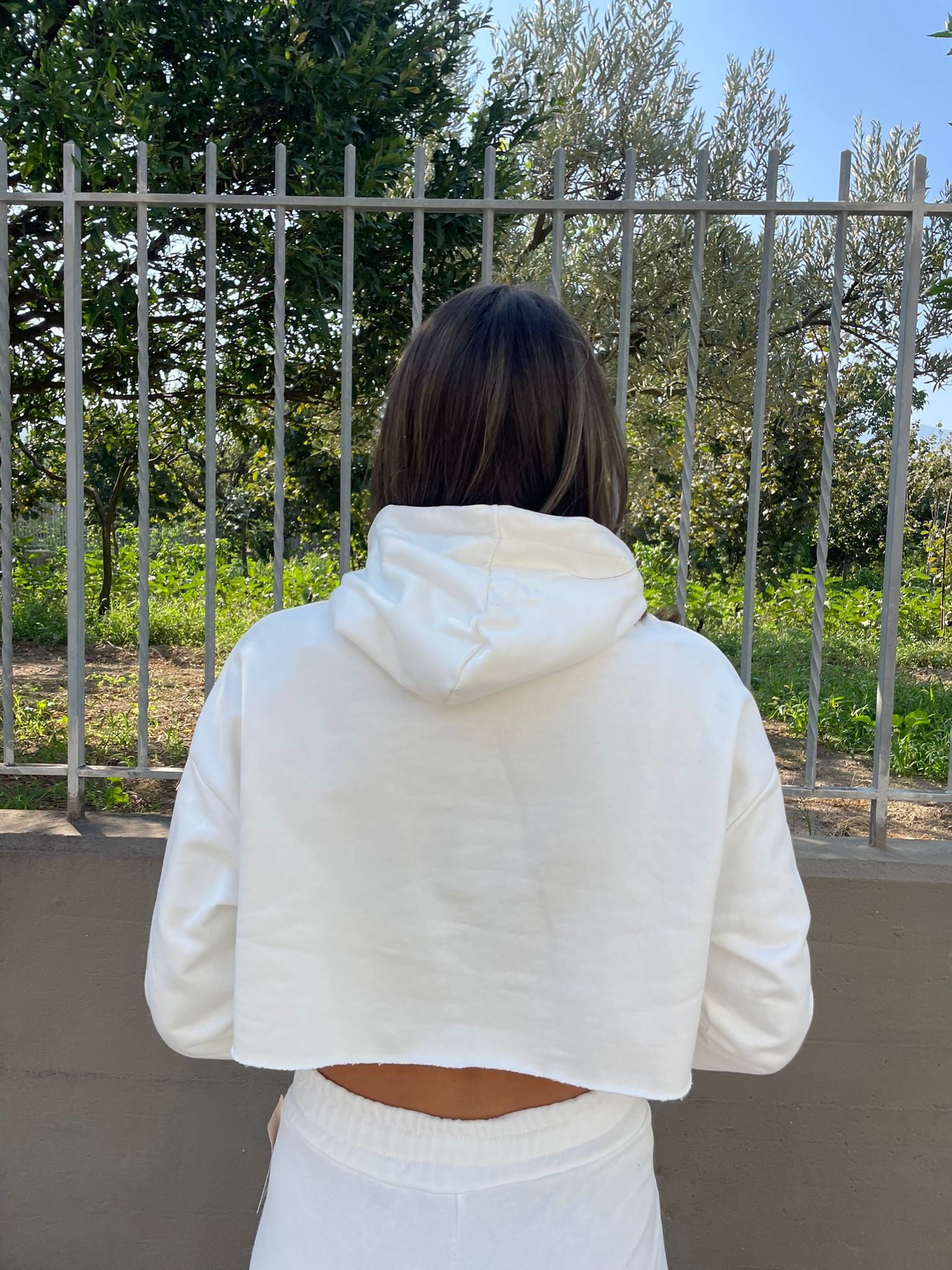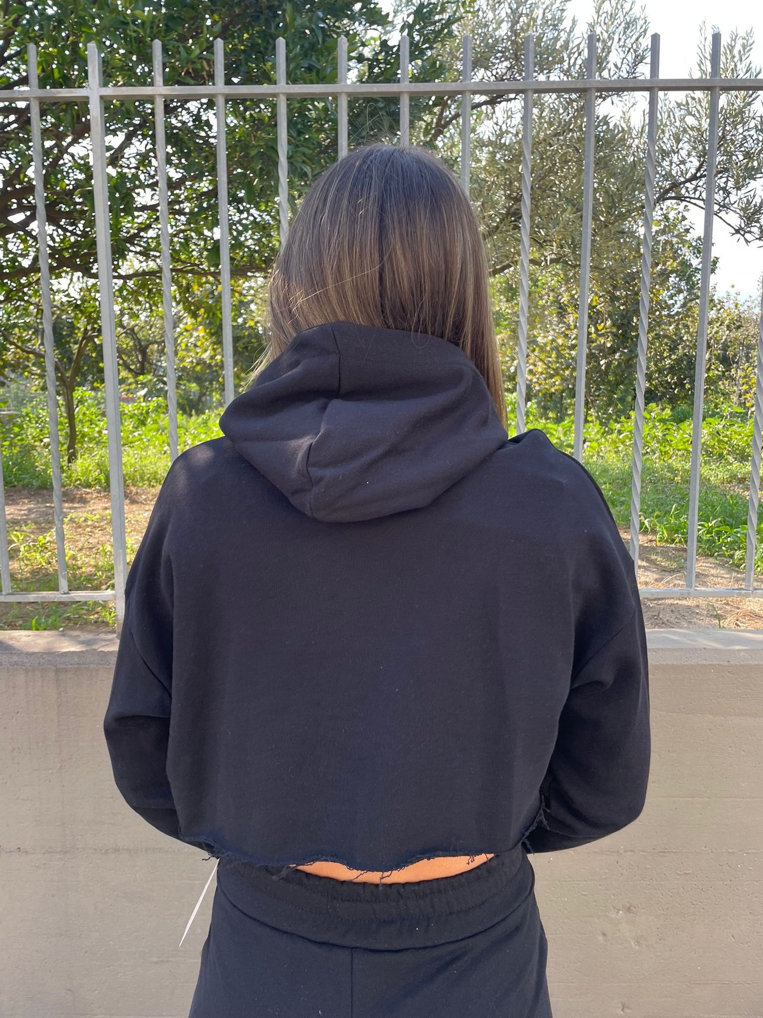 Felpa crop con taglio laser e cappuccio