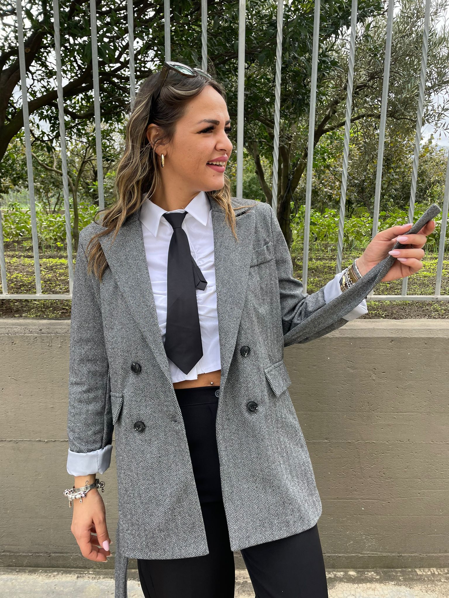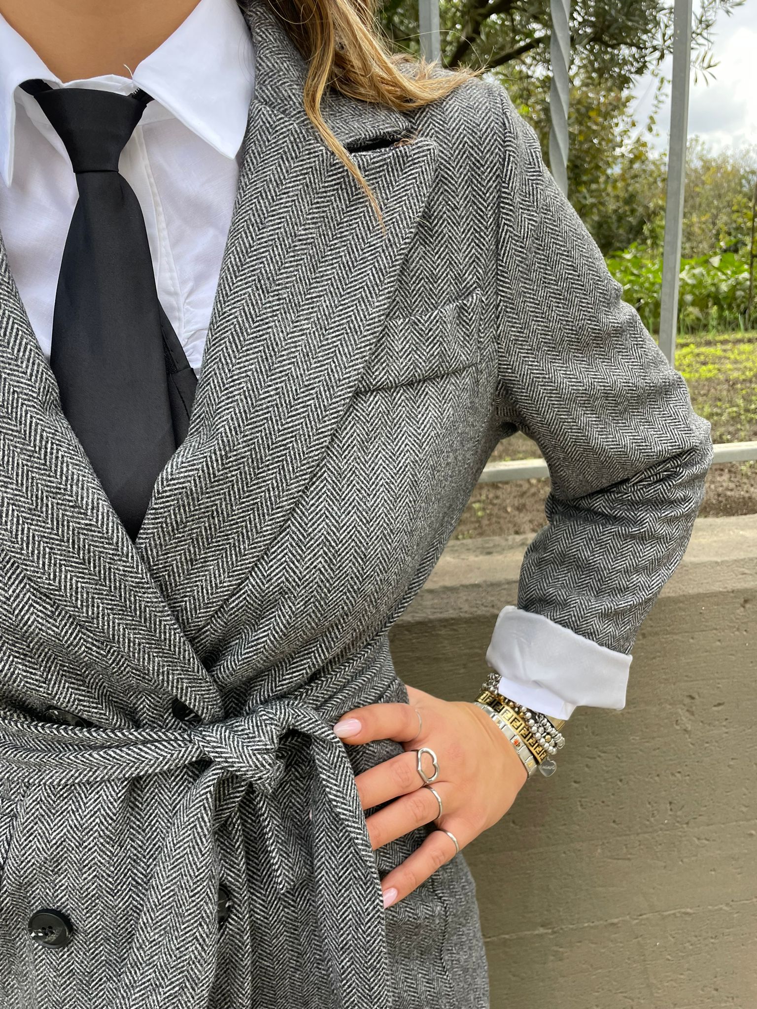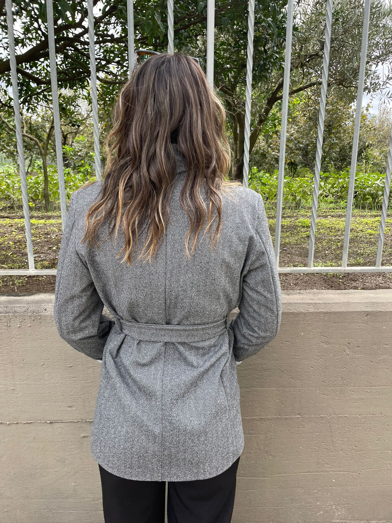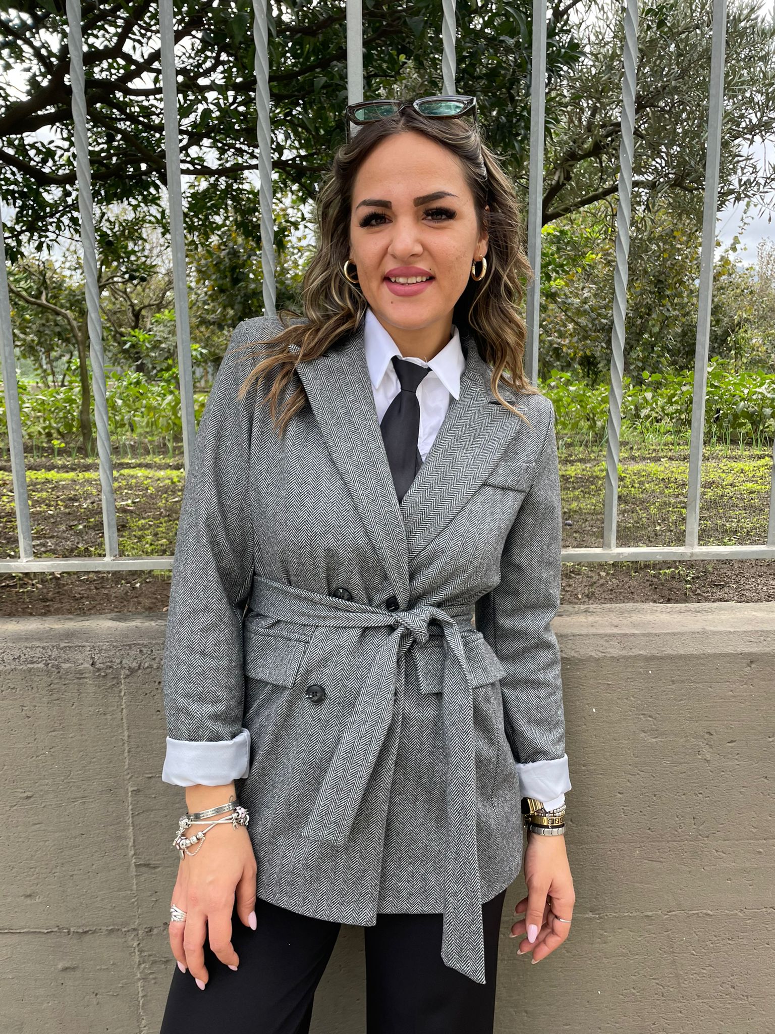 Giacca doppio petto con cintura in vita