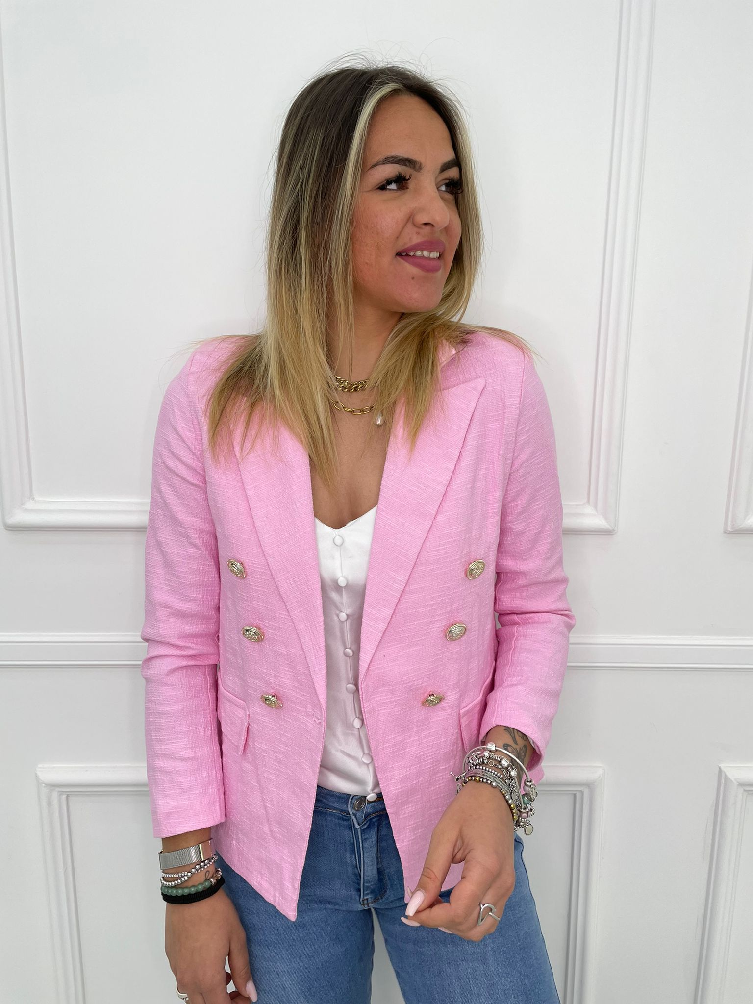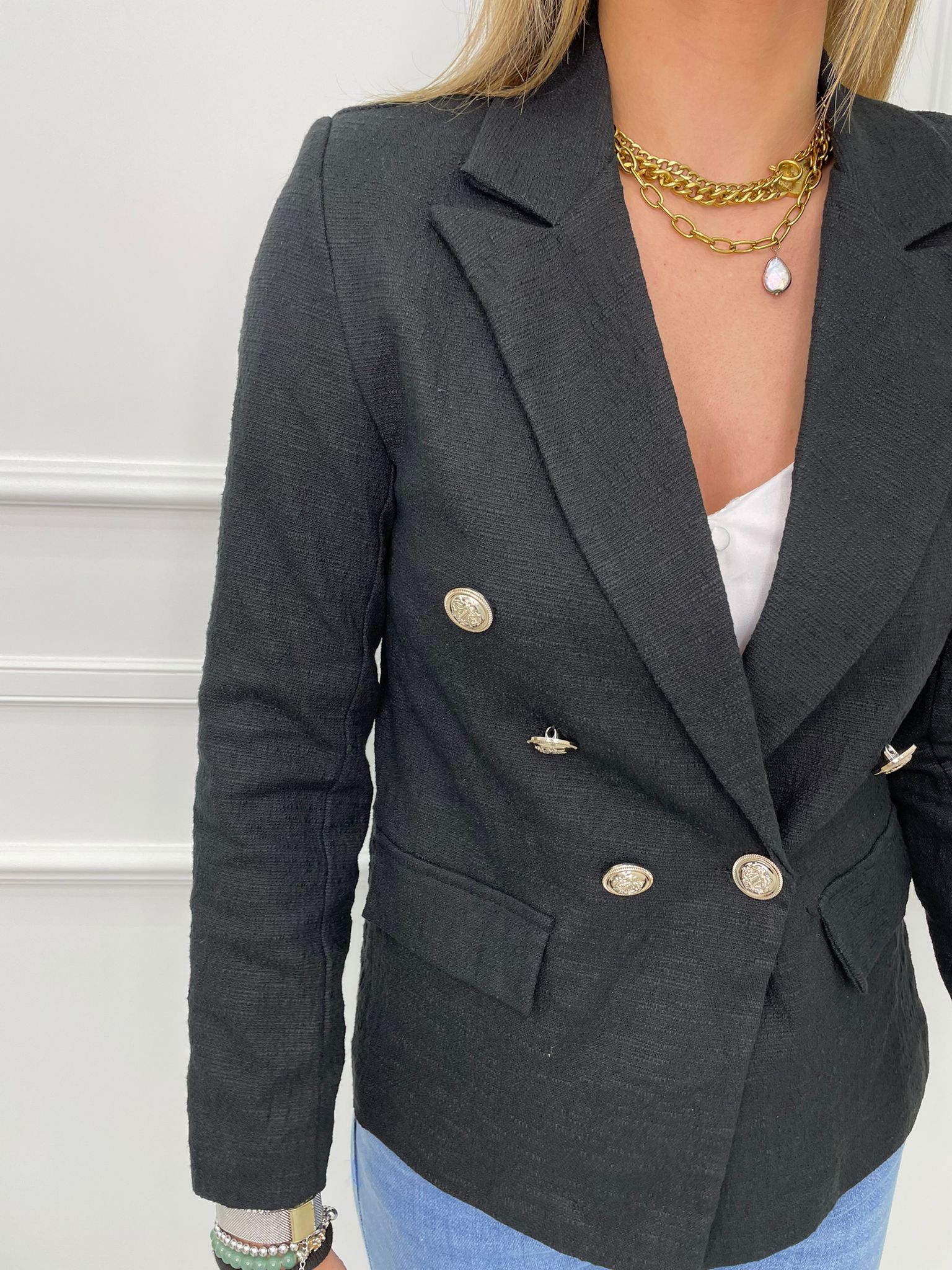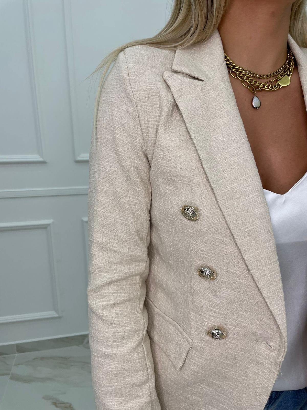Giacca tweed doppio petto tinta unita