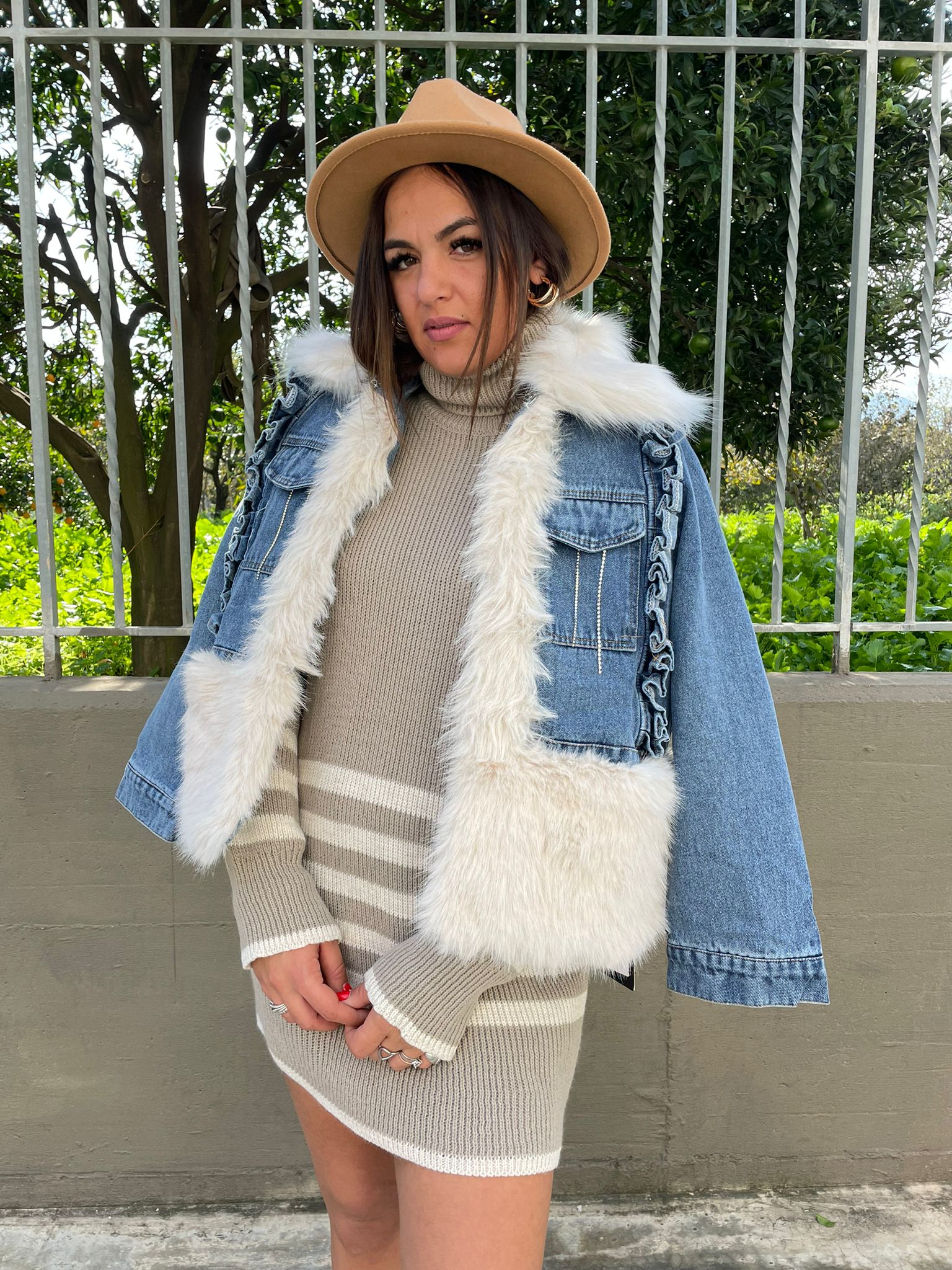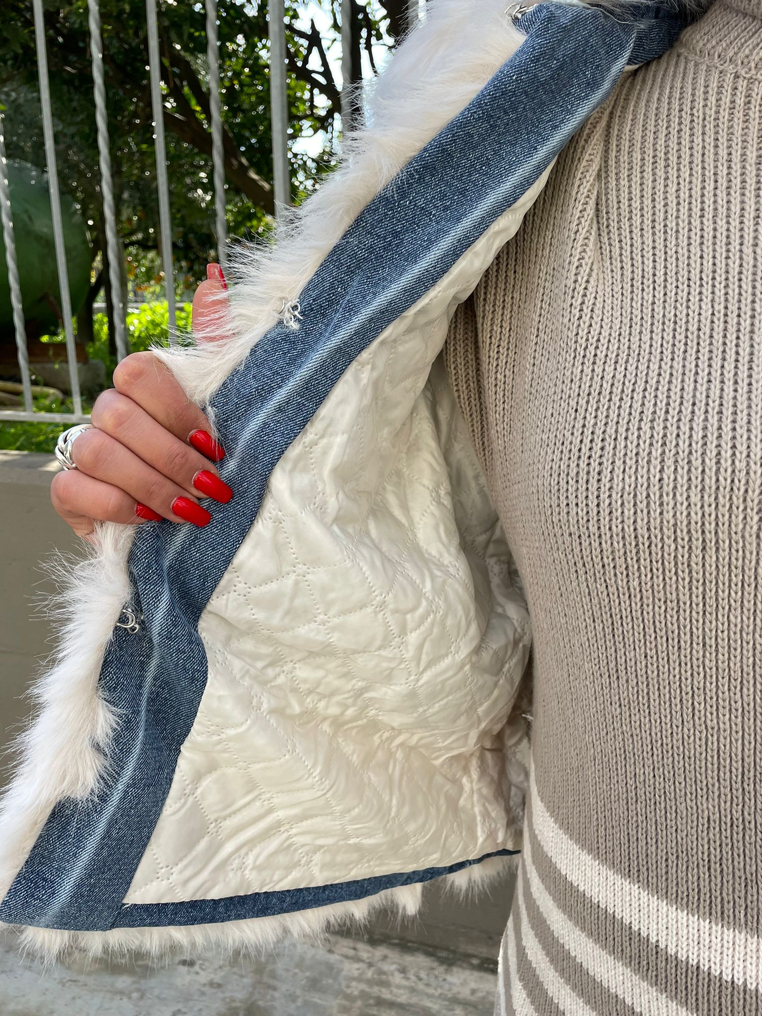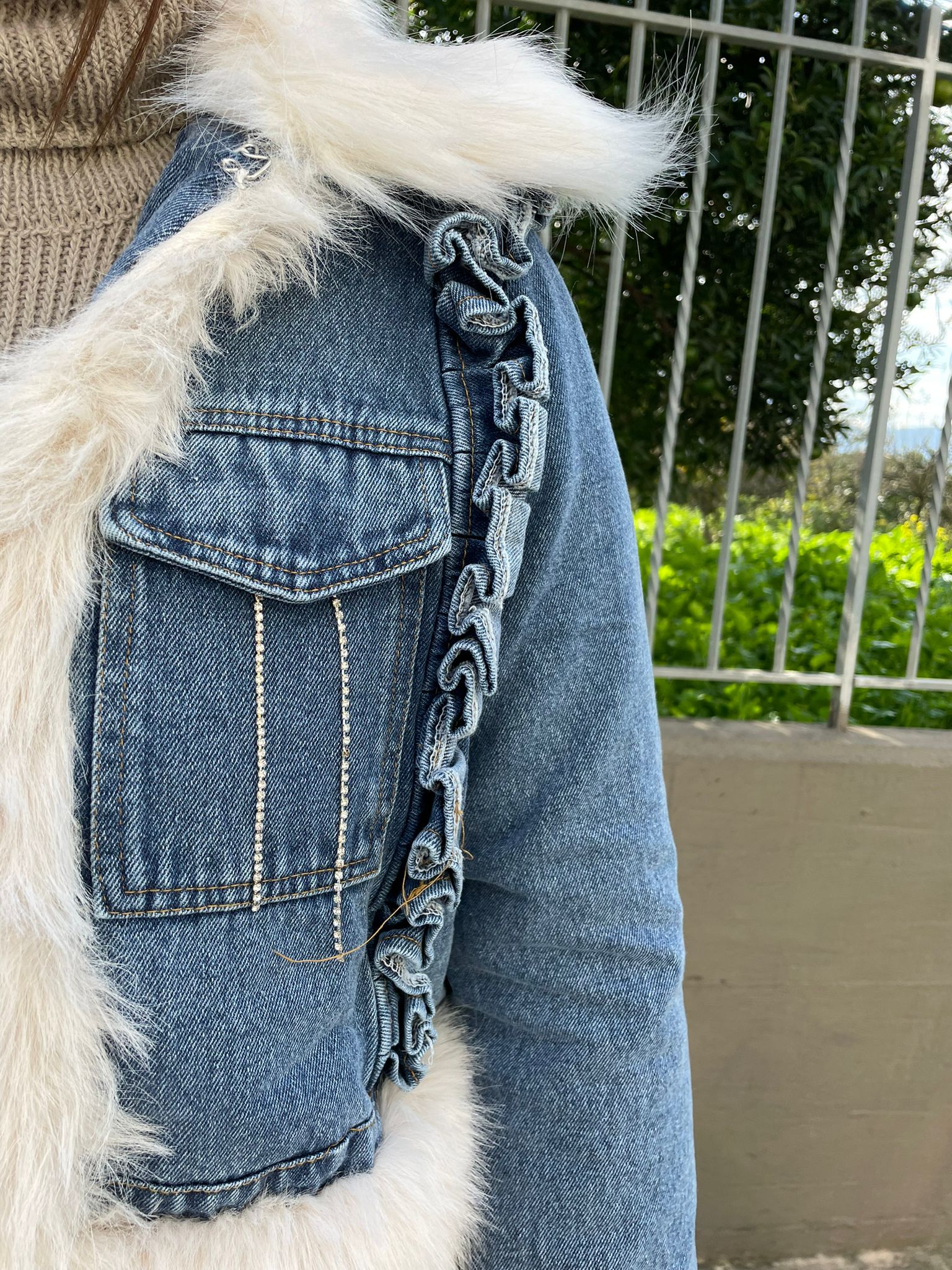 Giubbino di jeans foderato con eco pelliccia