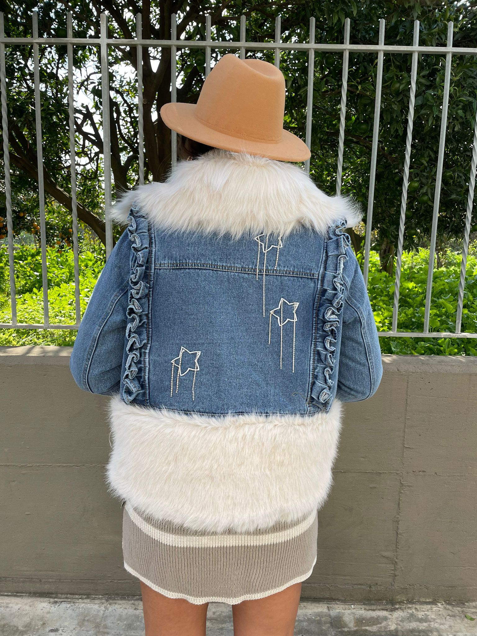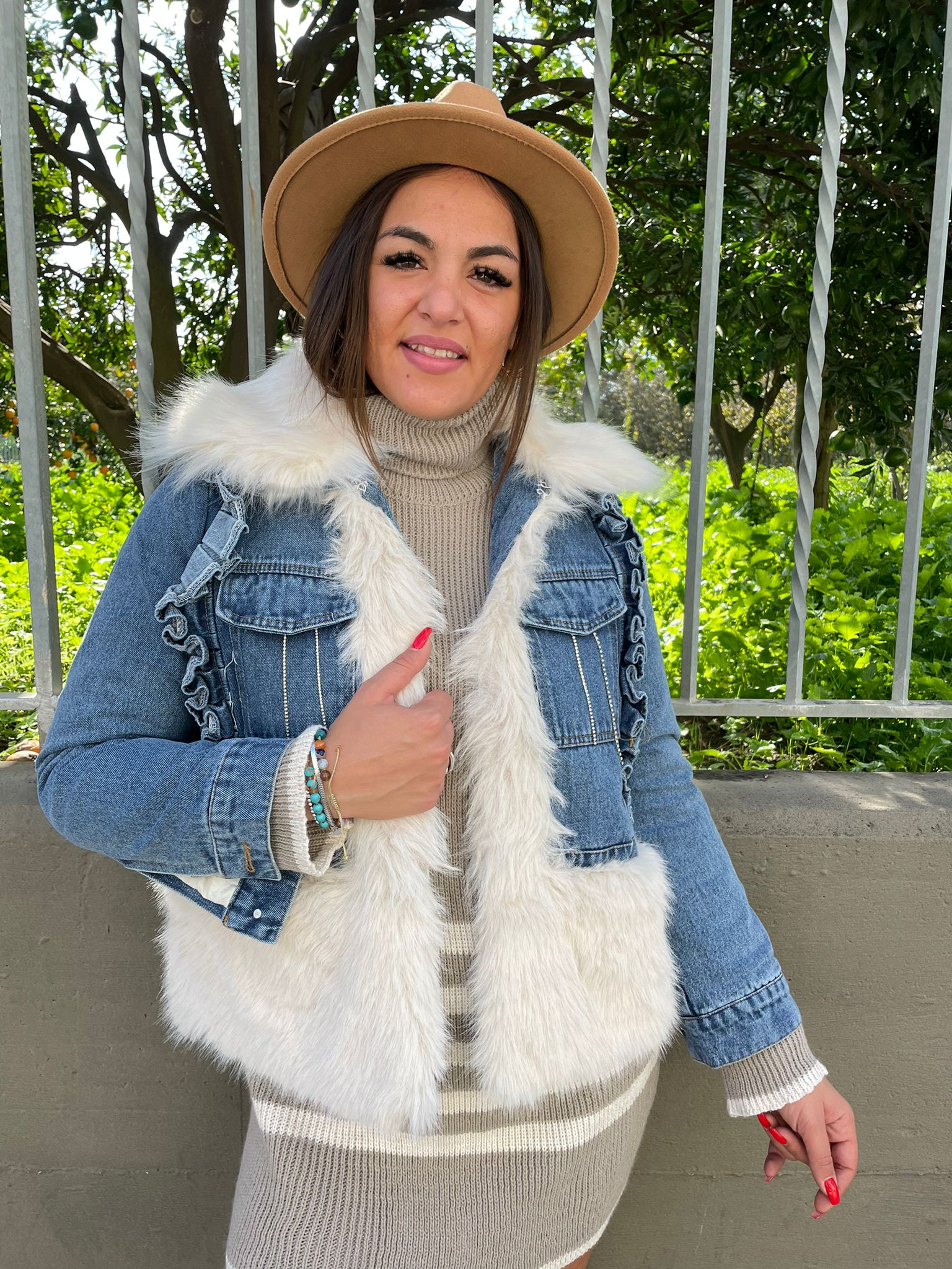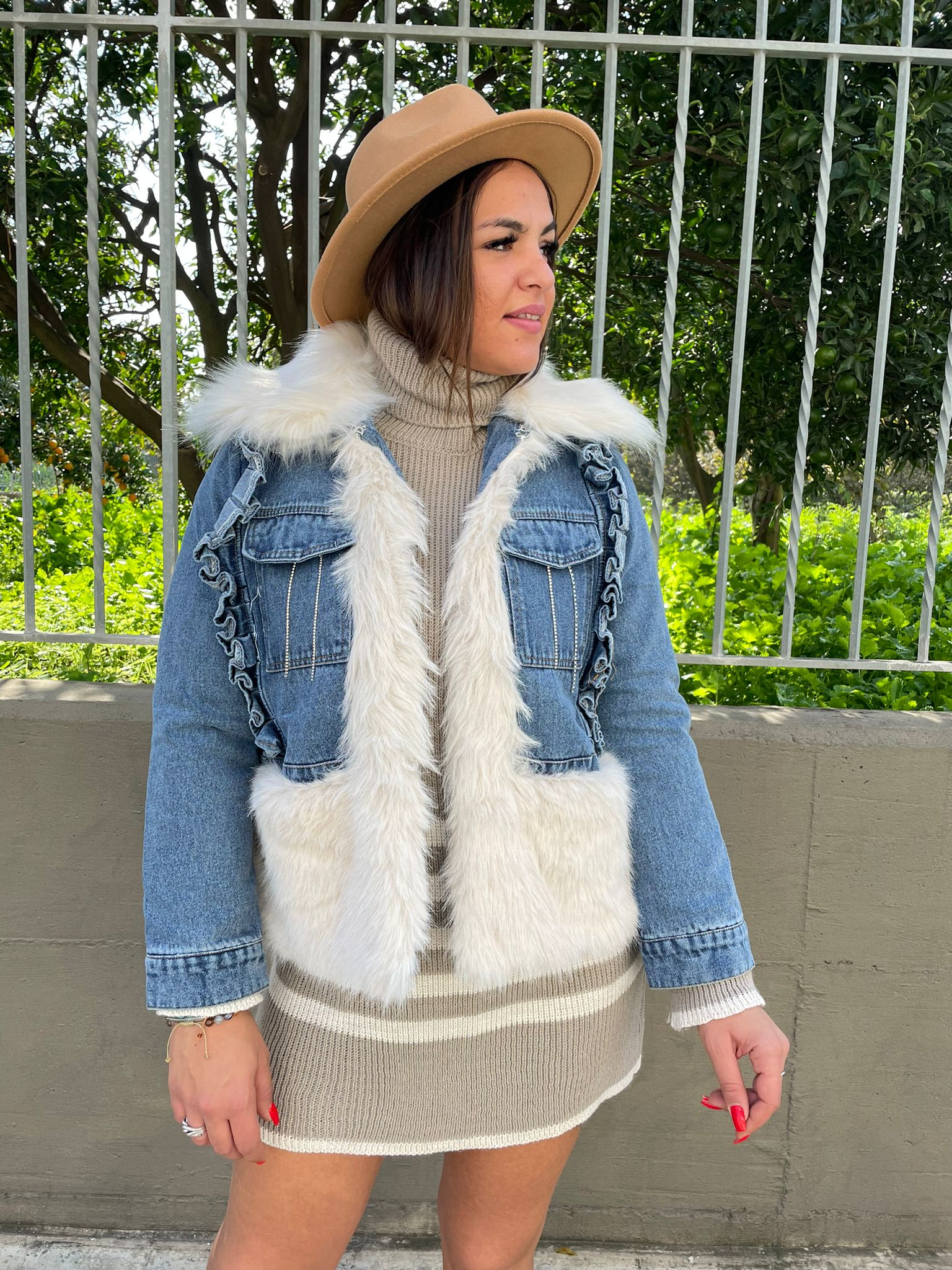 Giubbino di jeans foderato con eco pelliccia
