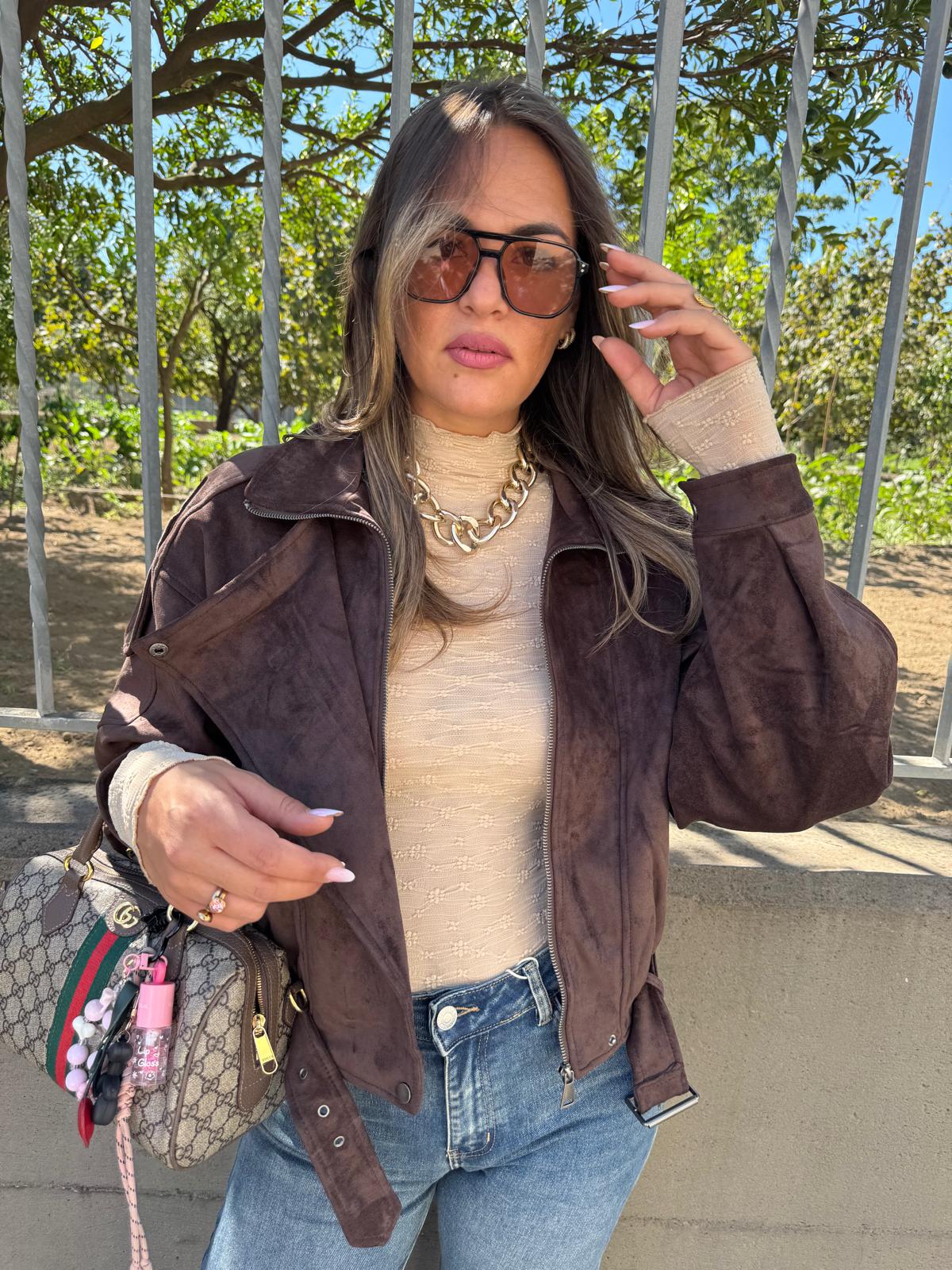 - La modella è una taglia 44, alta 1,79m e indossa la taglia "M/L"