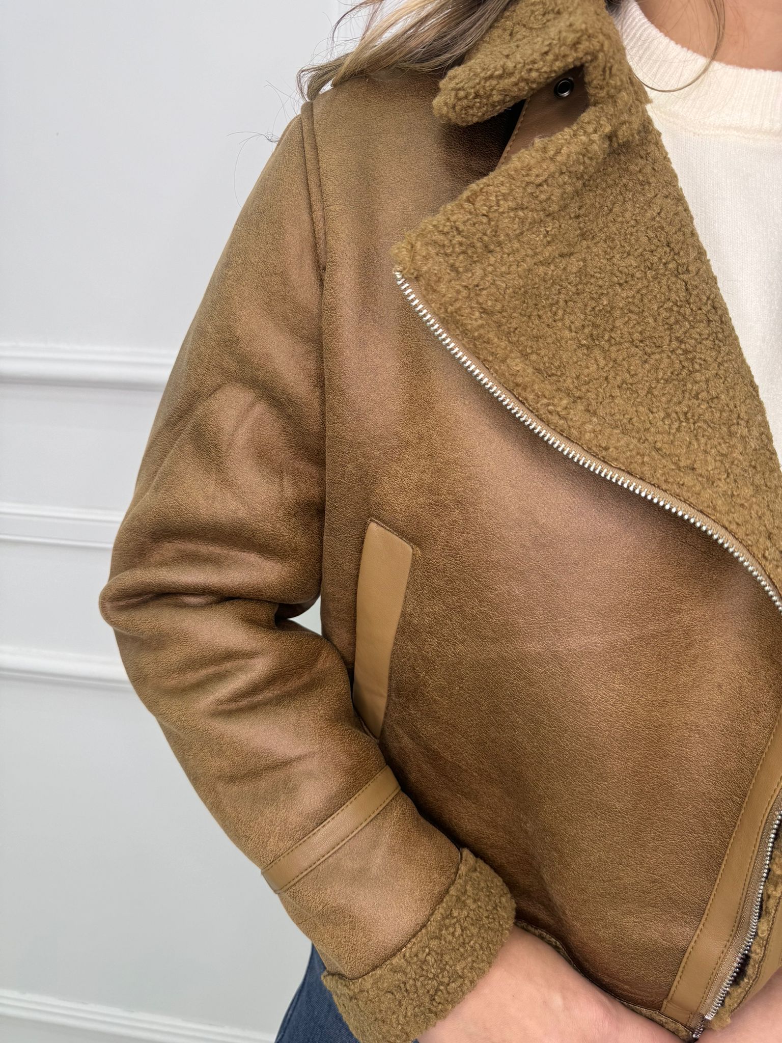 - La modella è una taglia 44, alta 1,79m e indossa la taglia "L"