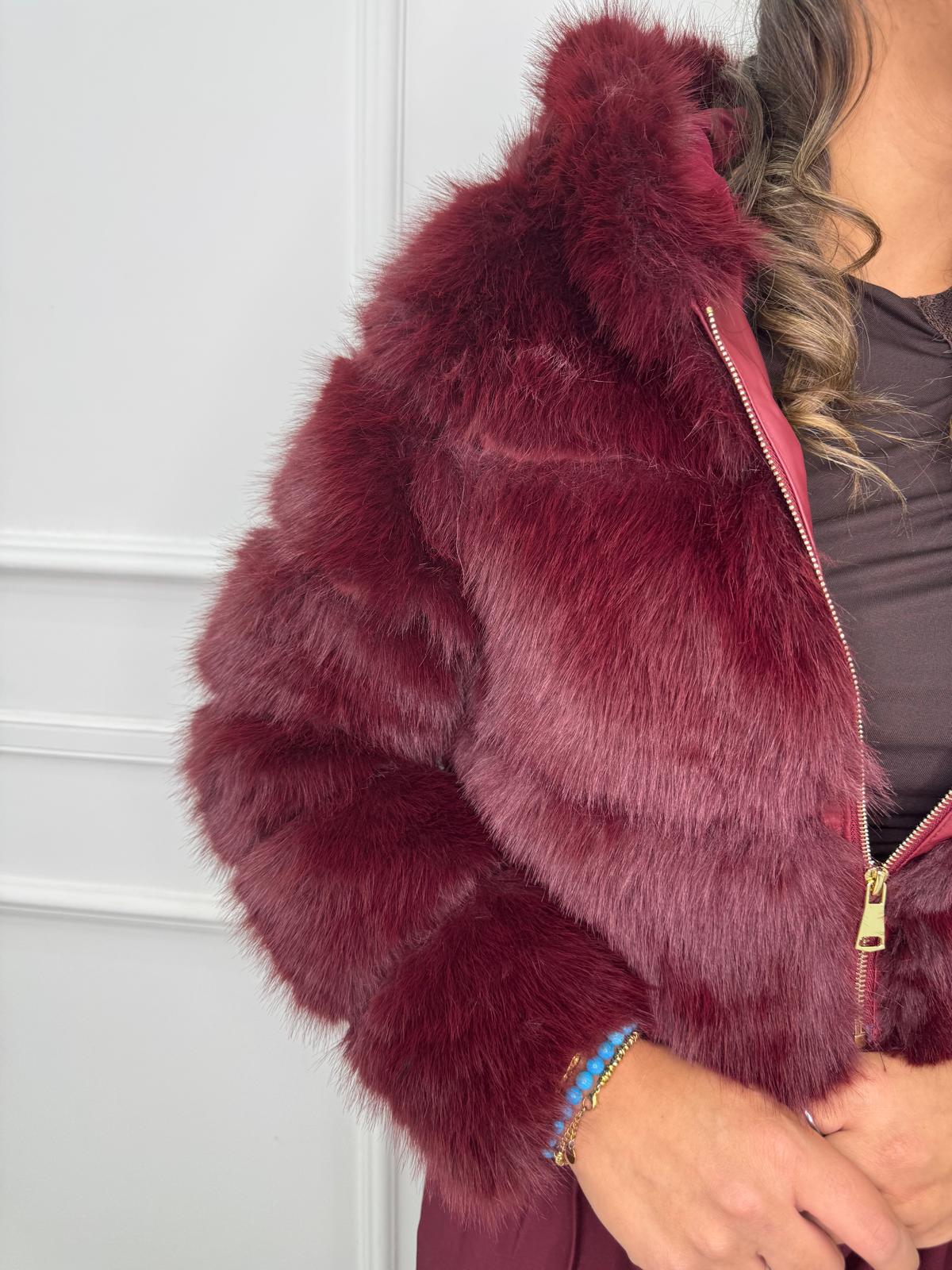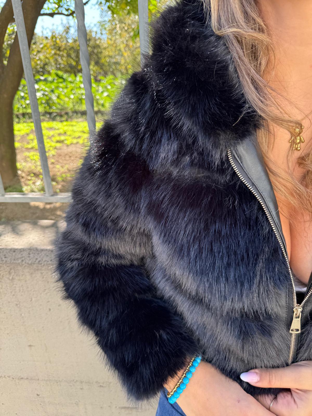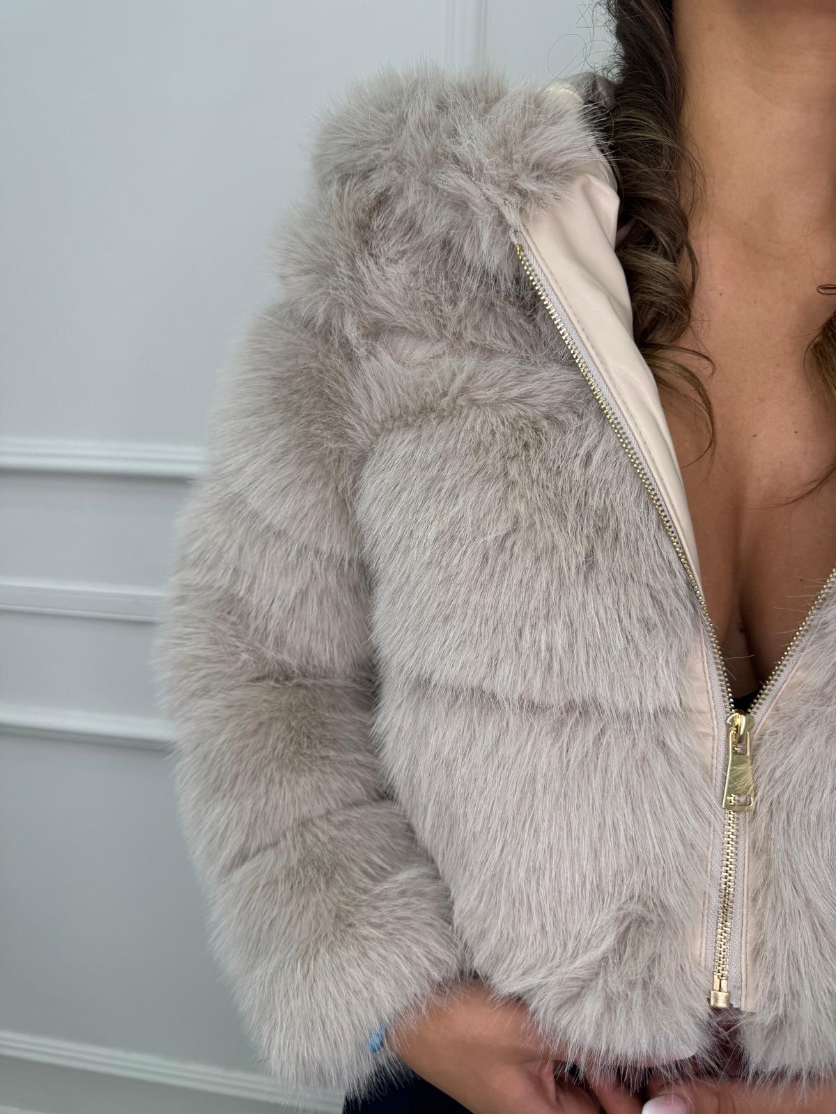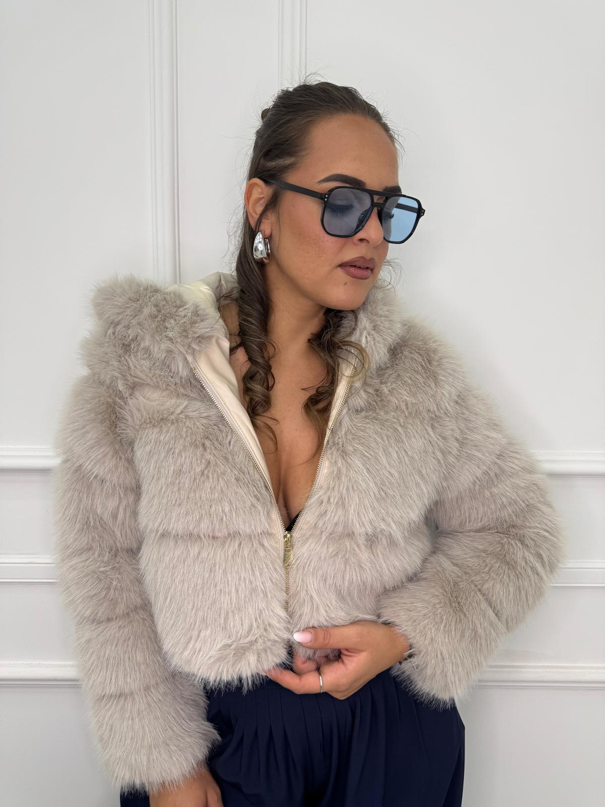 Pelliccia eco crop con zip e cappuccio