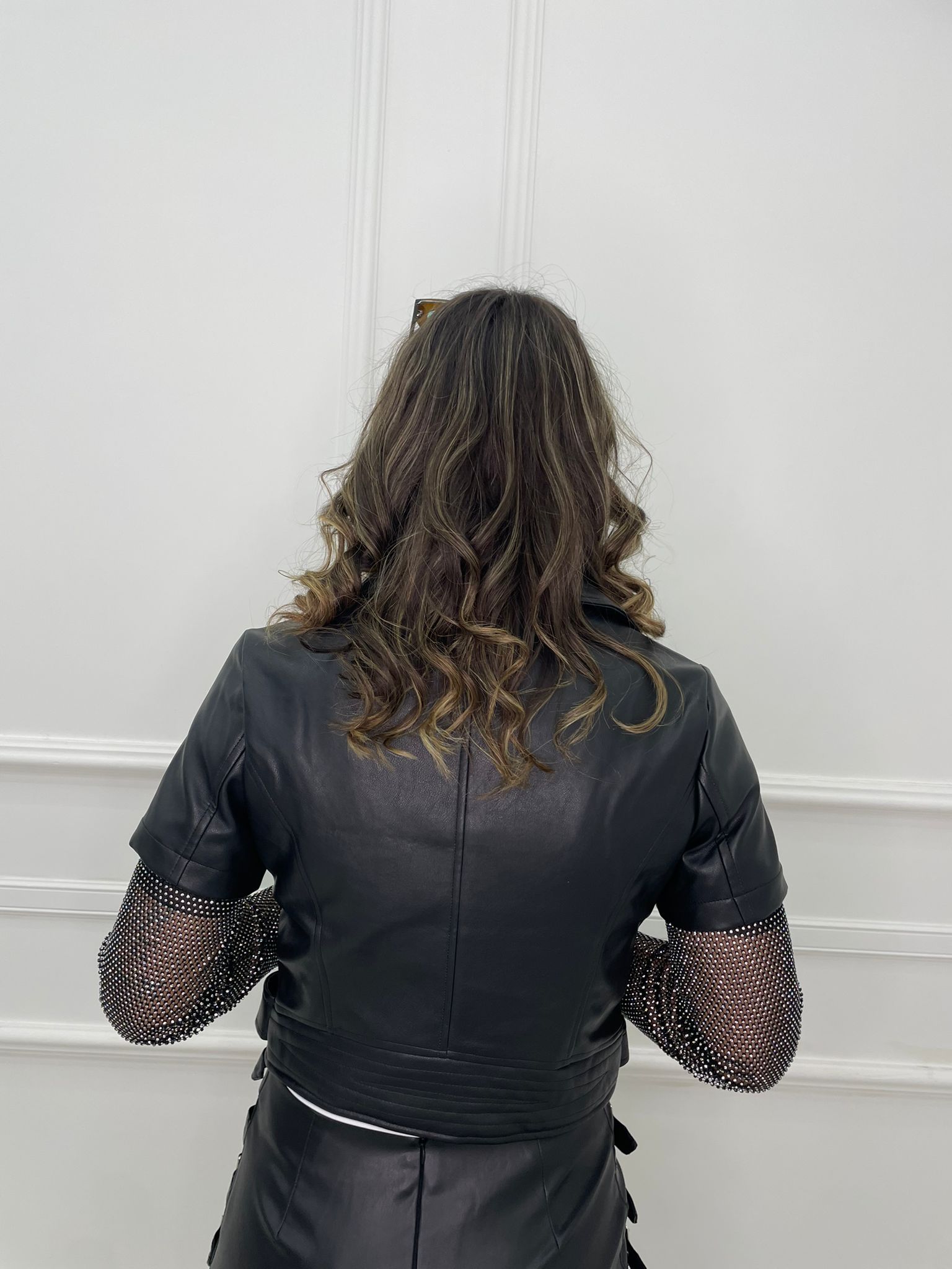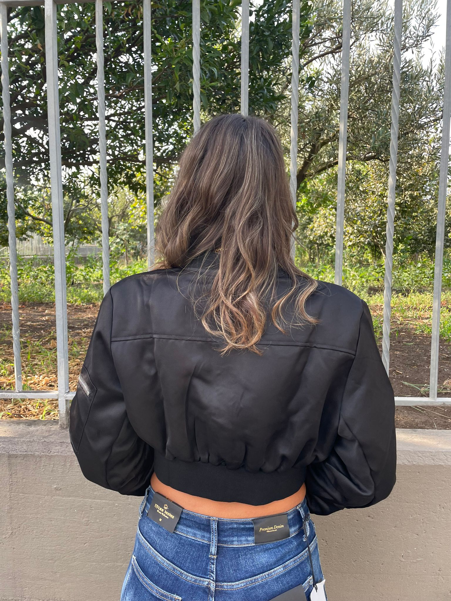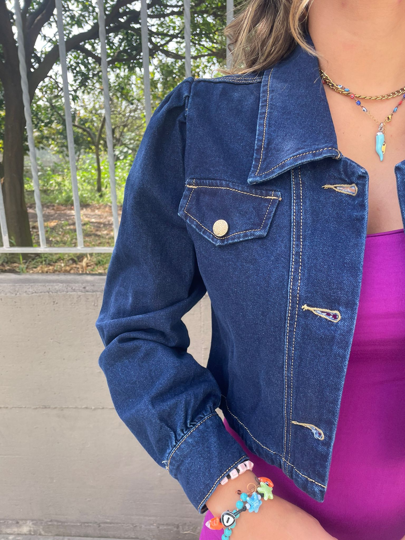 Giubbino di jeans con spalle a sbuffo e bottoni oro