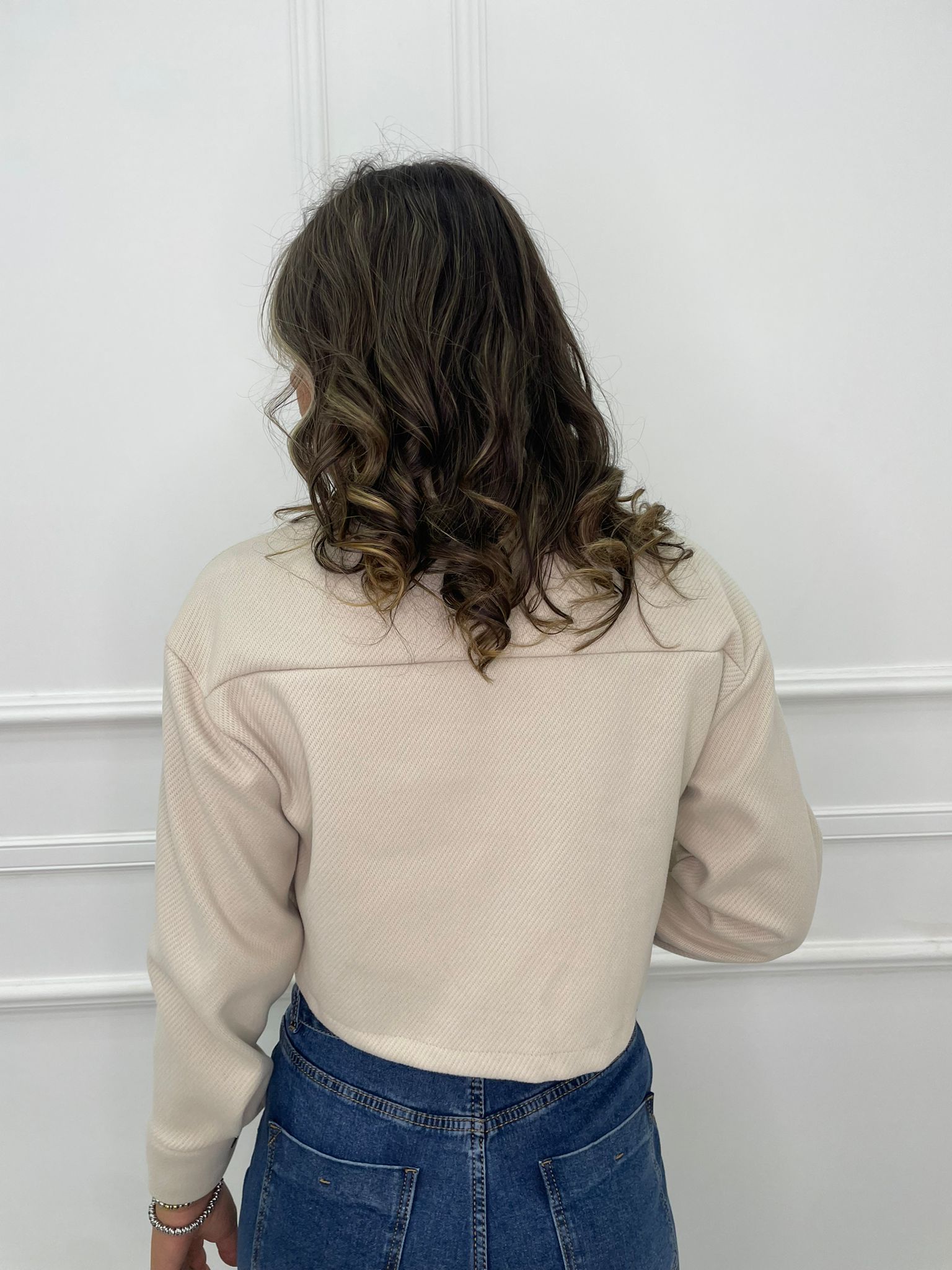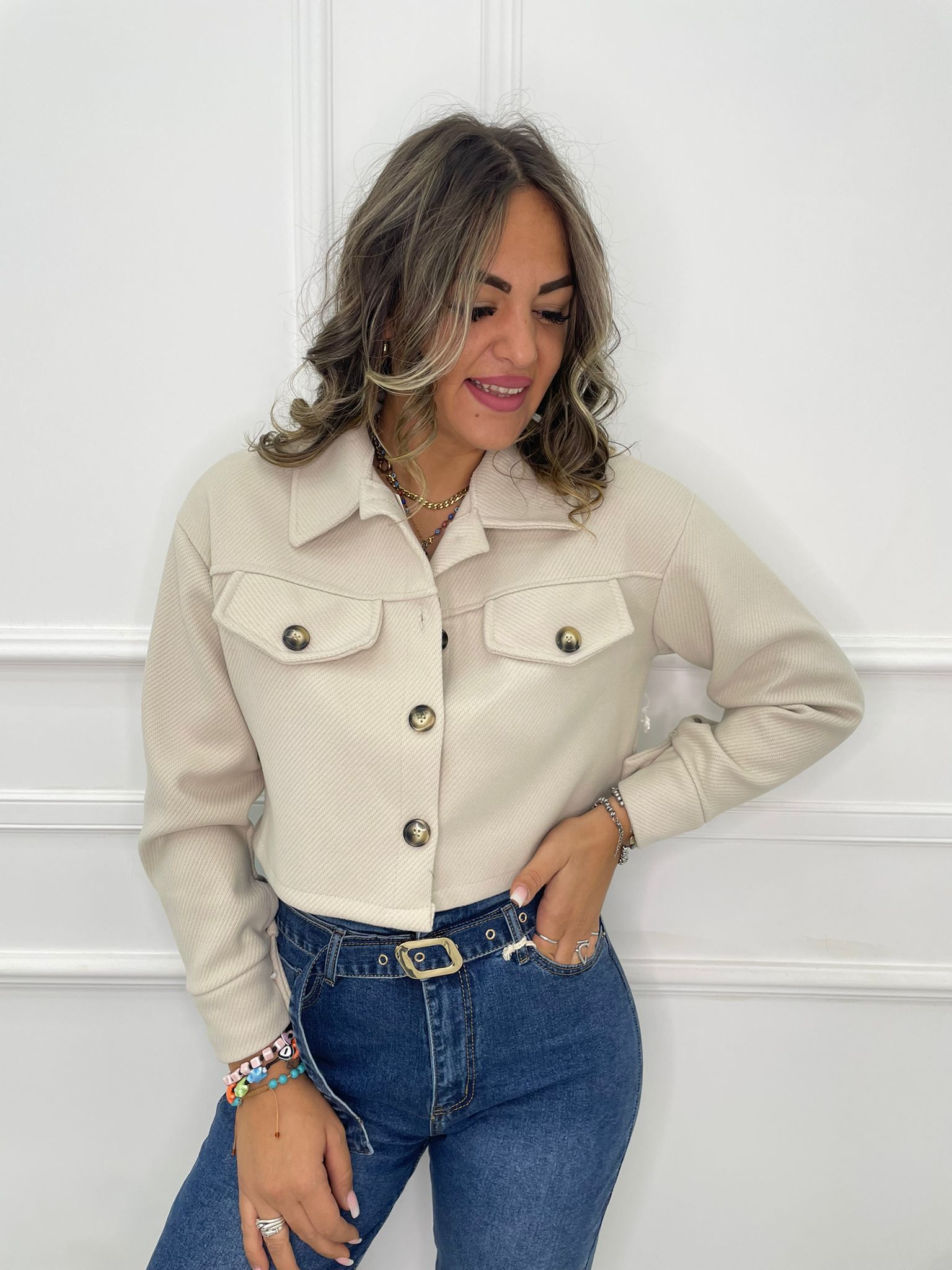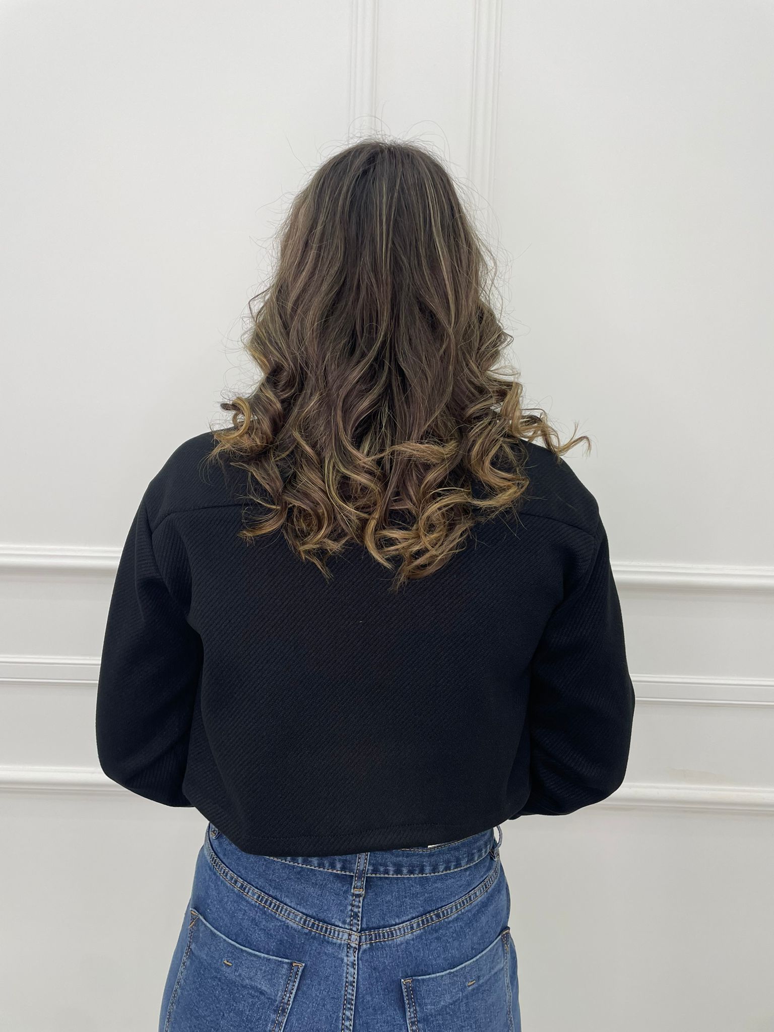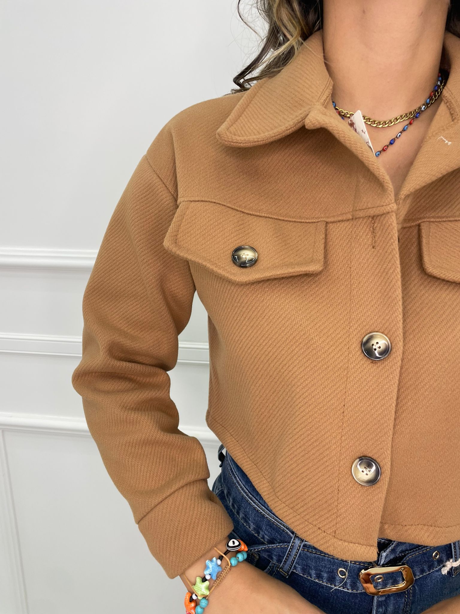 Giubbino di jeans con spalle a sbuffo e bottoni oro
