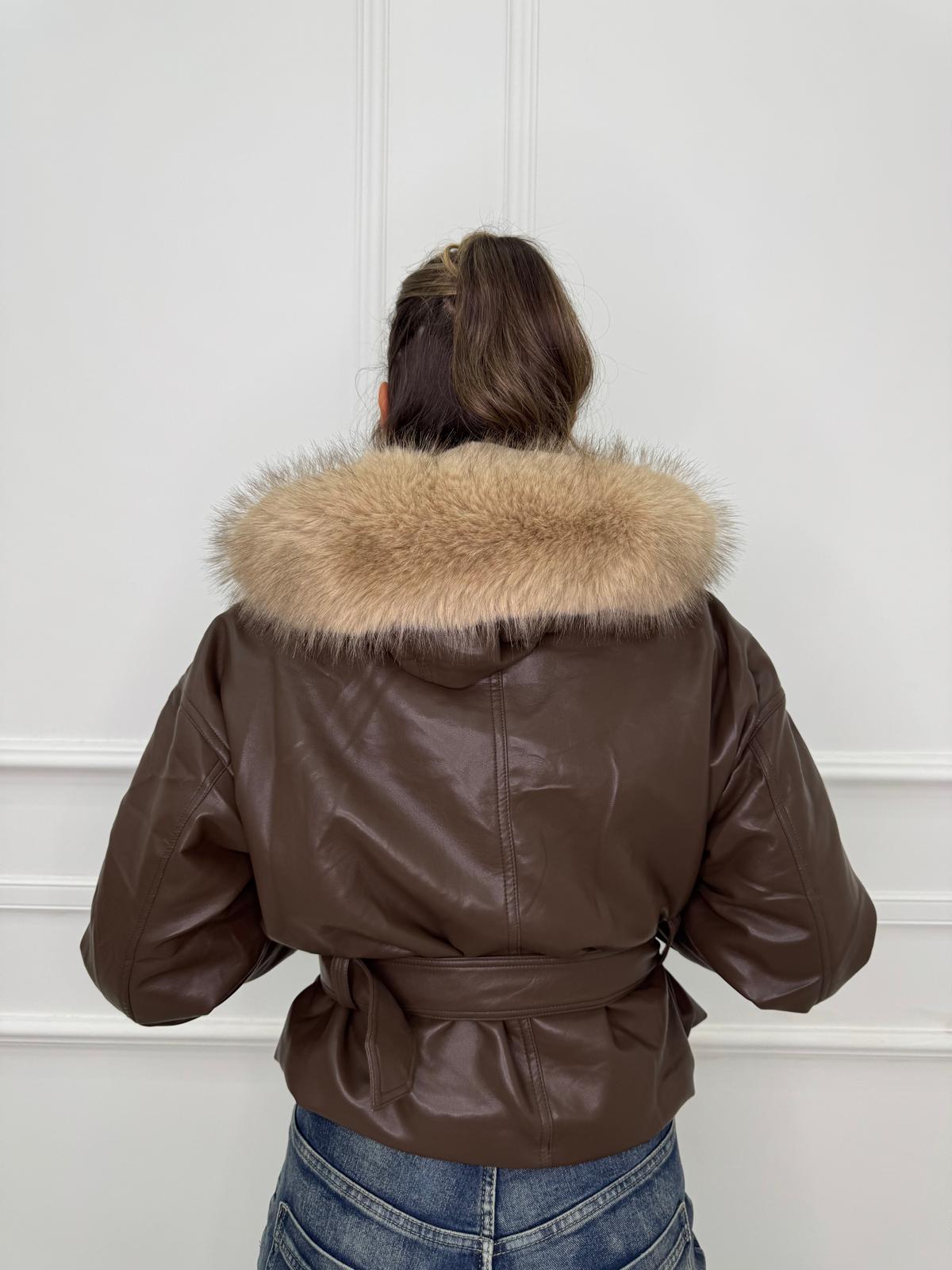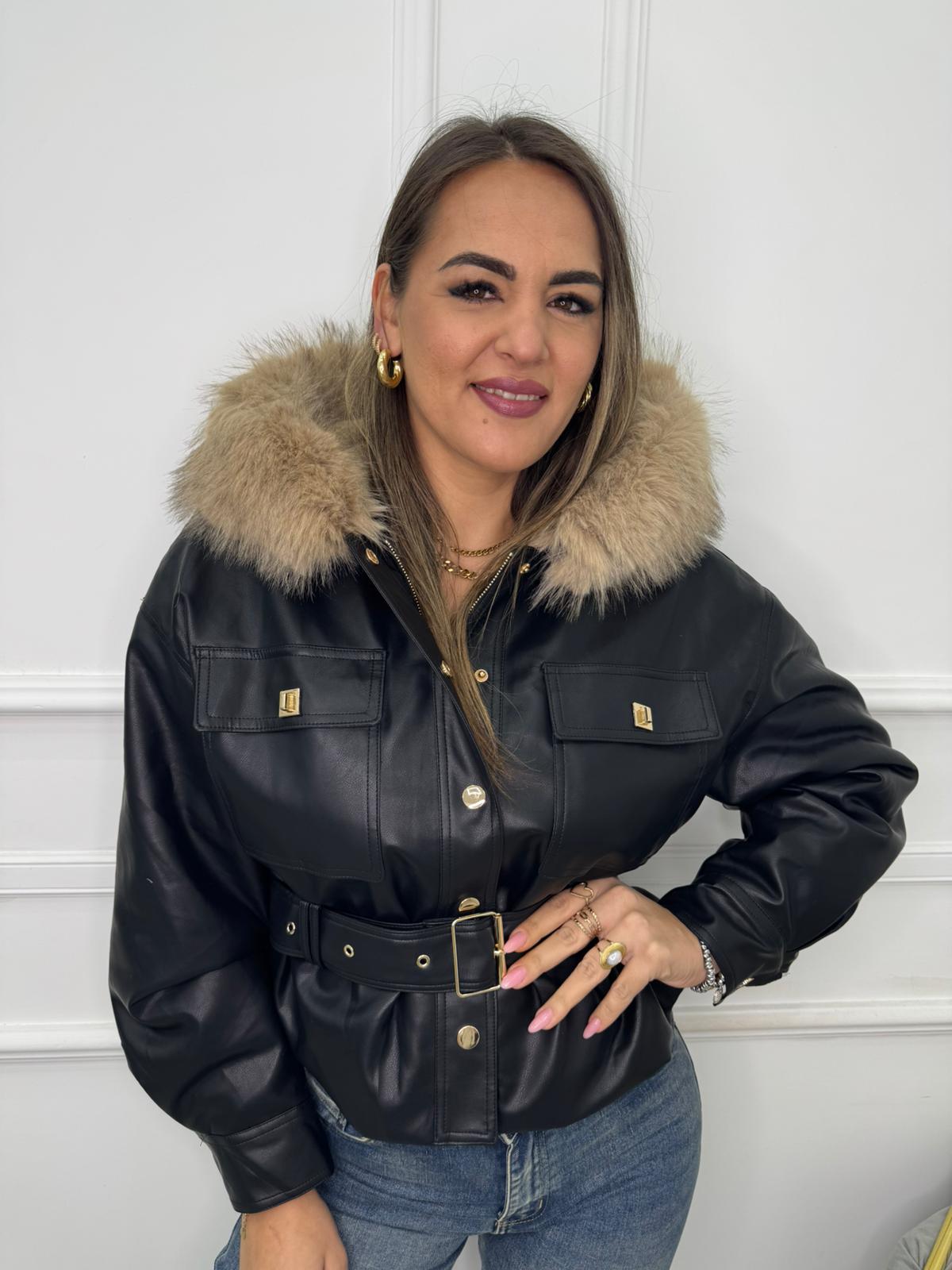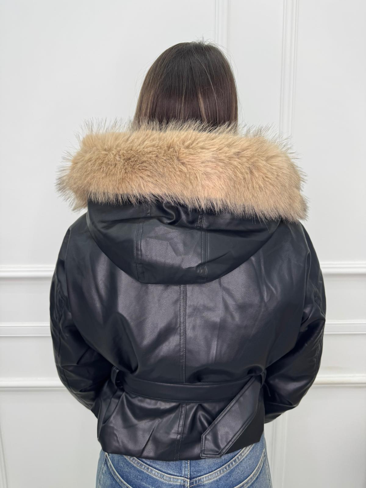 Pelliccia con inserti eco pelle e laccetti regolabili