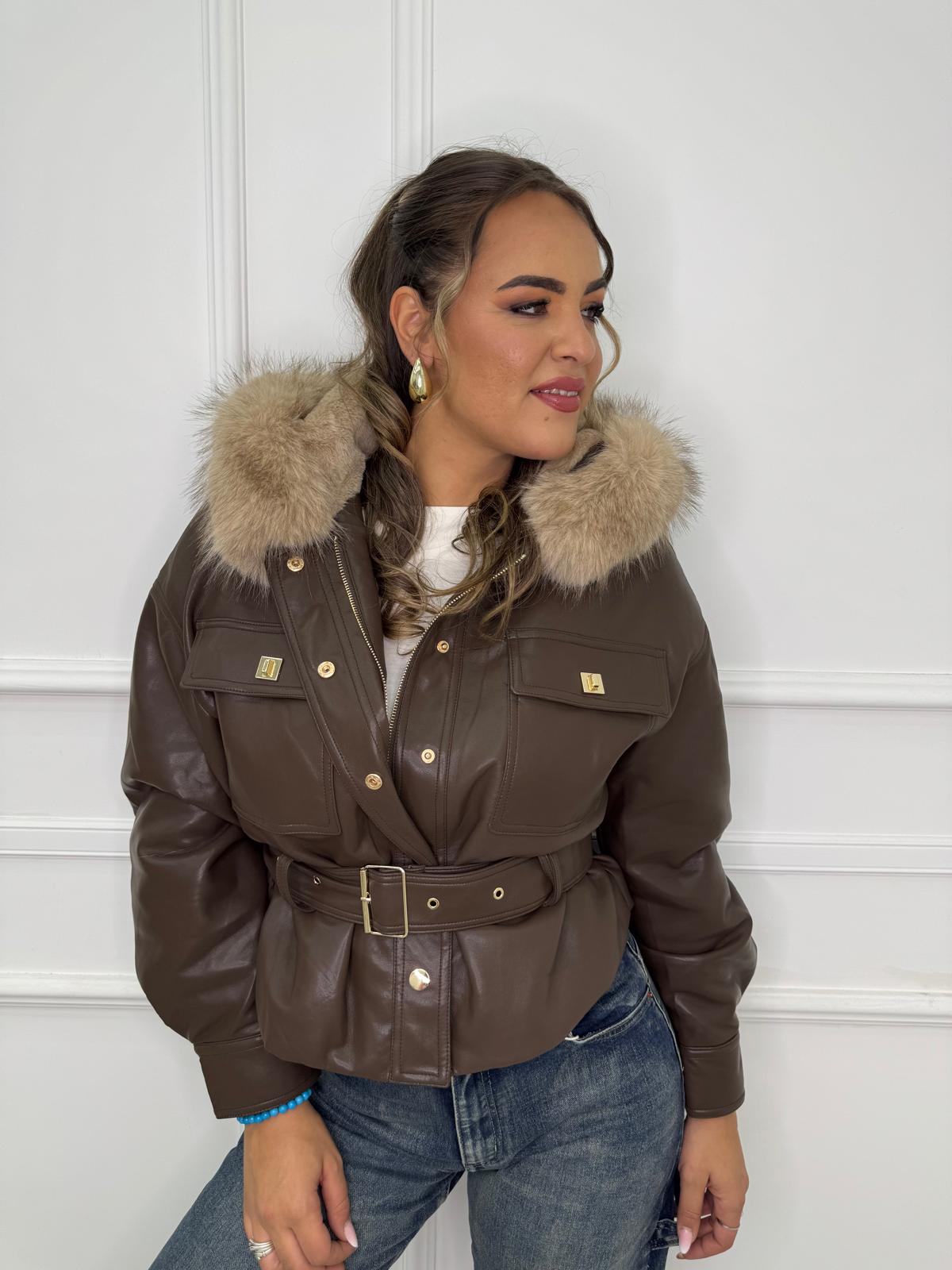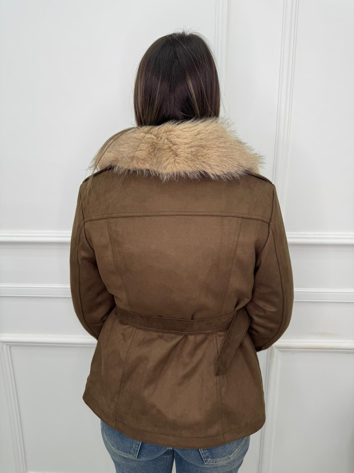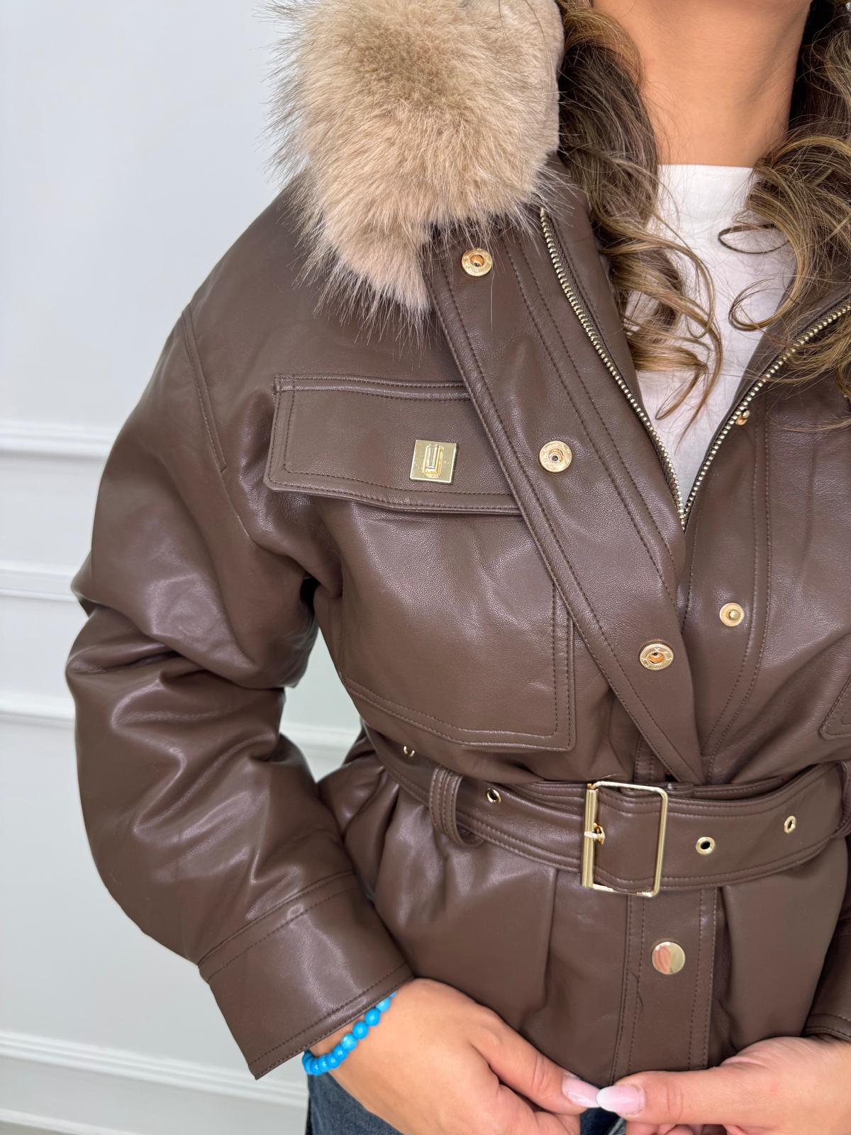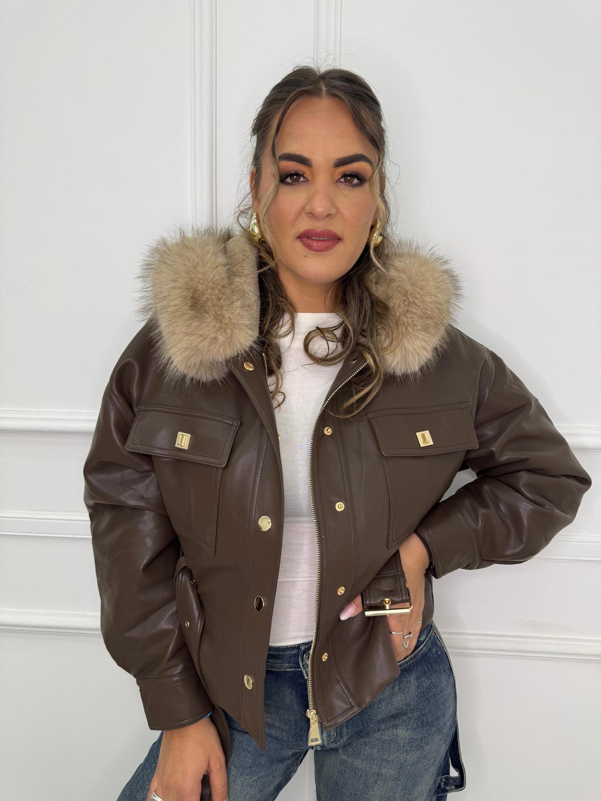 Pelliccia con inserti eco pelle e laccetti regolabili