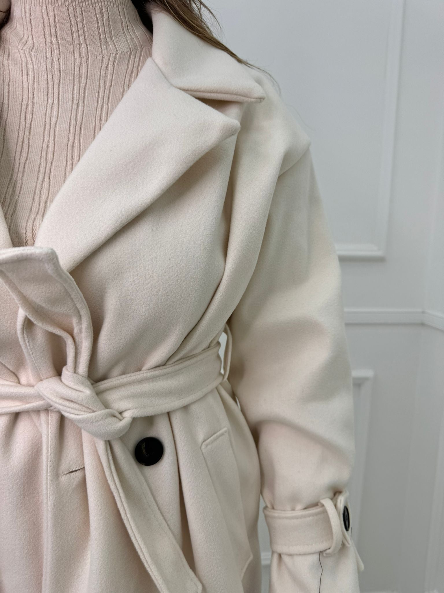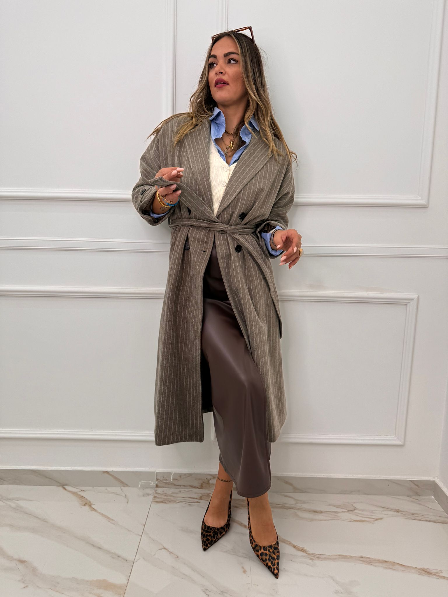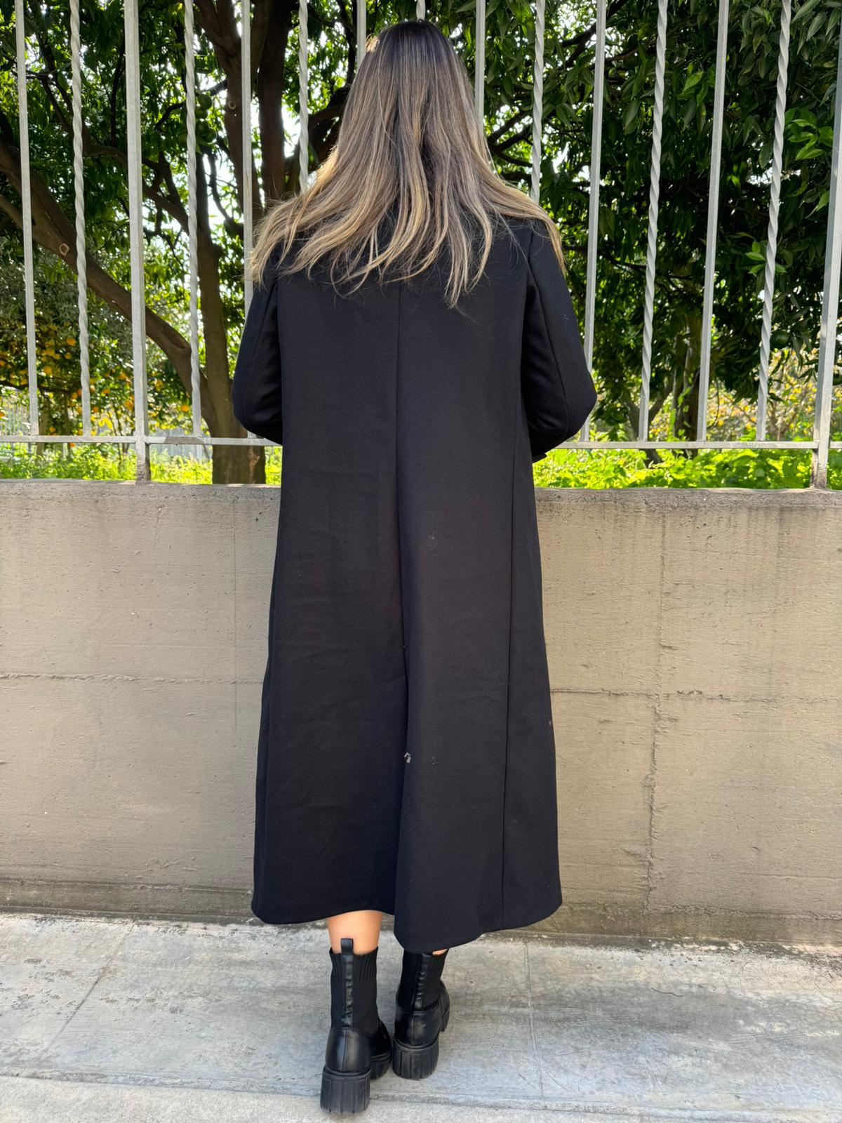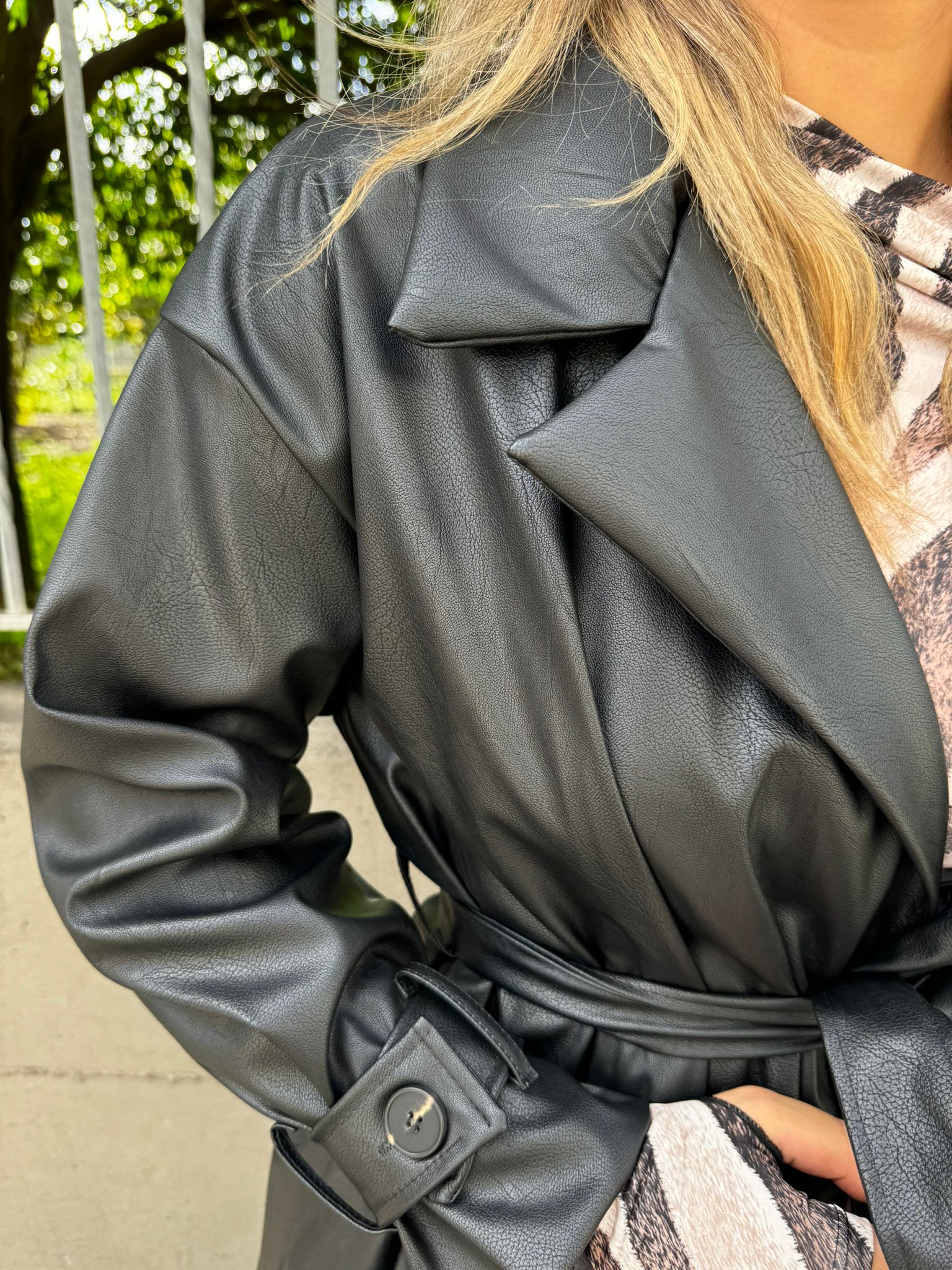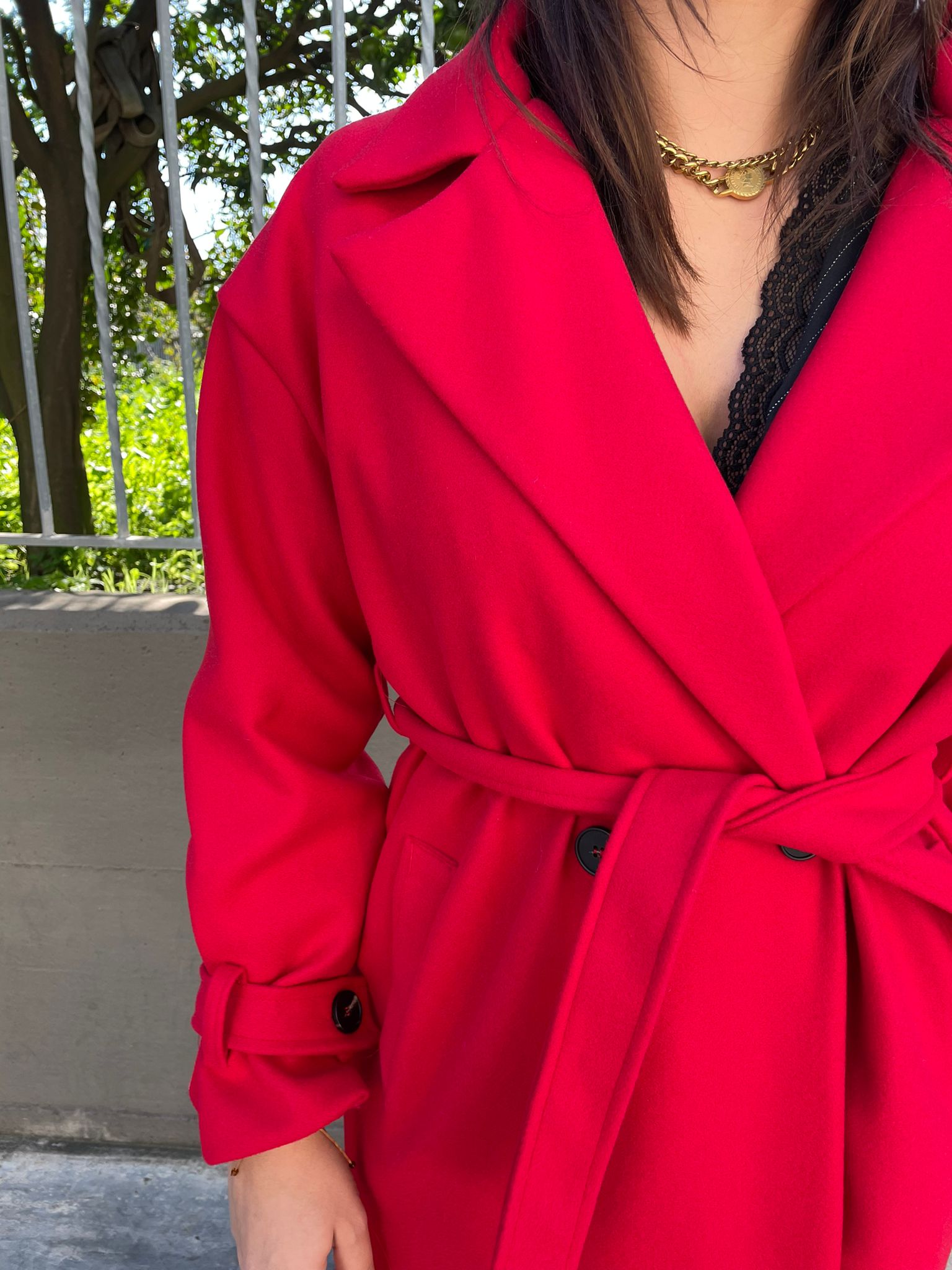 Cappotto doppio petto con cintura e fibbie eco pelle