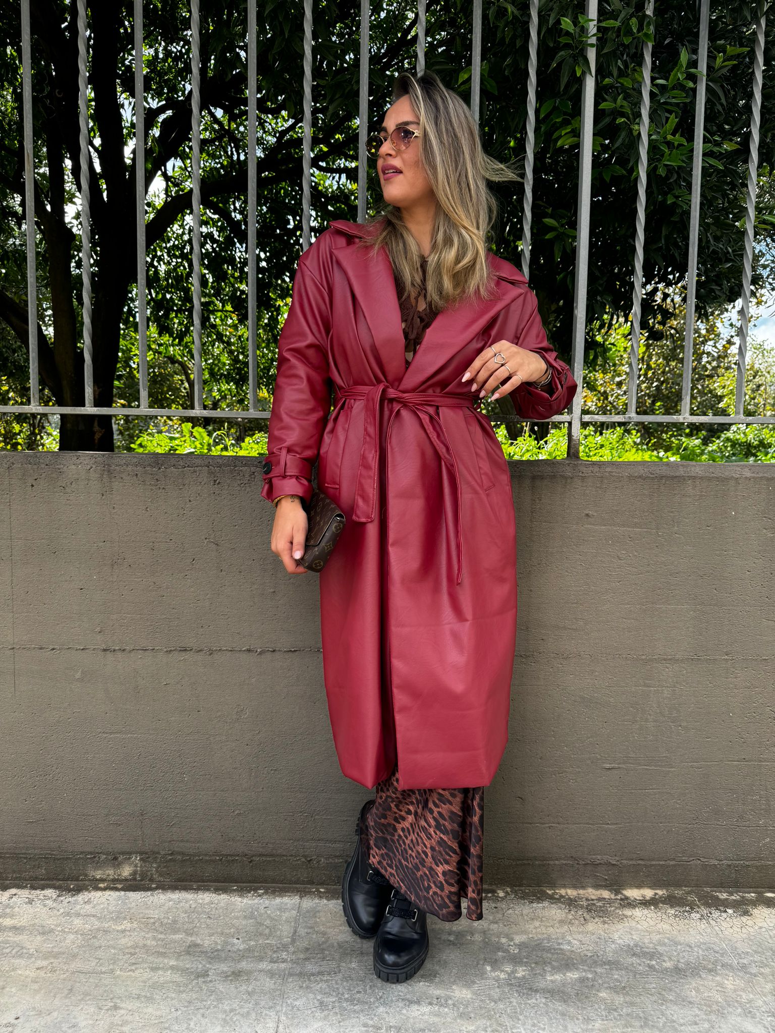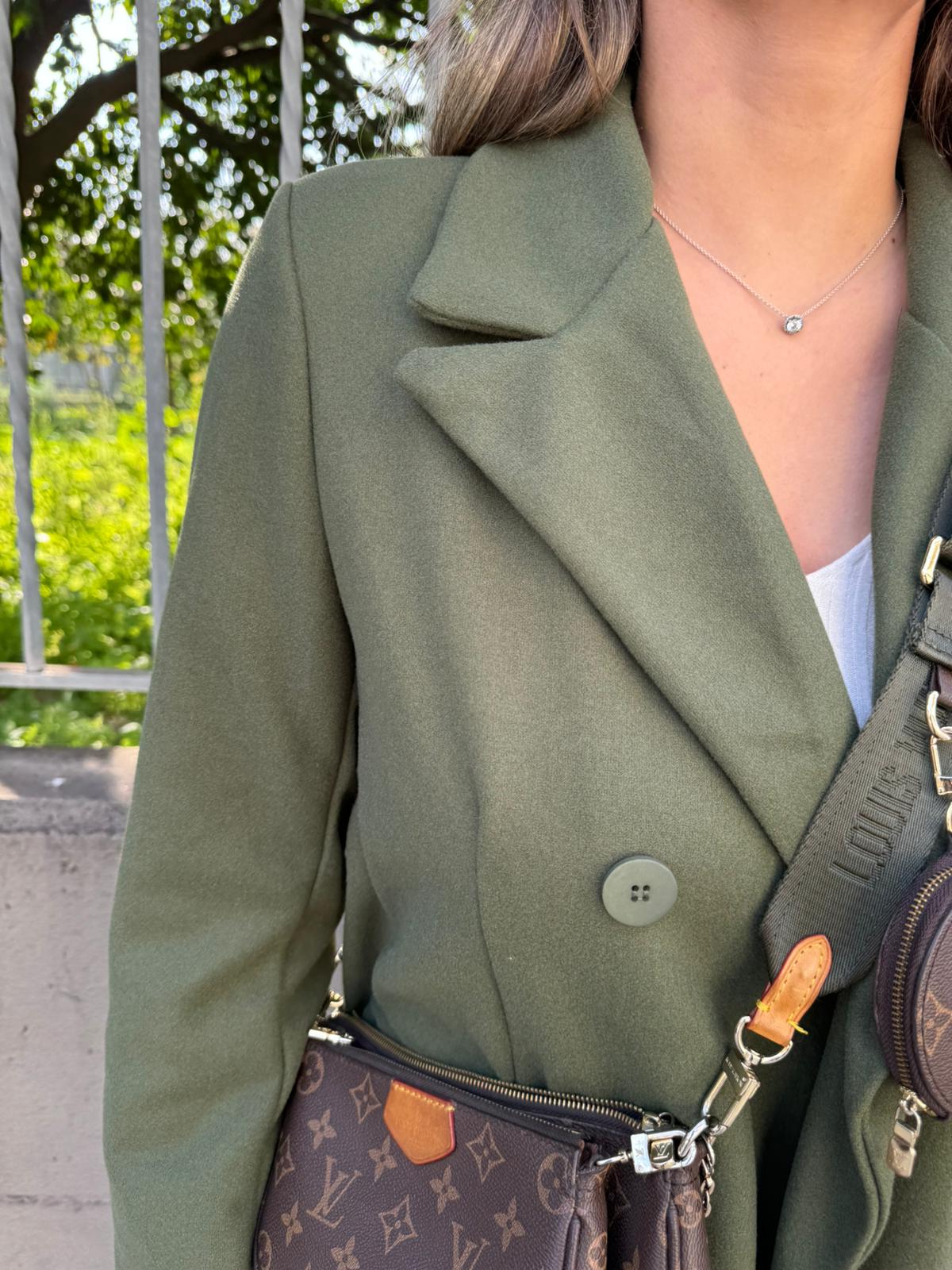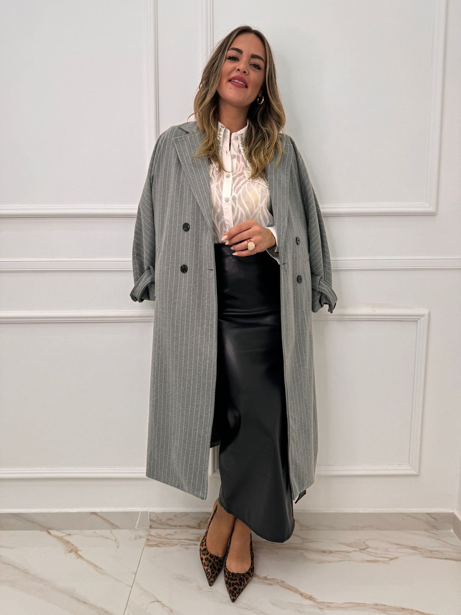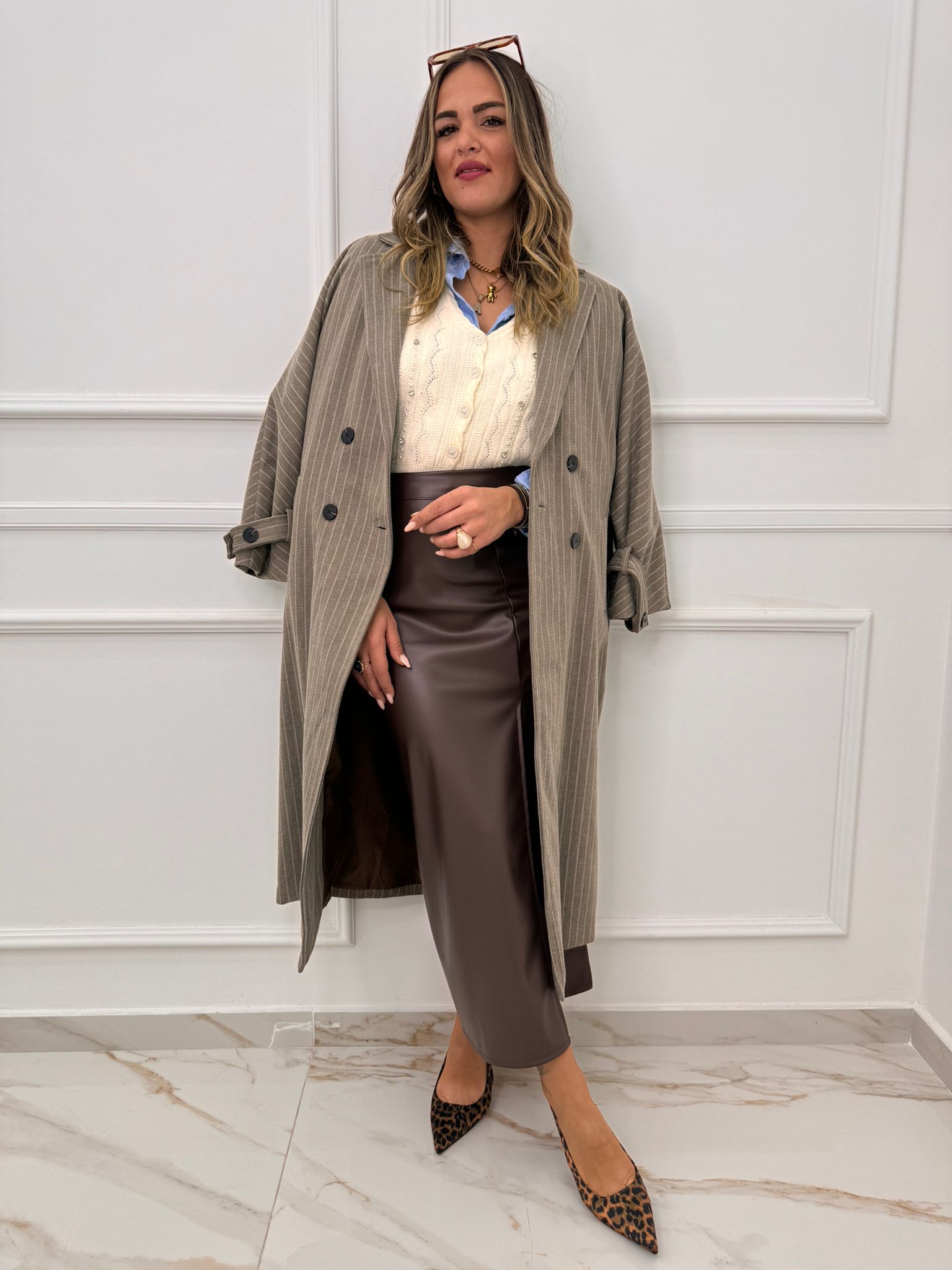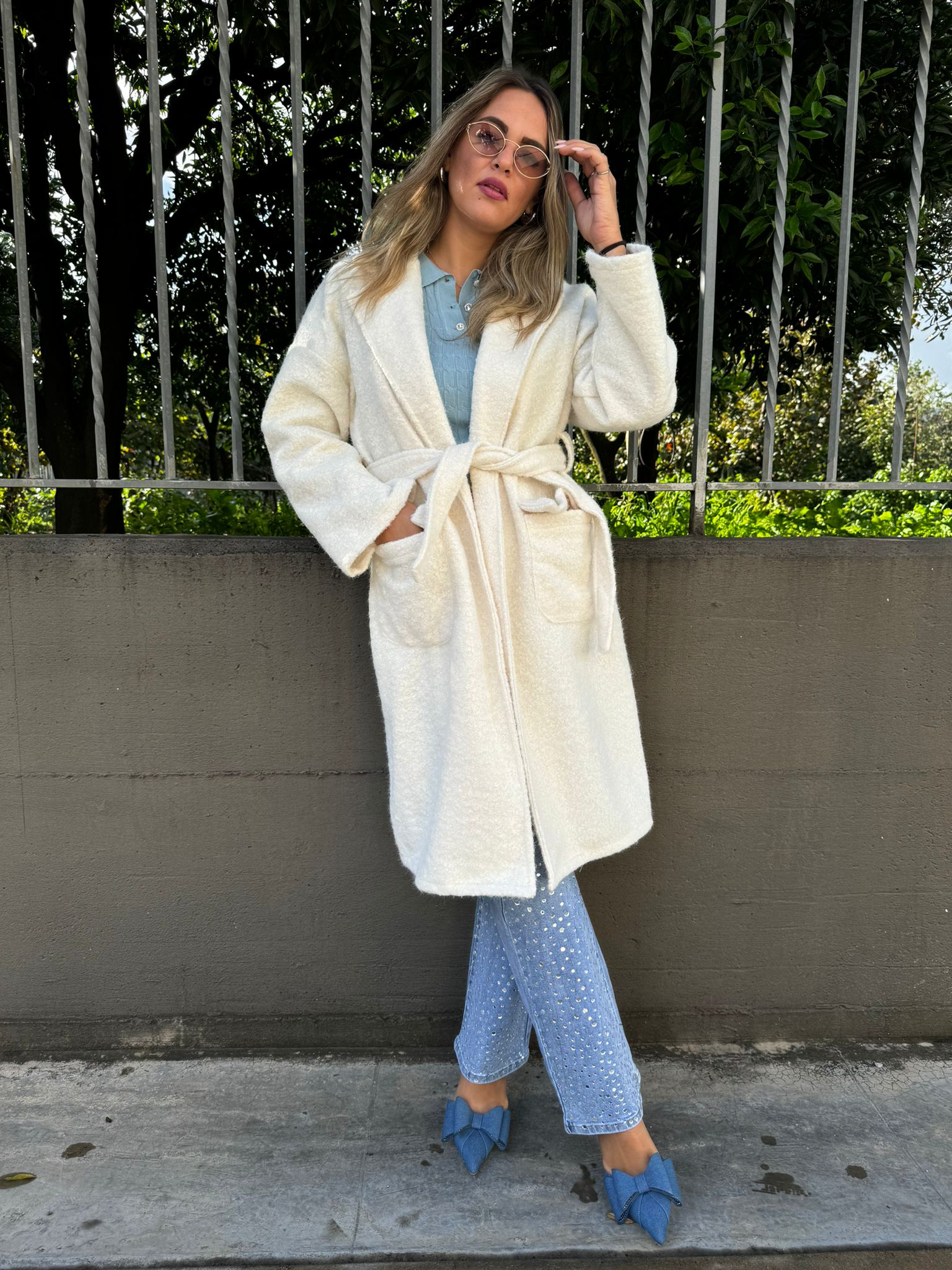 Cappotto doppio petto con cintura e fibbie eco pelle
