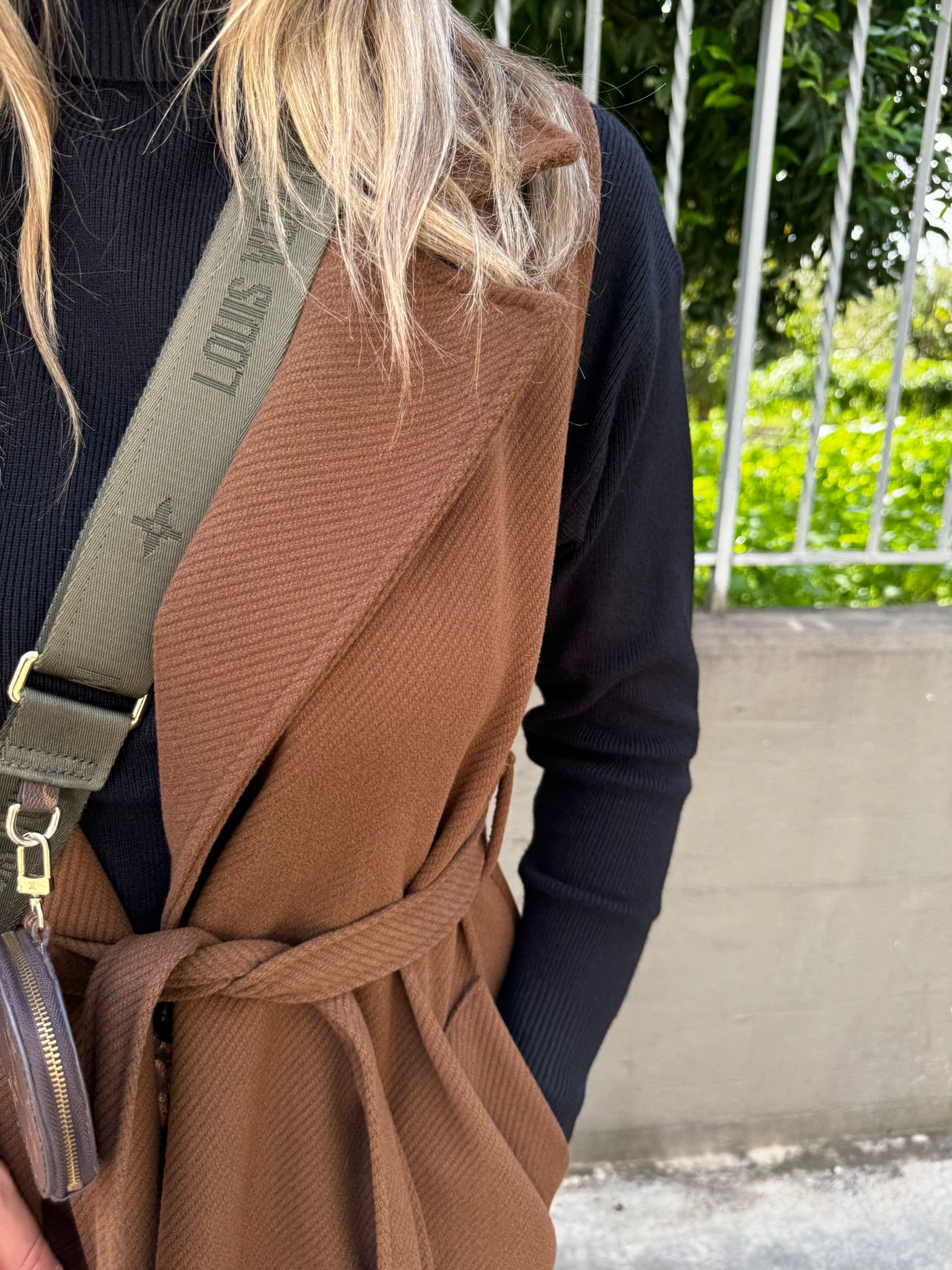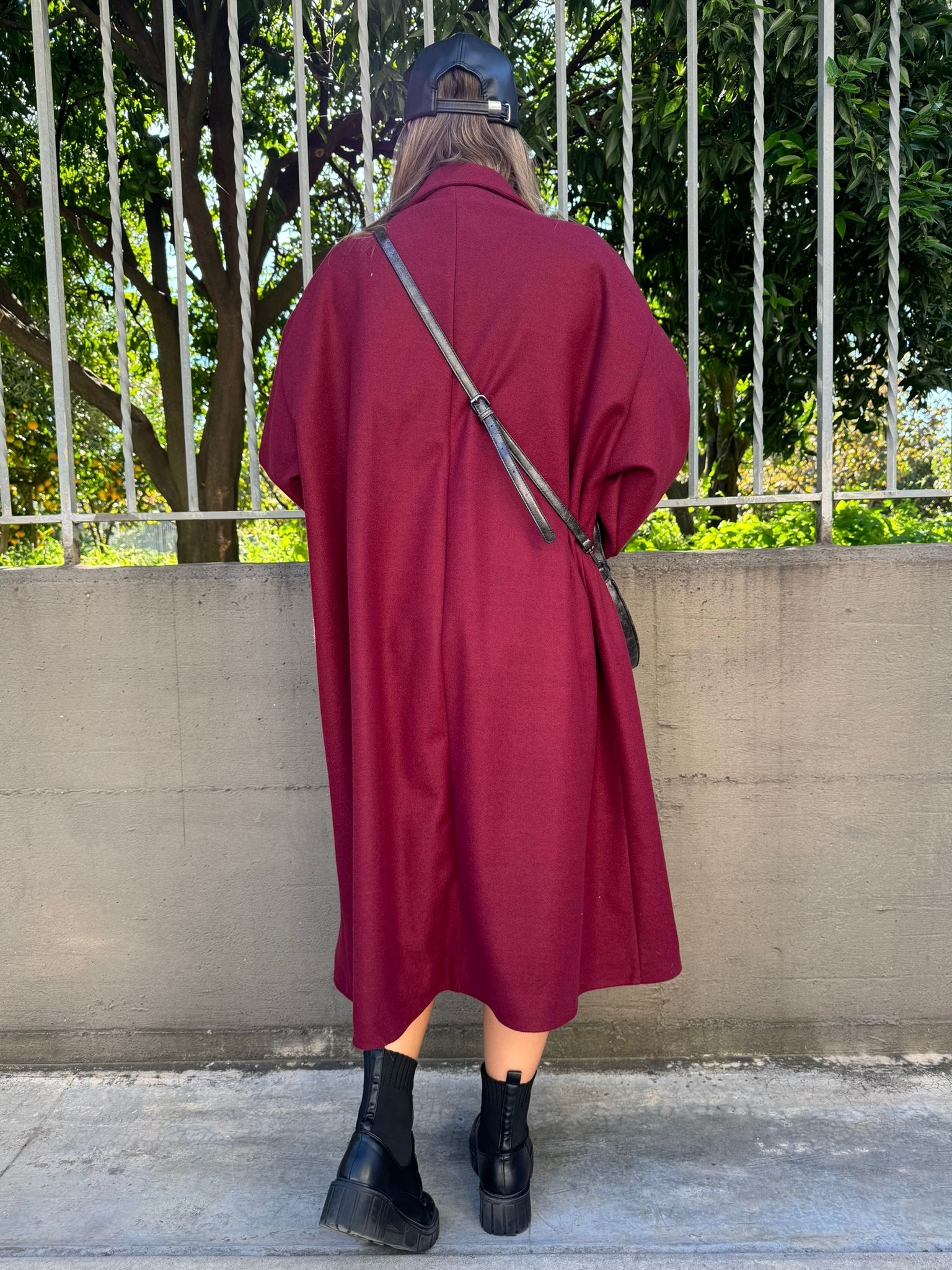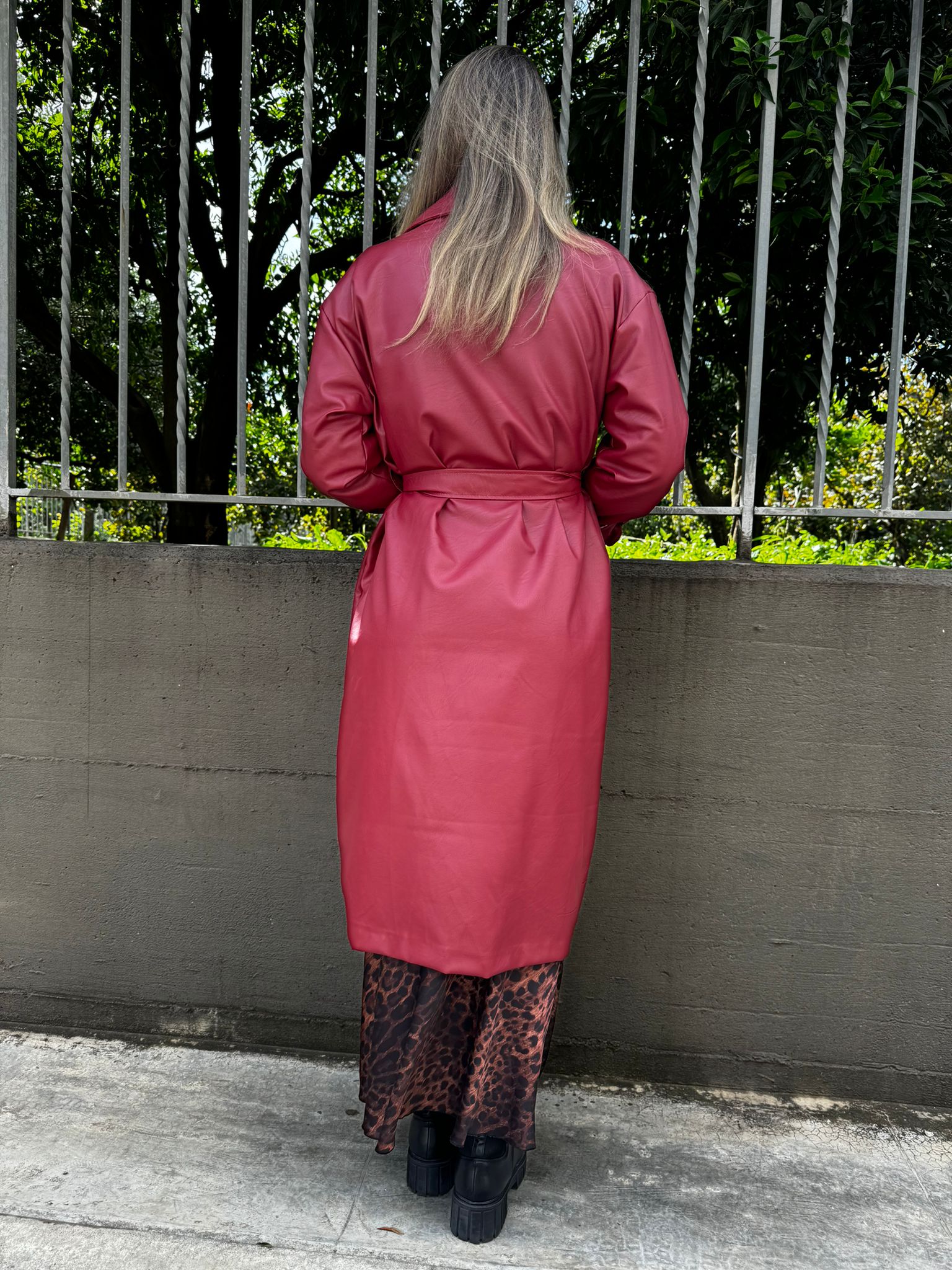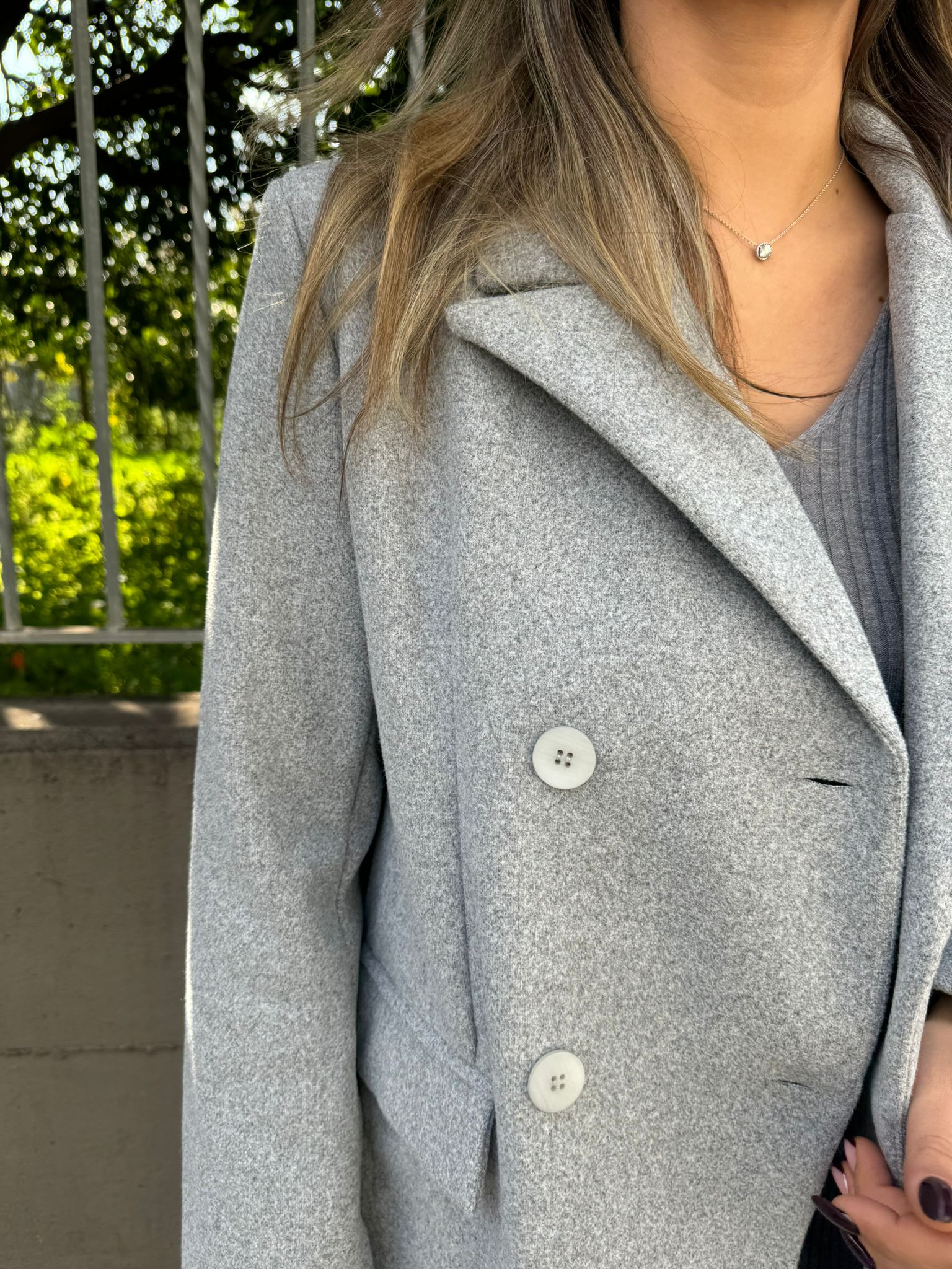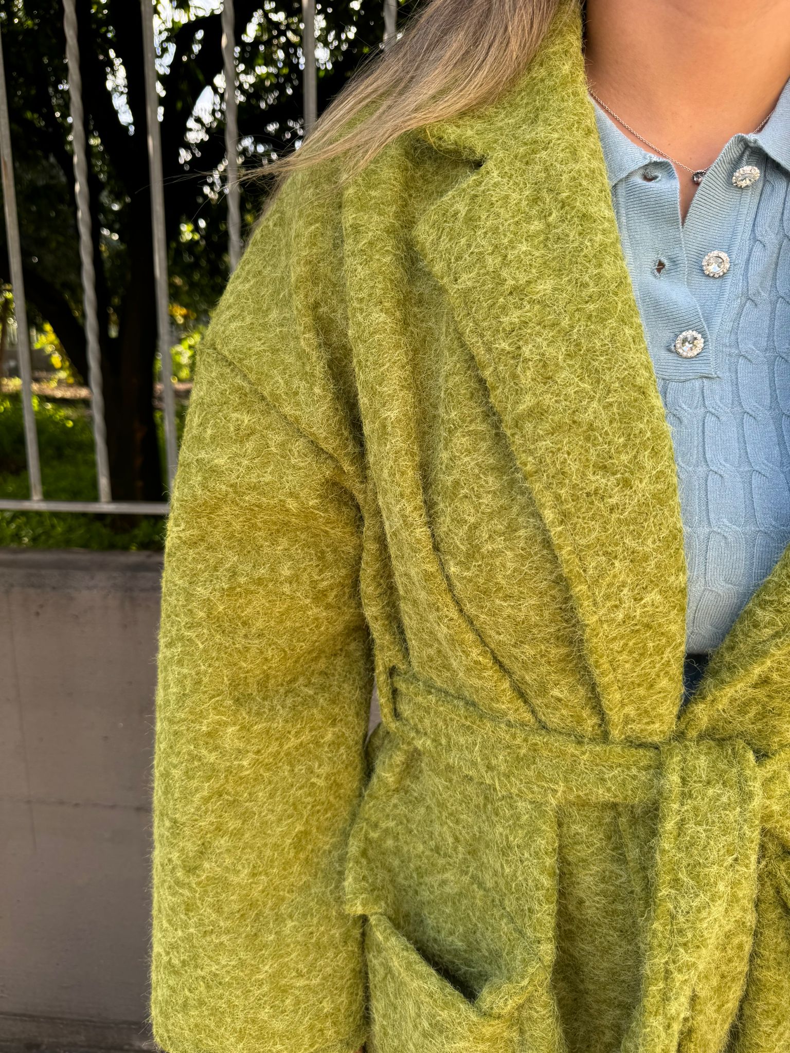 Cappotto doppio petto con cintura e fibbie eco pelle