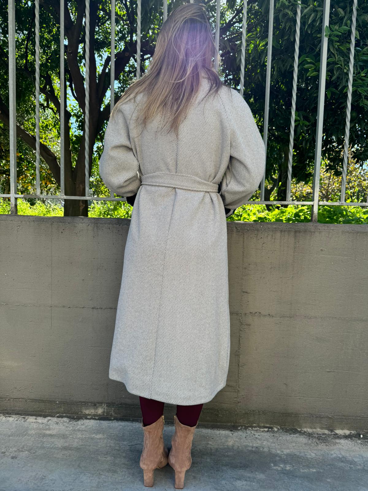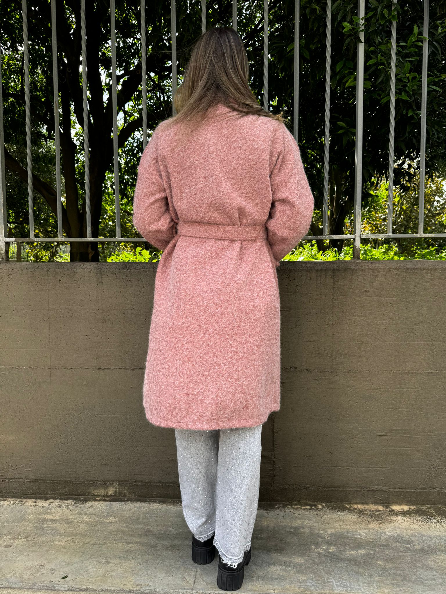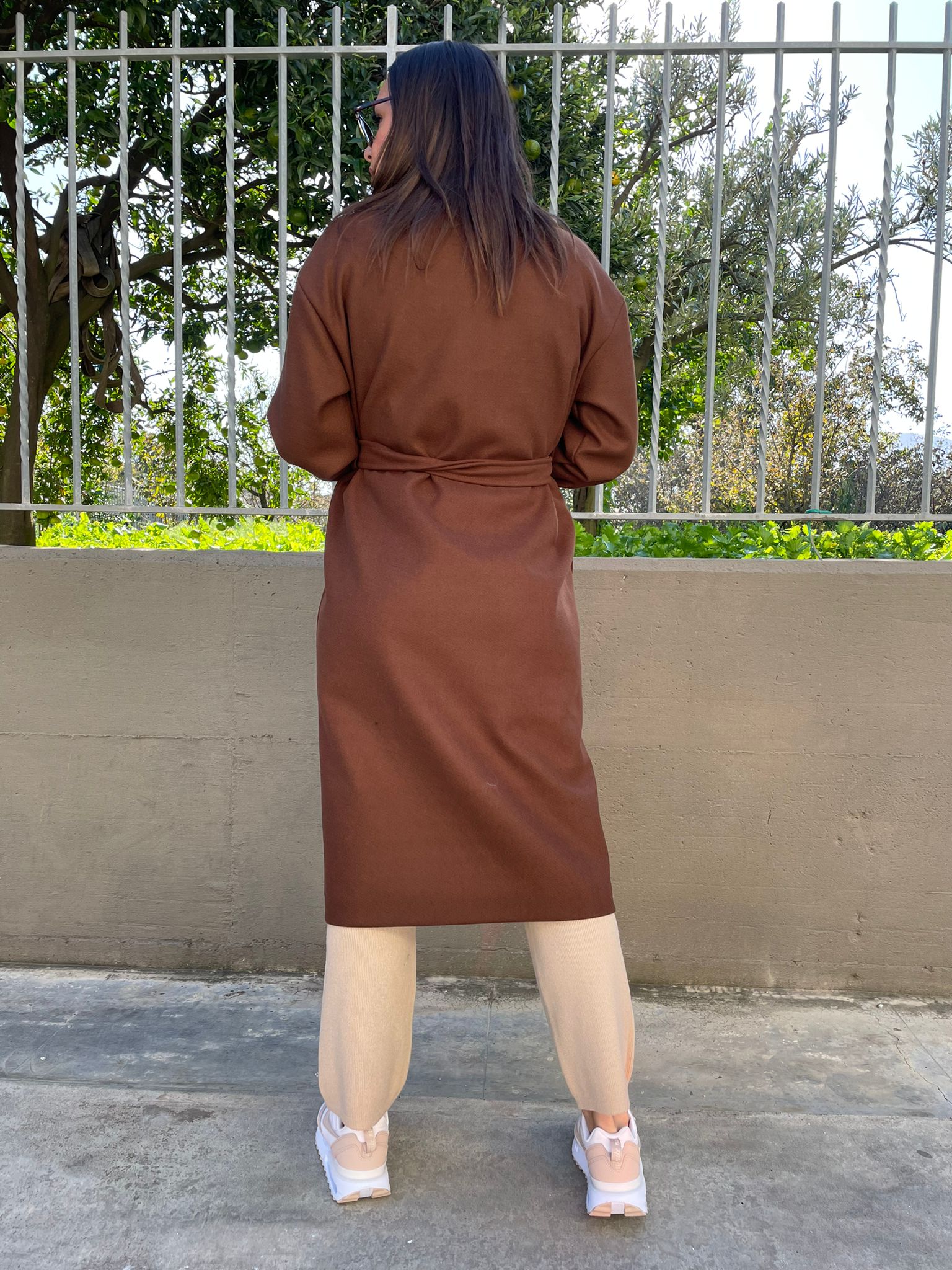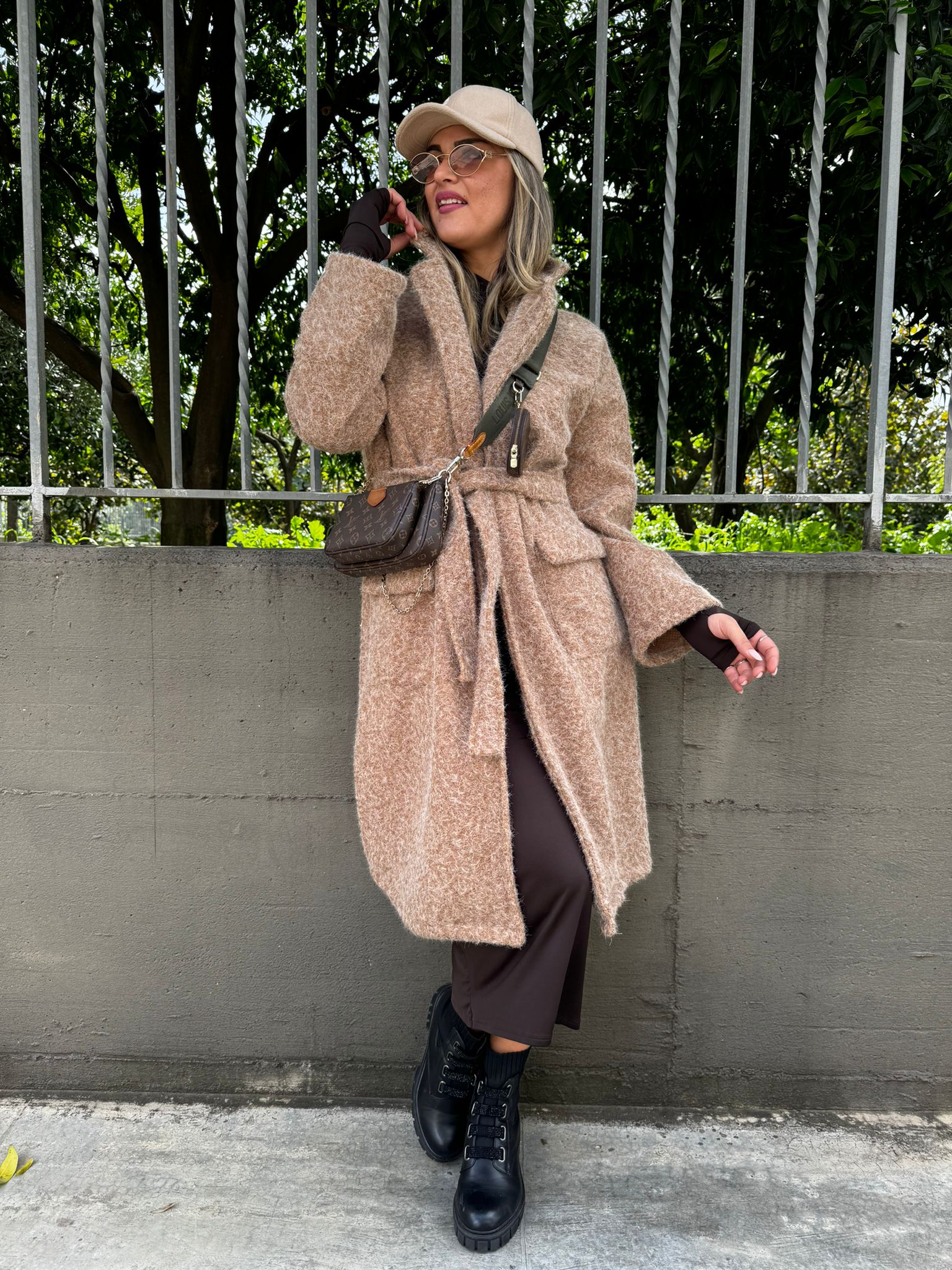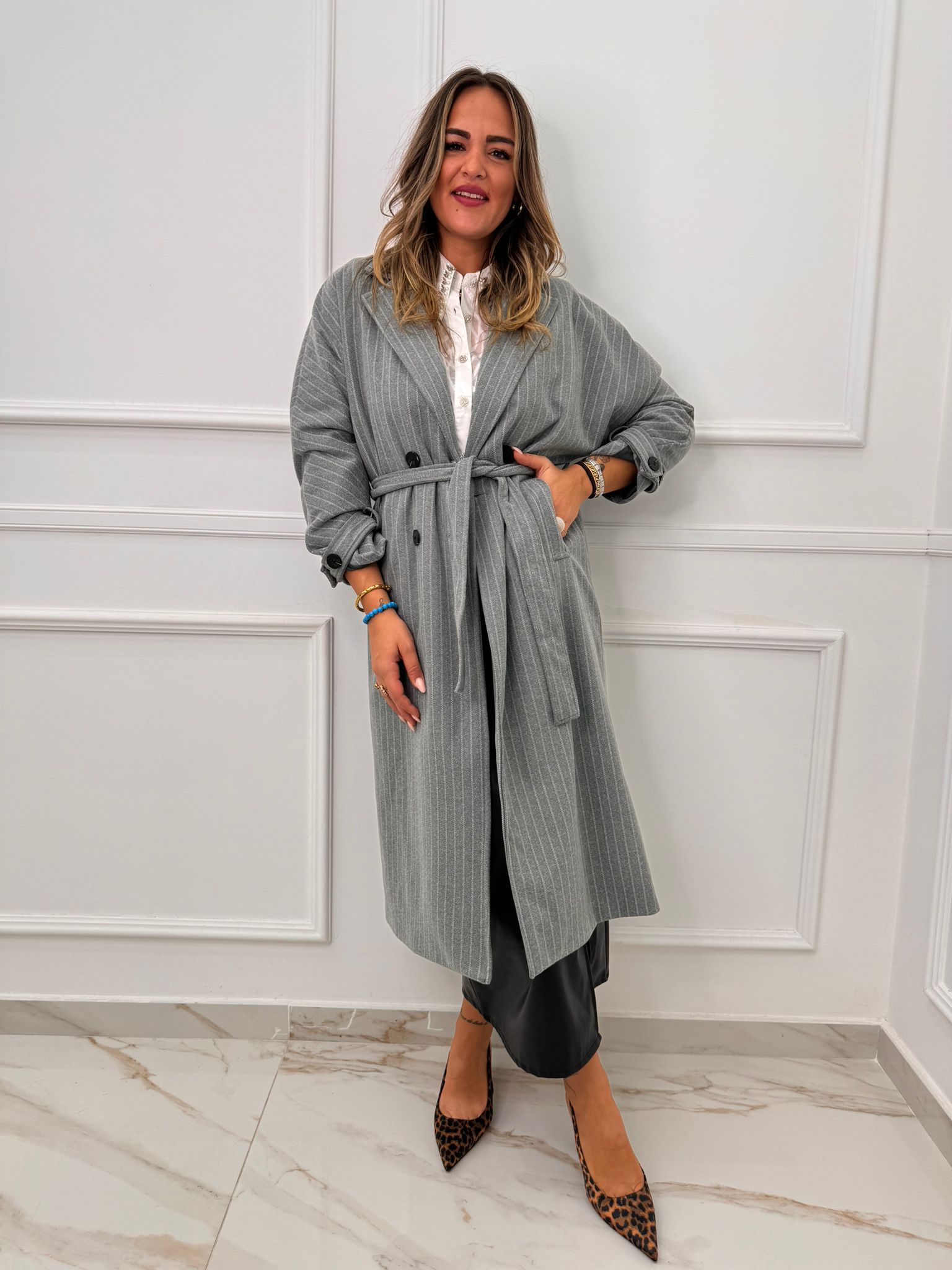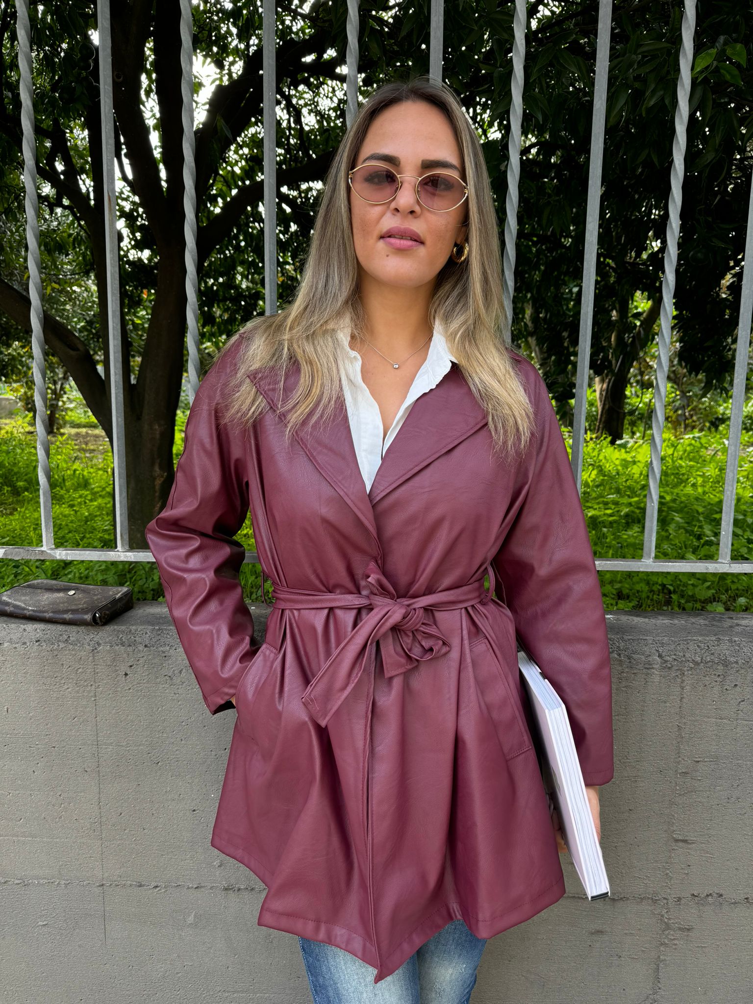 Cappotto doppio petto con cintura e fibbie eco pelle