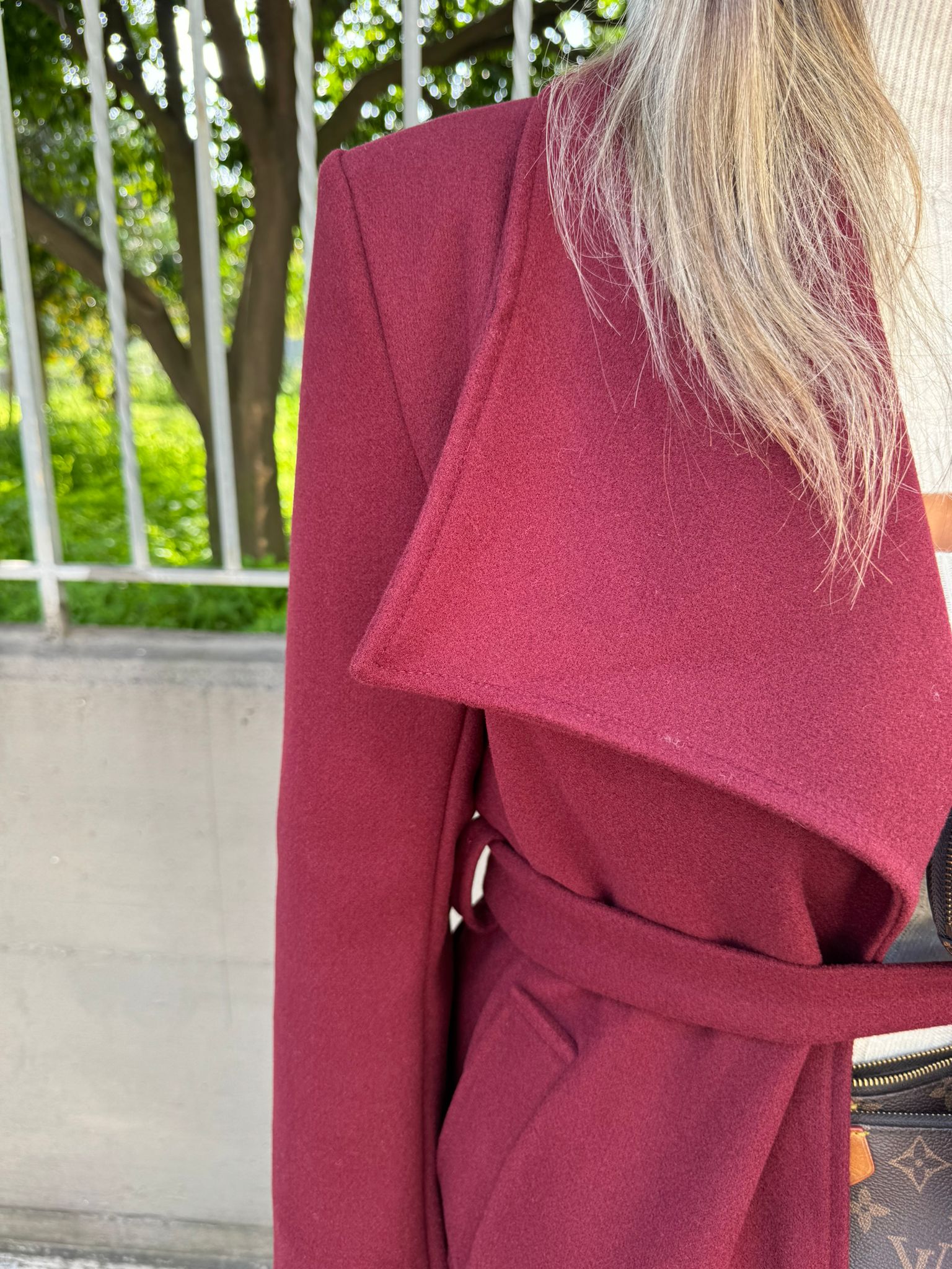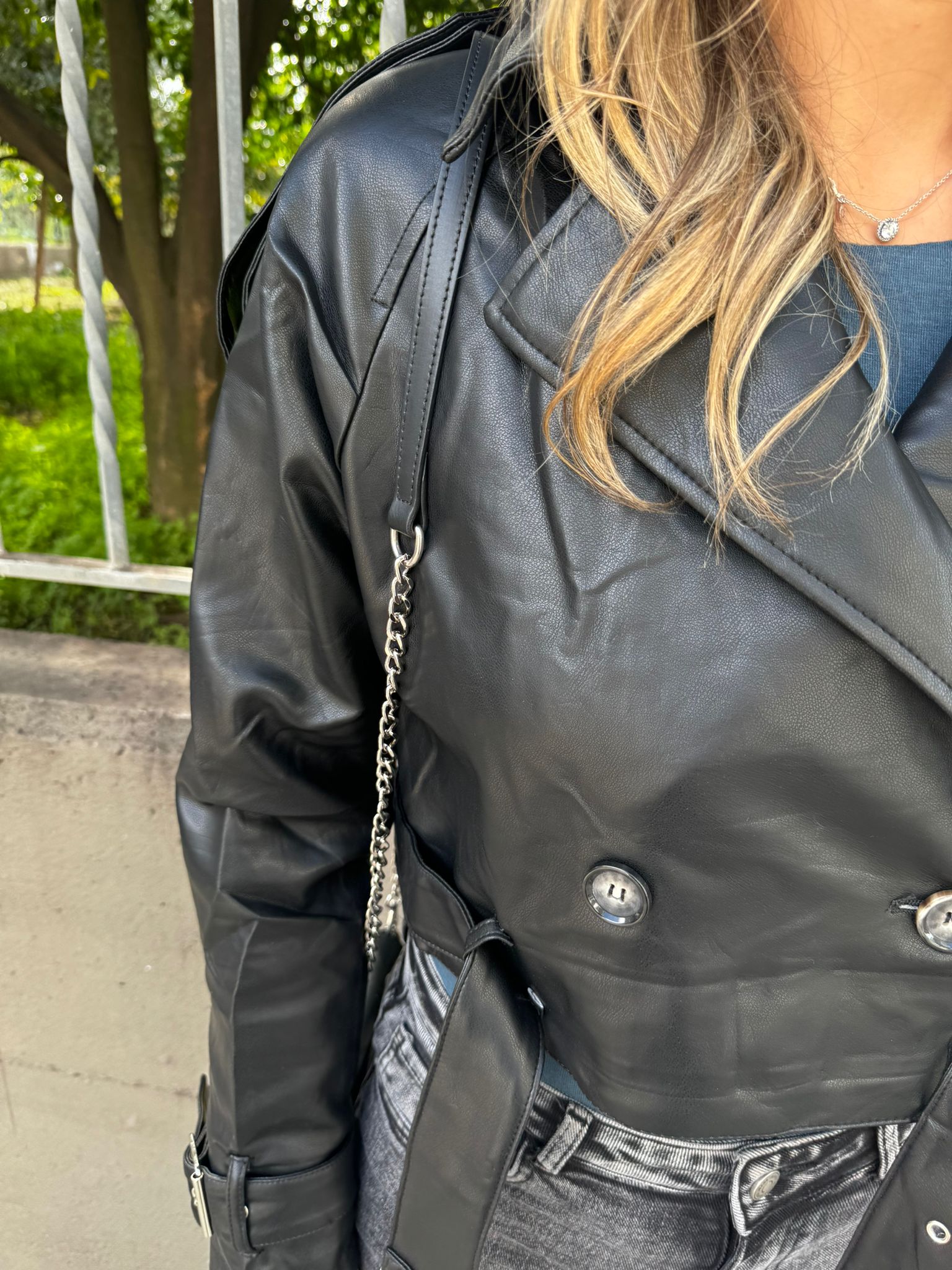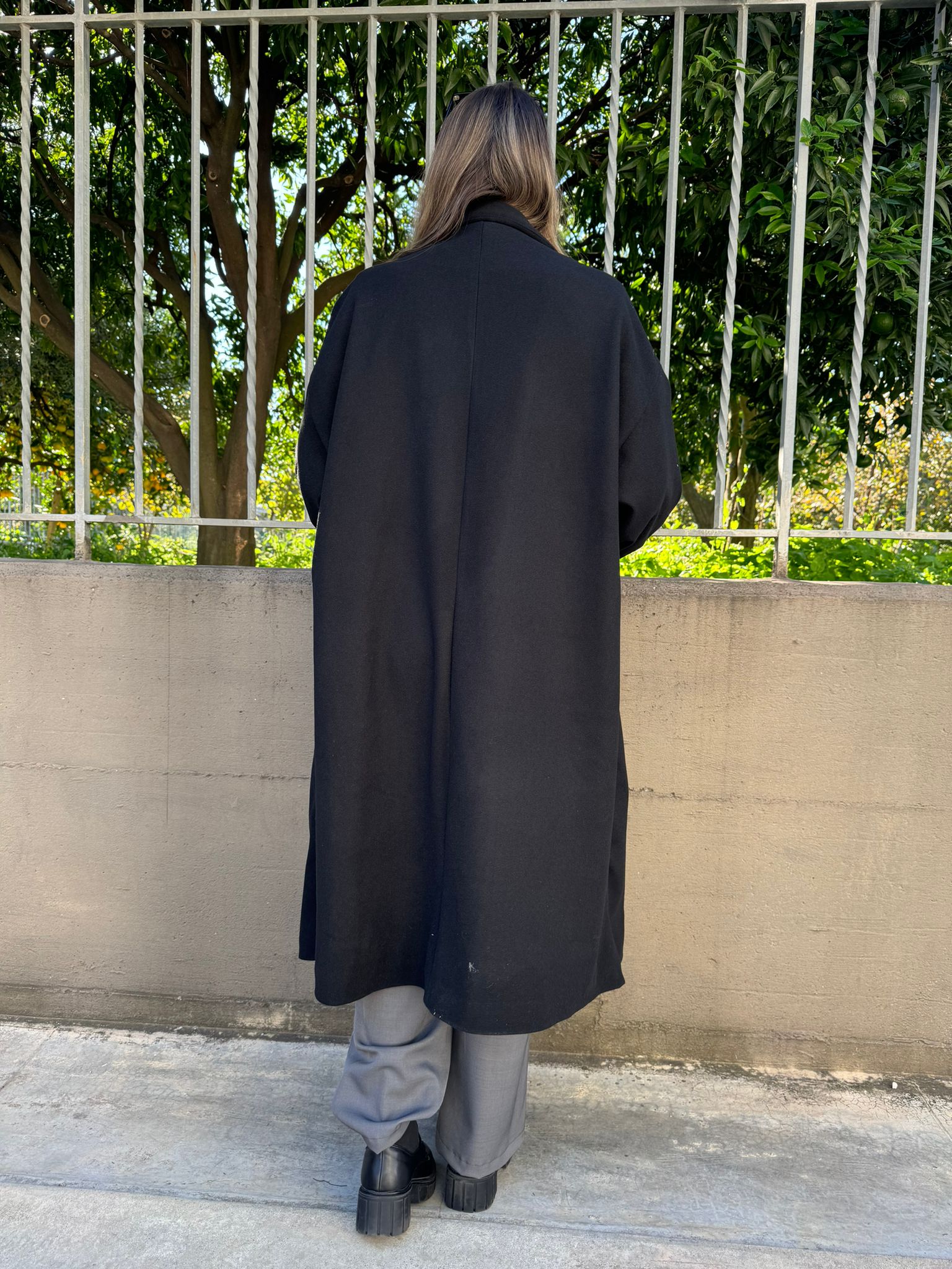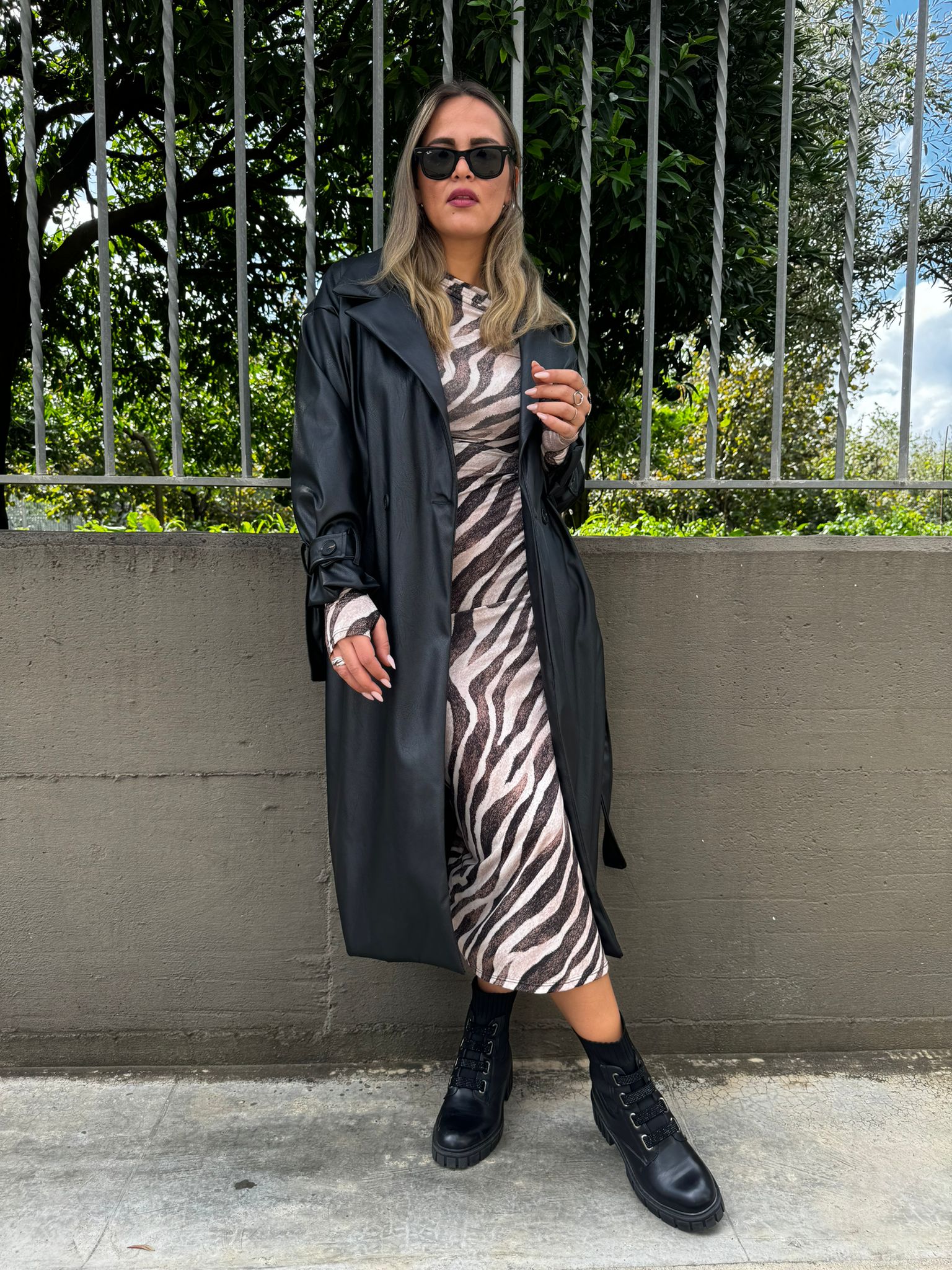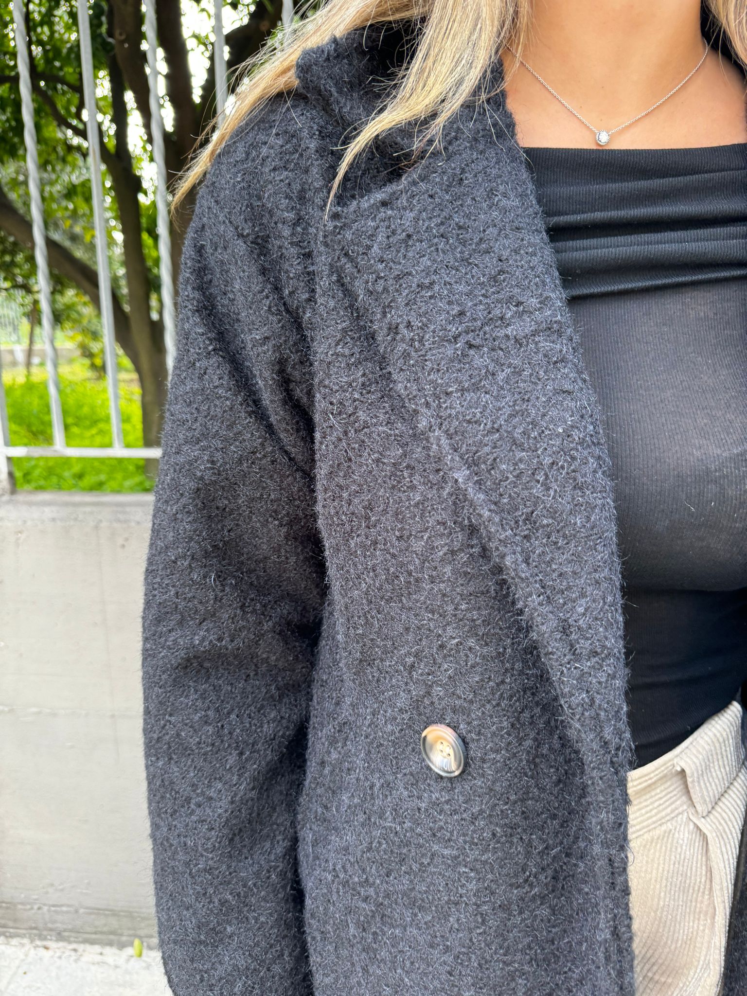 Cappotto doppio petto con cintura e fibbie eco pelle