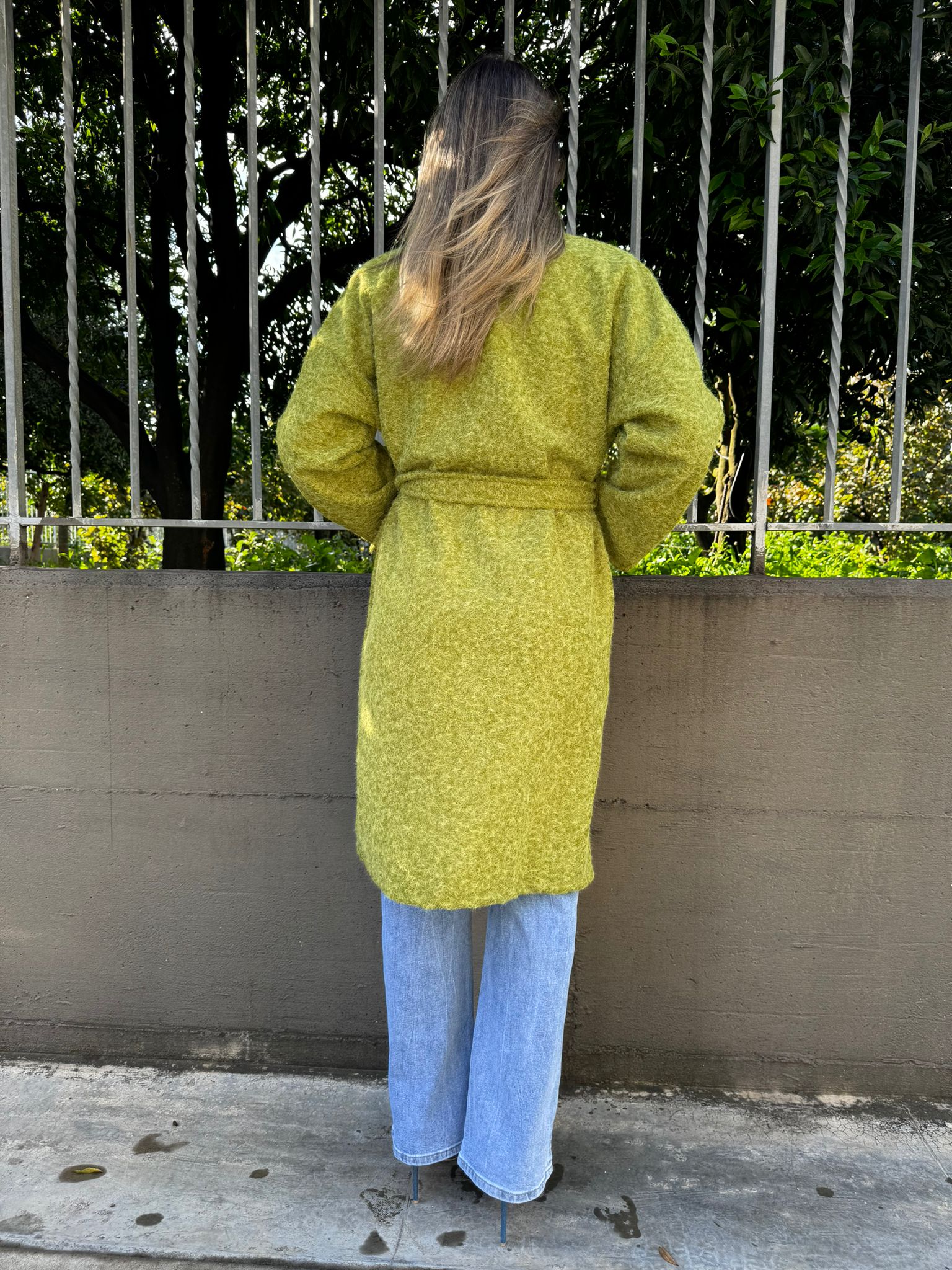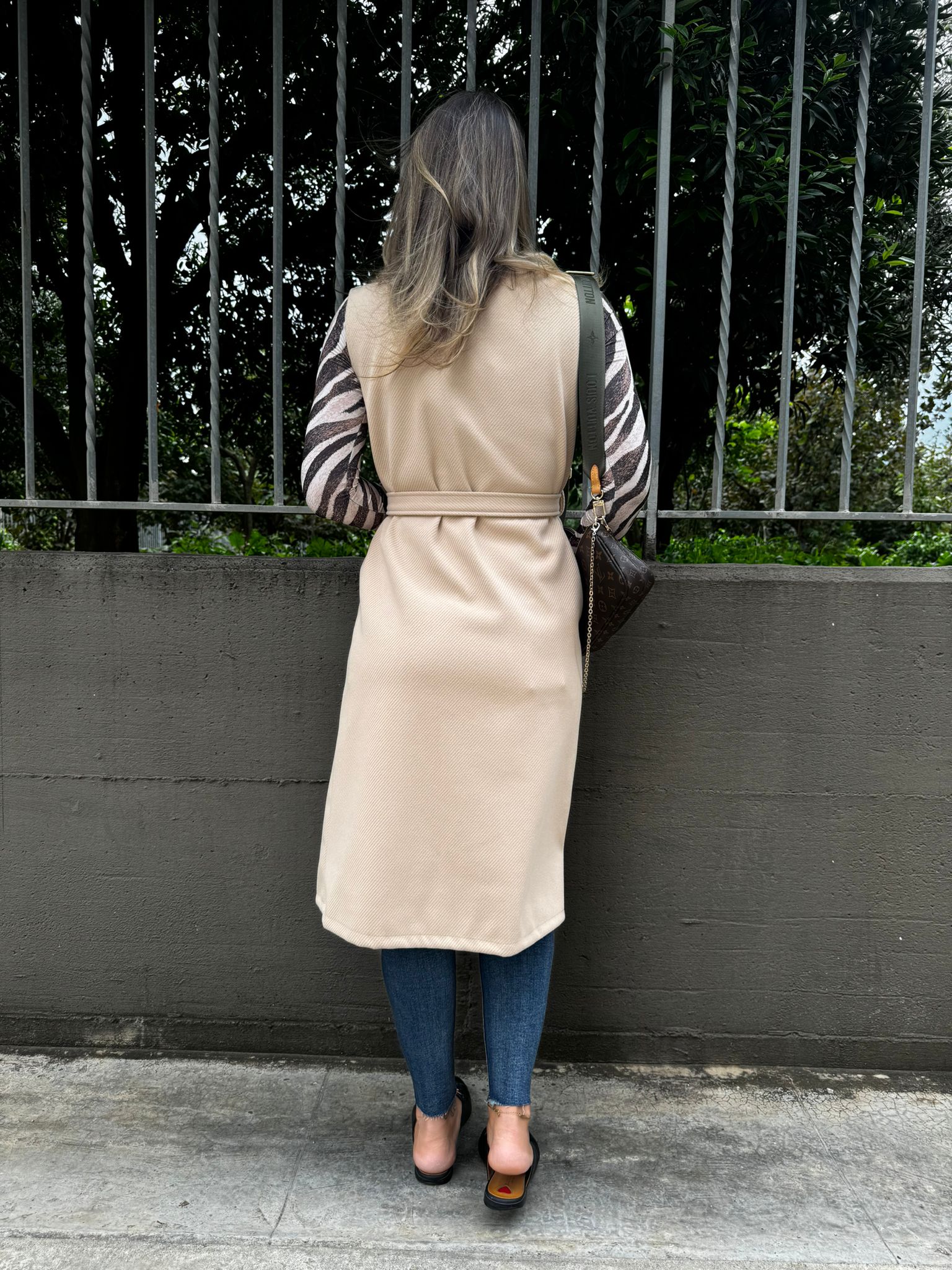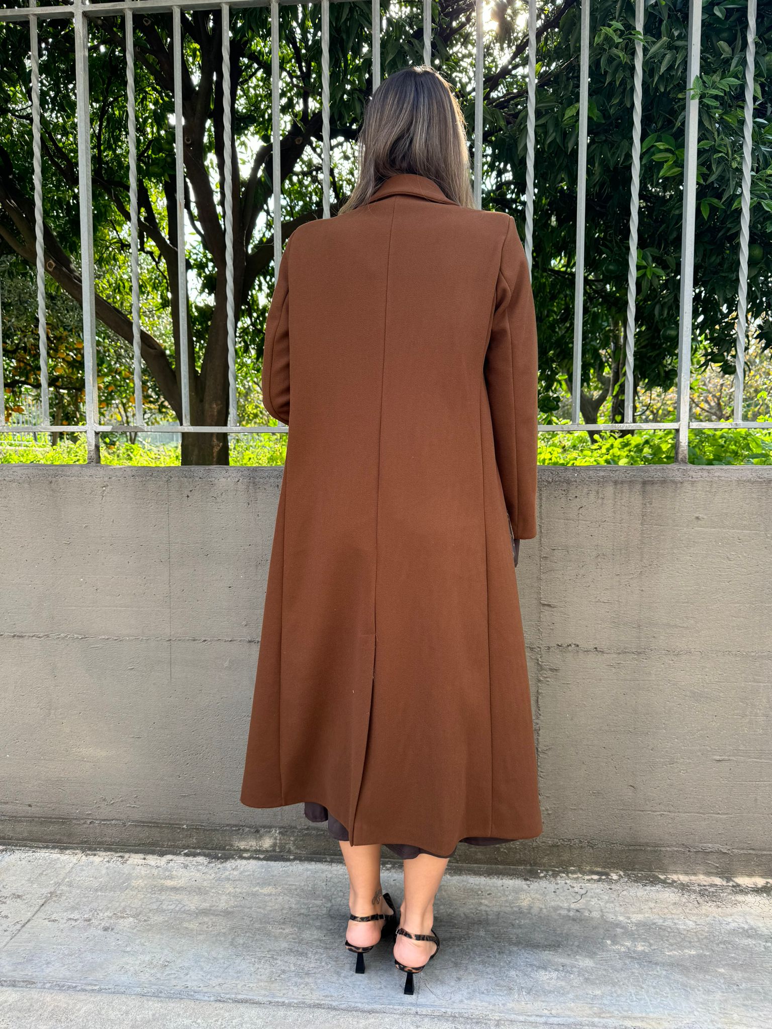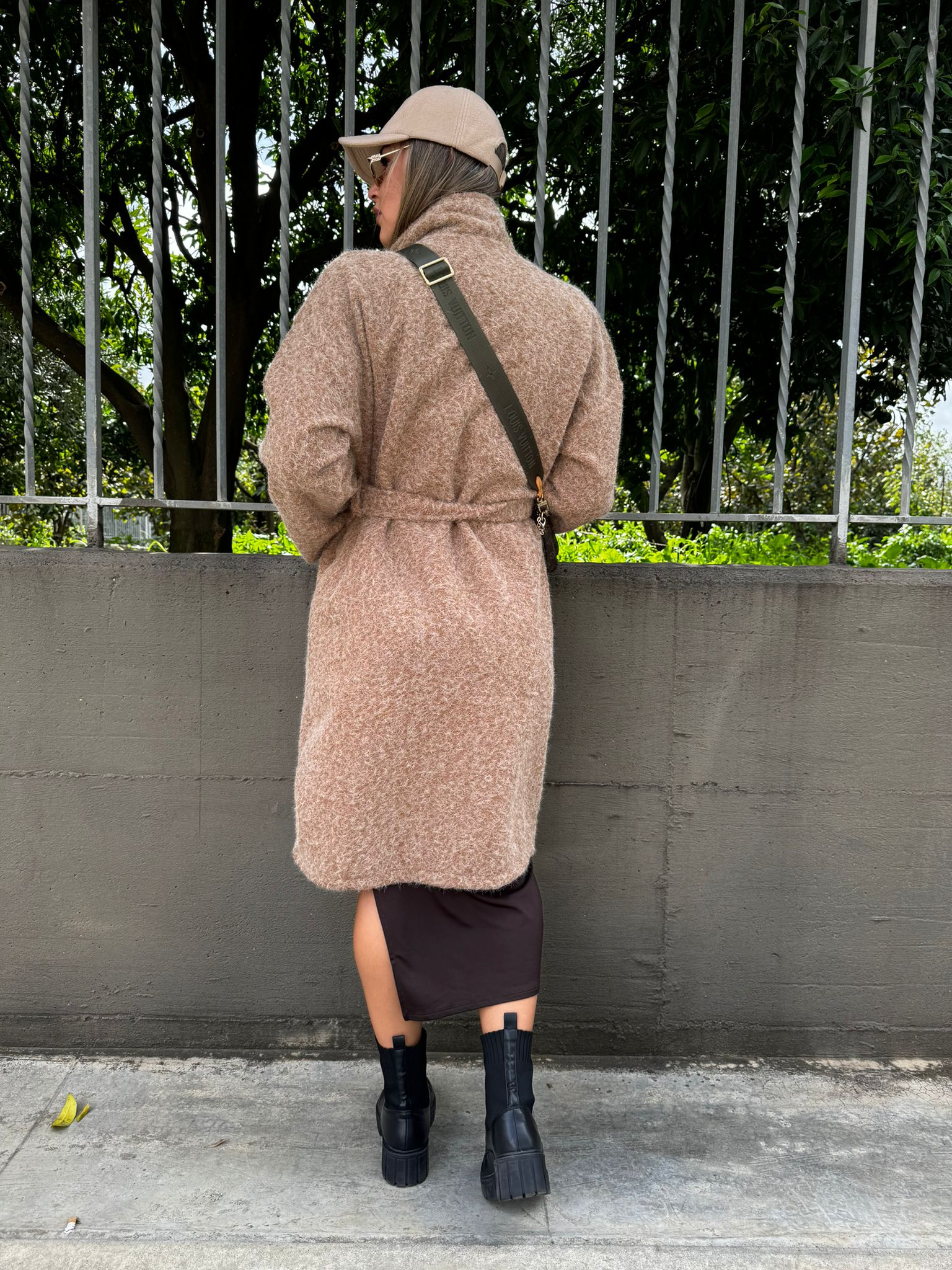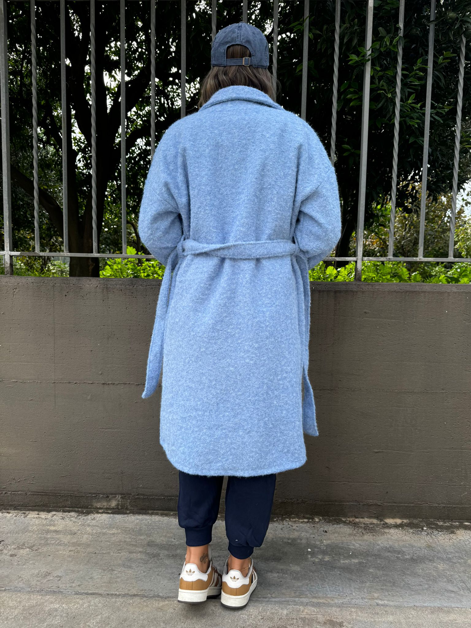 Cappotto doppio petto con cintura e fibbie eco pelle