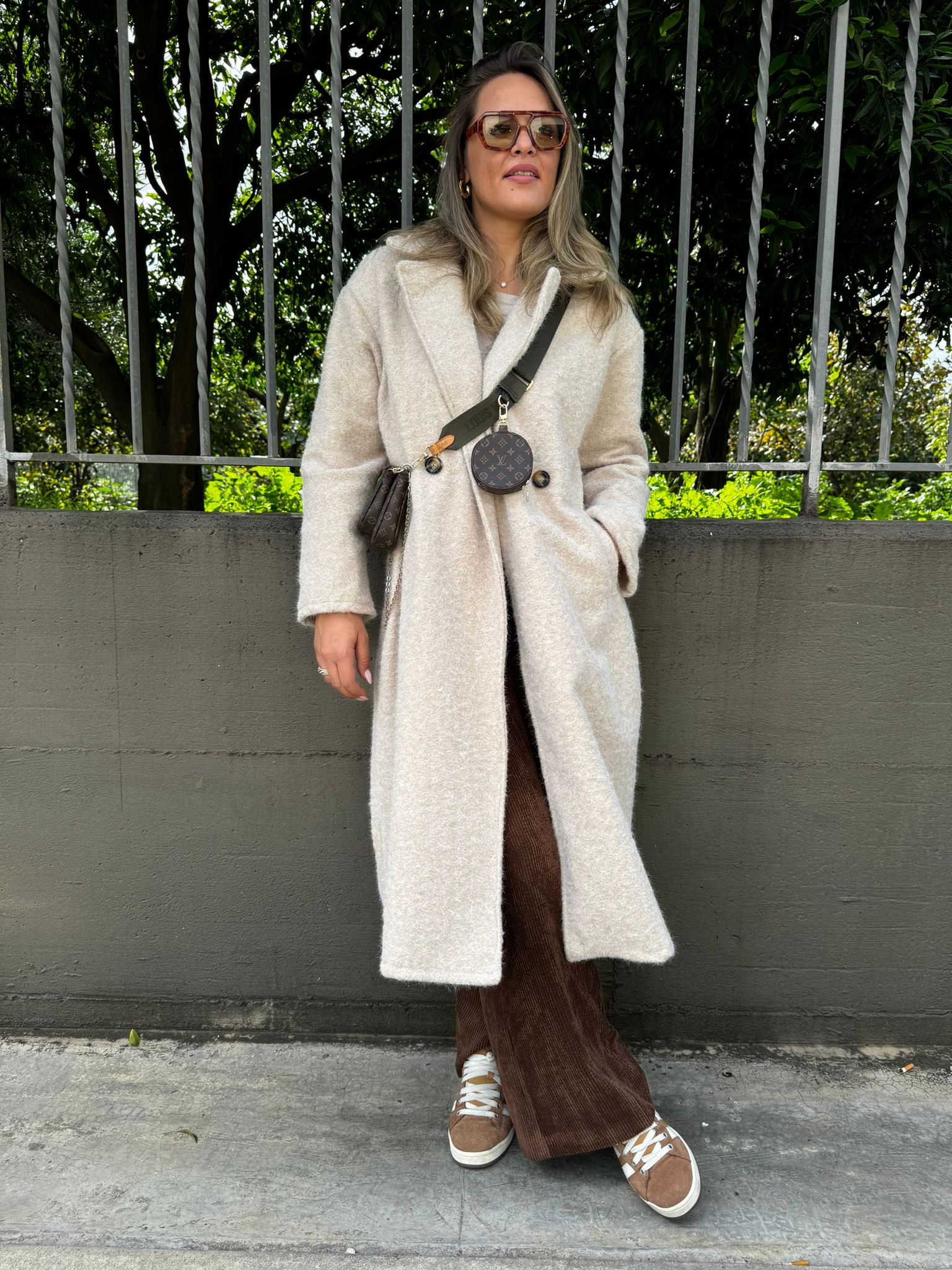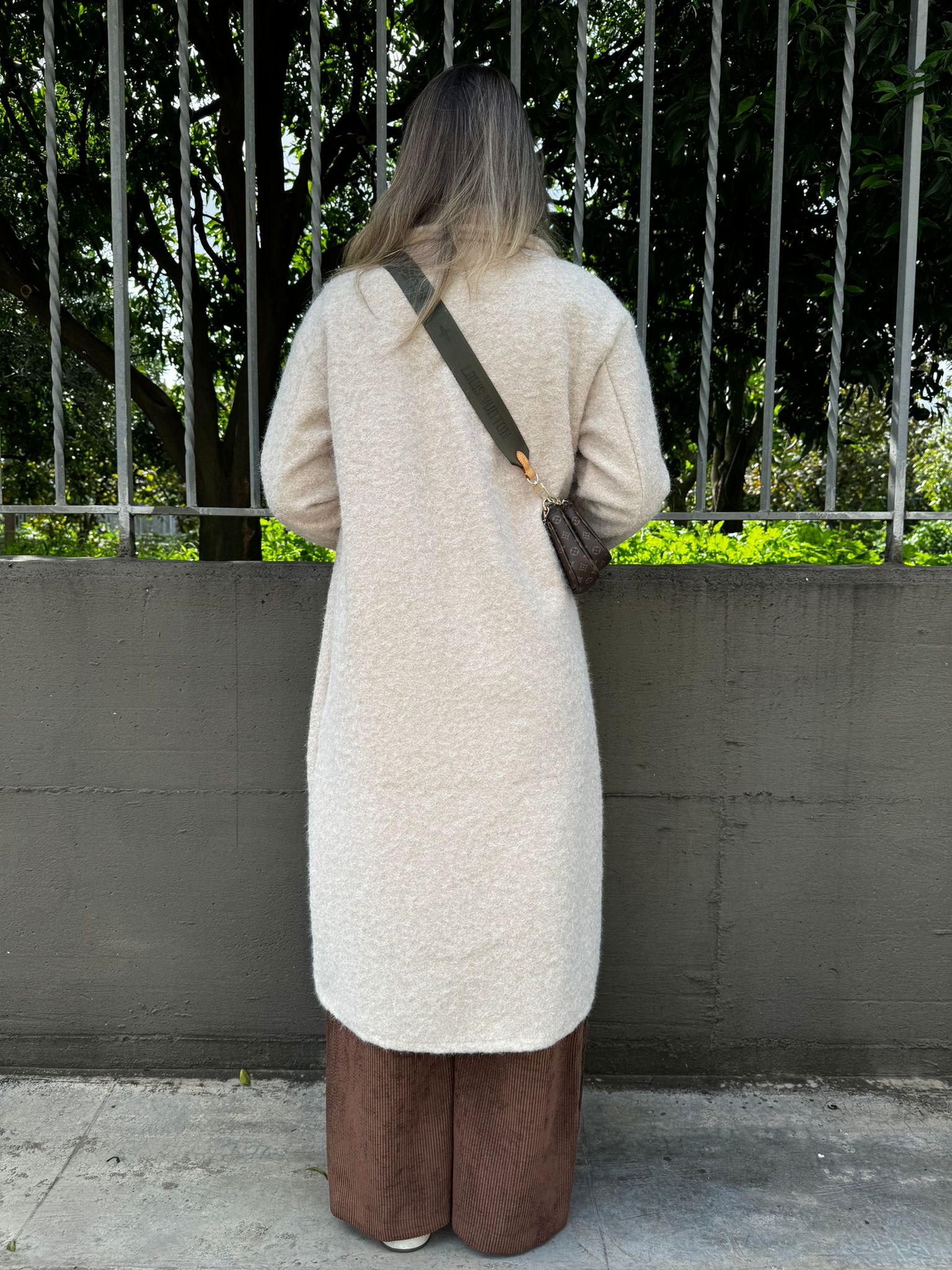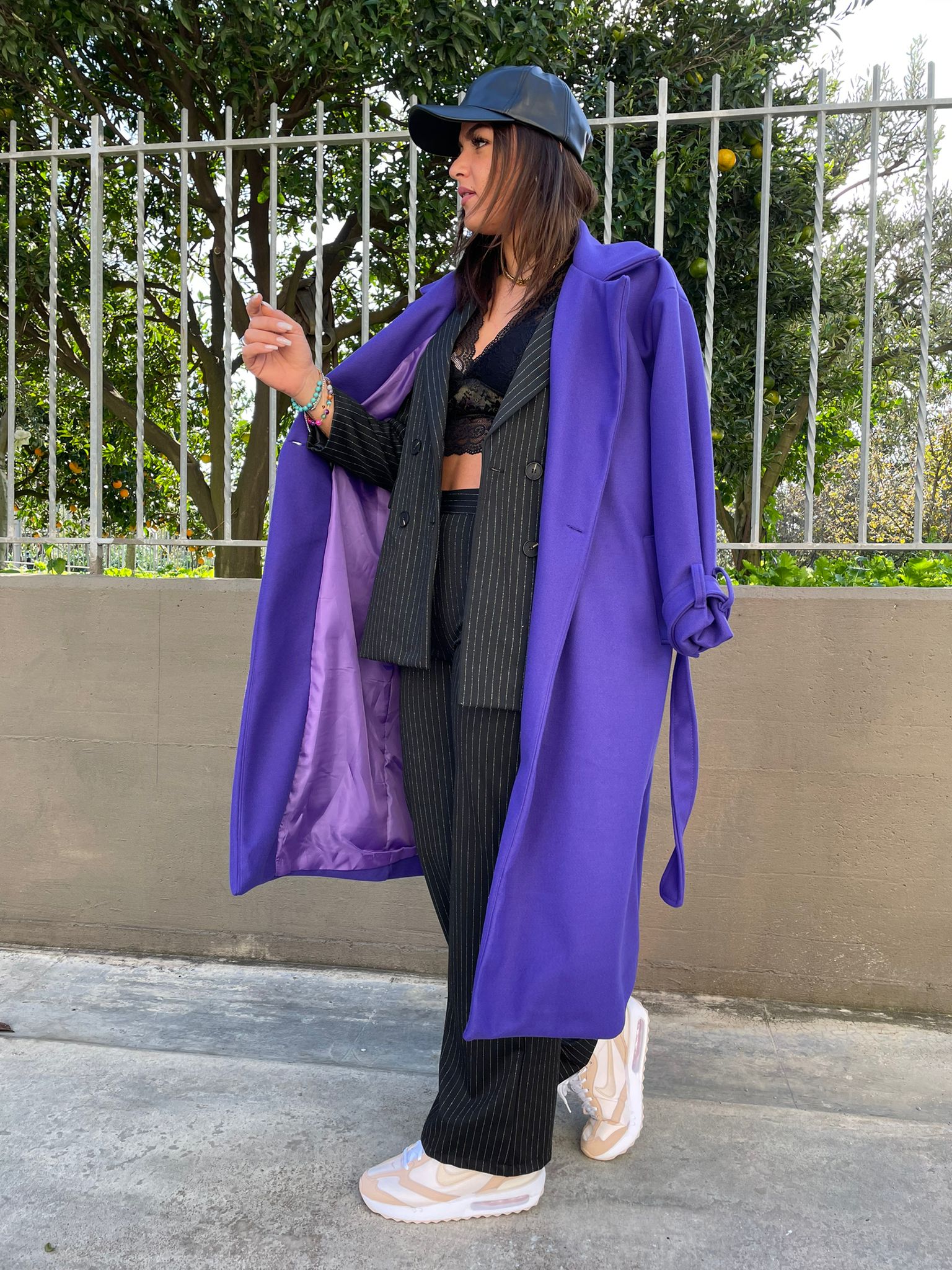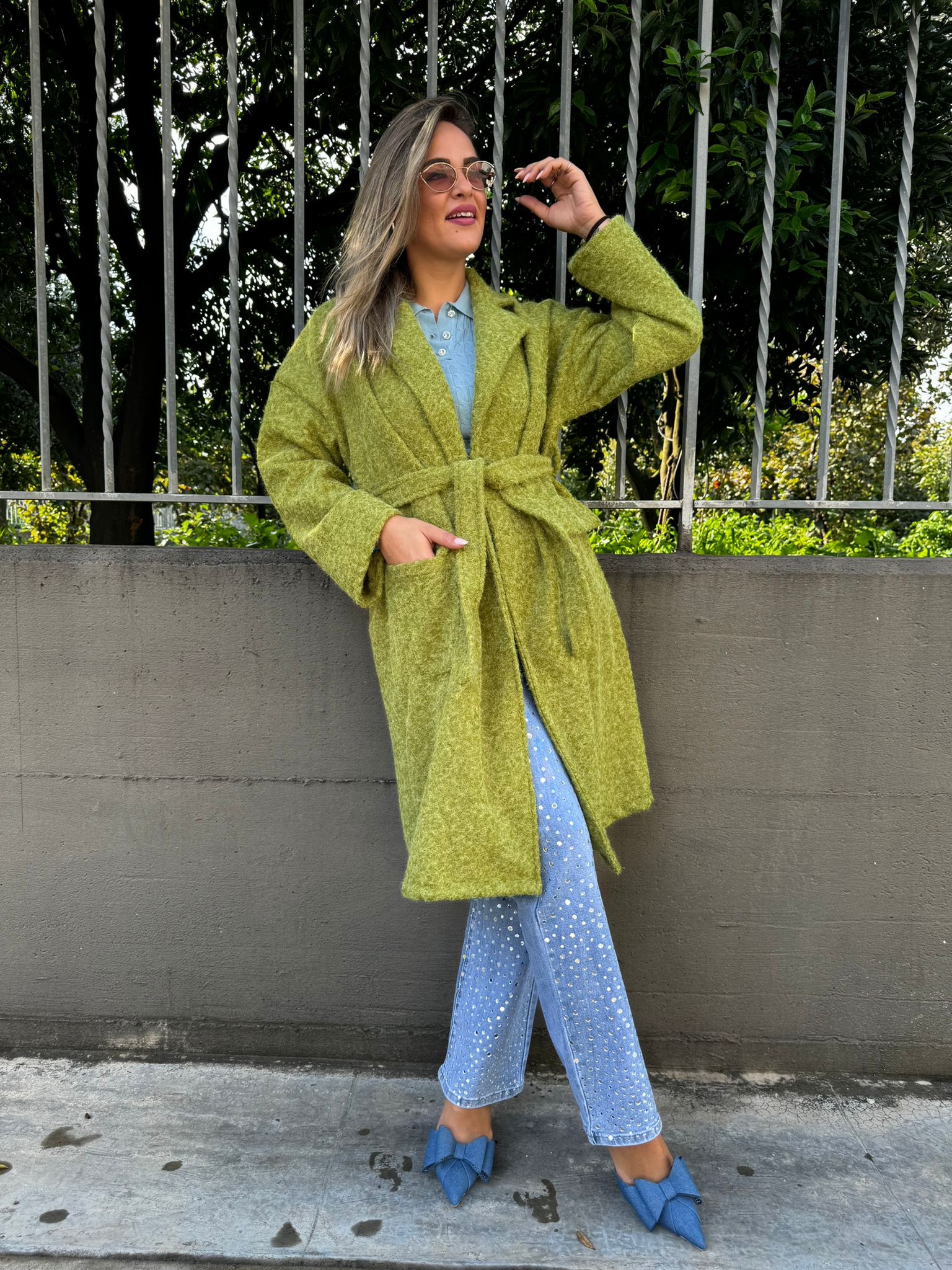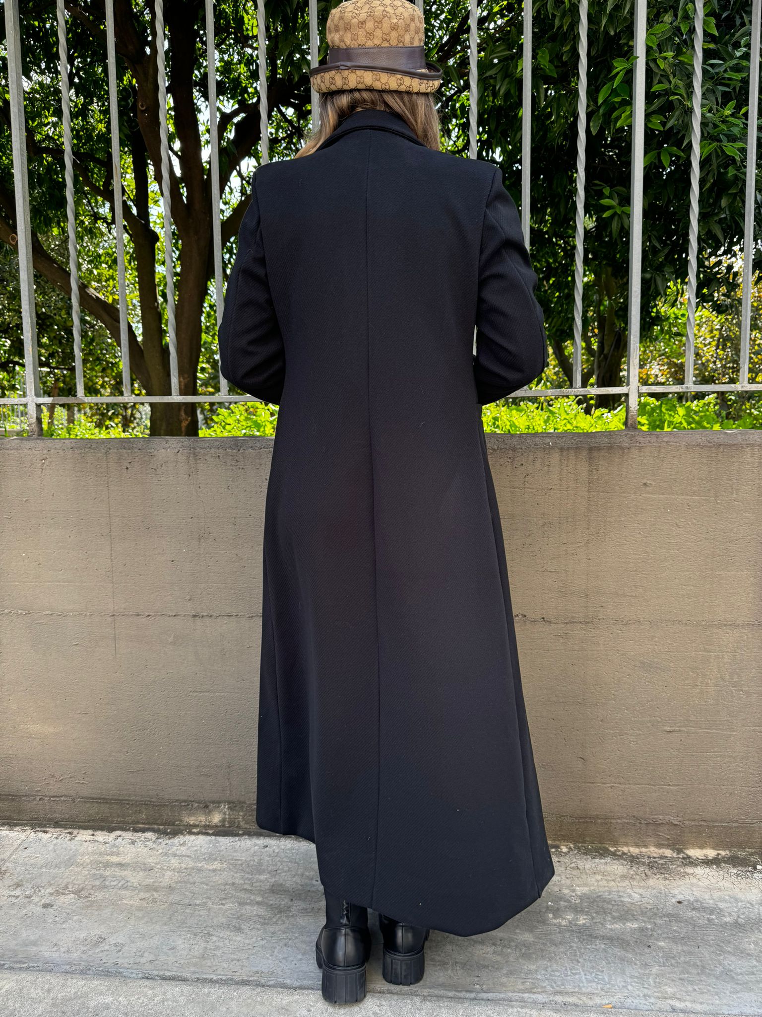 Cappotto doppio petto con cintura e fibbie eco pelle