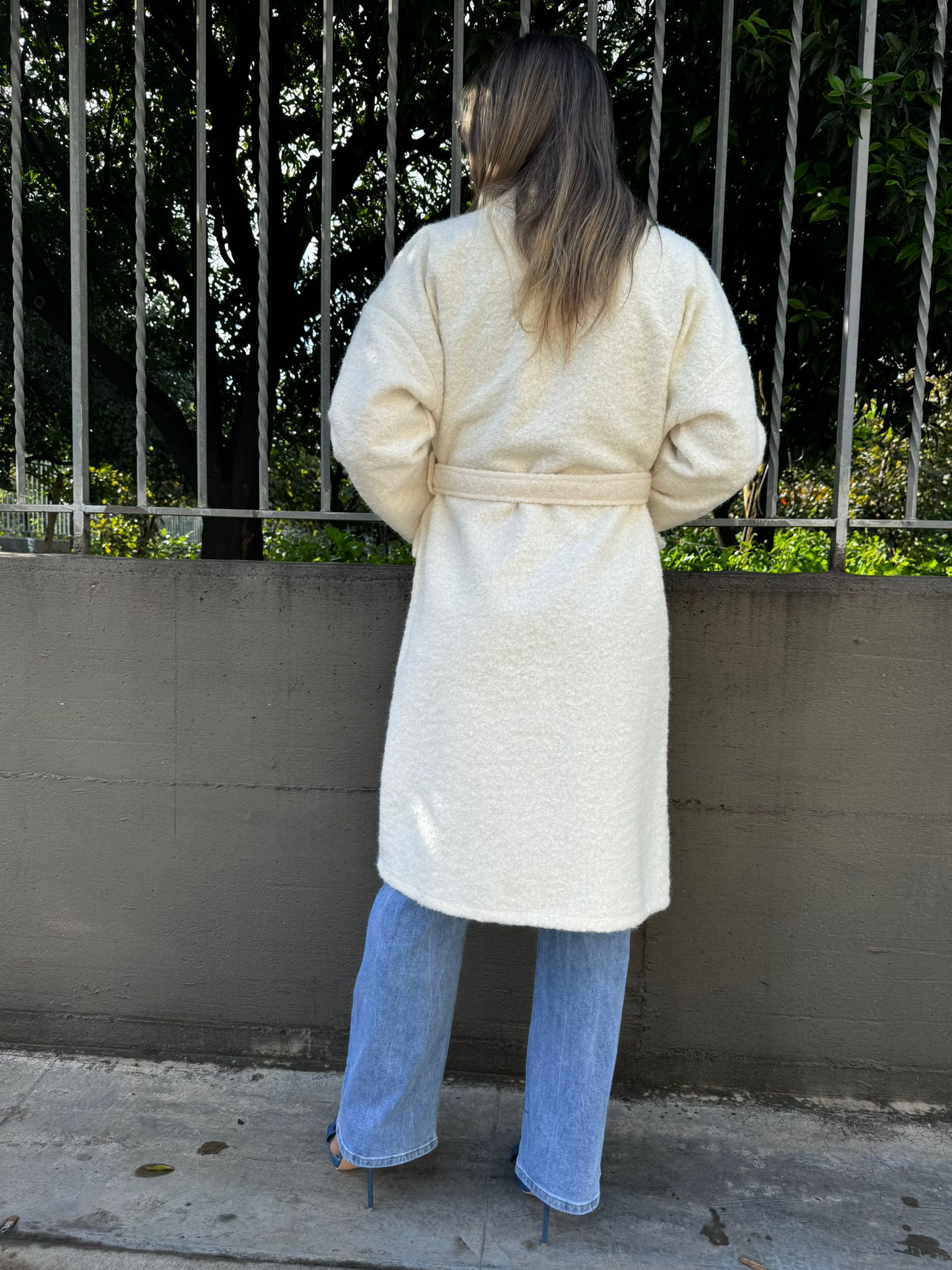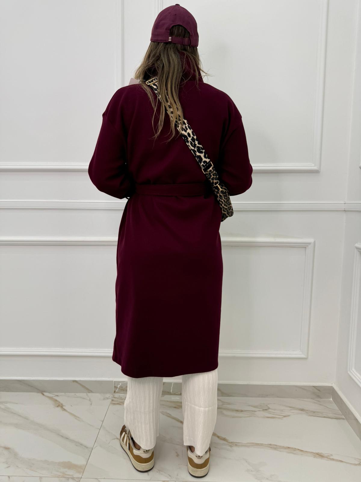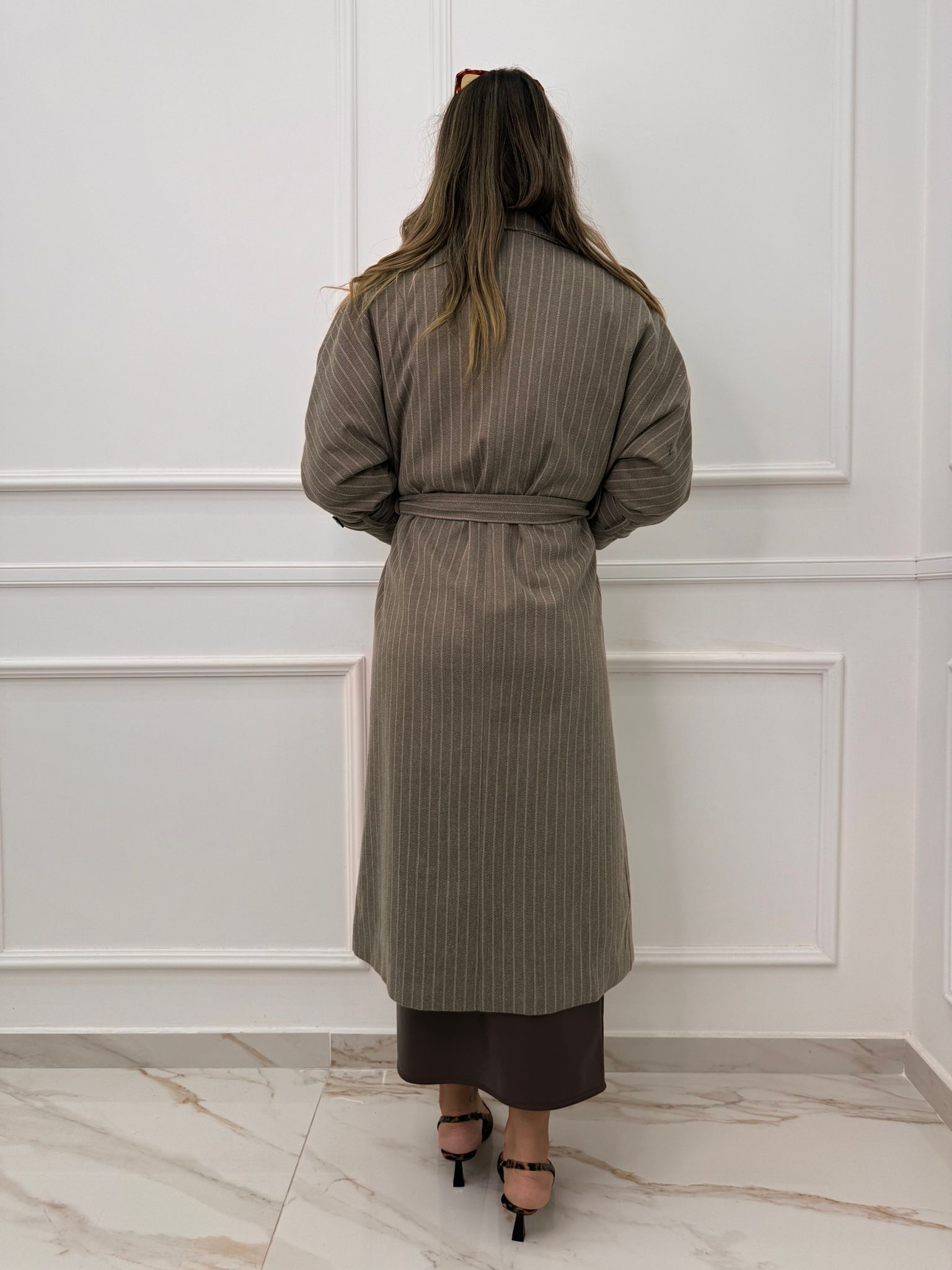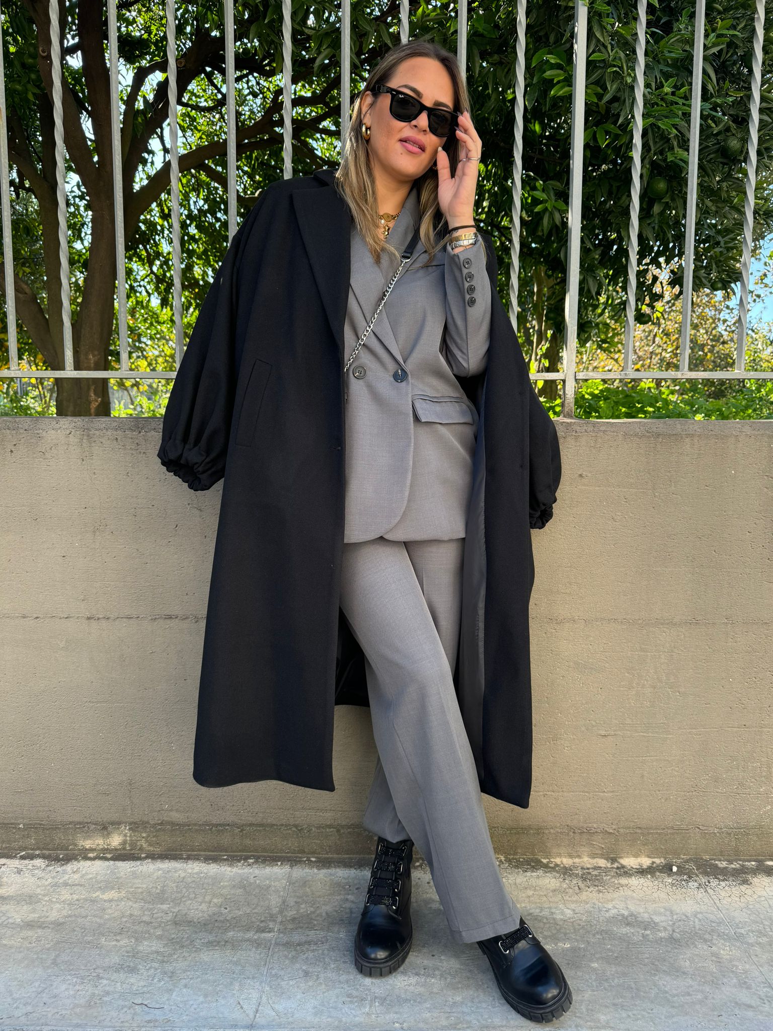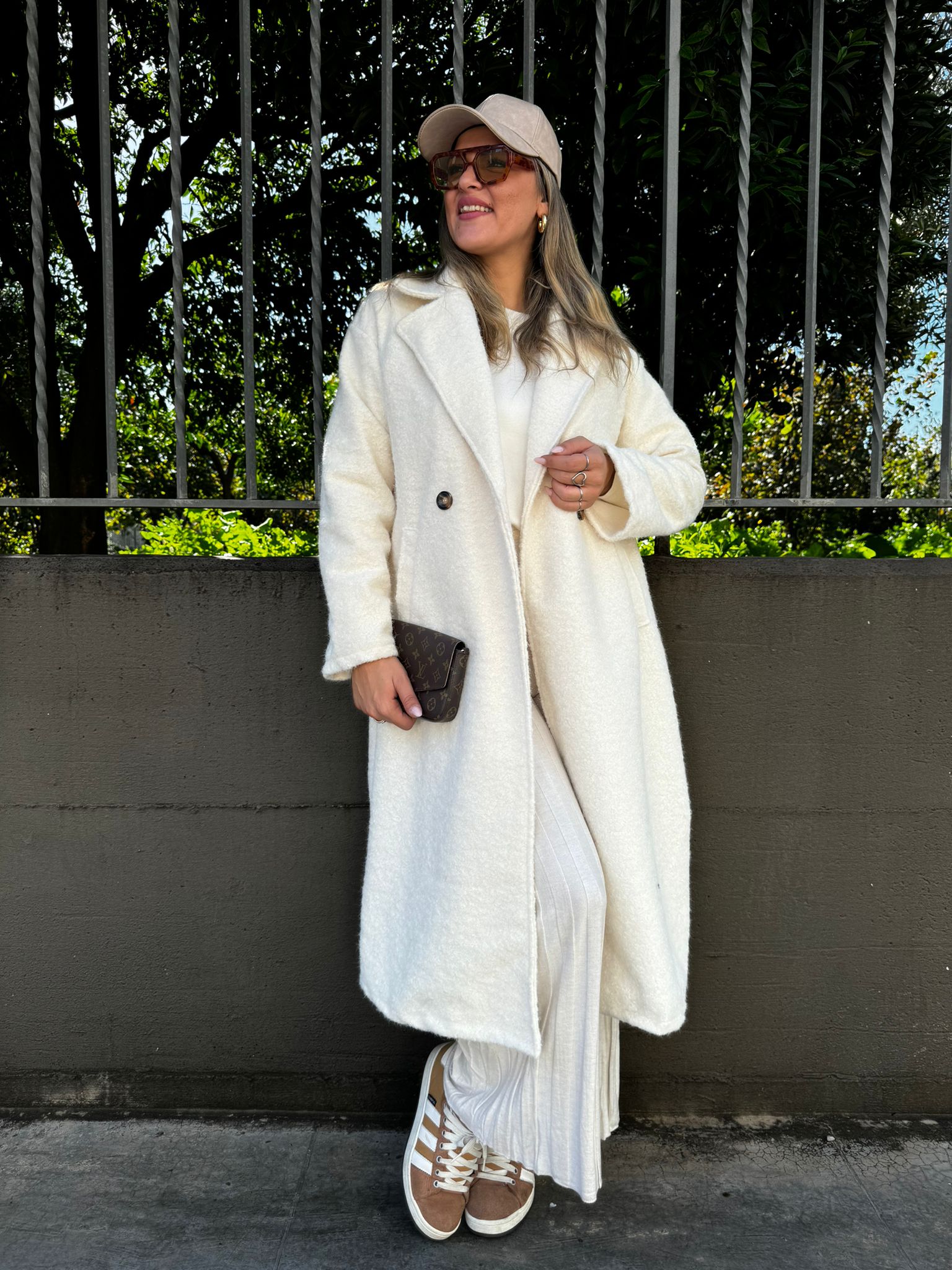 Cappotto doppio petto con cintura e fibbie eco pelle