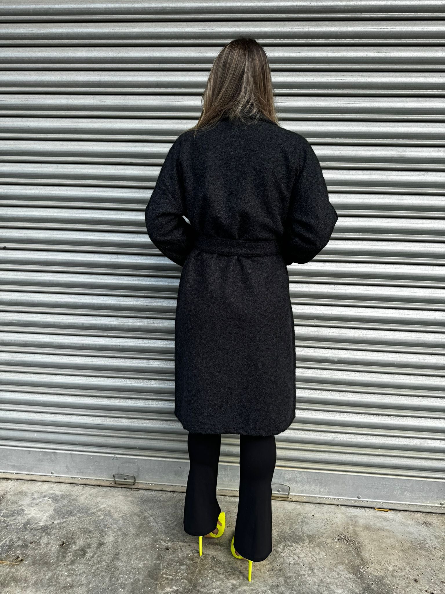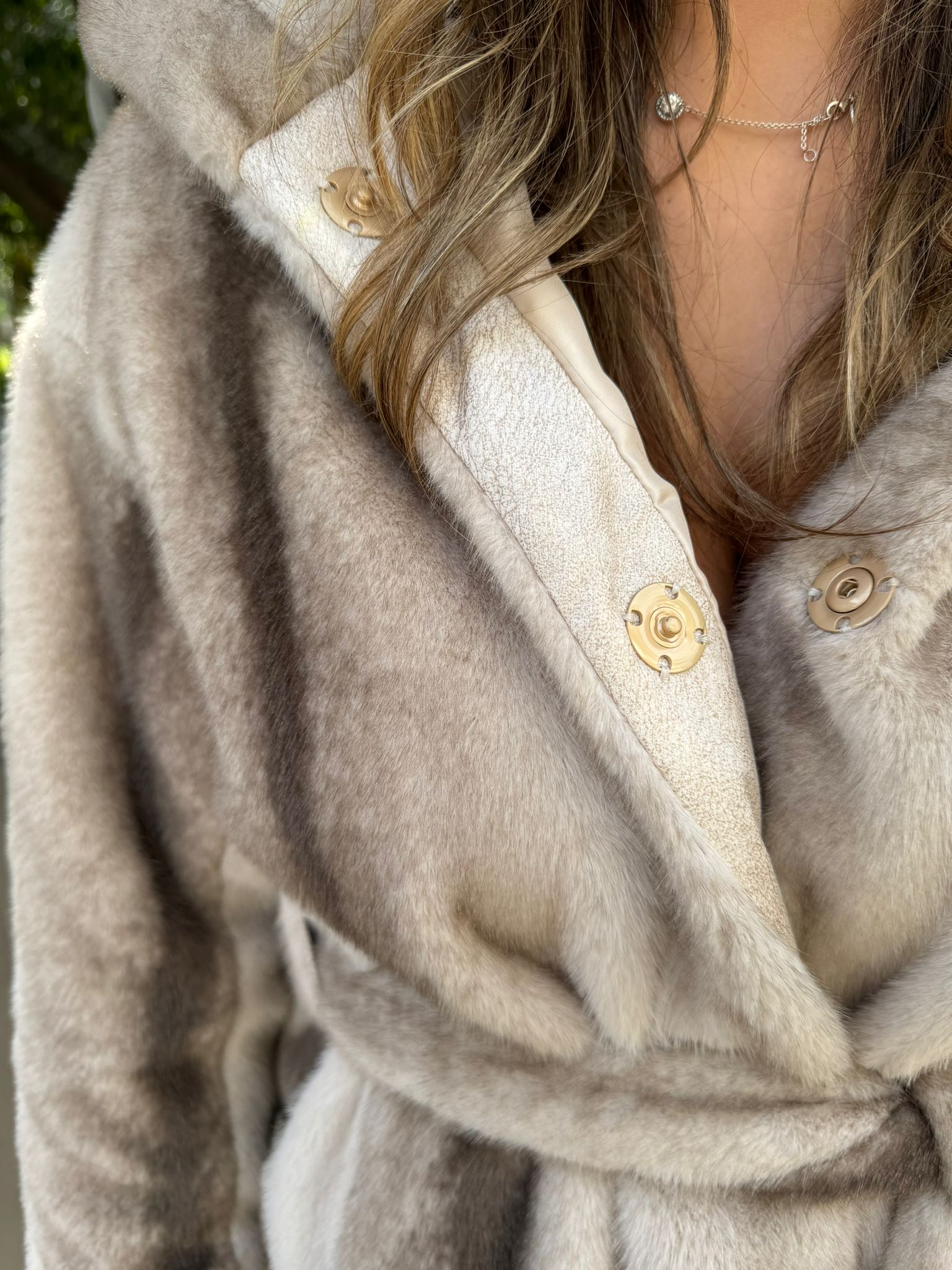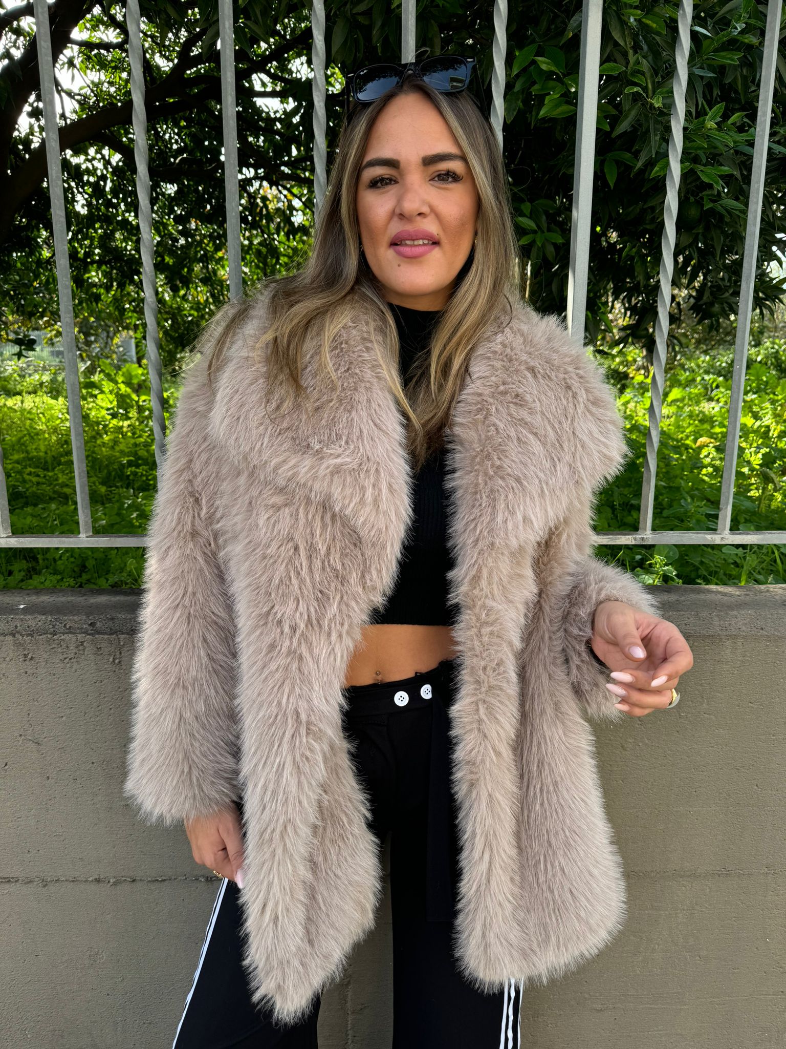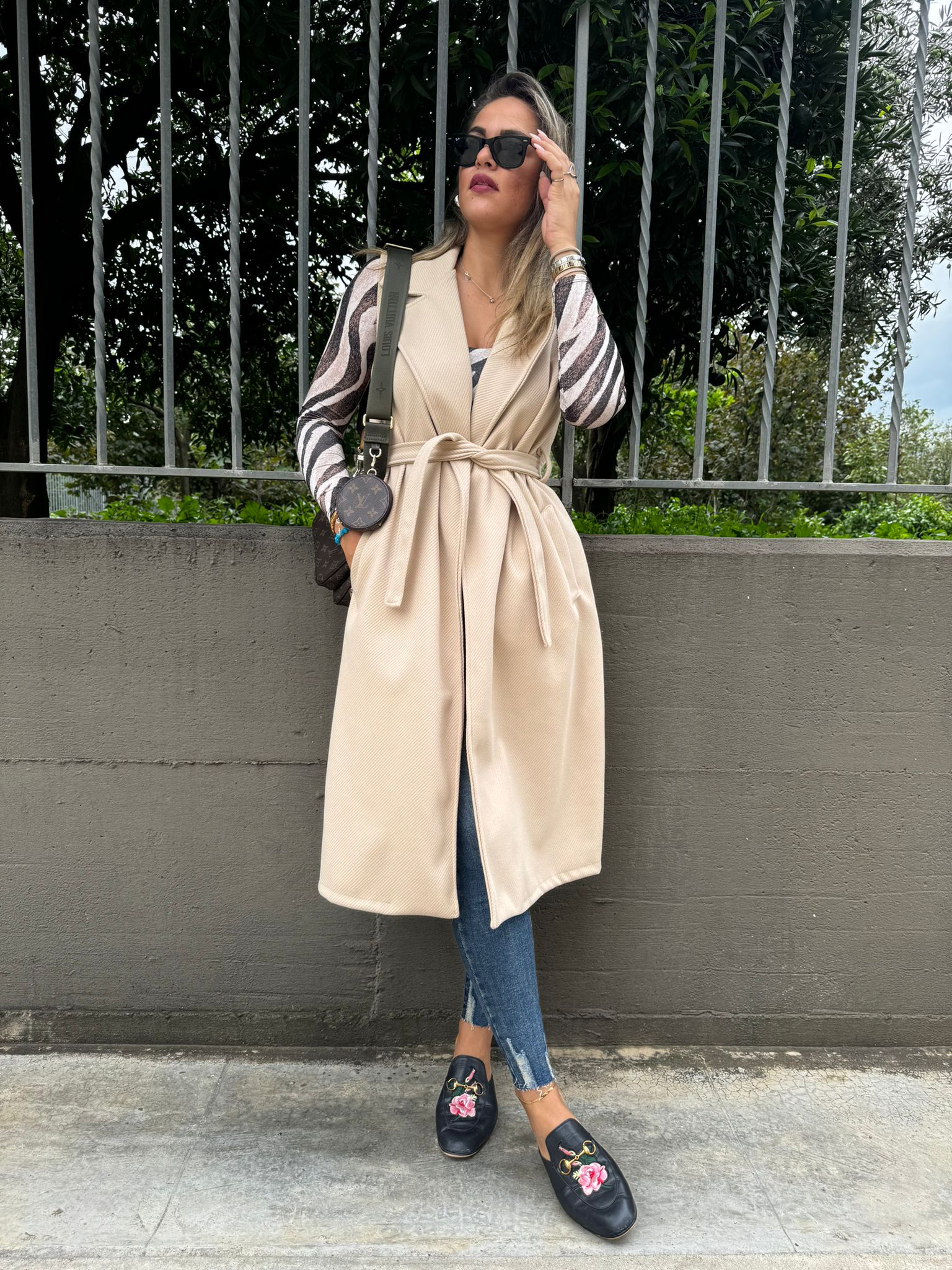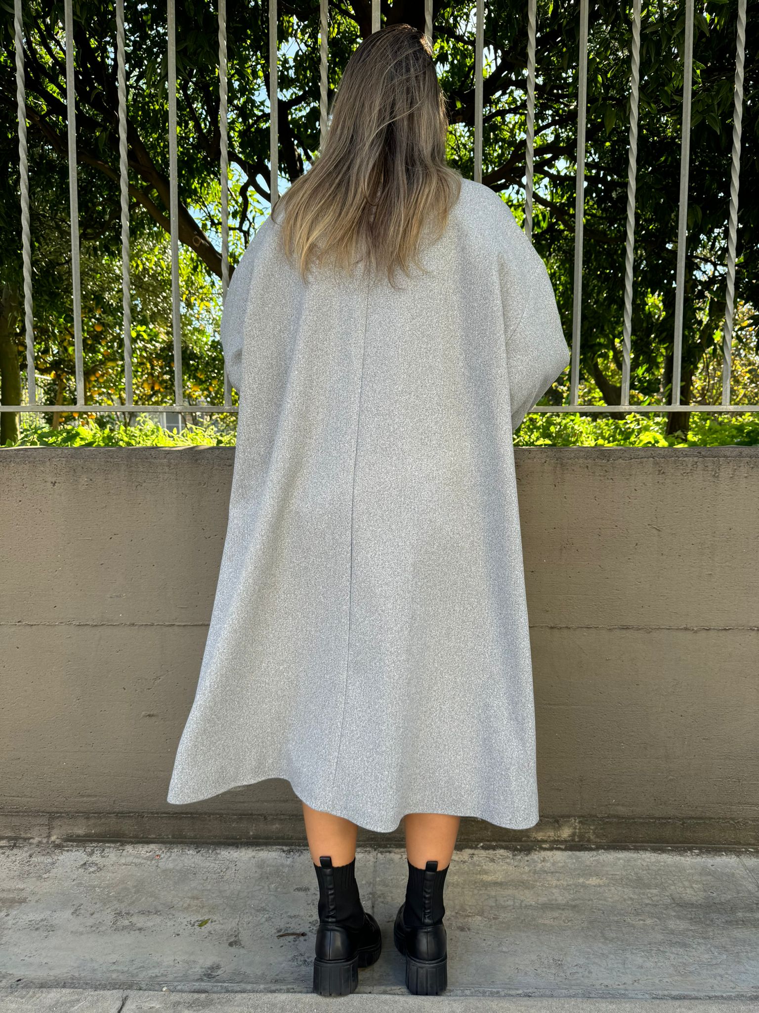 Cappotto doppio petto con cintura e fibbie eco pelle
